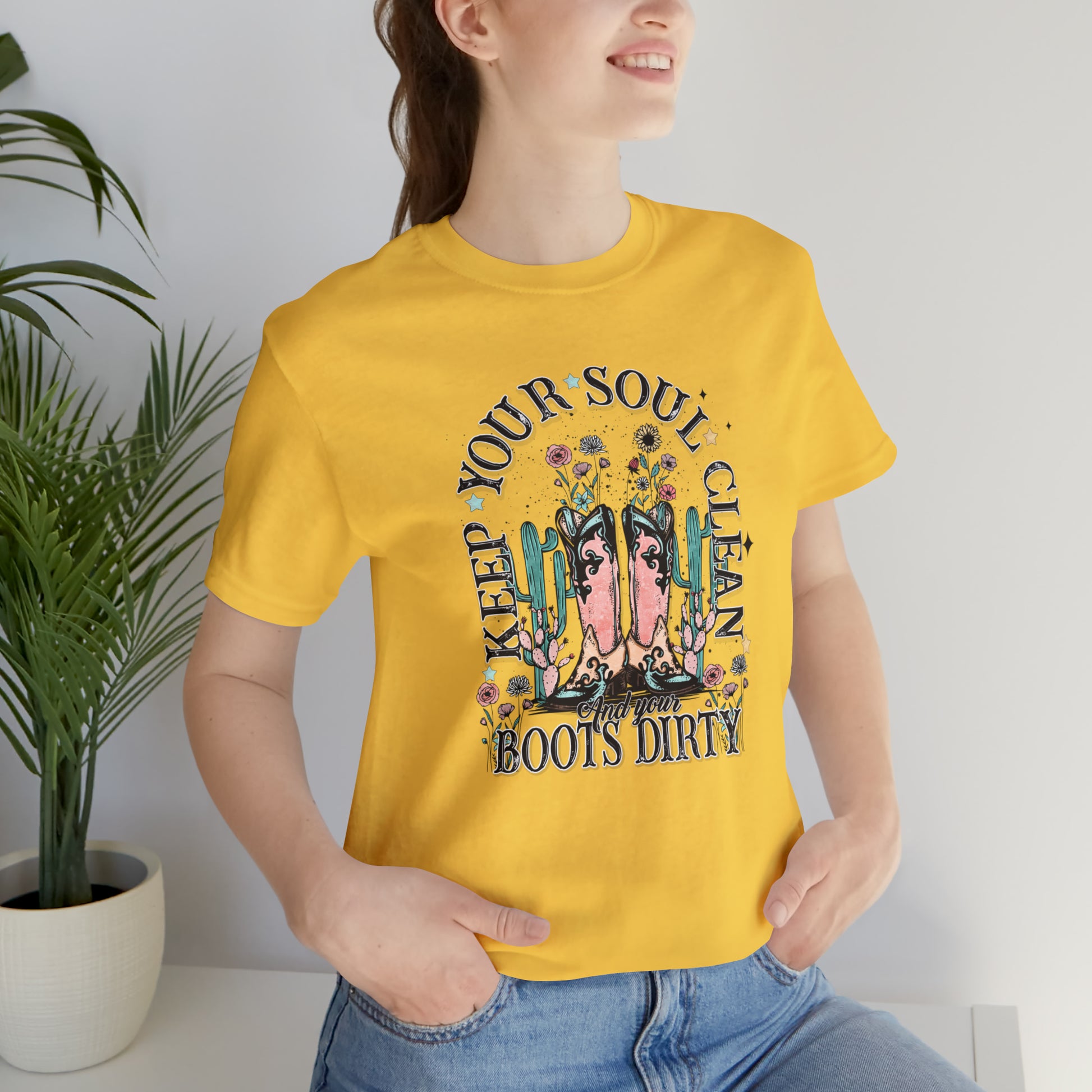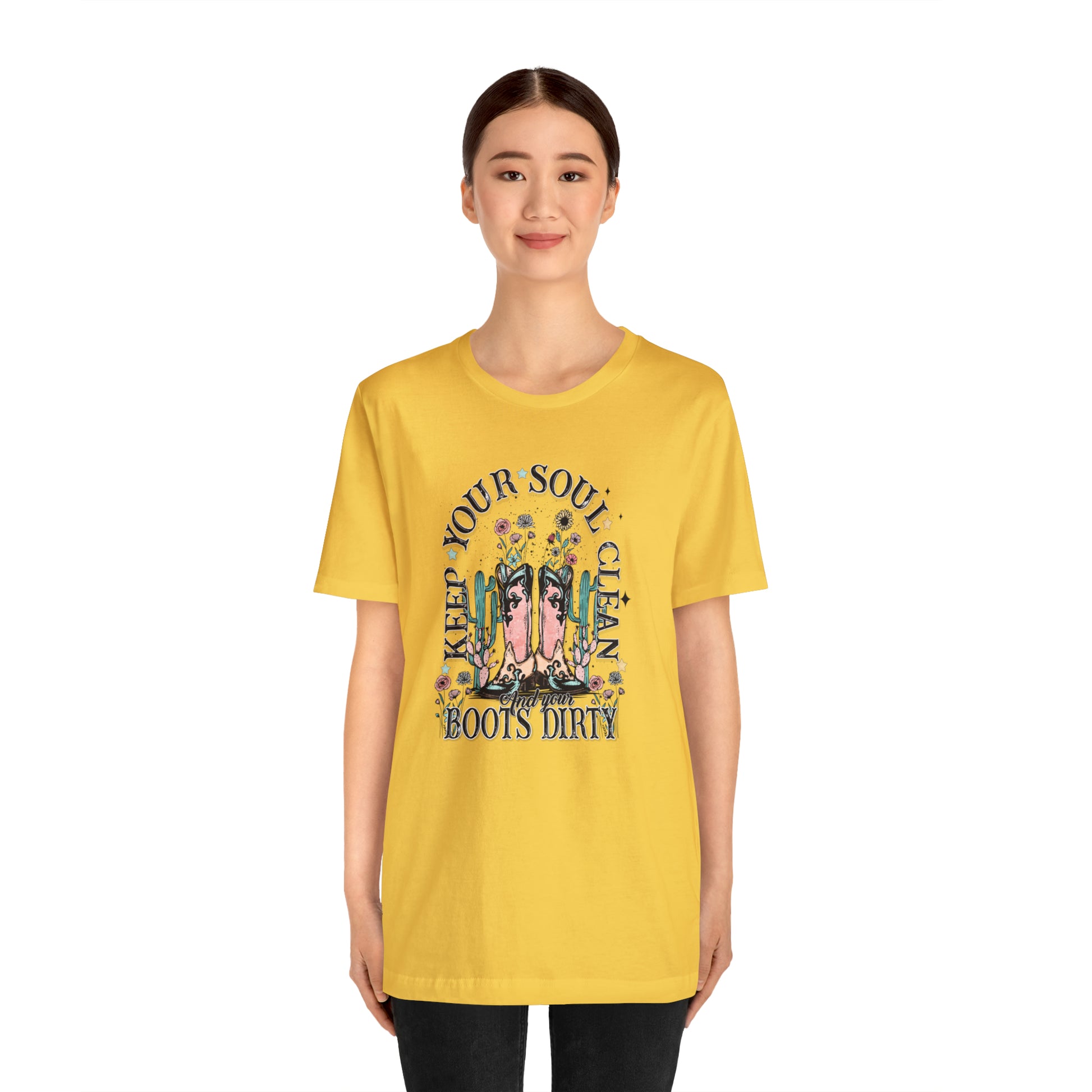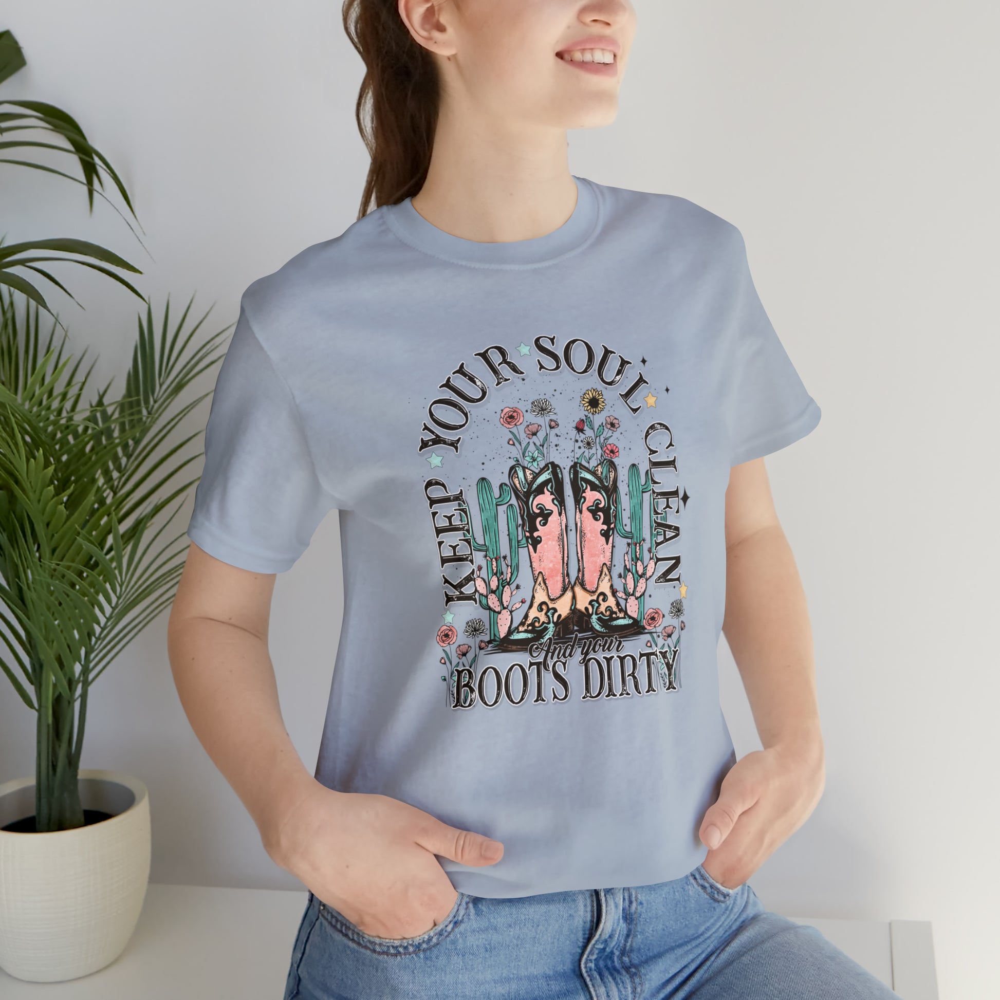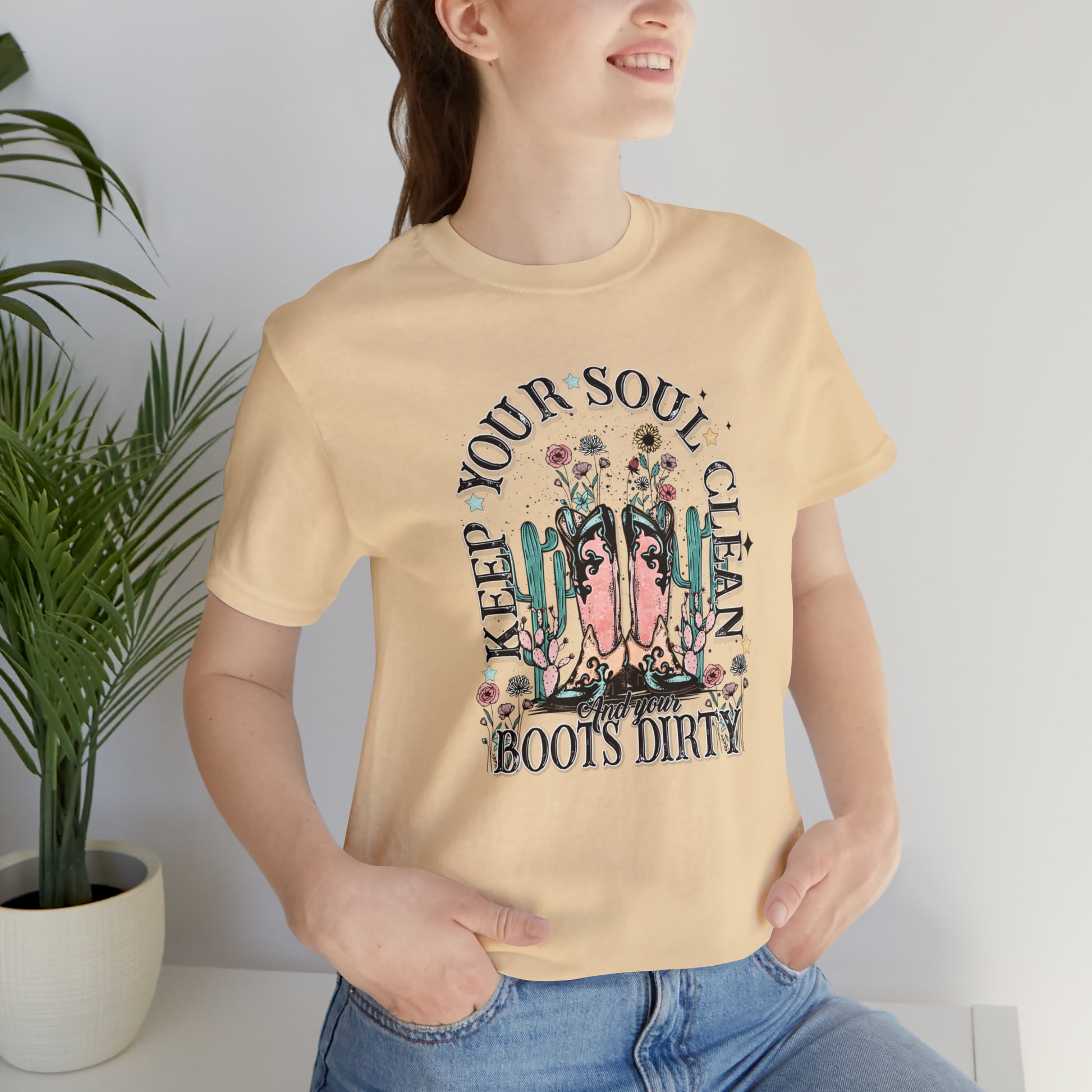 "Keep Your Soul Clean and Your Boots Dirty" Unisex Jersey Short Sleeve Tee