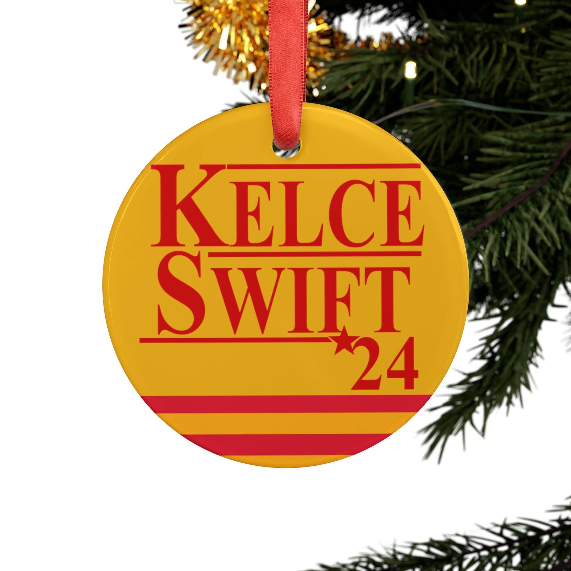 Kelce Swift 24 Ornament with Ribbon - Yellow