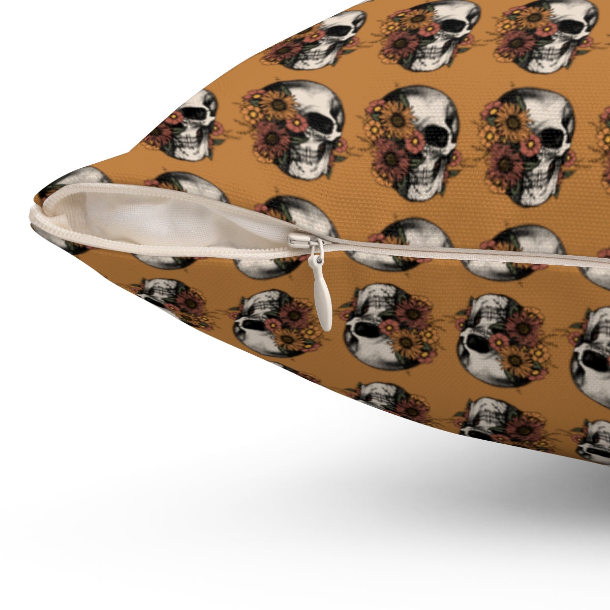 Light Brown Boho Floral Skeleton Pattern Fall Halloween Spun Polyester Square Pillow