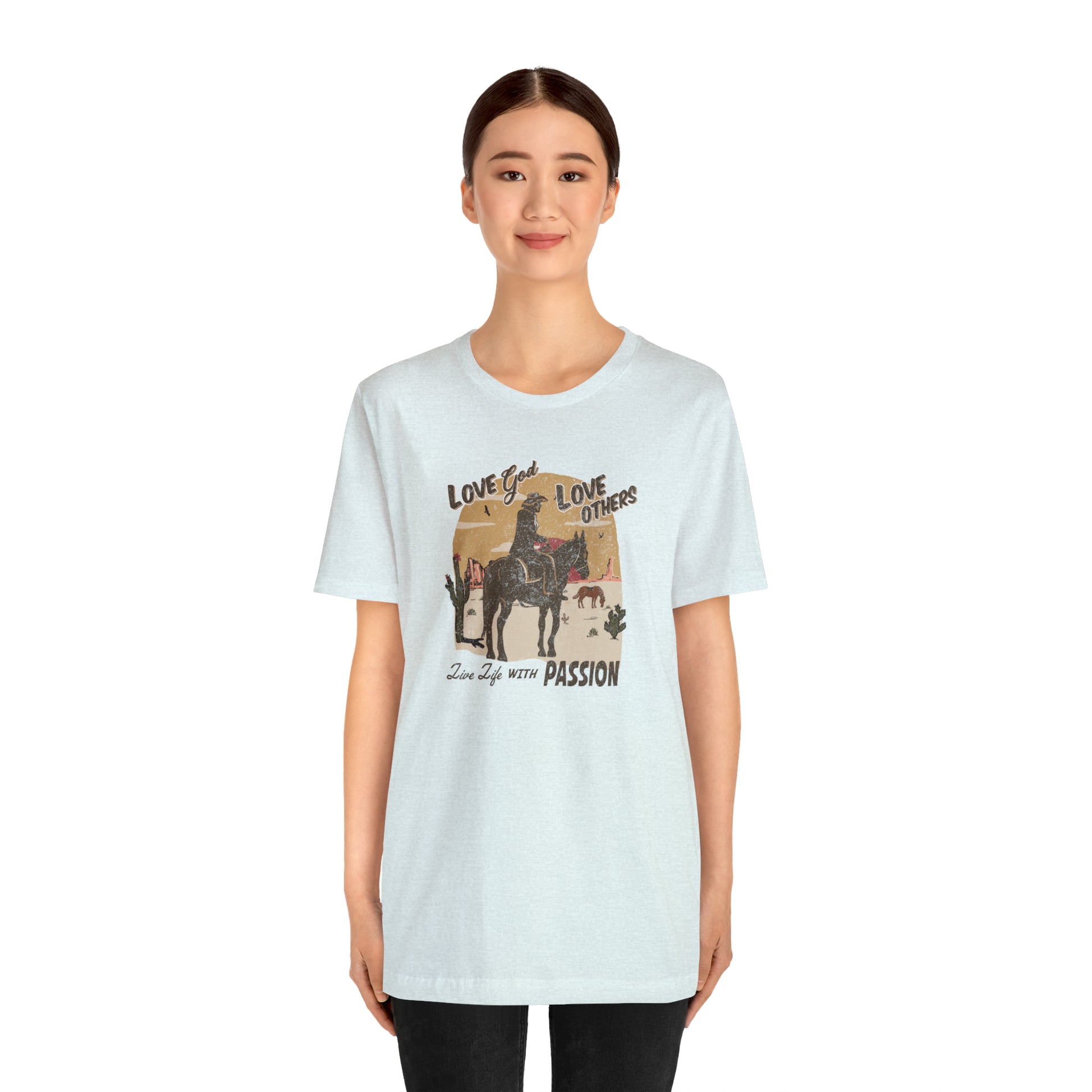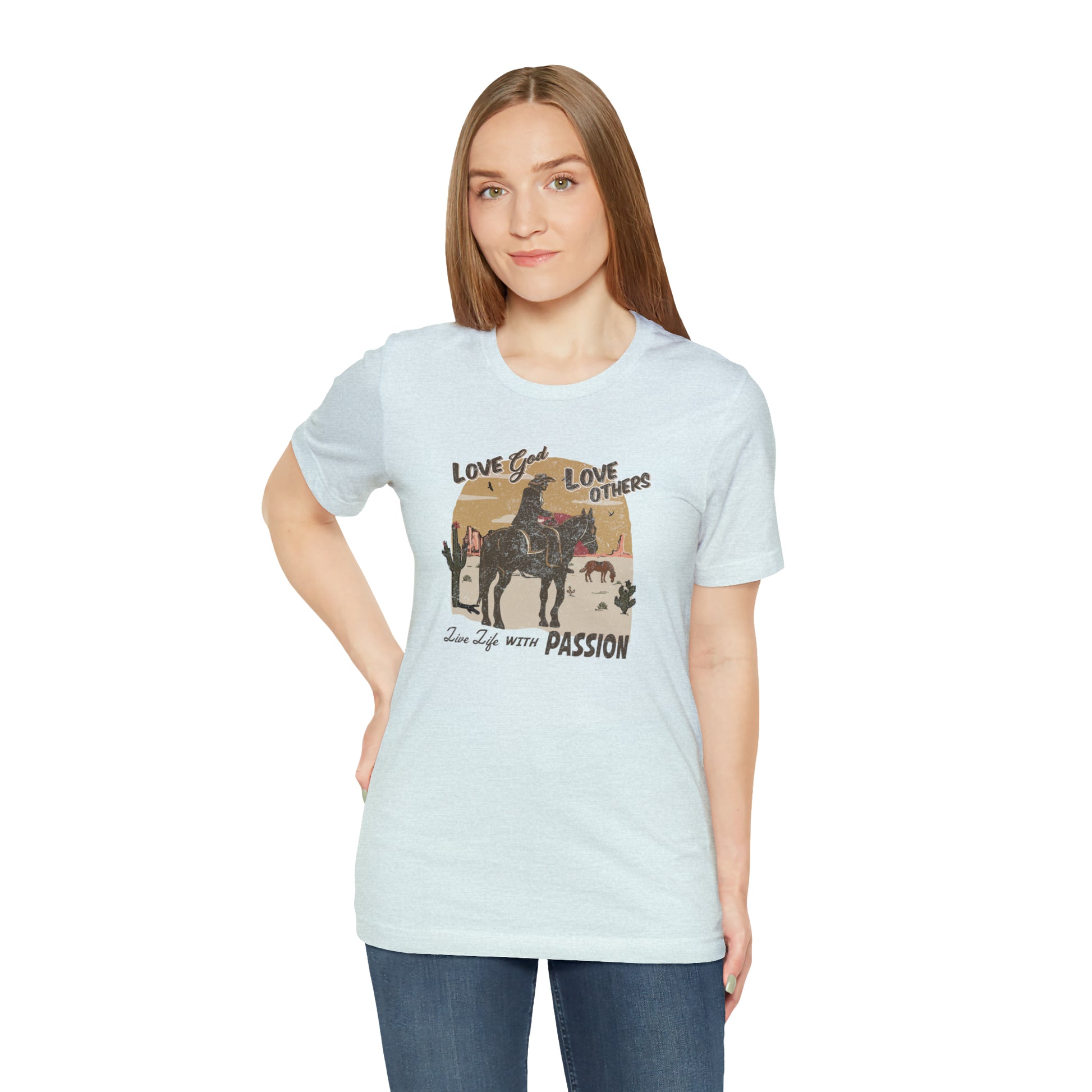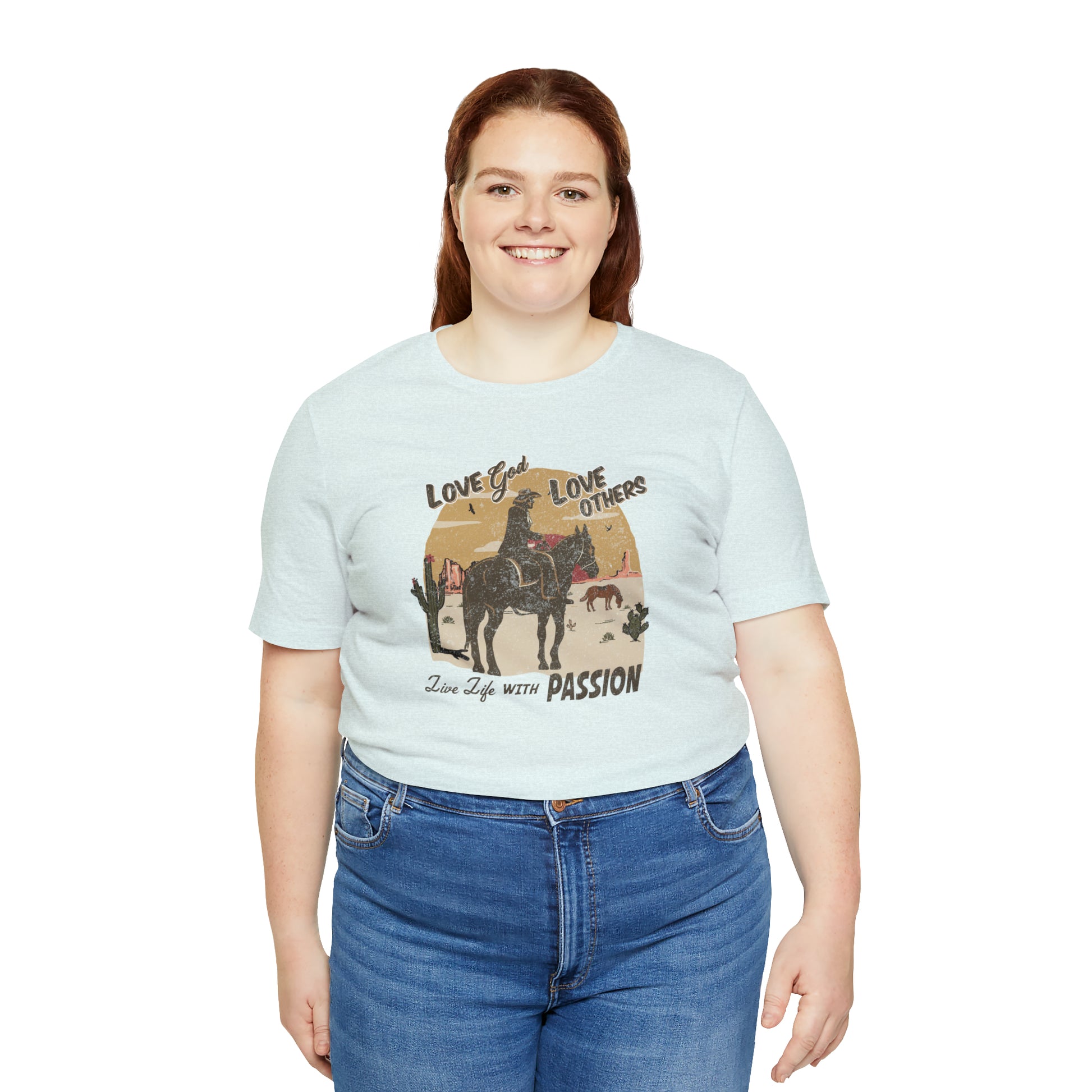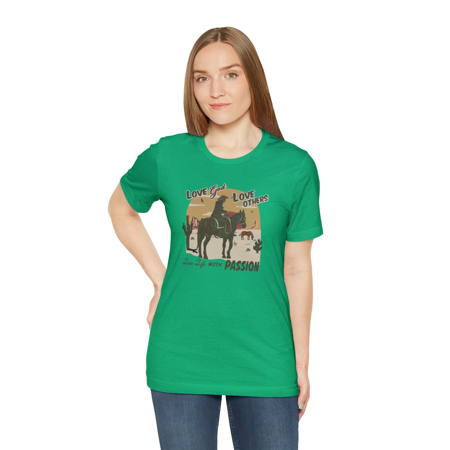 "Love God, Love Others, Live Life with Passion" Unisex Jersey Short Sleeve Tee