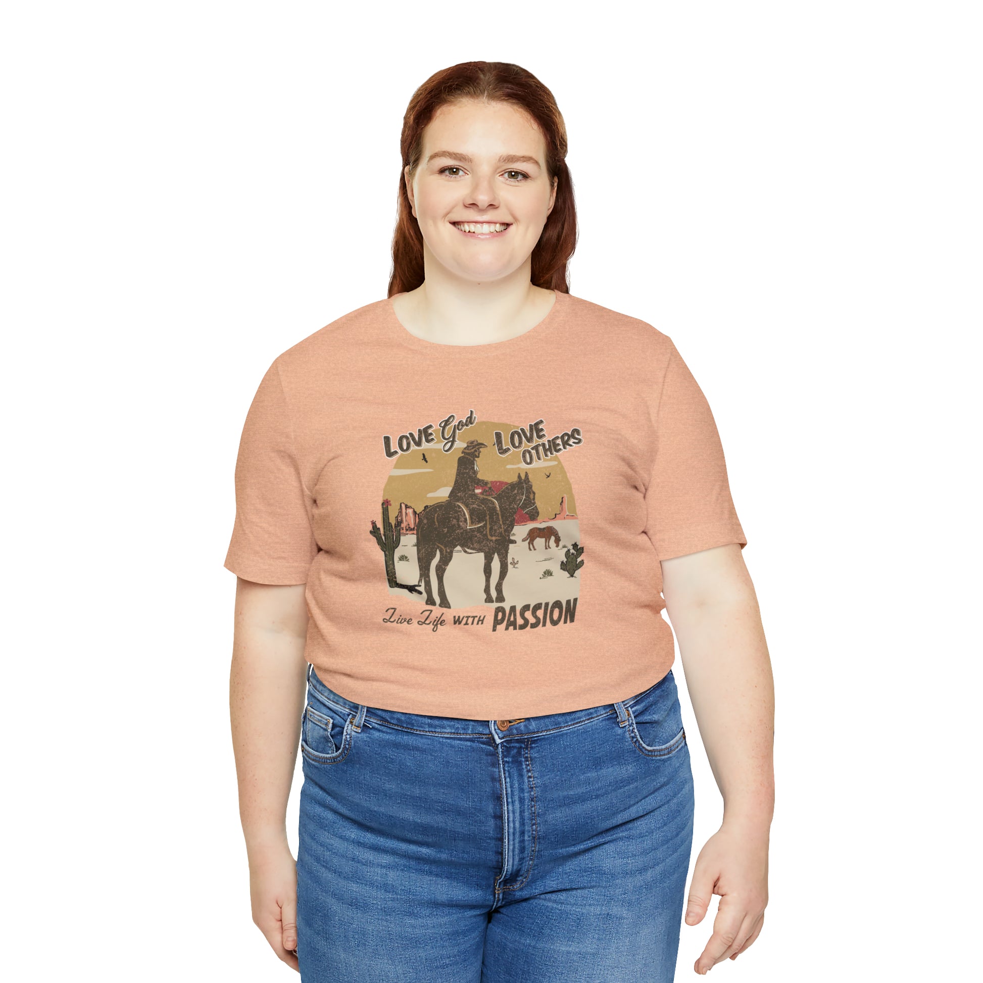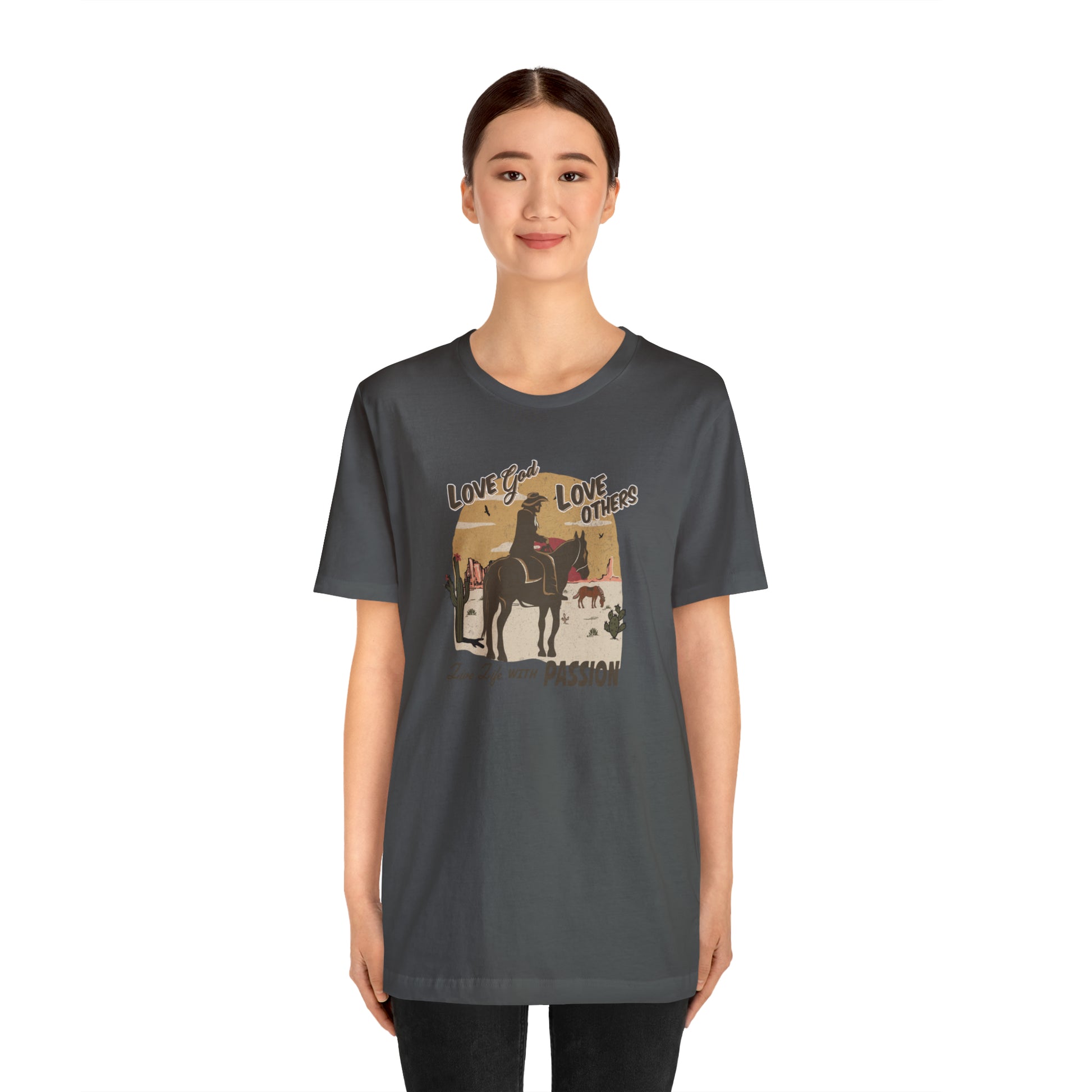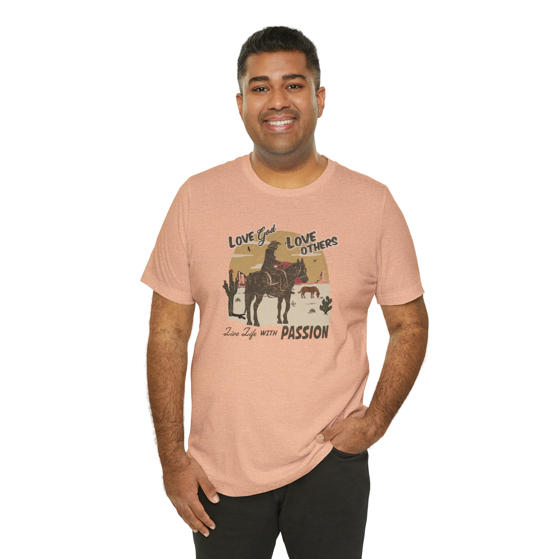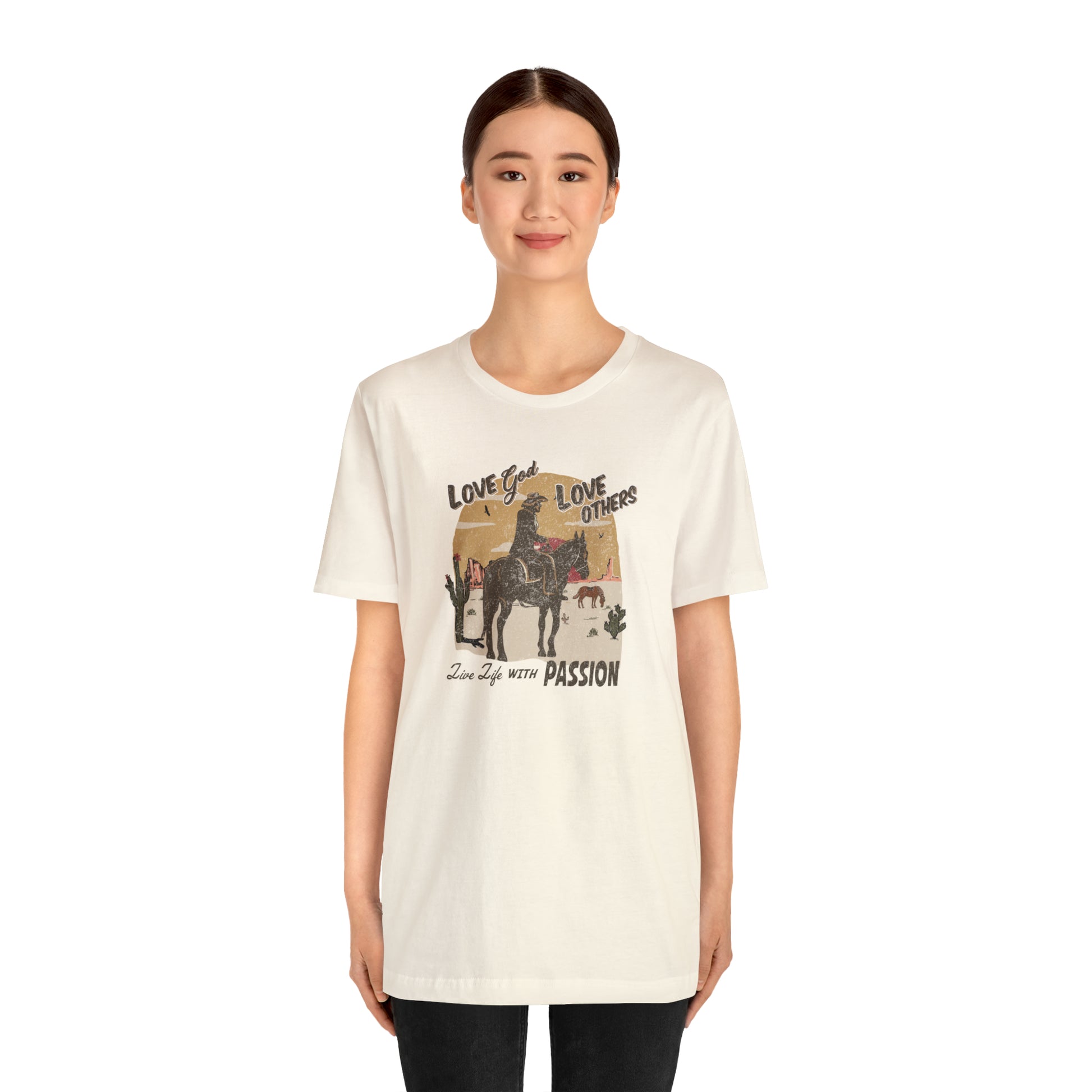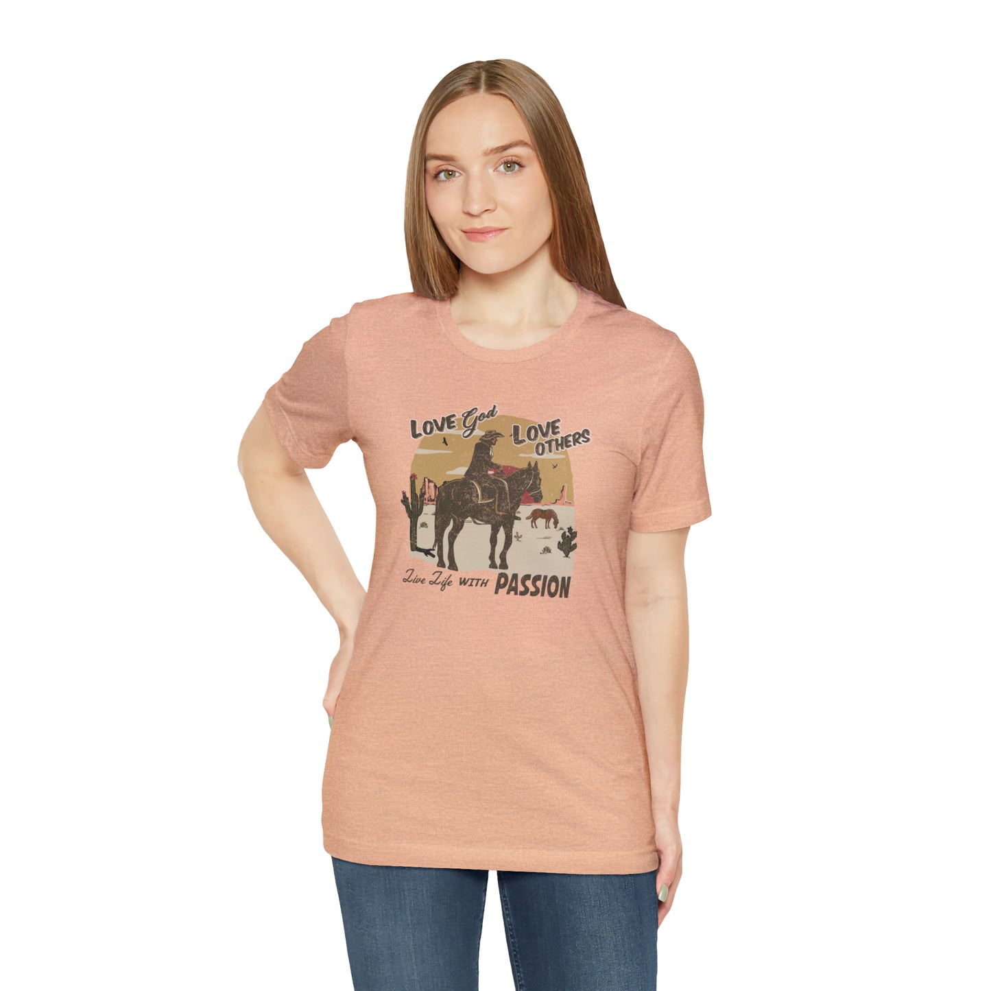 "Love God, Love Others, Live Life with Passion" Unisex Jersey Short Sleeve Tee