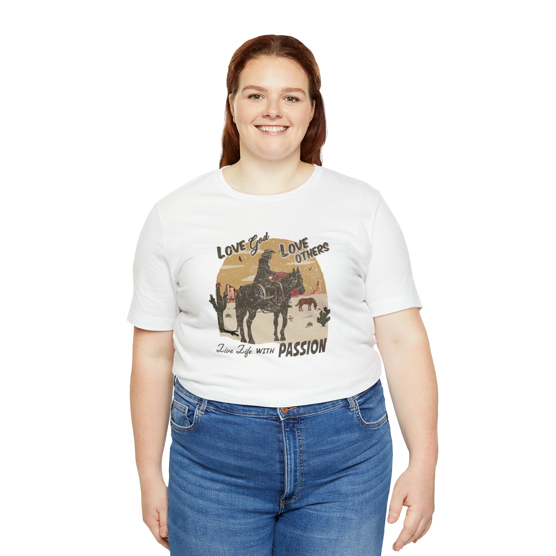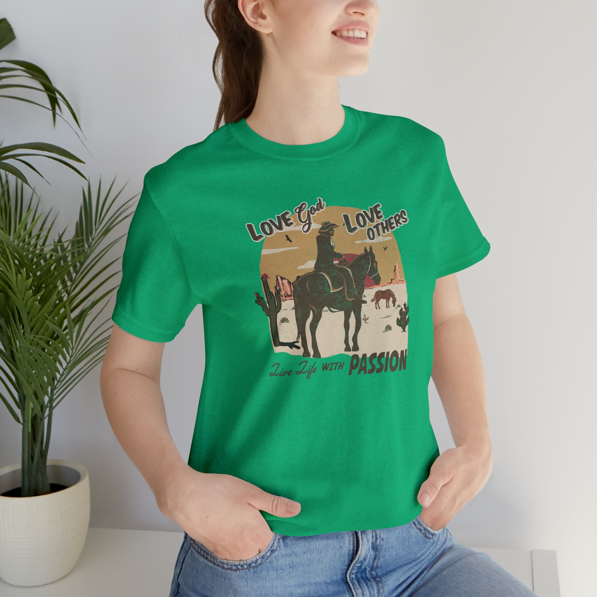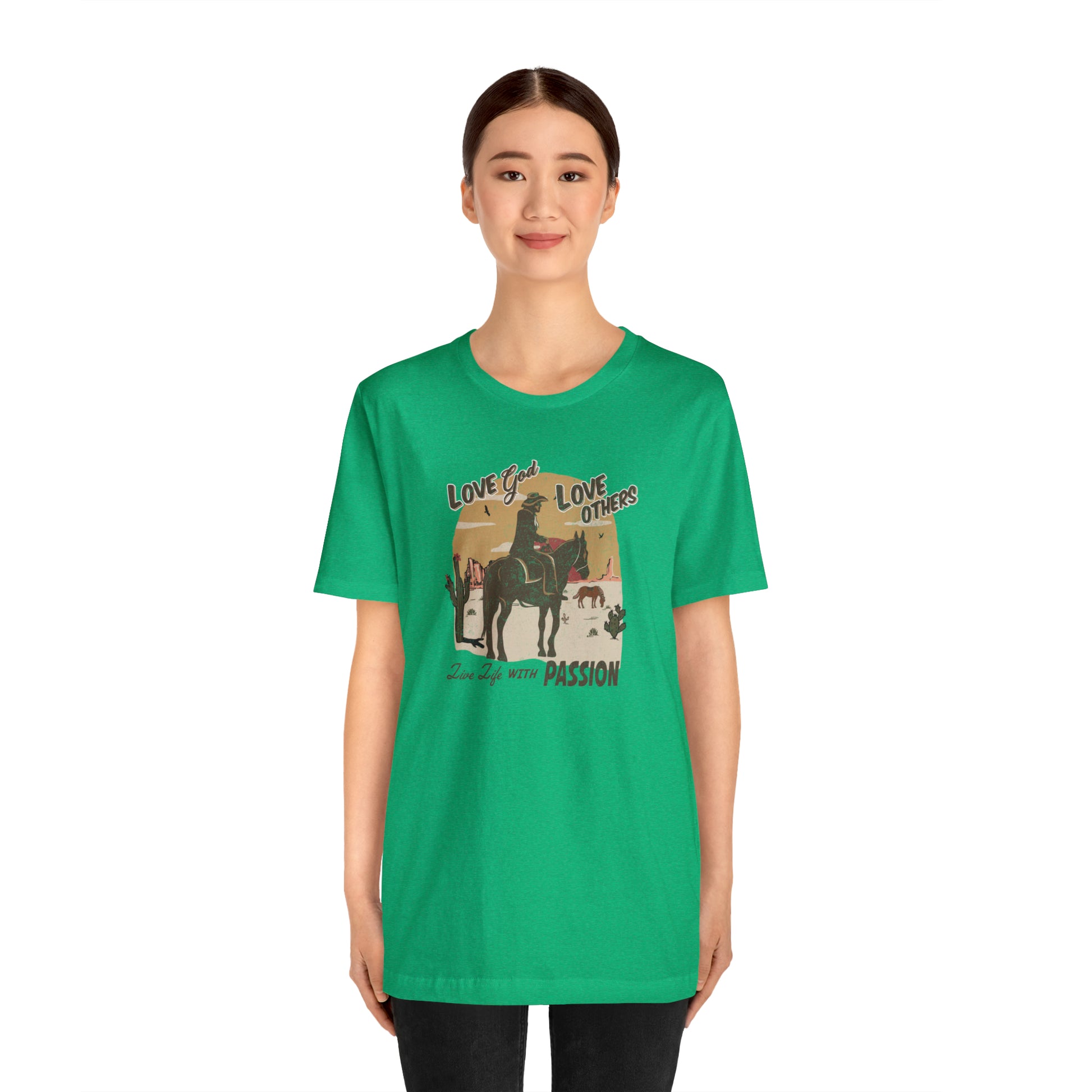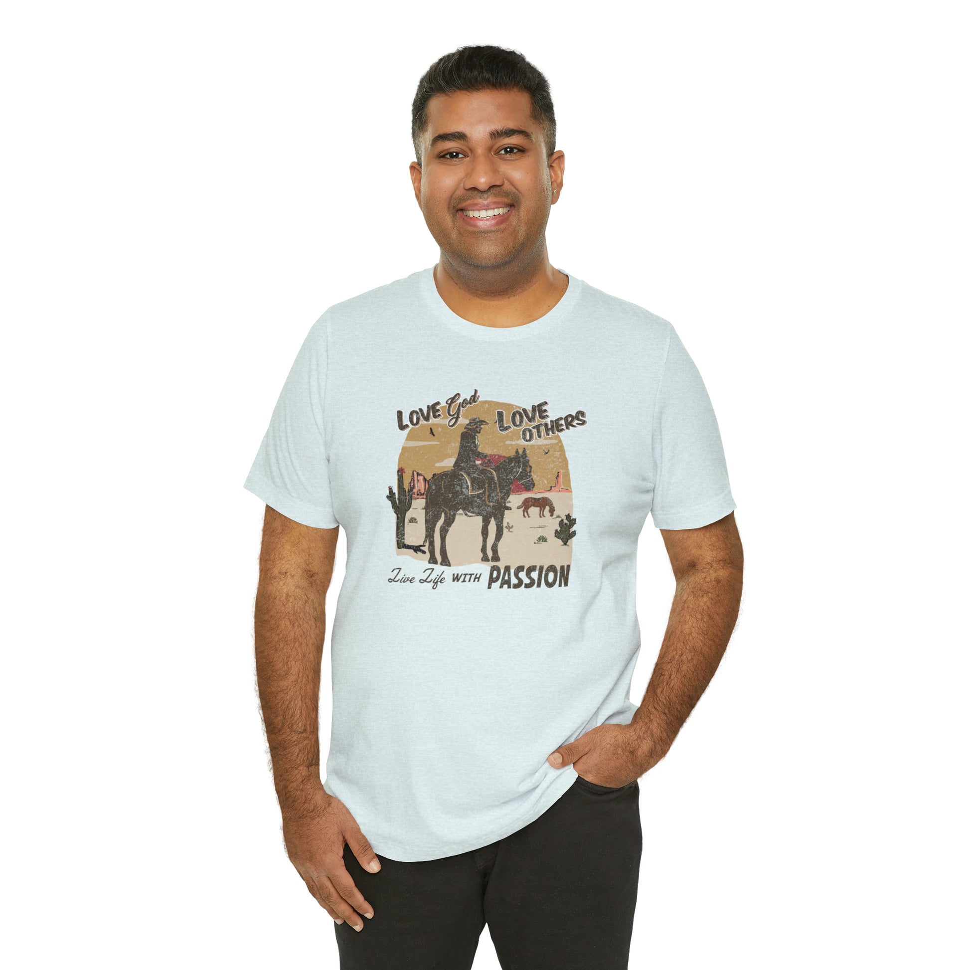 "Love God, Love Others, Live Life with Passion" Unisex Jersey Short Sleeve Tee