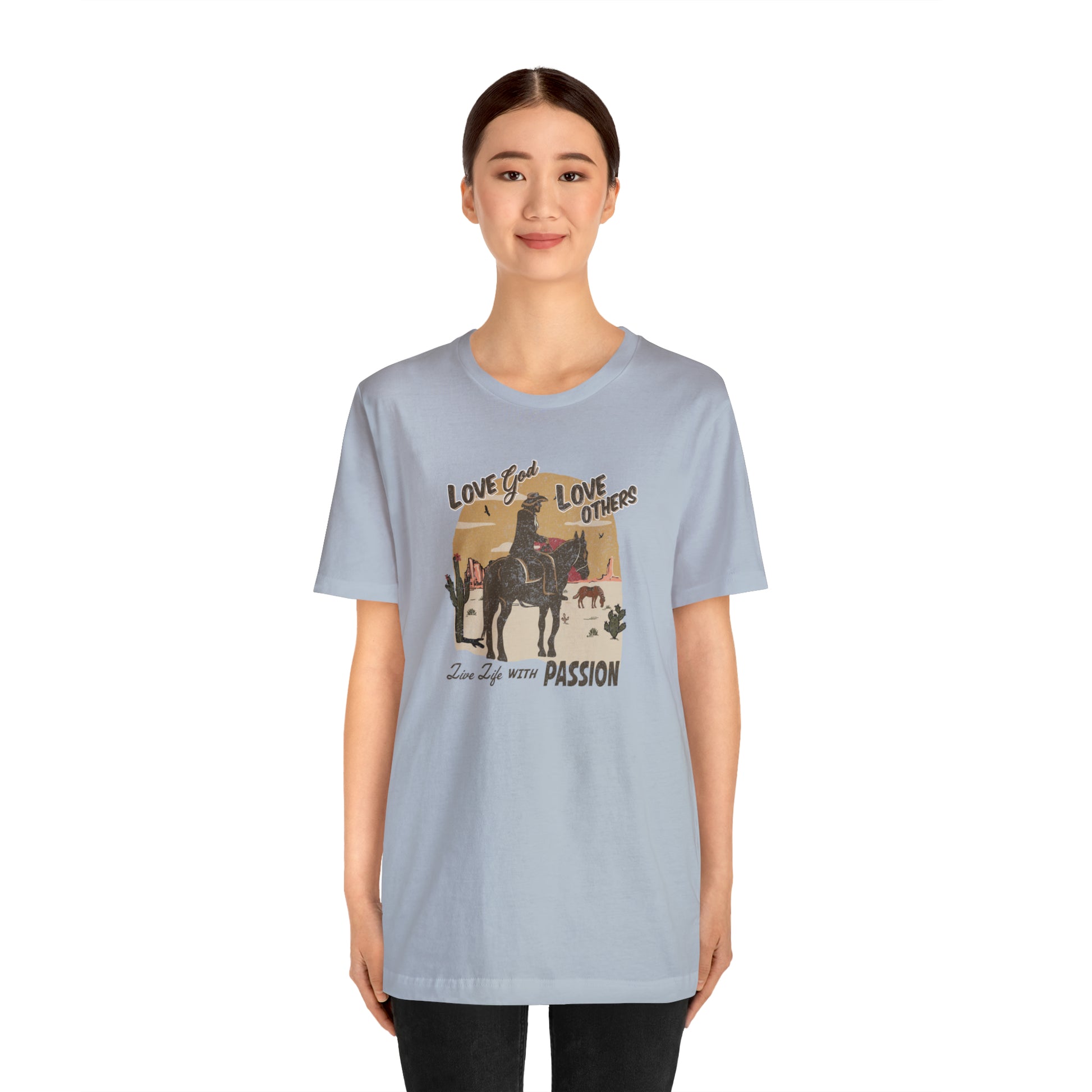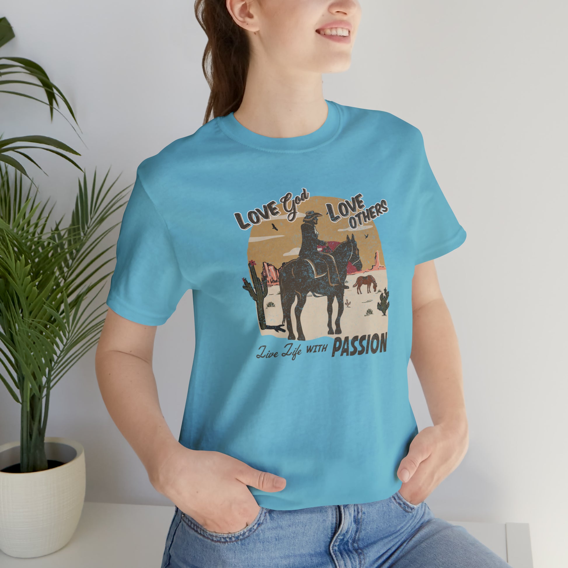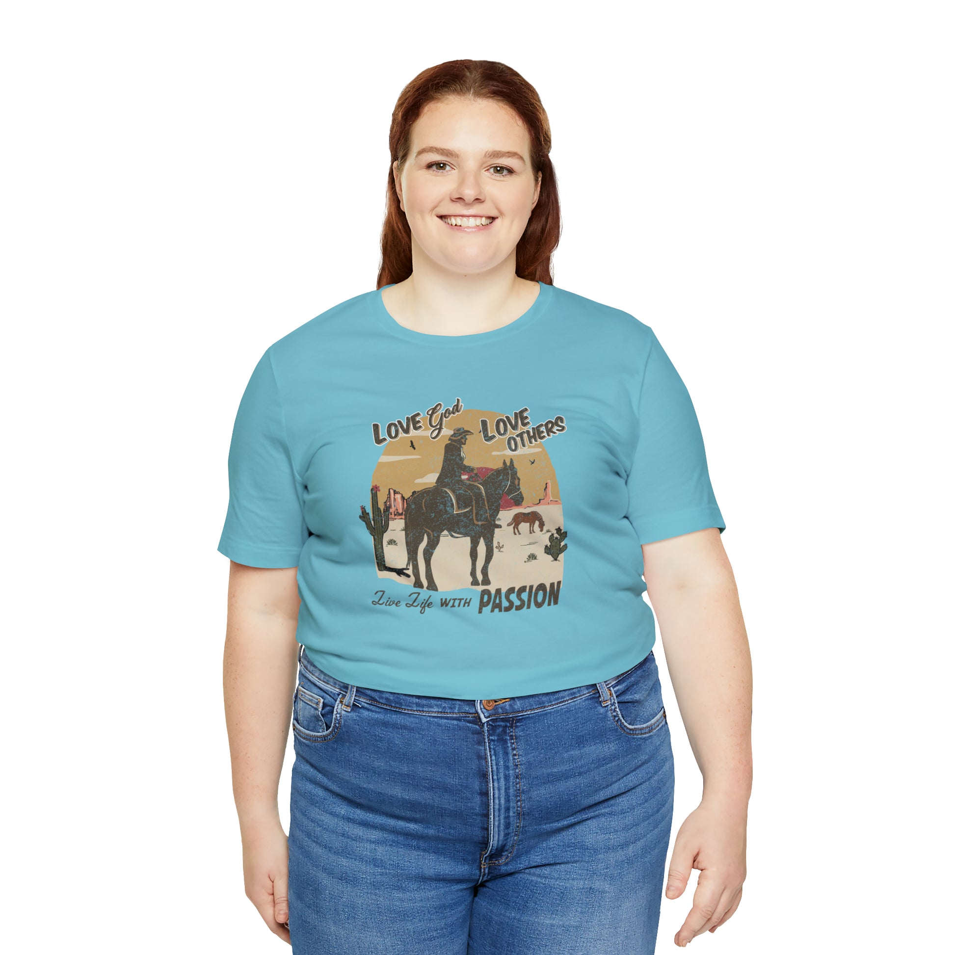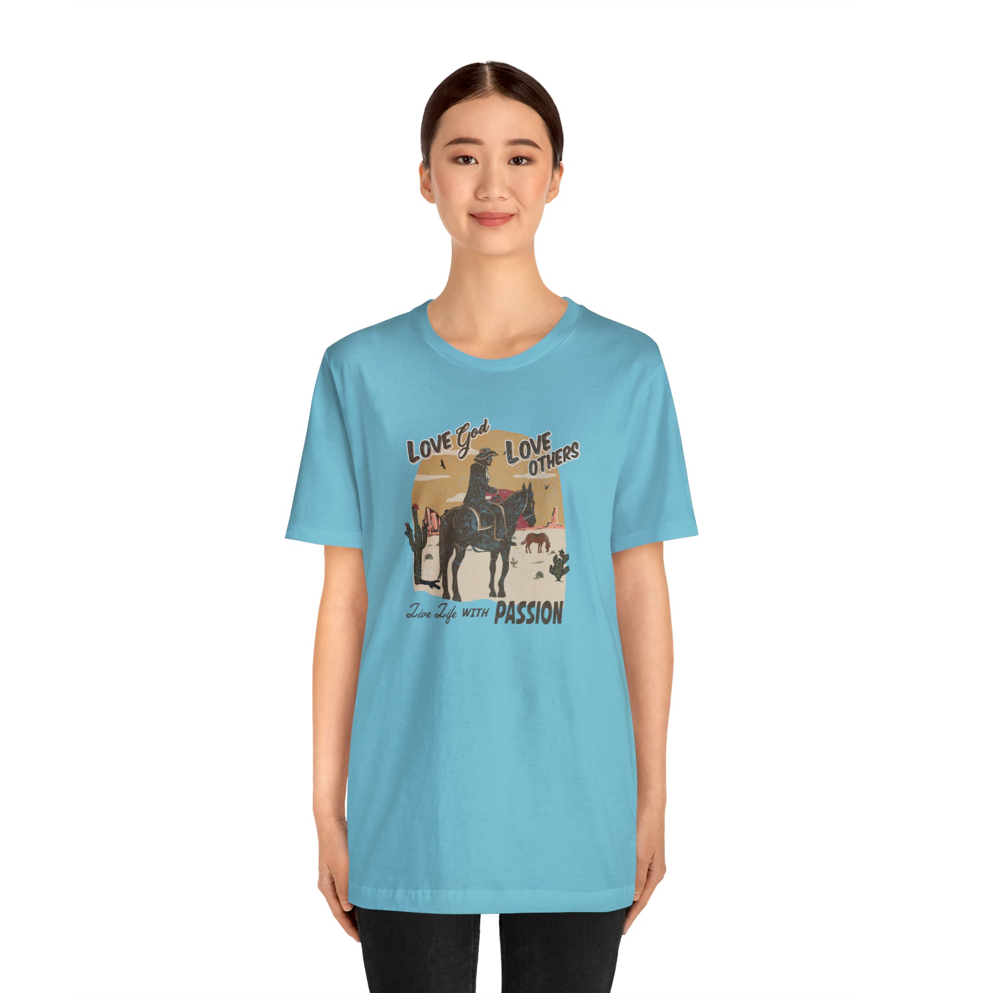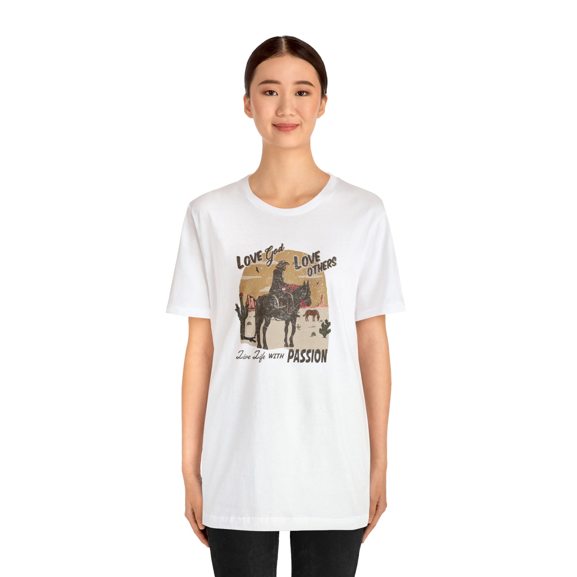 "Love God, Love Others, Live Life with Passion" Unisex Jersey Short Sleeve Tee
