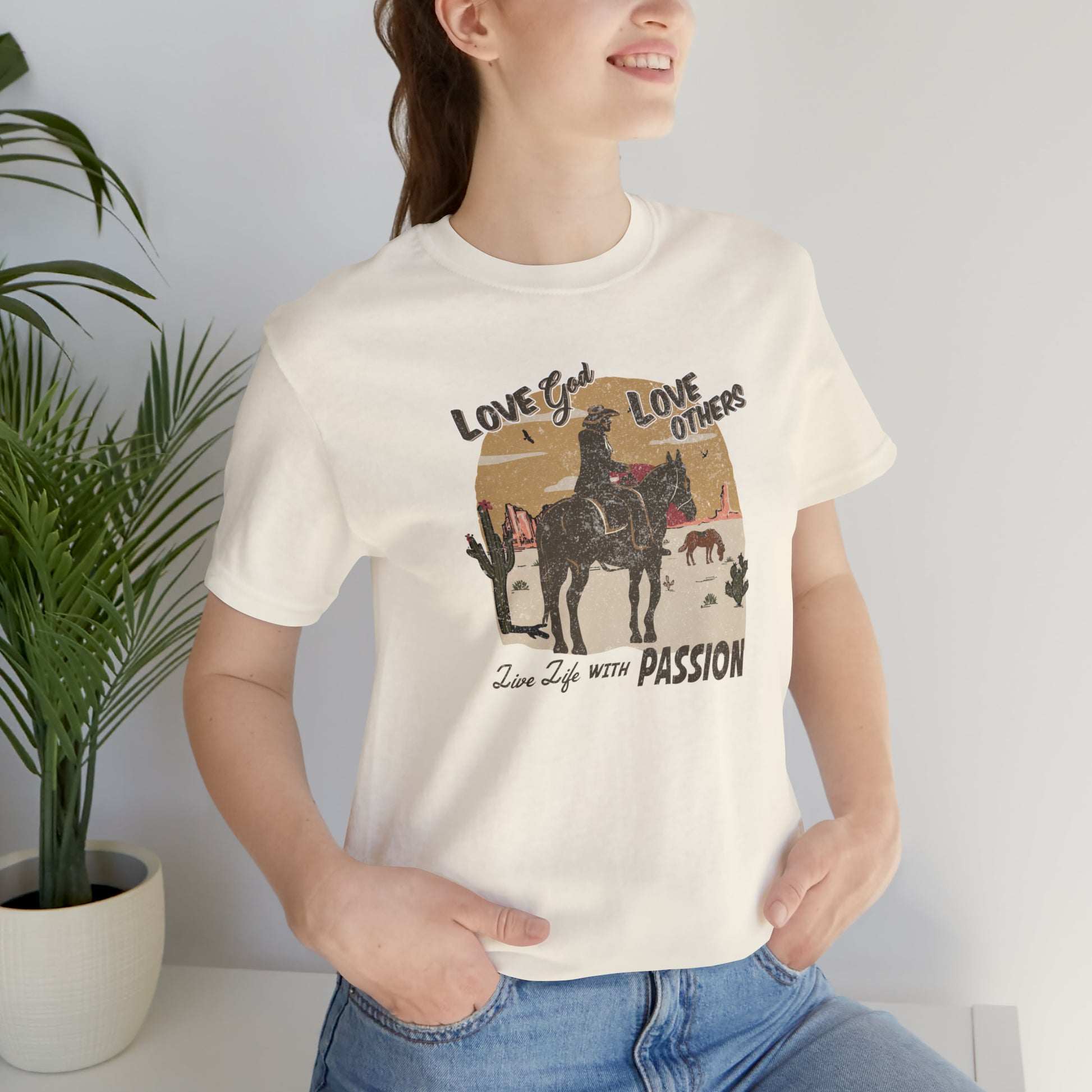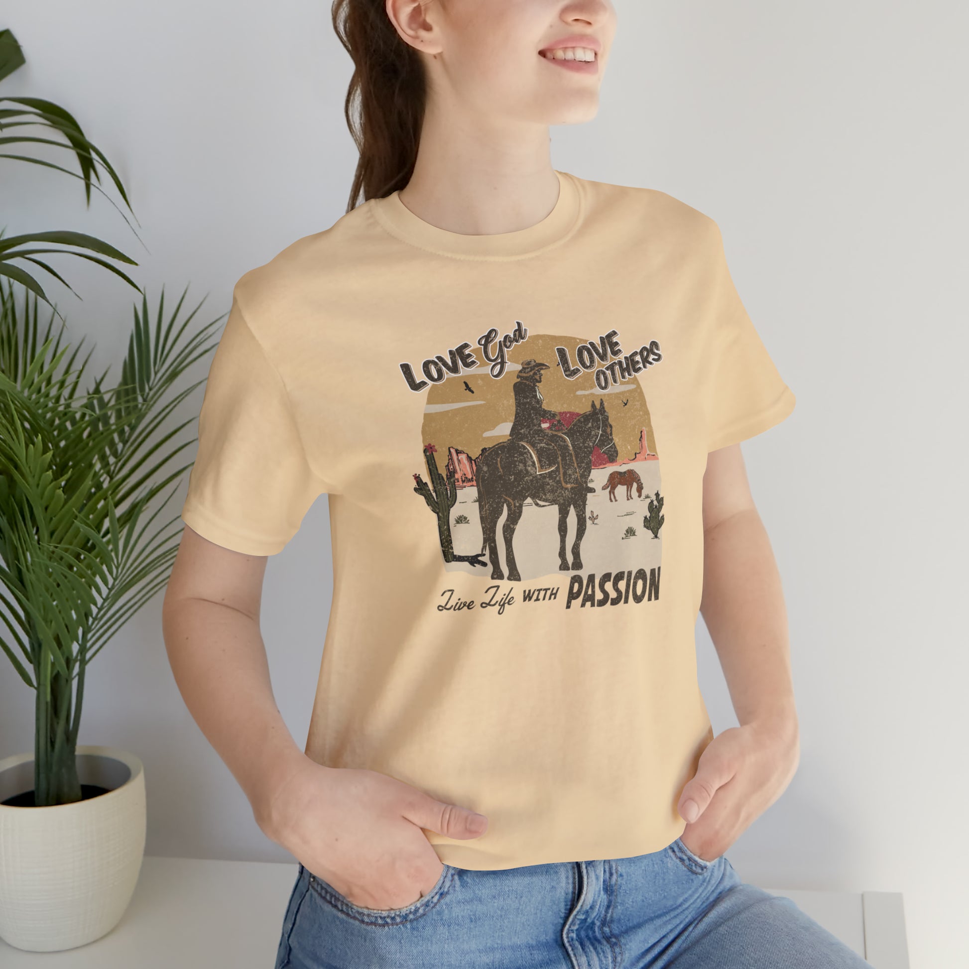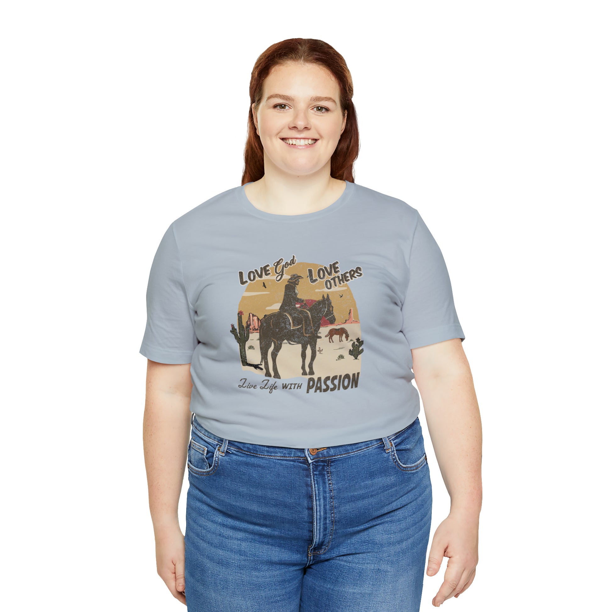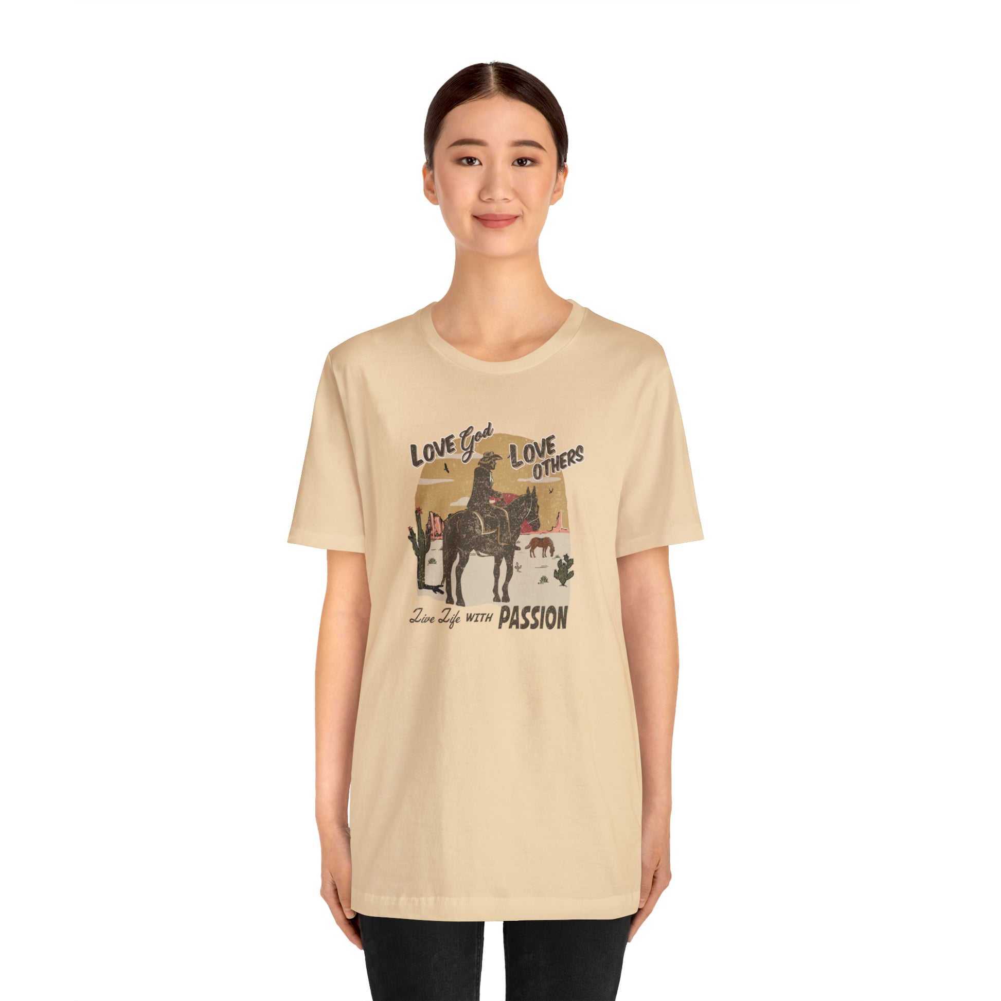 "Love God, Love Others, Live Life with Passion" Unisex Jersey Short Sleeve Tee
