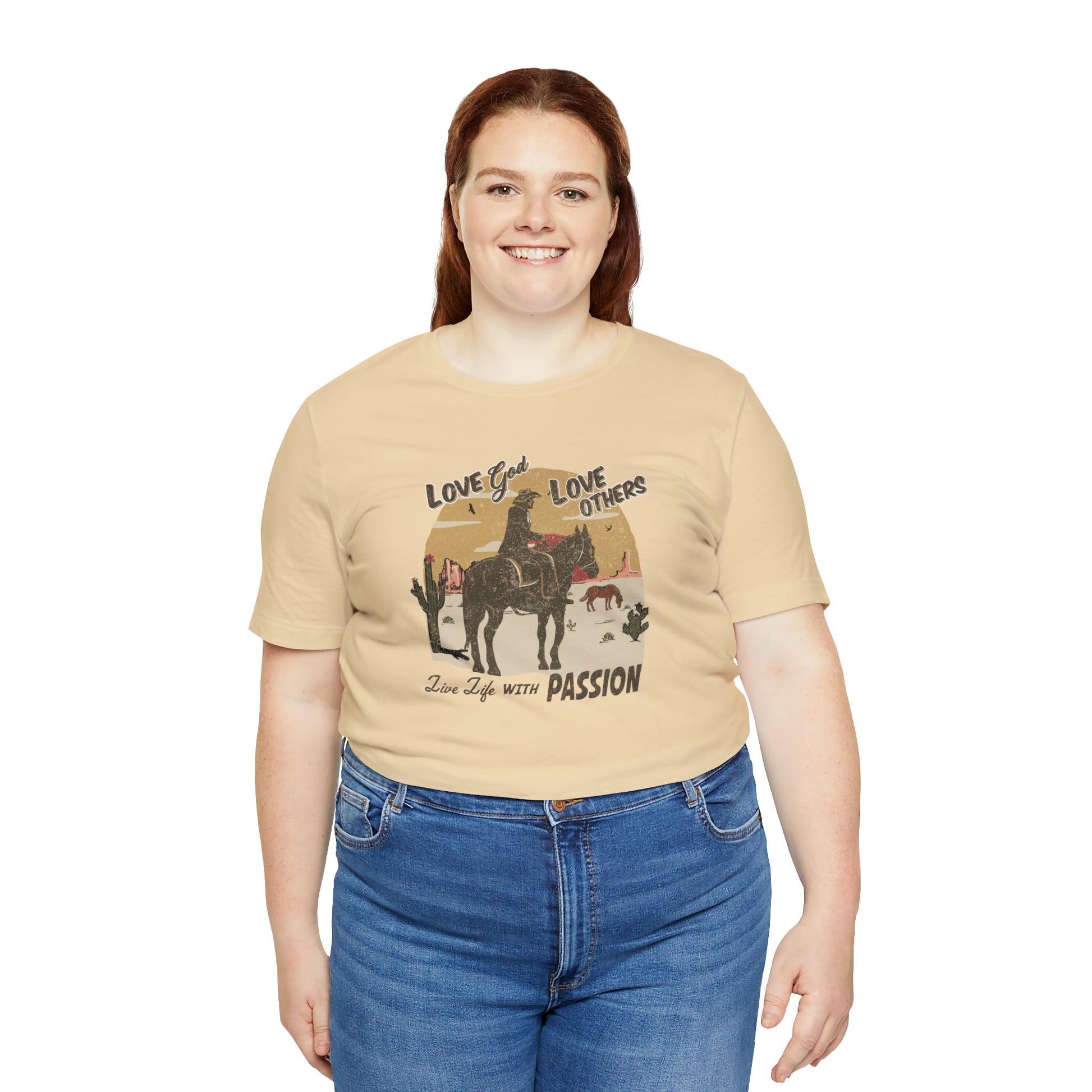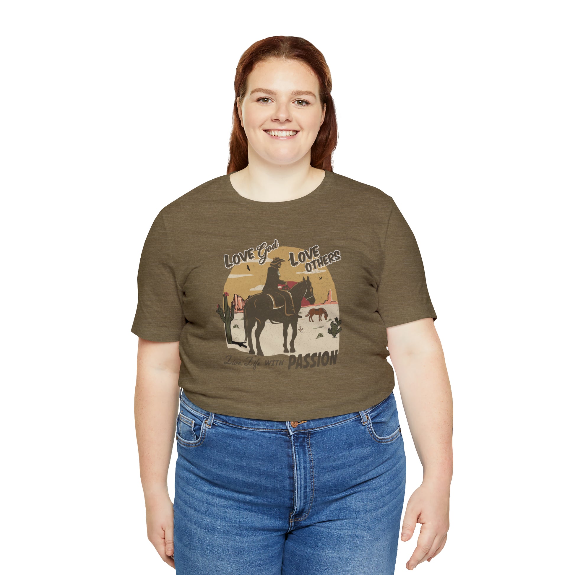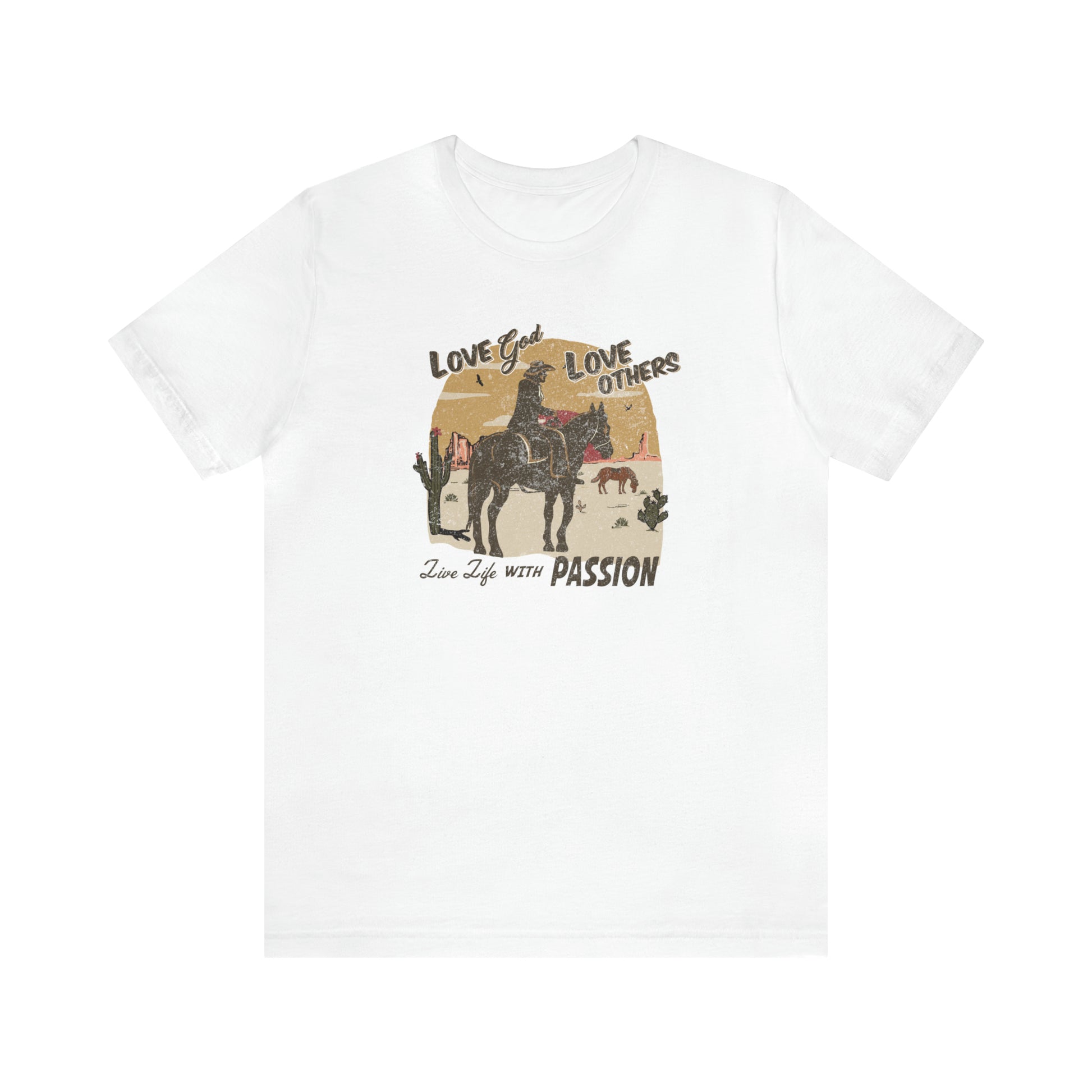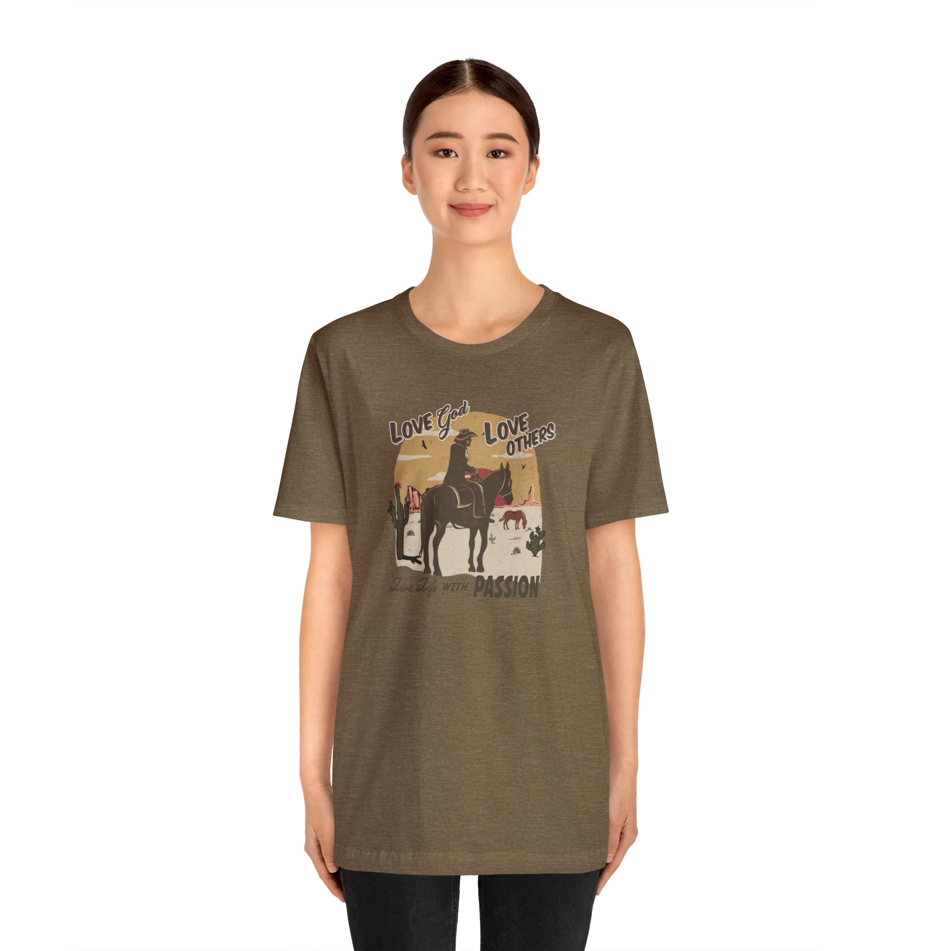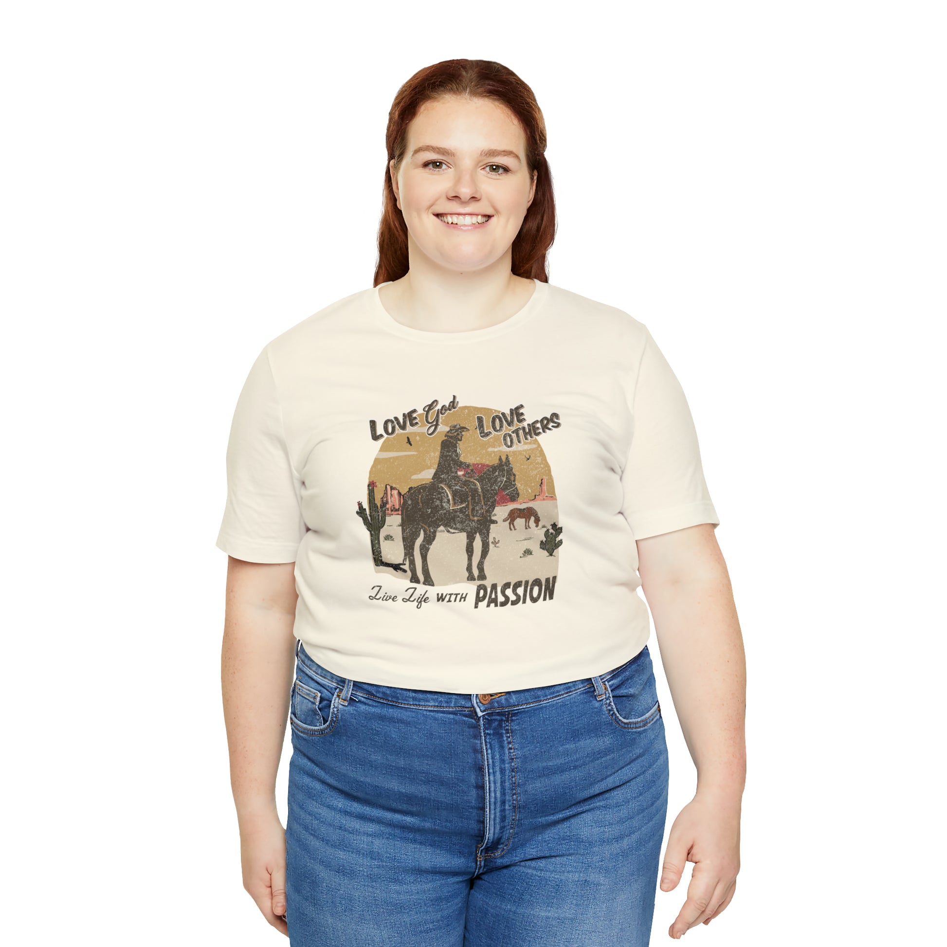 "Love God, Love Others, Live Life with Passion" Unisex Jersey Short Sleeve Tee