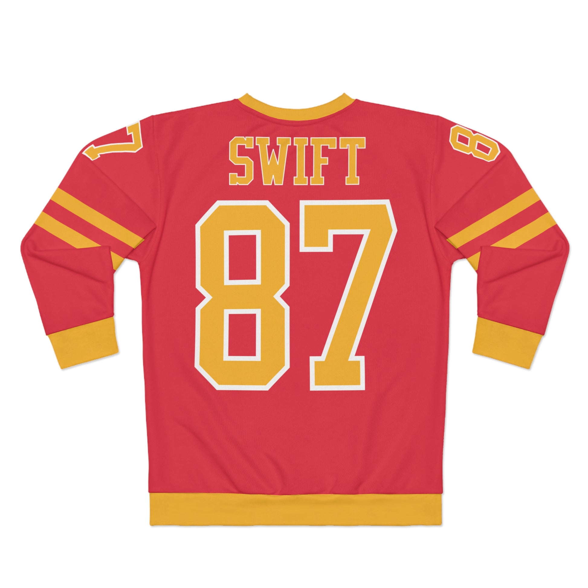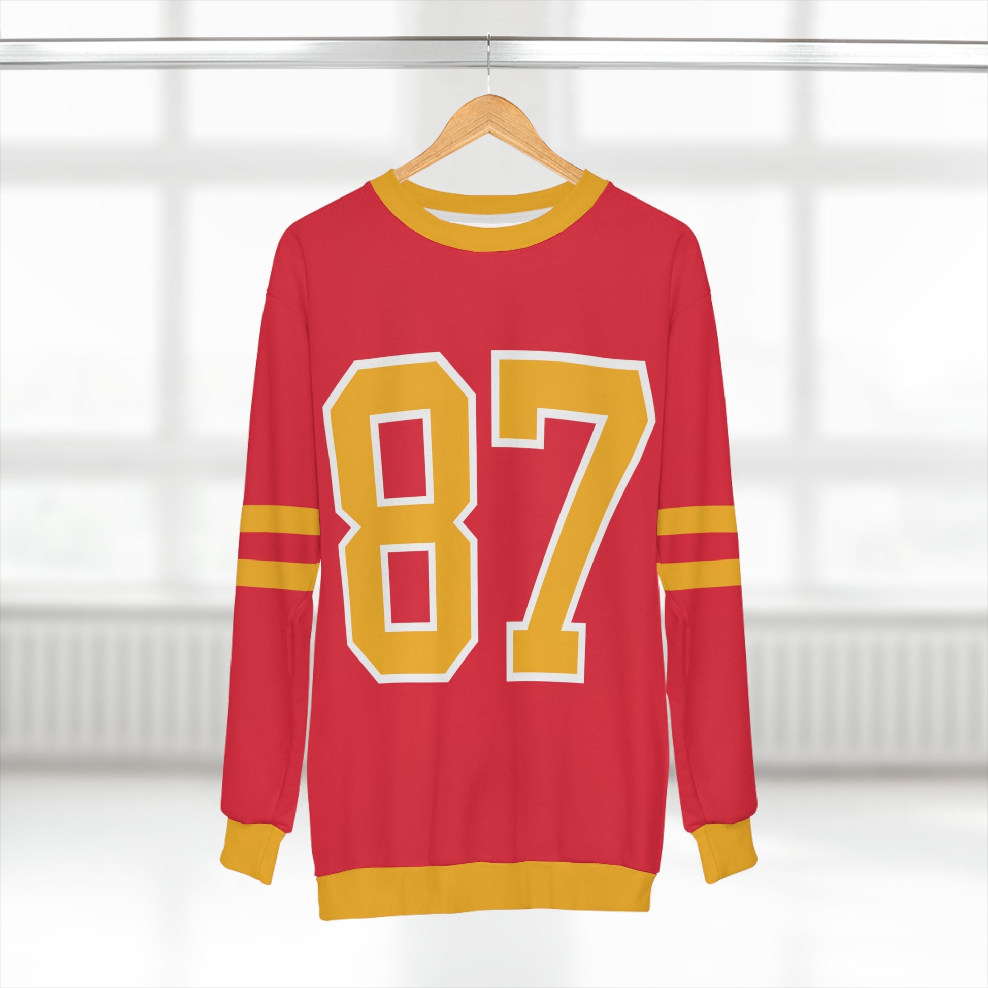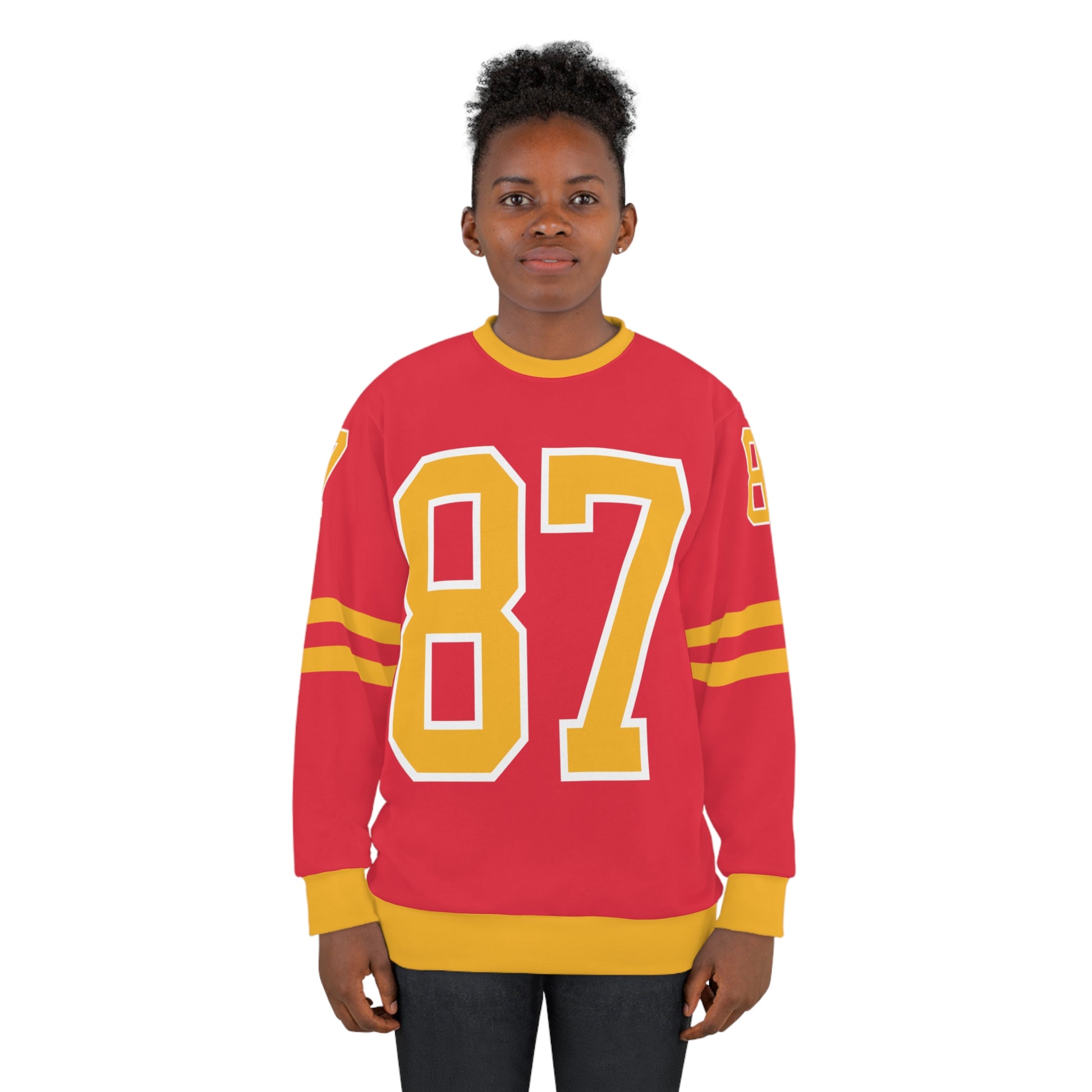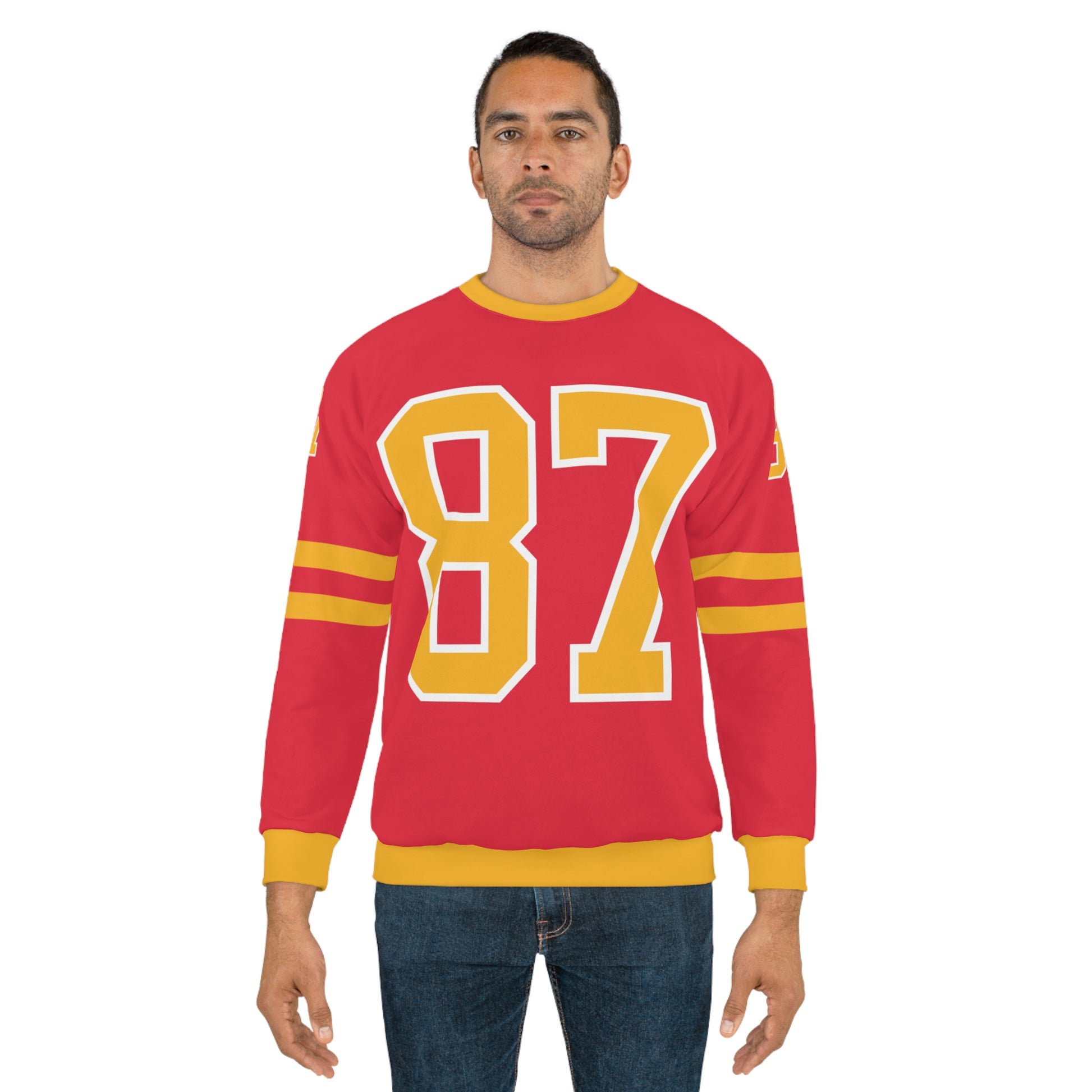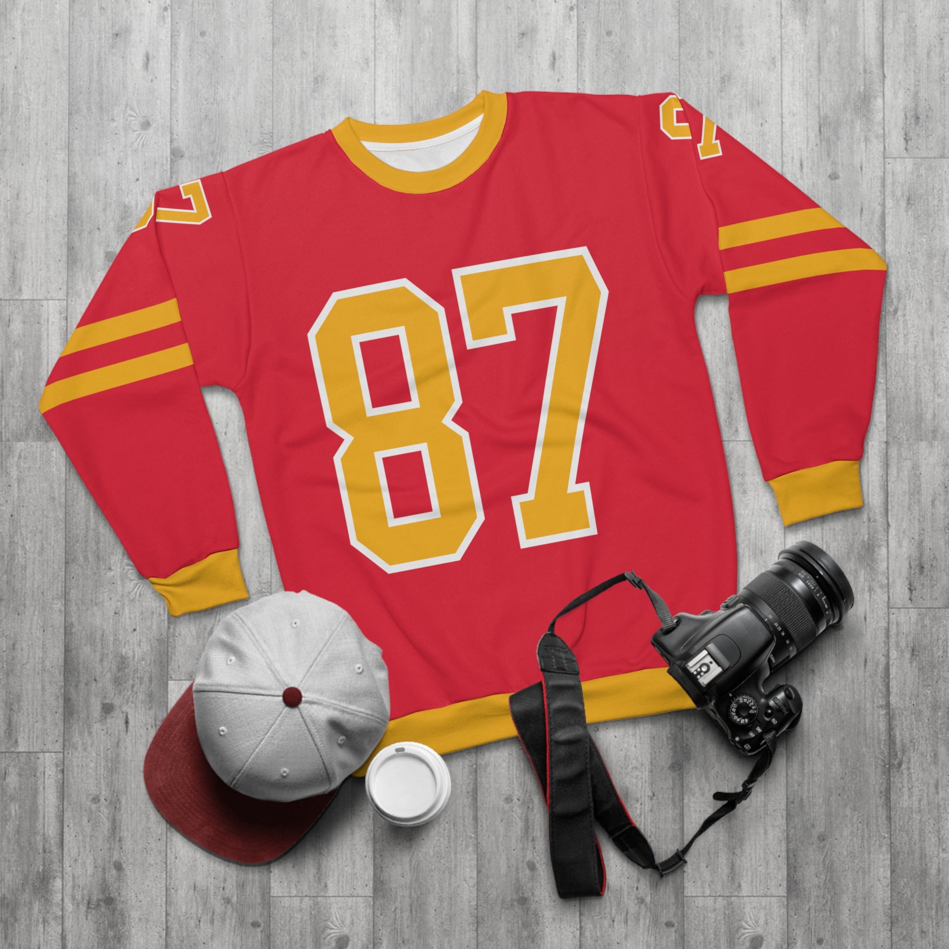 I love Kansas City! I love Football! KC Swift Shirts! Share your love of football, Kelce and Swift. 87 Football Shirt! Travis and Taylor Shirts! This all-over print crewneck sweatshirt is the perfect example of cool. With quality all-over printing capabilities, you won’t be worried about white lines at the seams. This fleece is custom cut and sewn, featuring a crew neck and set-in sleeves to keep you warm.