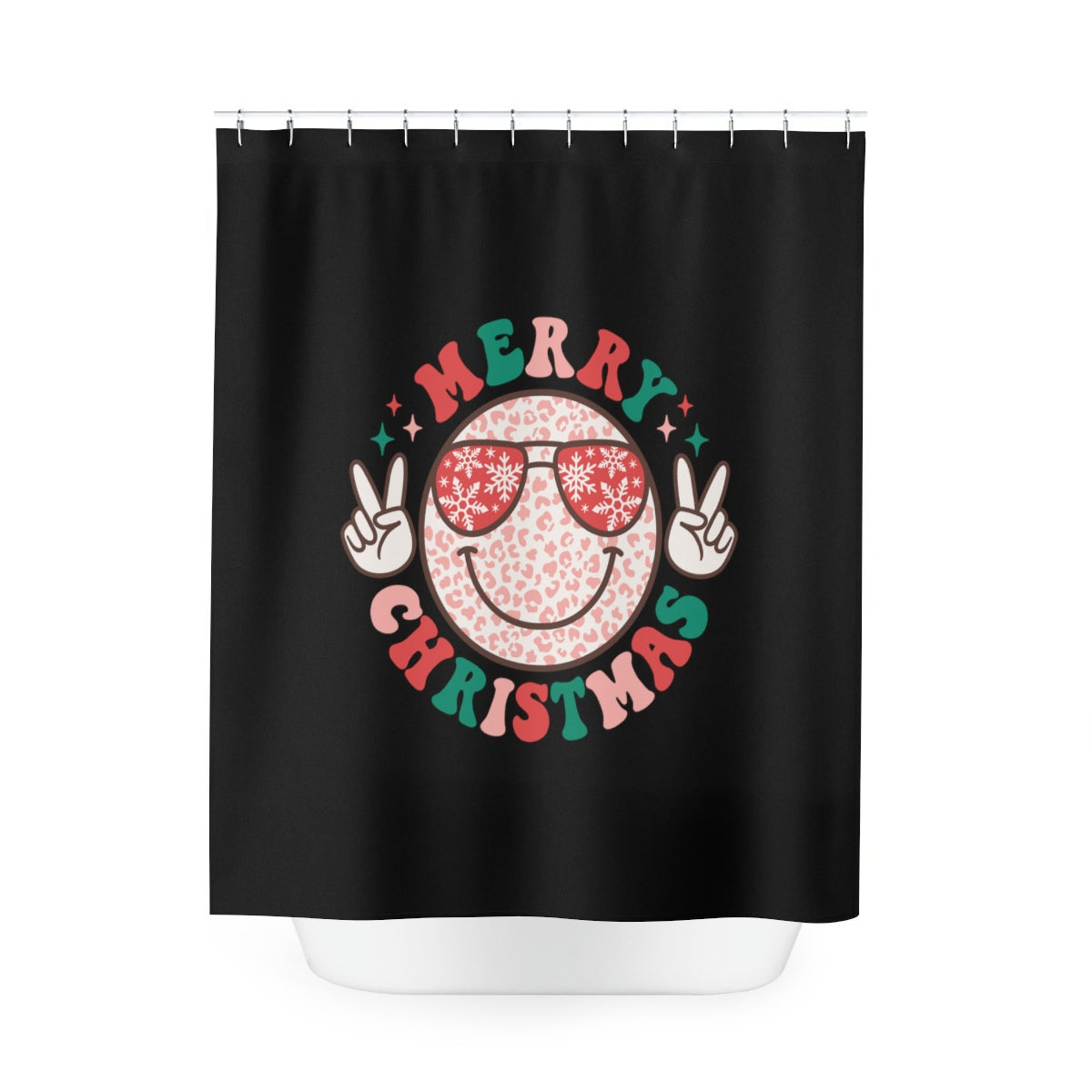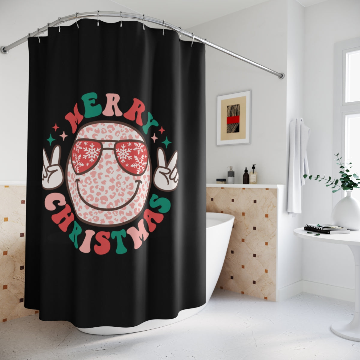 Merry Christmas Colorful Smiley Face with Peace Sign Polyester Shower Curtain