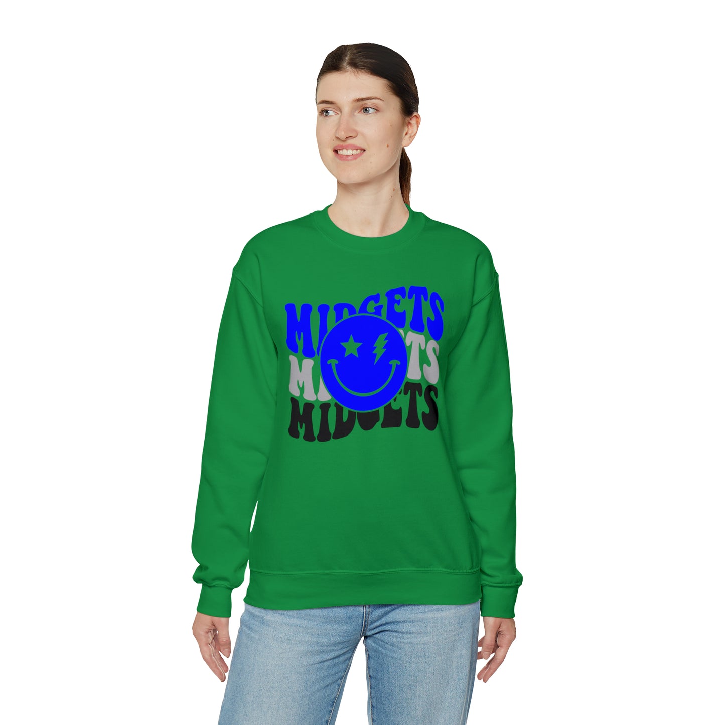 Show off your love for Freeburg Community High School with this Midget Lightning sweatshirt design. Midget Spirit Gear for life. Ideal for any situation, a unisex heavy blend crewneck sweatshirt is pure comfort. These garments are made from polyester and cotton. This combination helps designs come out looking fresh and beautiful. The collar is ribbed knit, so it retains its shape even after washing. There are no itchy side seams on these sweaters.