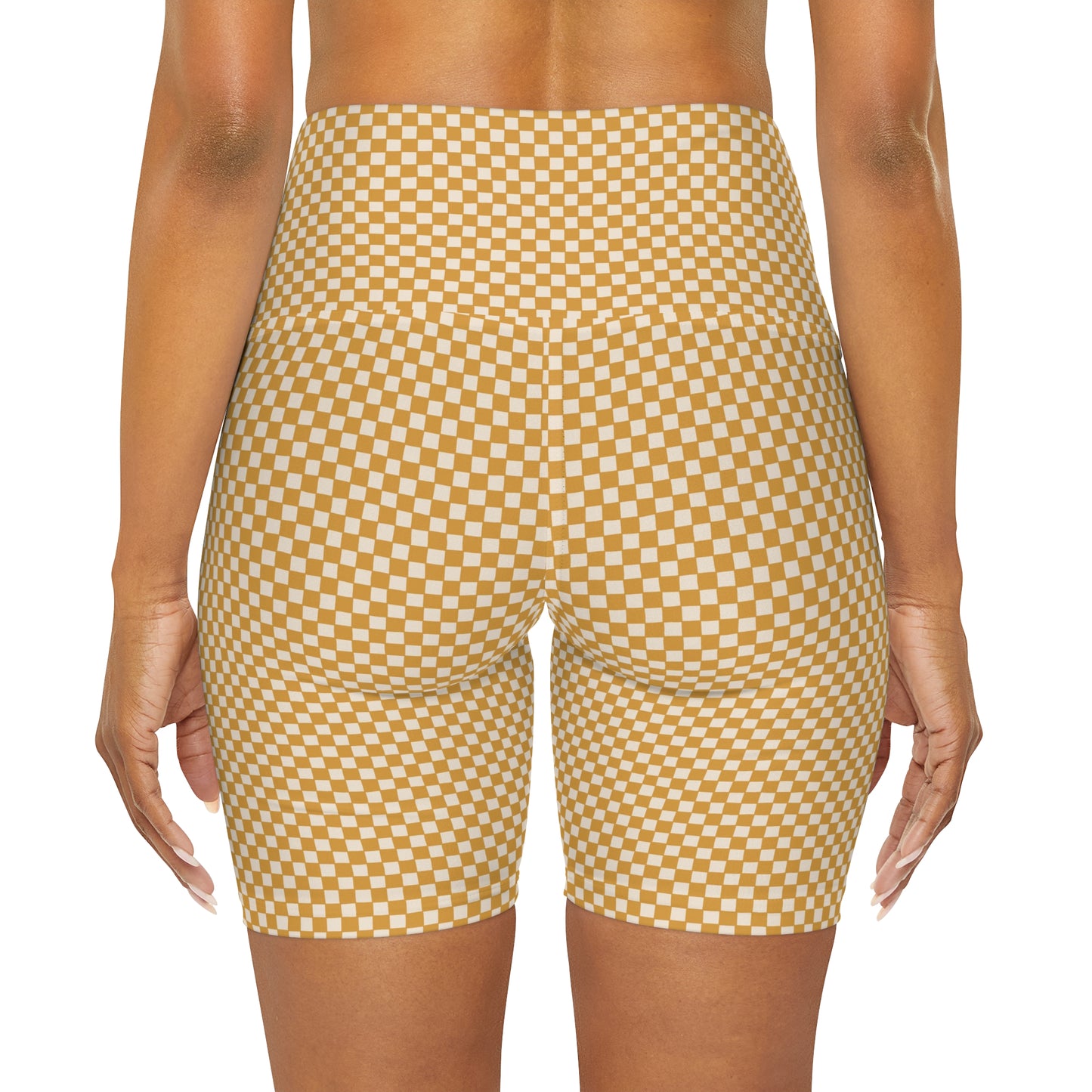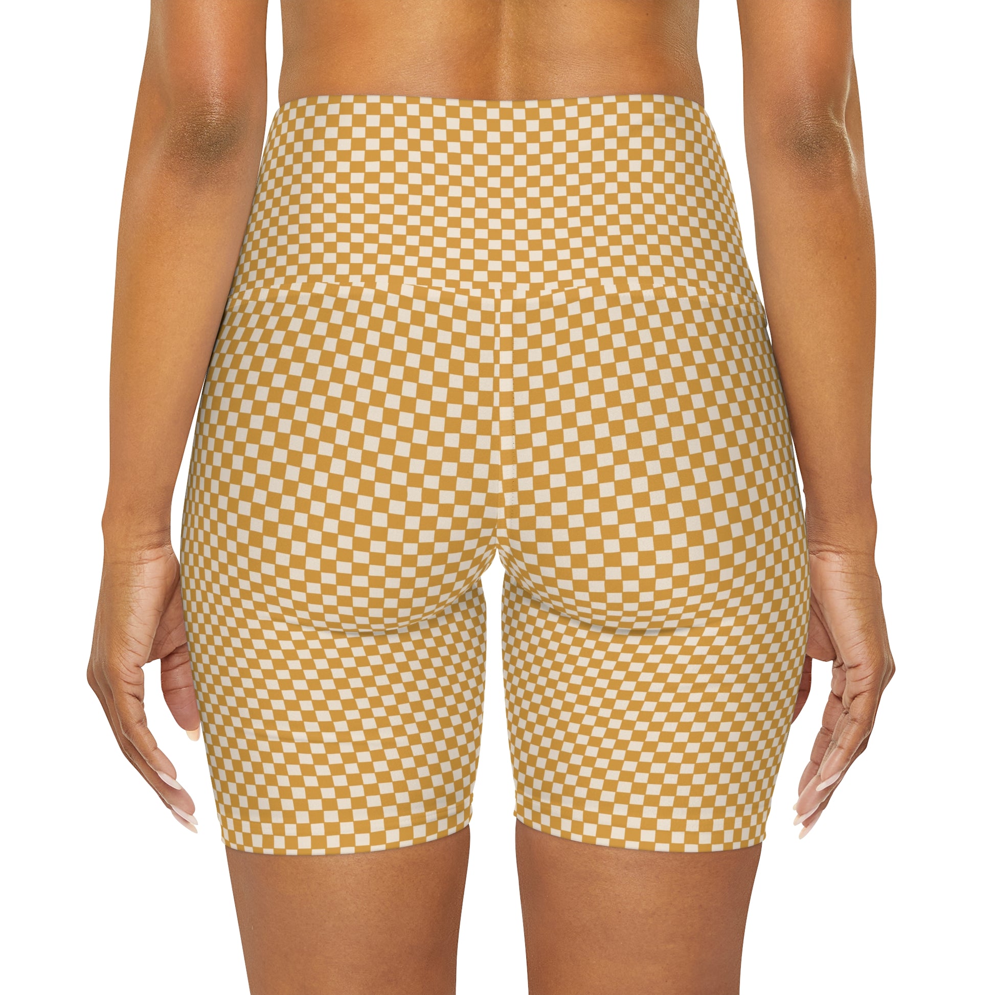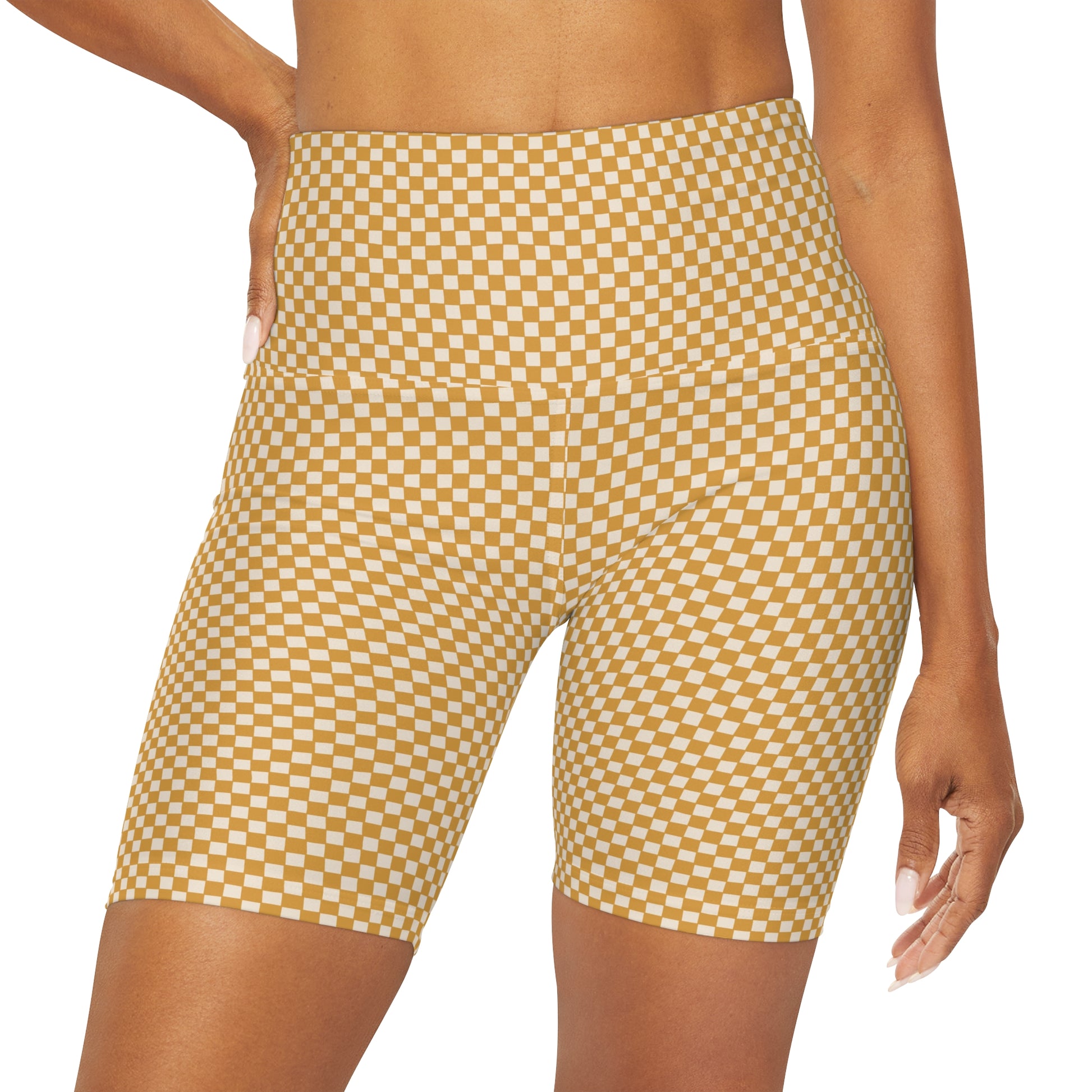 Mini Retro Checkerboard Patterned Yoga Shorts