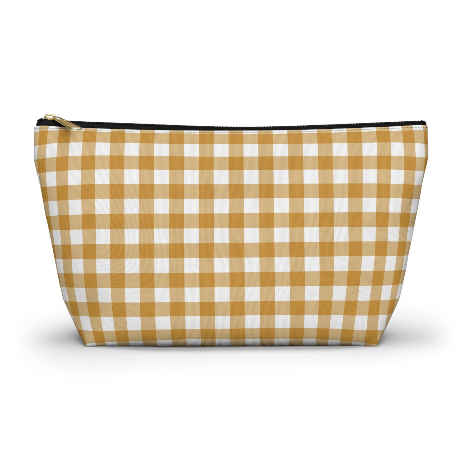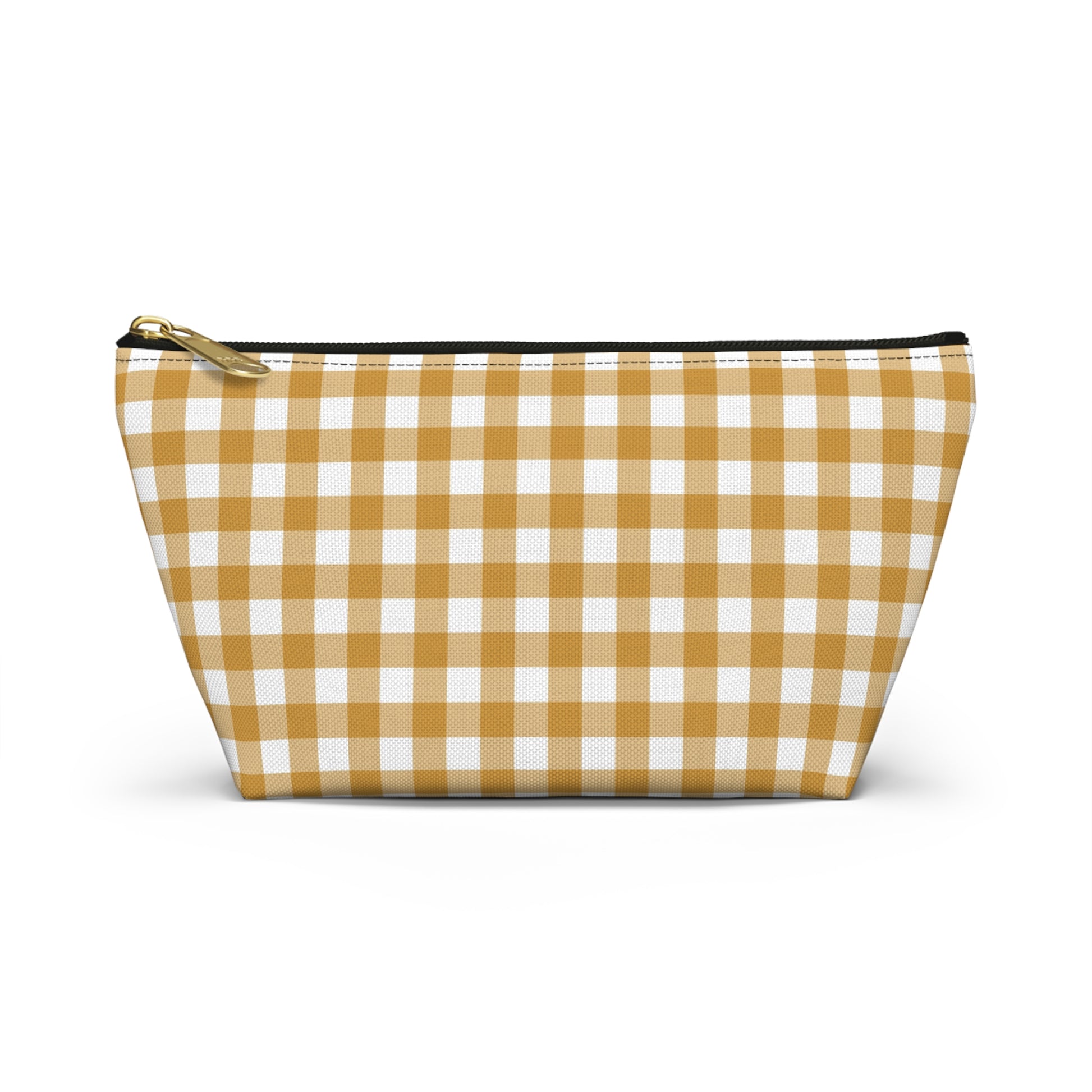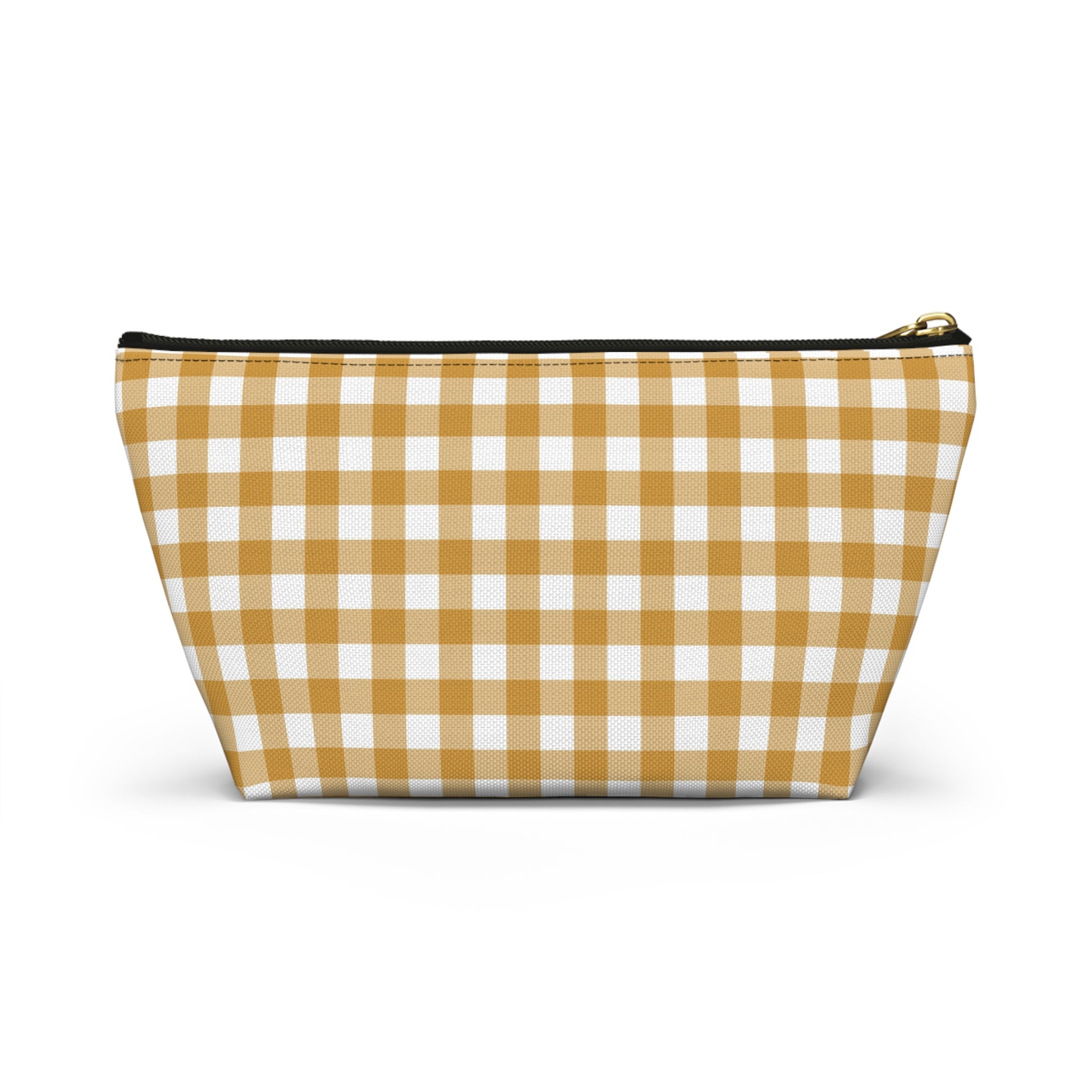 Mustard Gingham Print Design Accessory Pouch w T-bottom