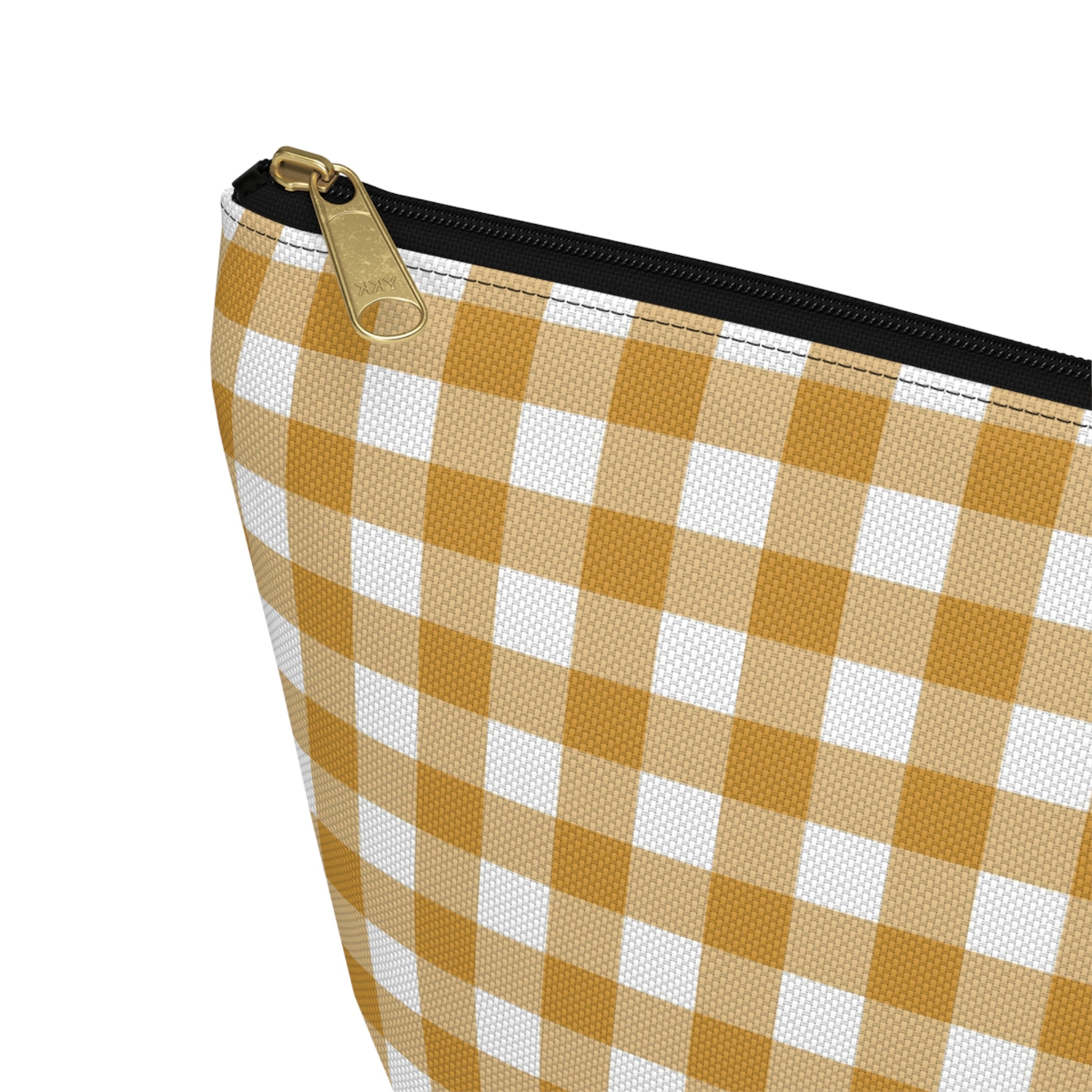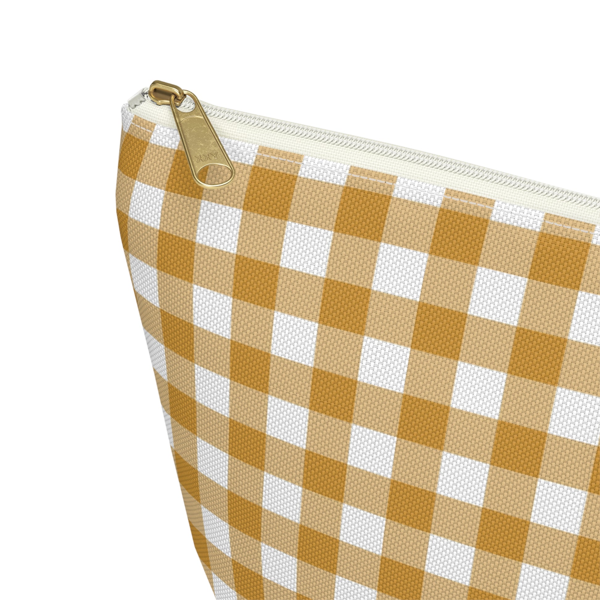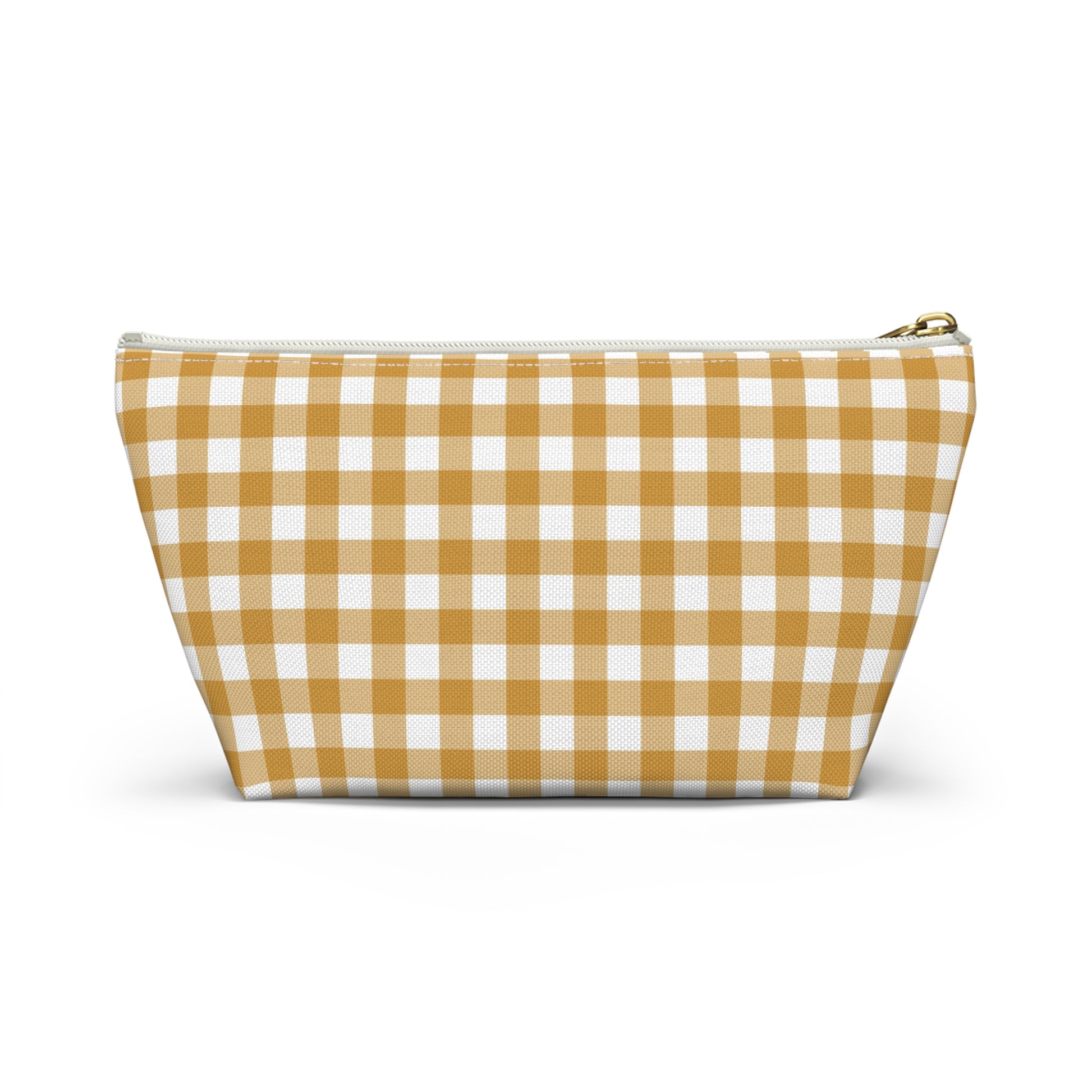 Mustard Gingham Print Design Accessory Pouch w T-bottom