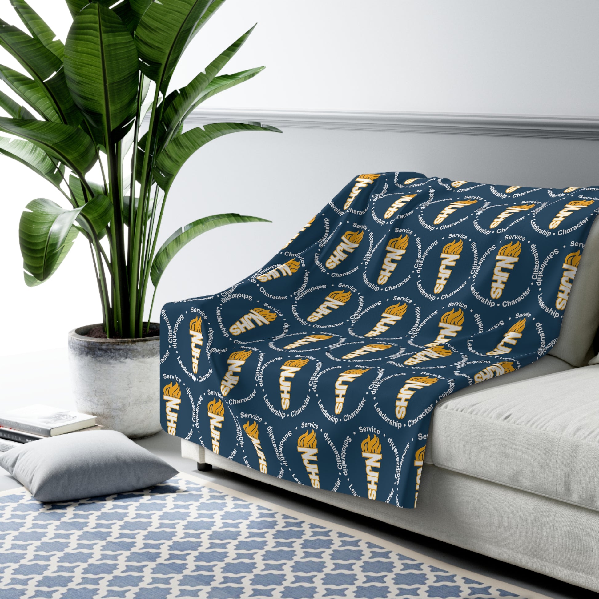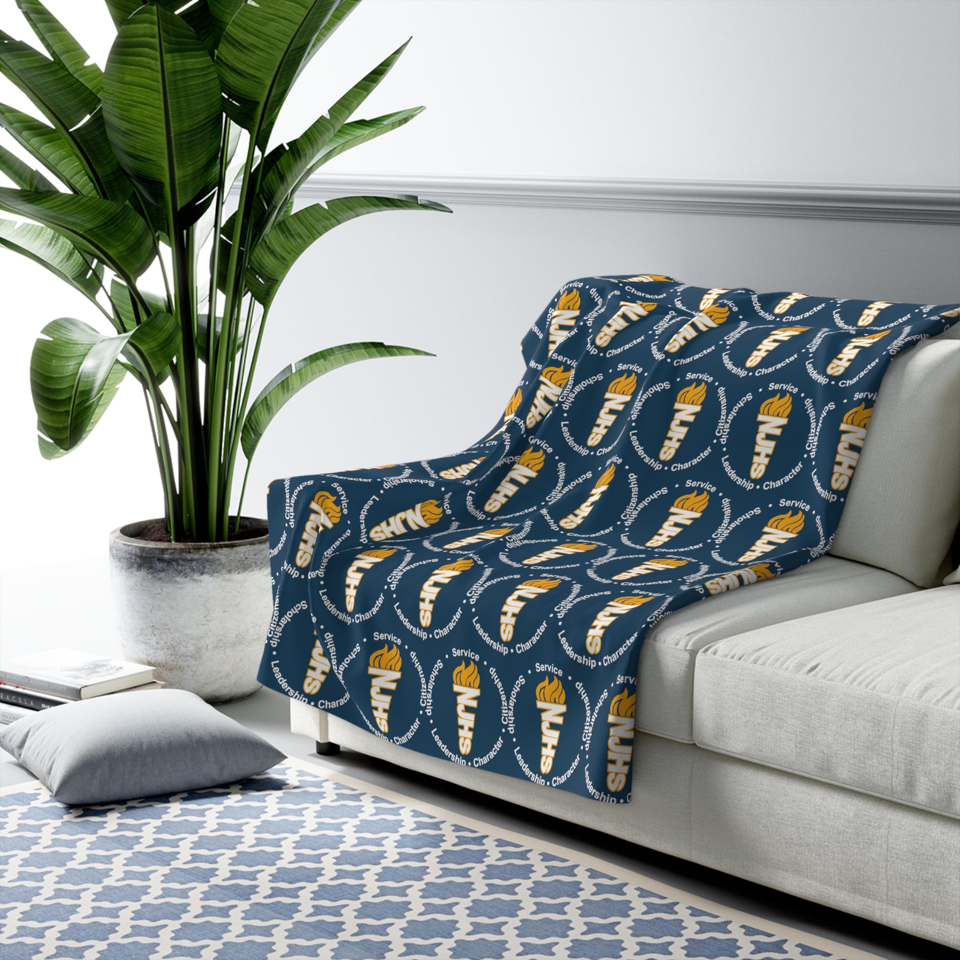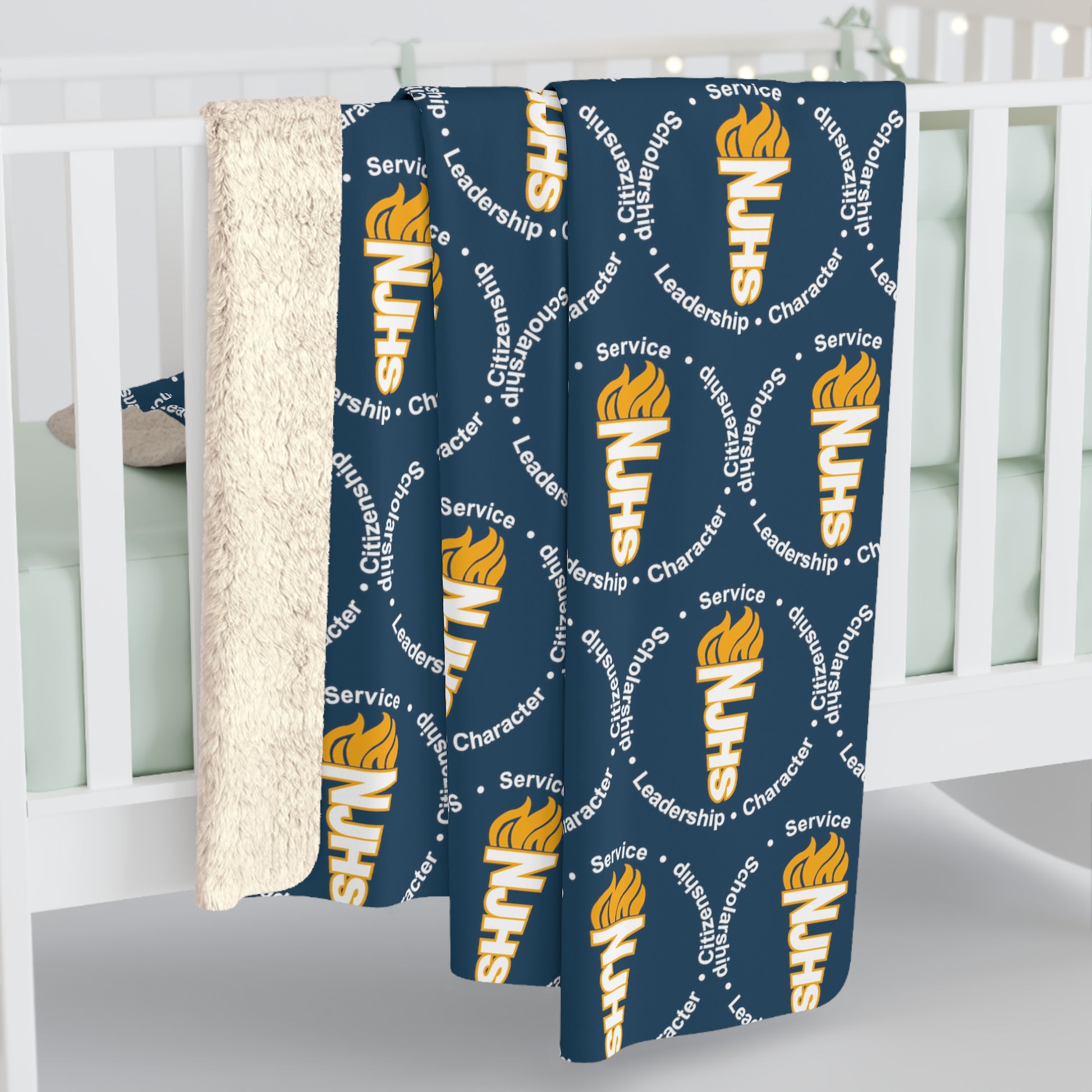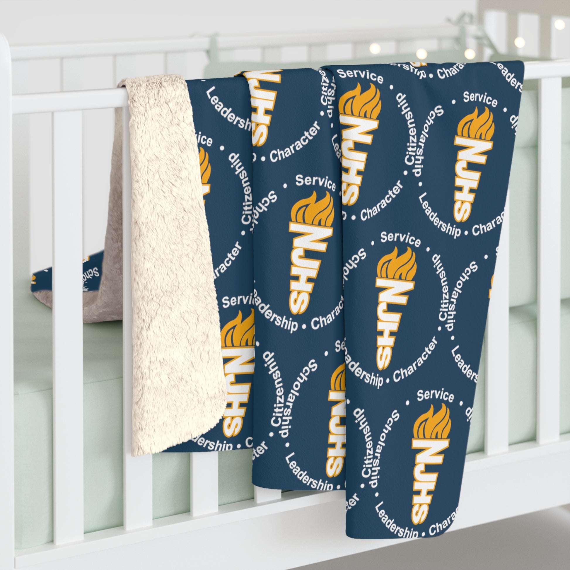 NJHS Torch Circular Character Citizenship Leadership Service Scholarship Sherpa Fleece Blanket - Slate Blue