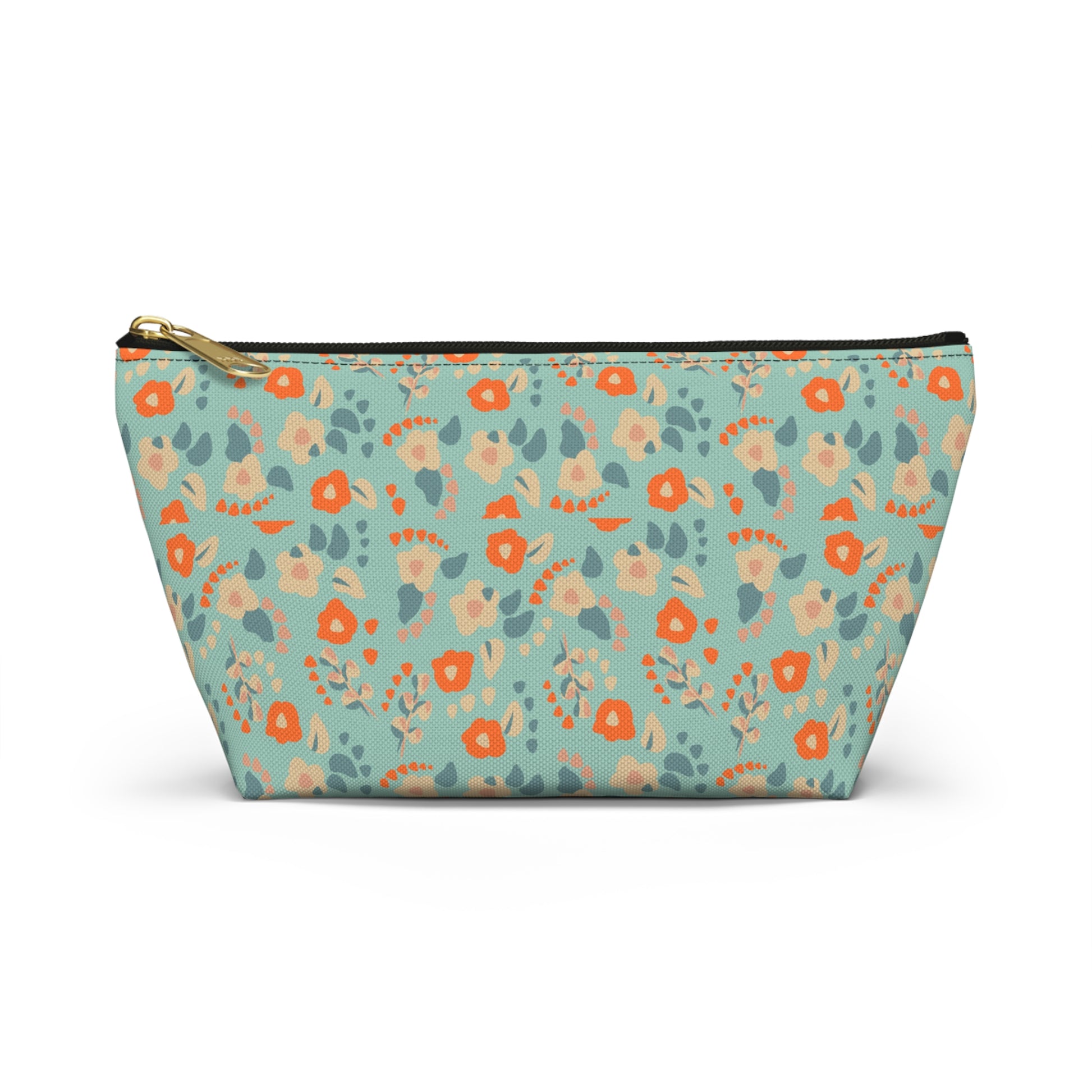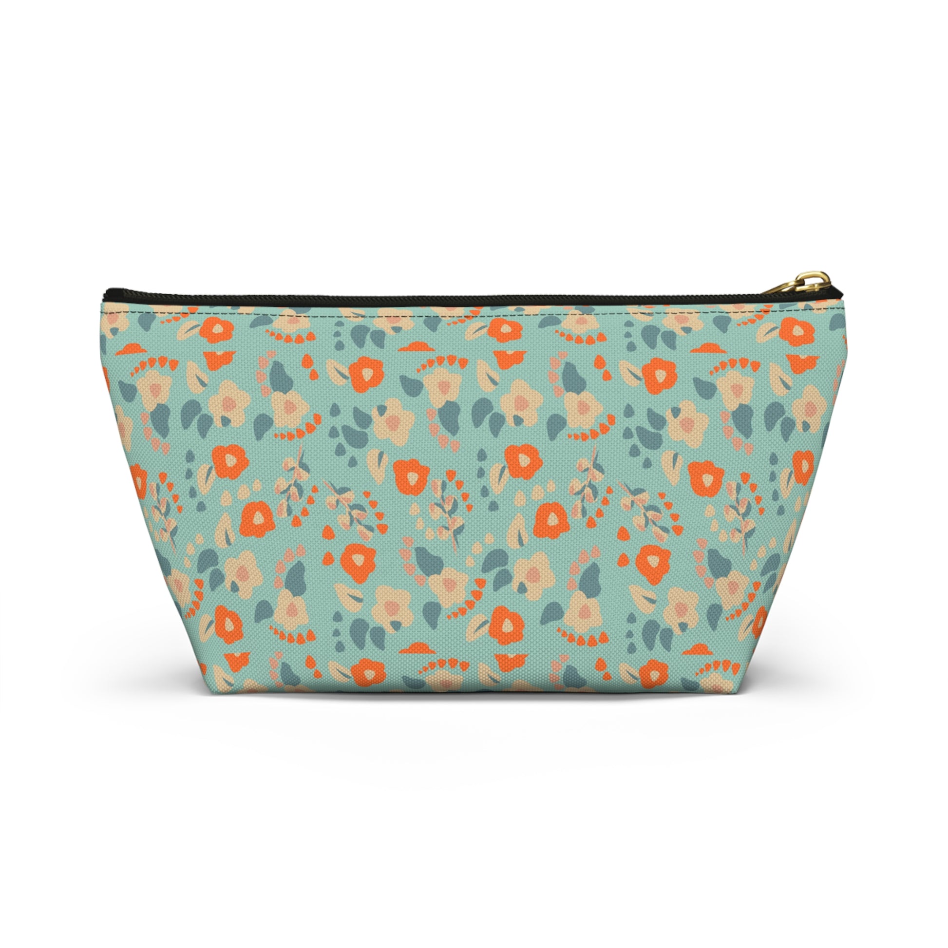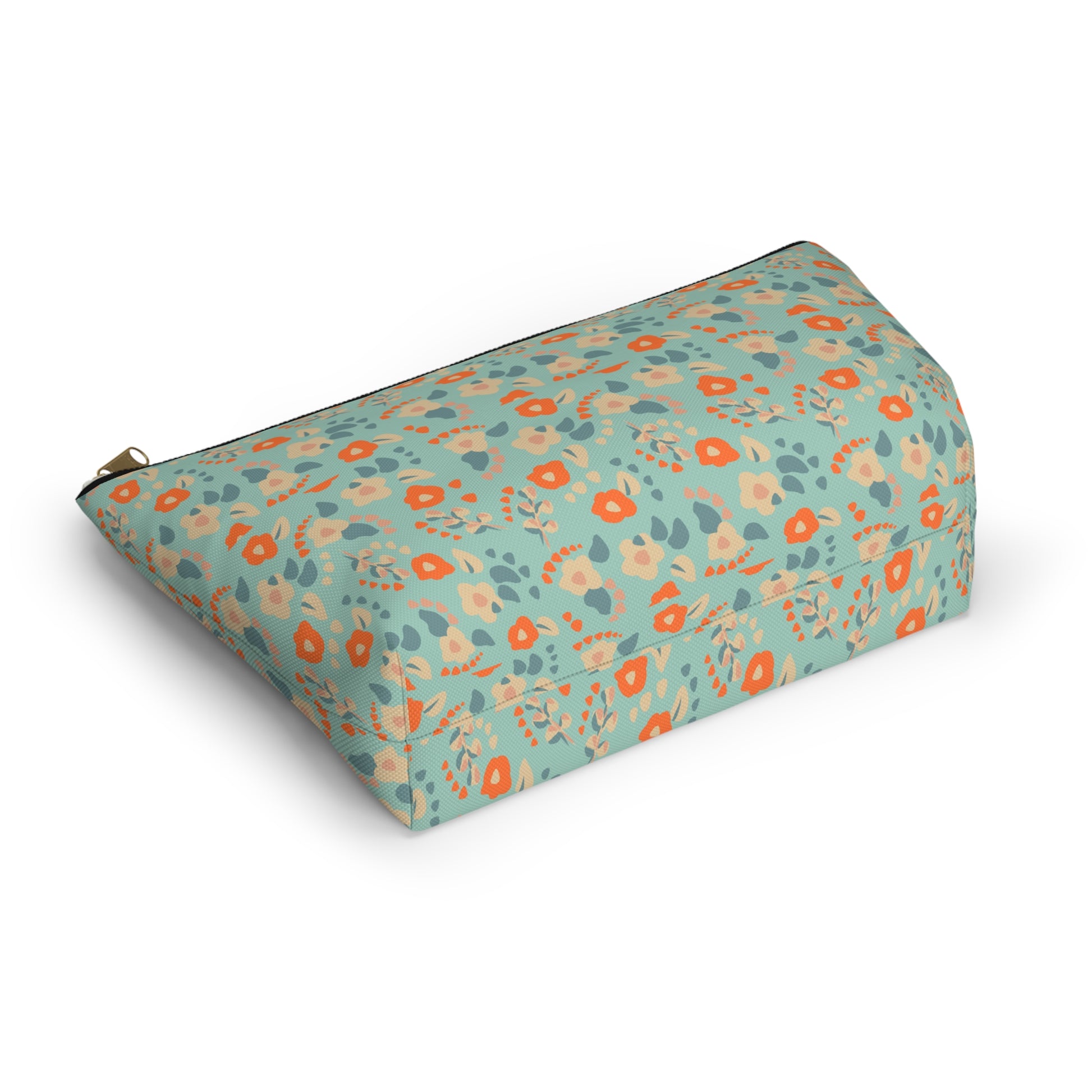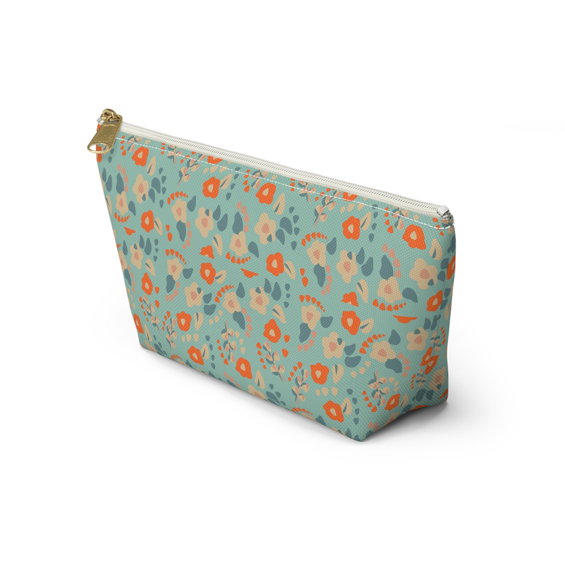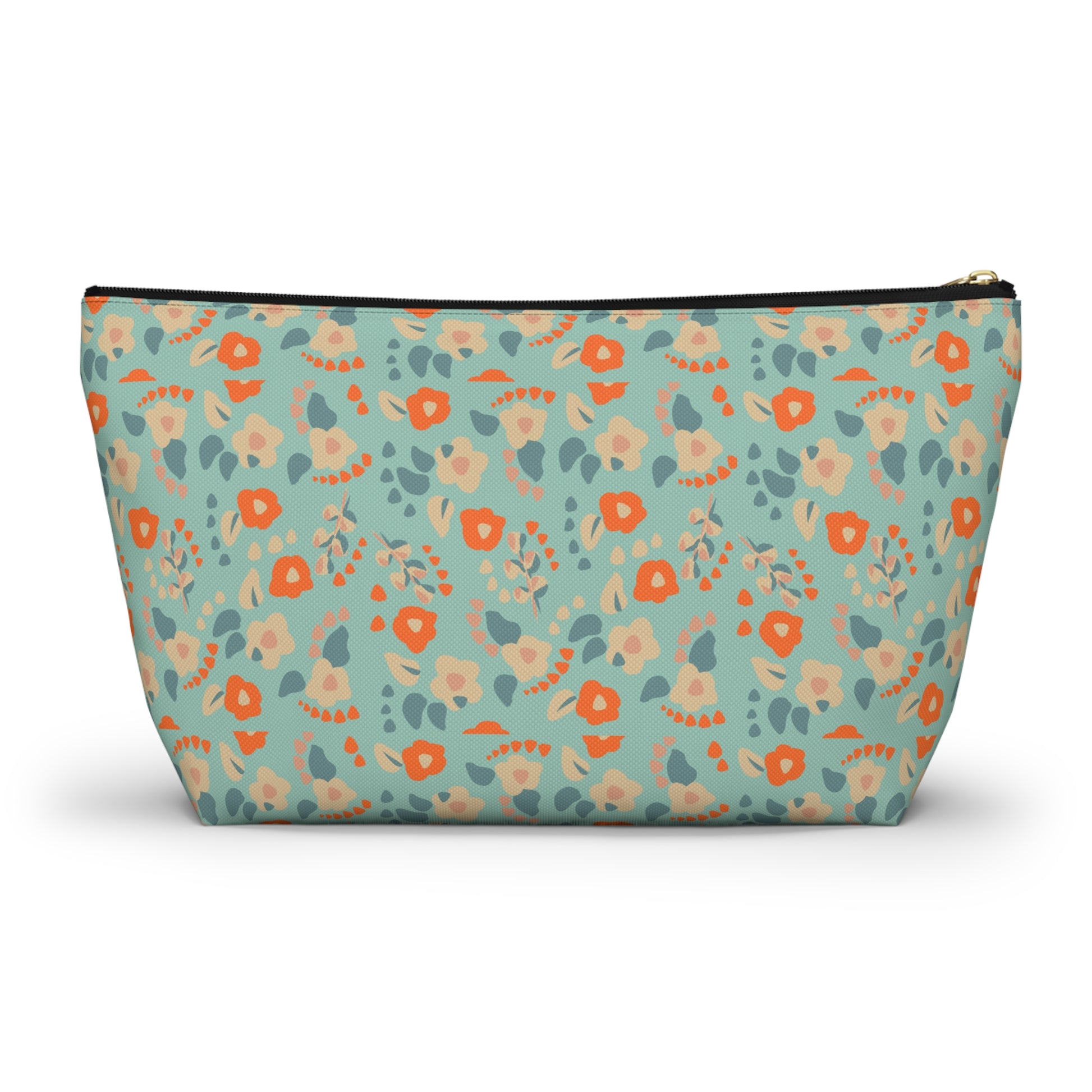 Orange Floral Print Design Accessory Pouch w T-bottom
