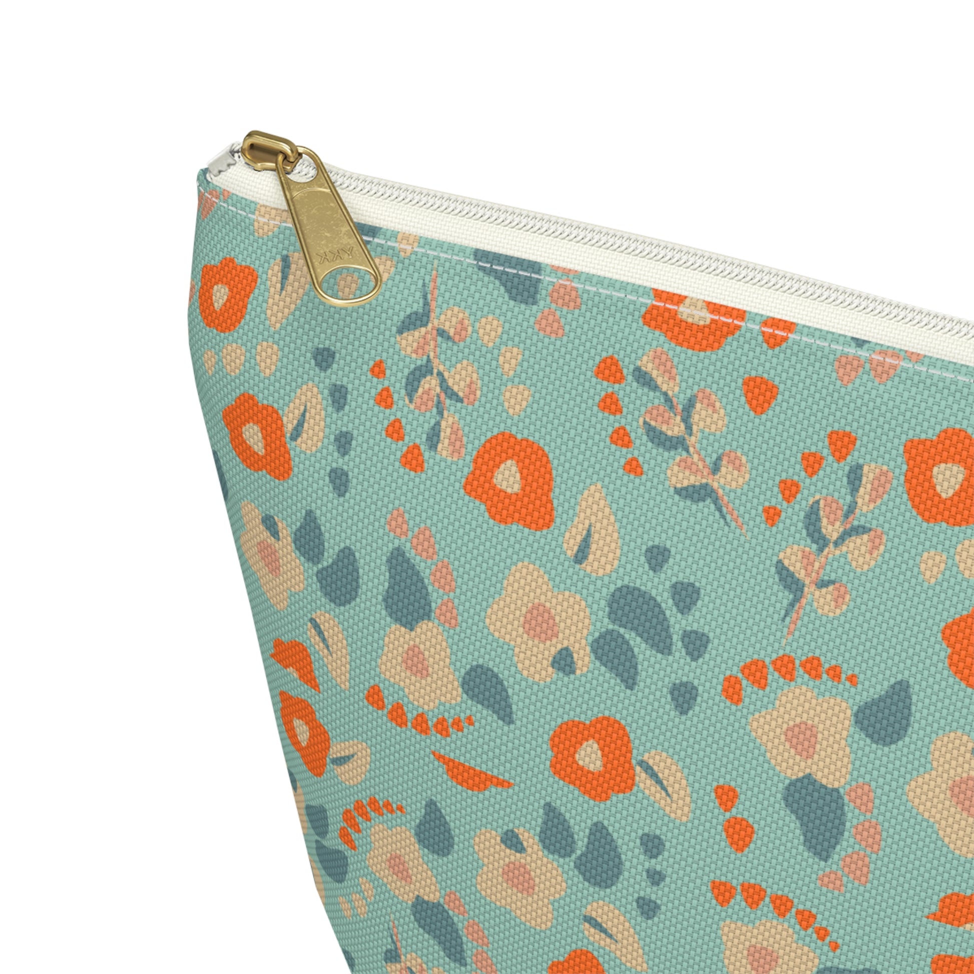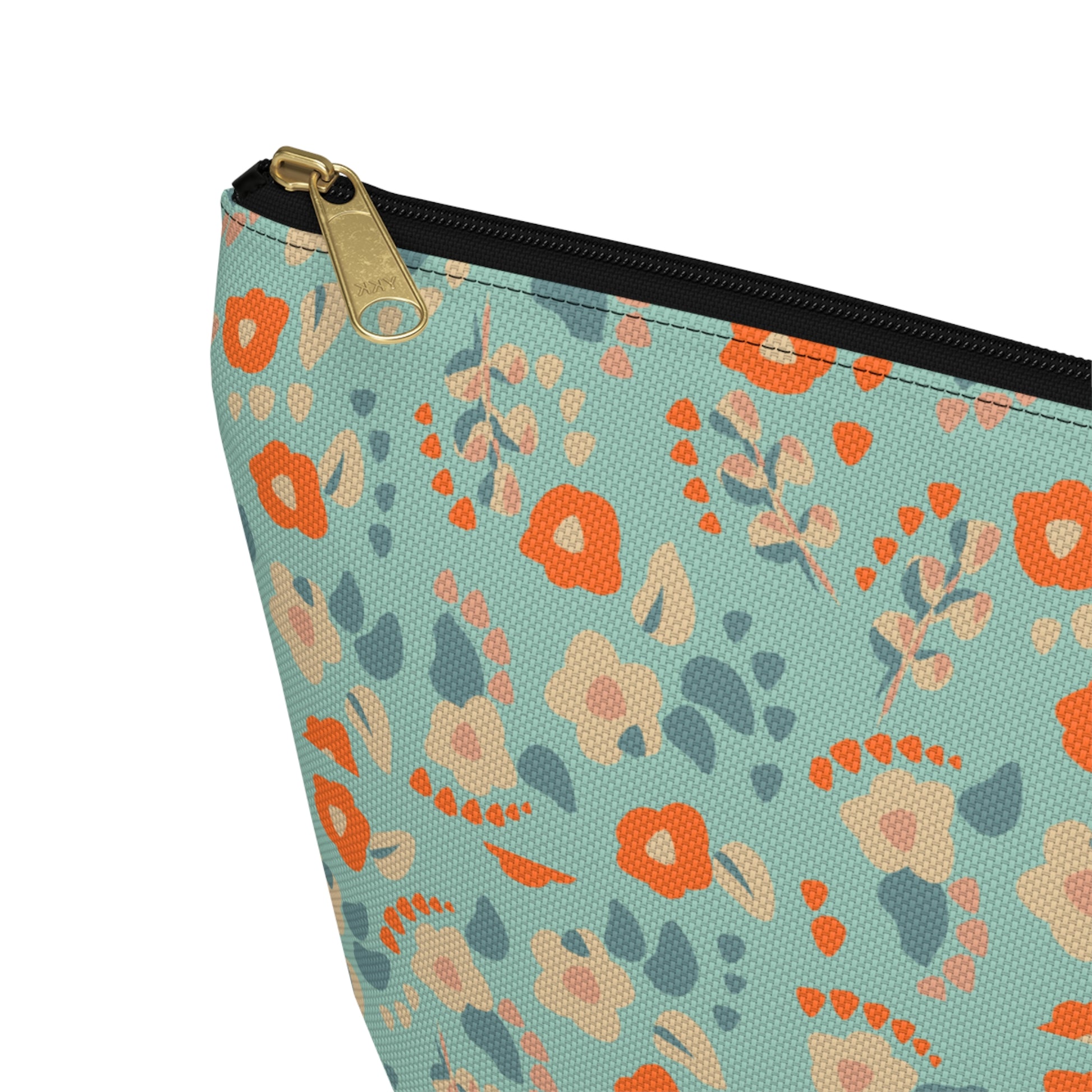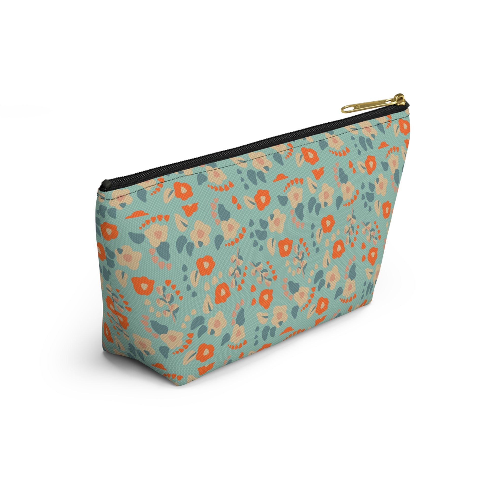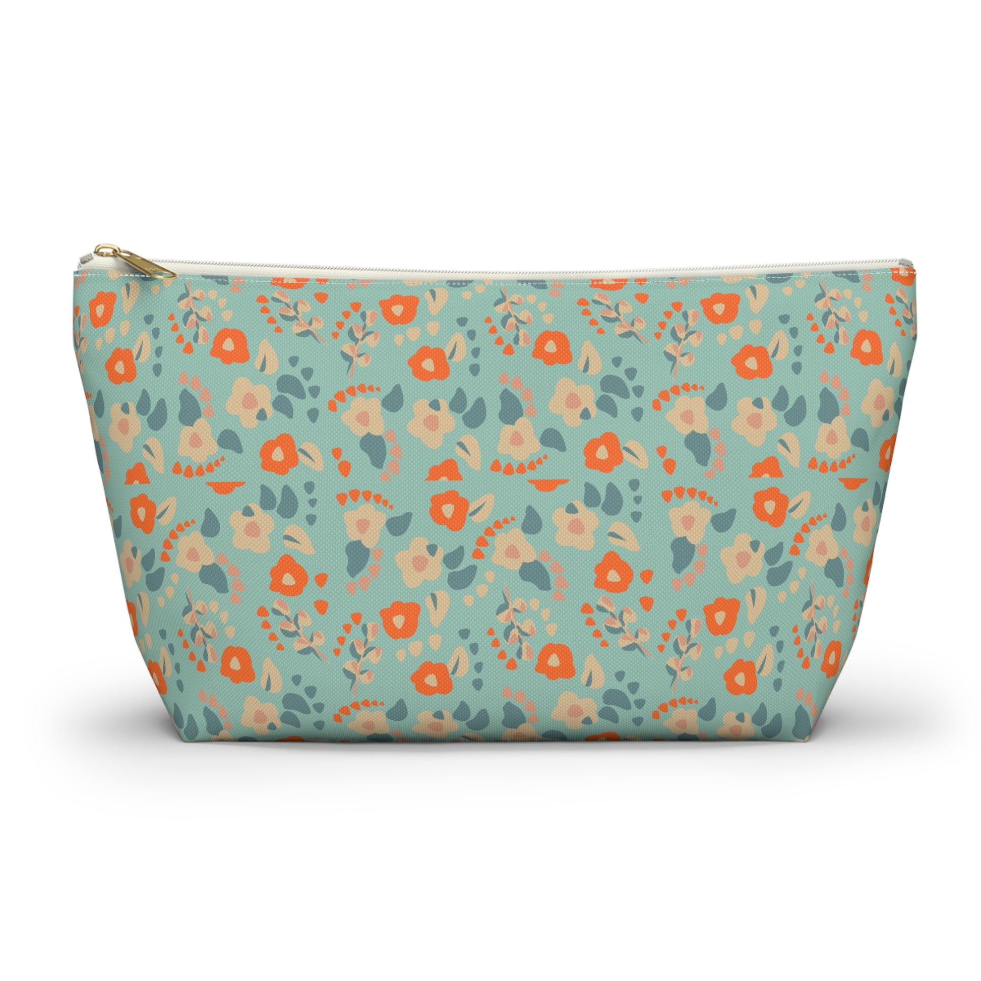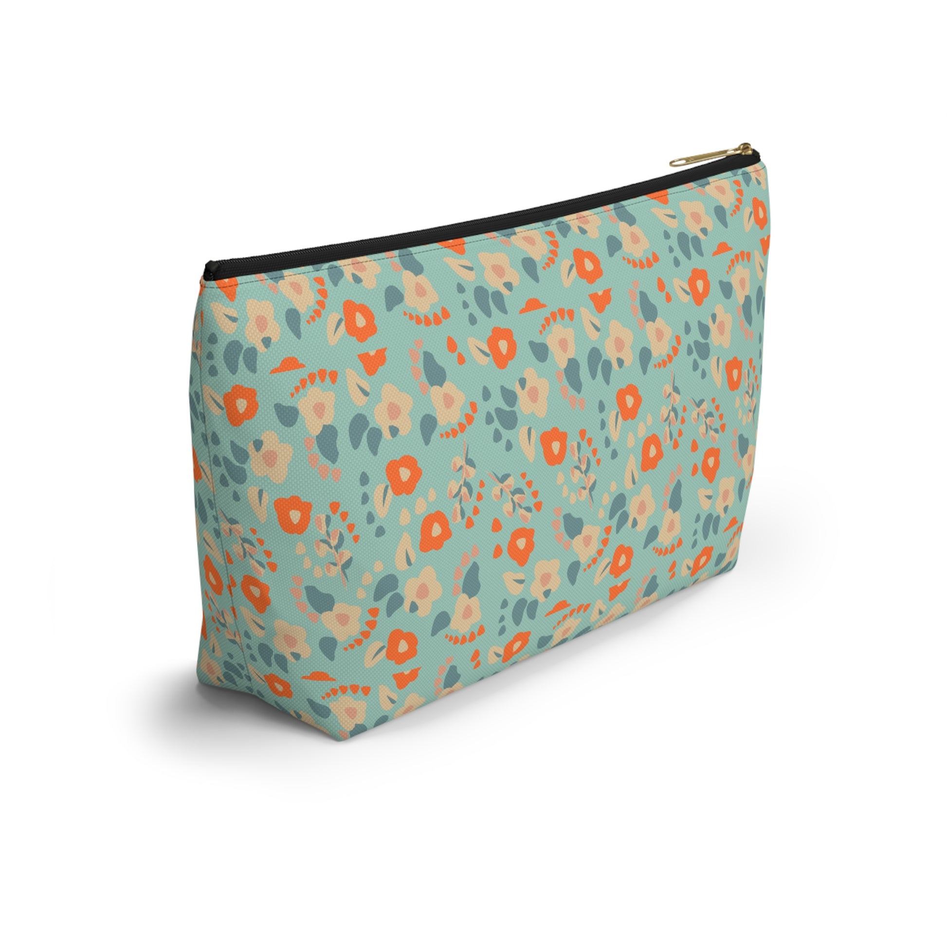 Orange Floral Print Design Accessory Pouch w T-bottom