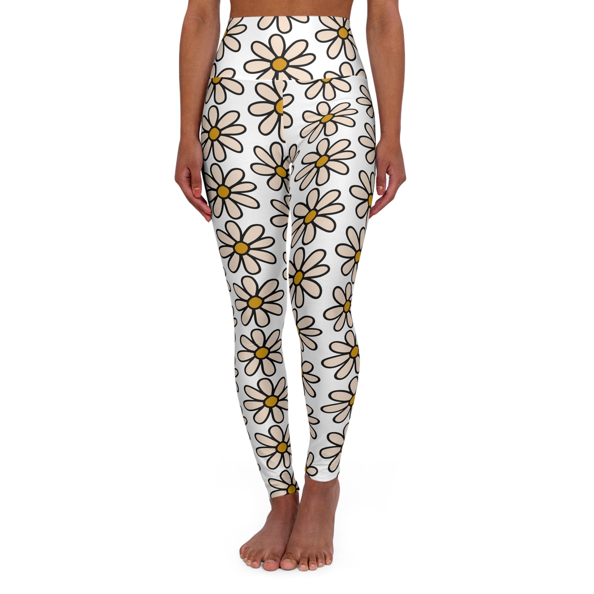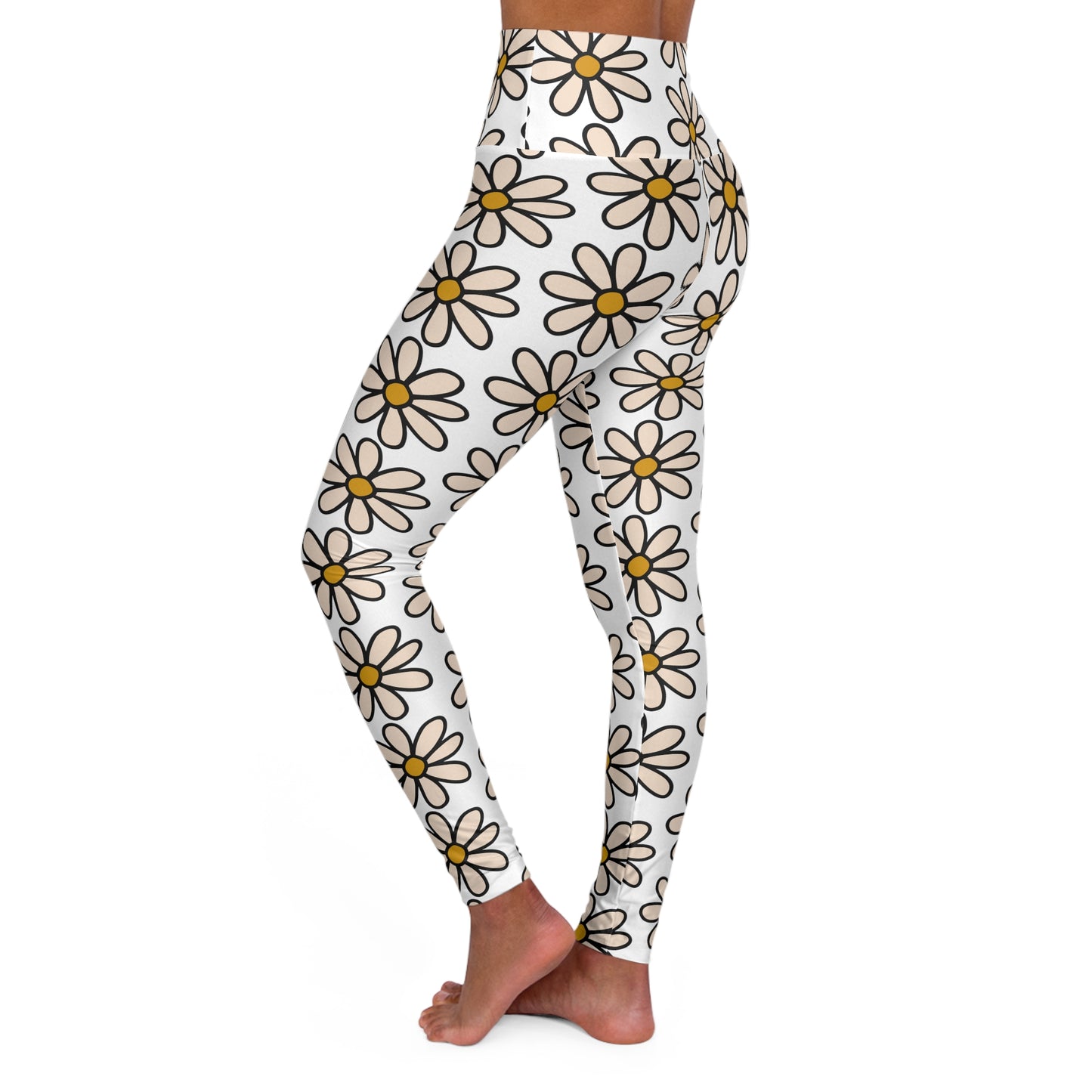 Peach Daisy Patterned Christian and Faith High Waisted Yoga Leggings