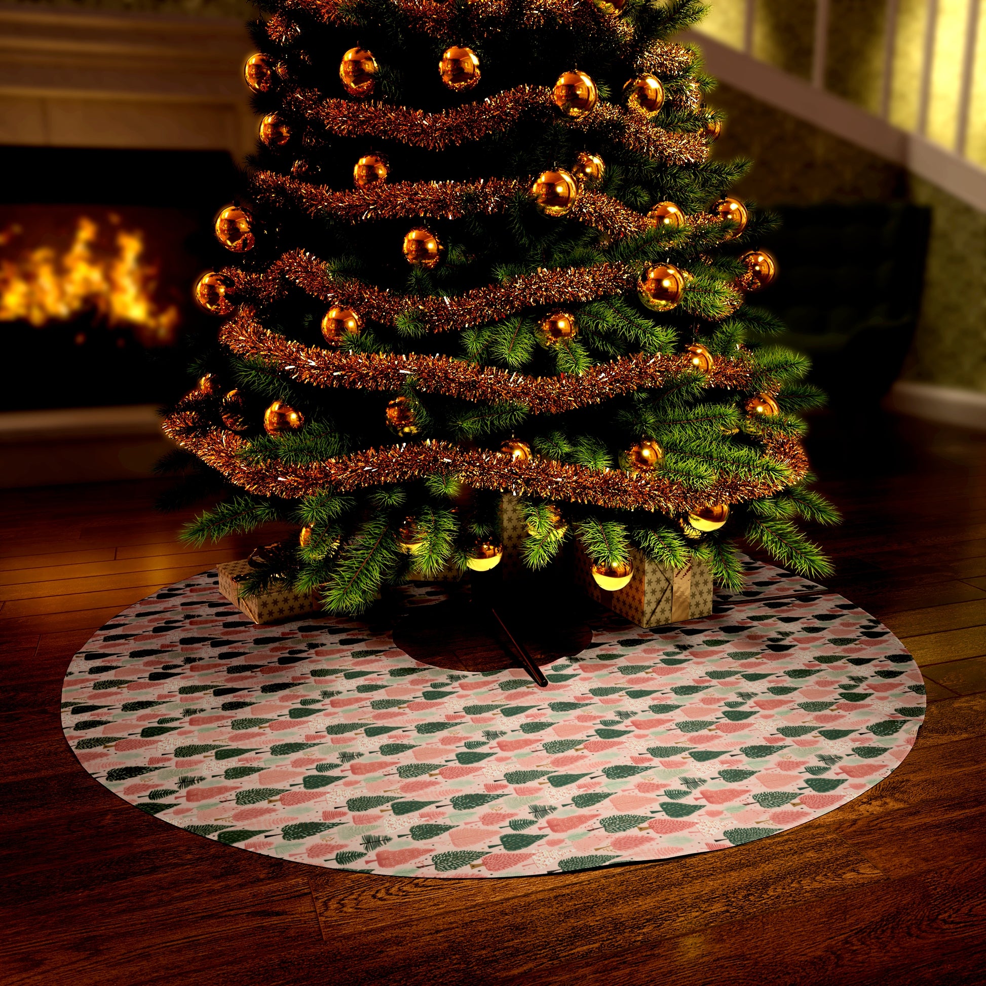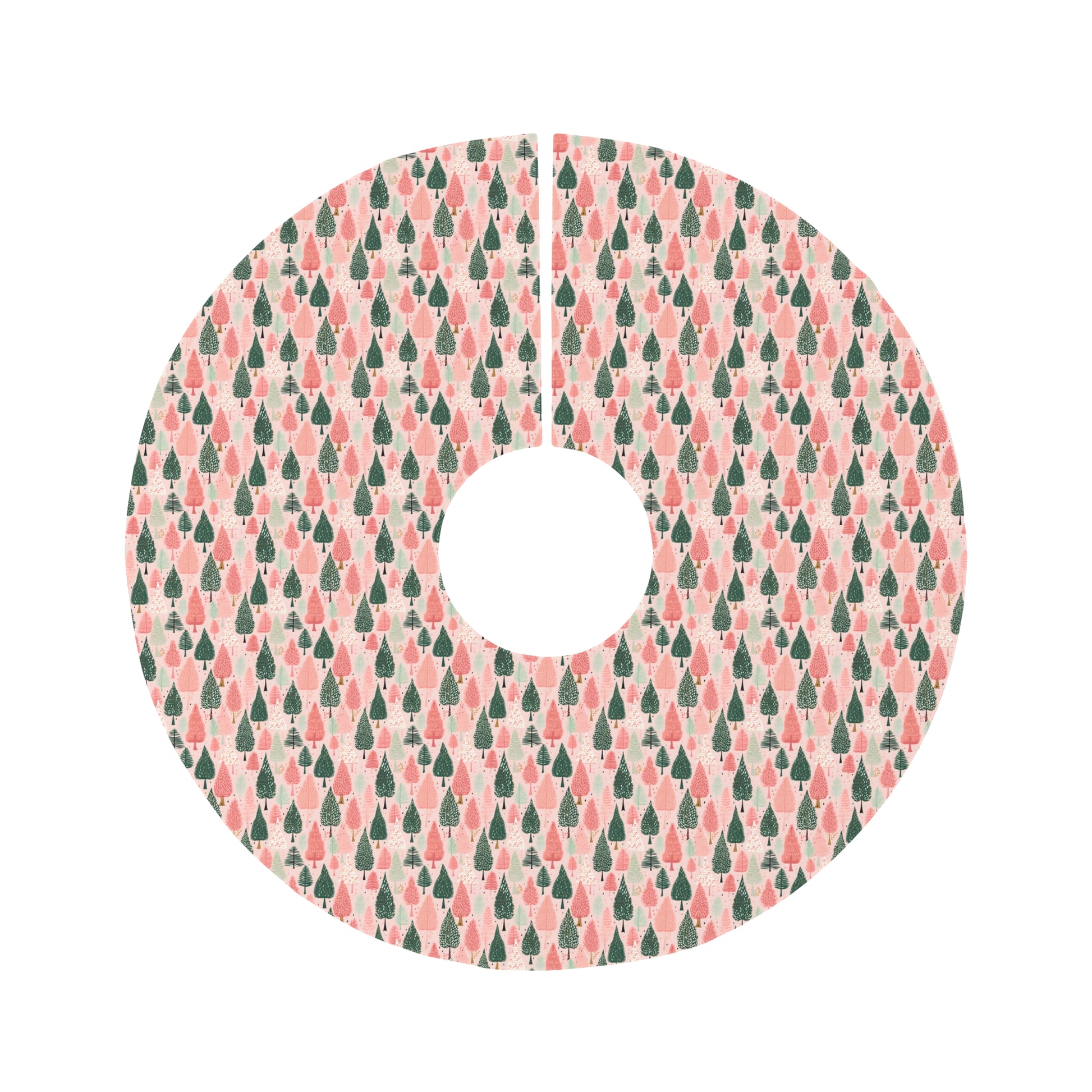 Pink and Green Christmas Tree Forest Round Tree Skirt