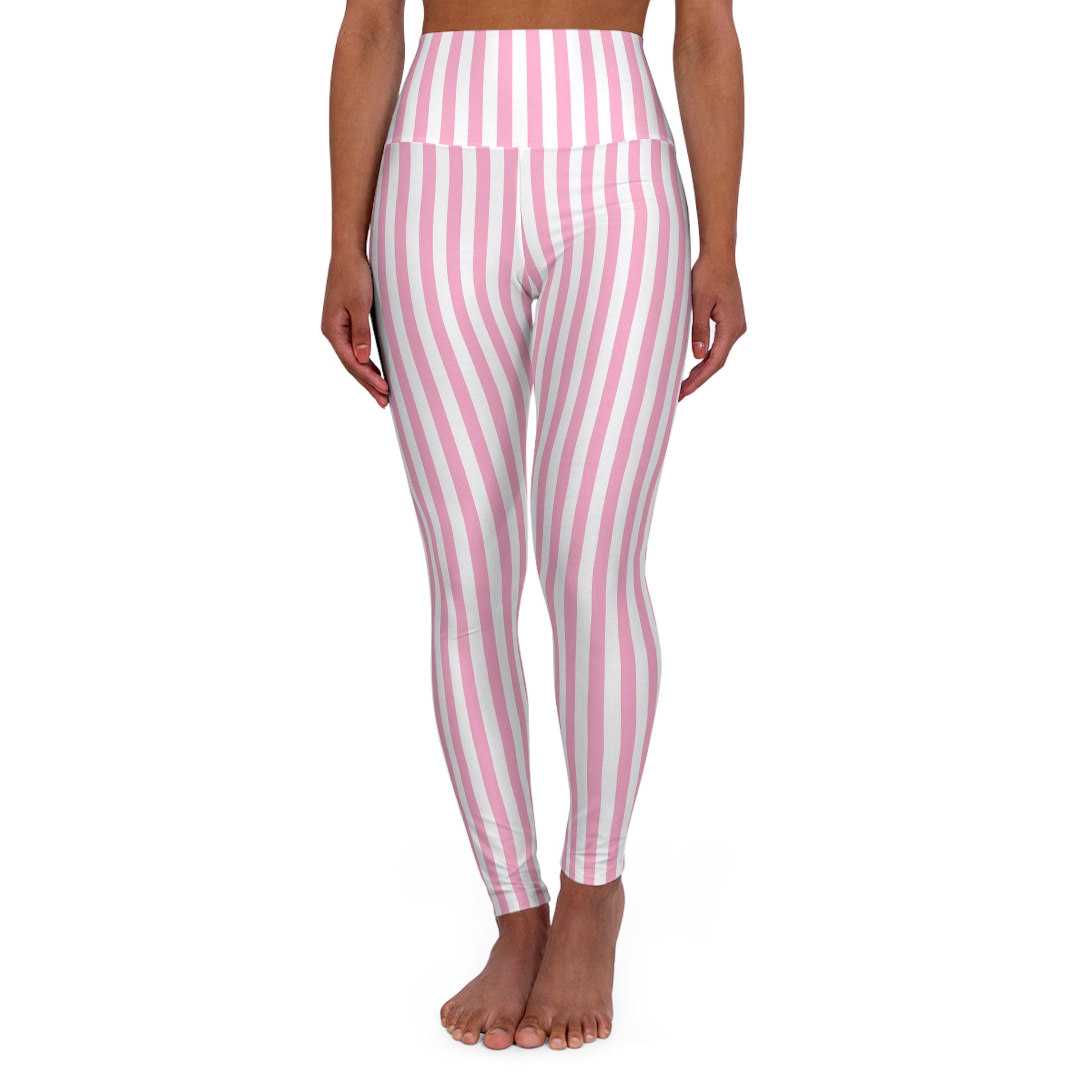 Pink Yoga Pants! Cute pink shorts! Barbie Craze! Pink Striped Clothes! These skinny fitting high-waisted yoga leggings will take you from workout to store run in comfort and style. They are fully customizable with an all-over print that adds an instant pop to any athleisure wardrobe. Note: Runs small, consider sizing up! .: 100% polyester .: Skinny fit .: Outside seam thread is color-matched to design .: White inside seam thread .: Double layer waistband .: NB! When stretched excessively, some of the undyed white underneath material may become visible at the seams or where sewn. .: Assembled in the USA from globally sourced parts