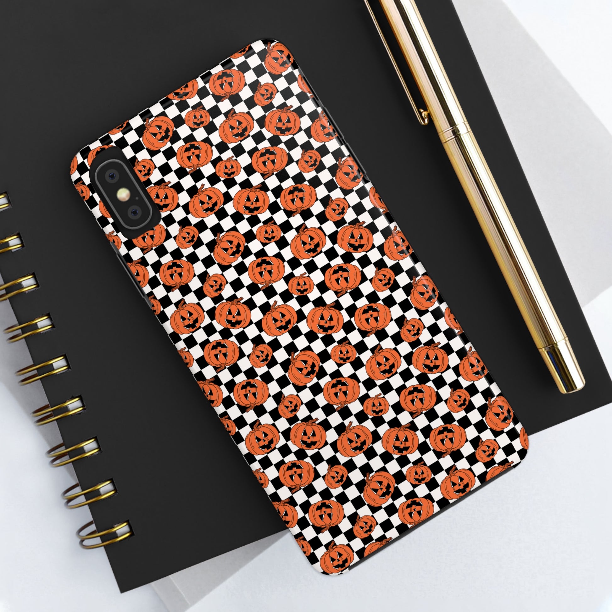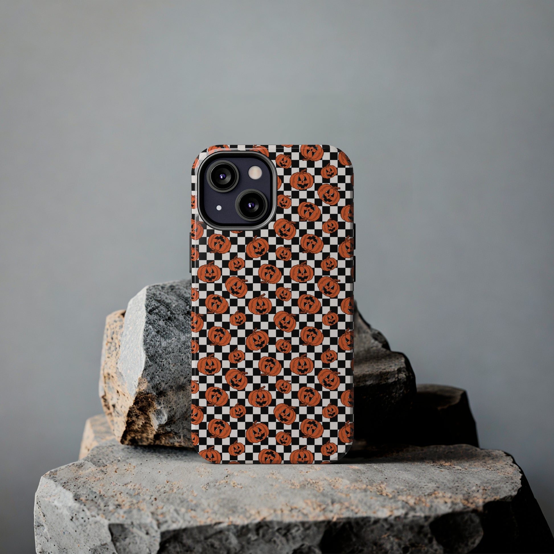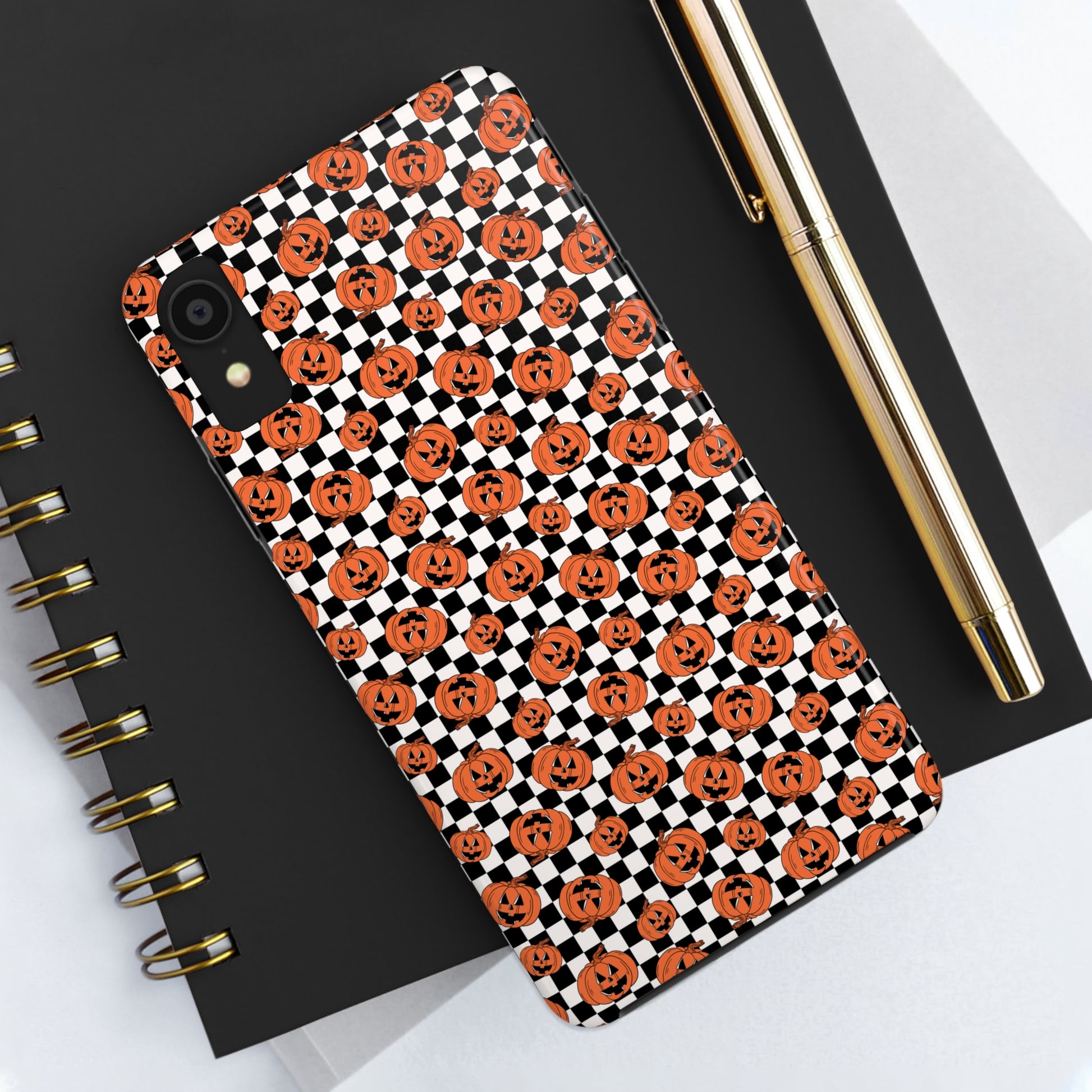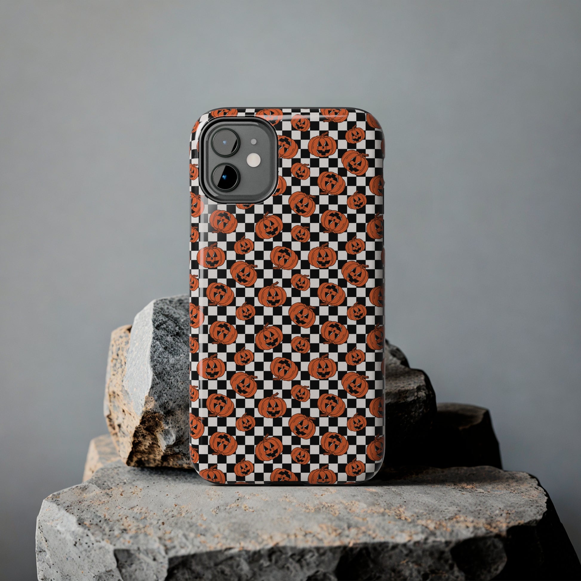 Pumpkin / Jack-O-Lantern Checkerboard Halloween/ Fall Patterned Tough Phone Cases