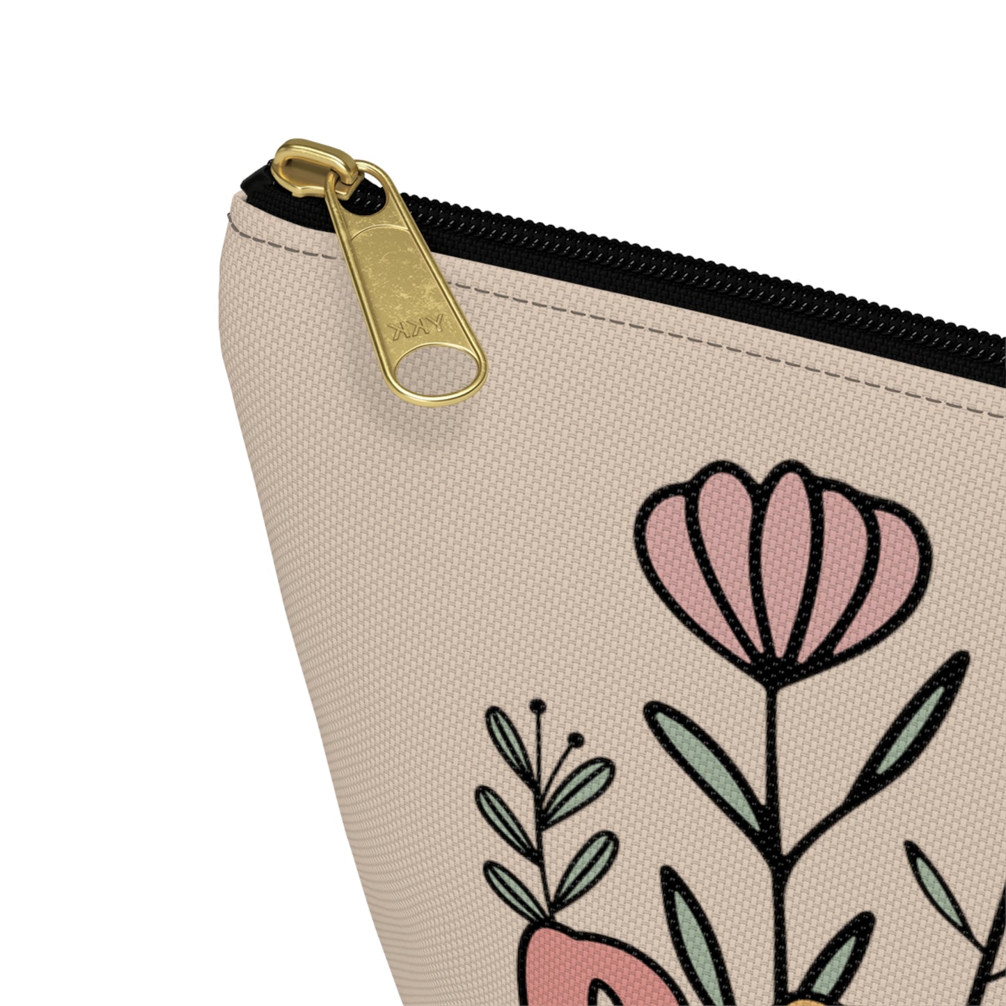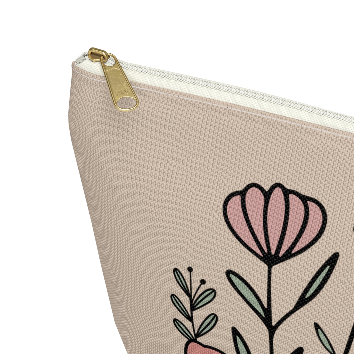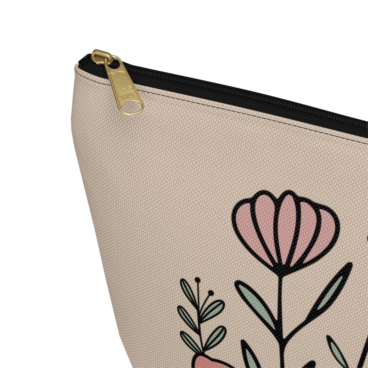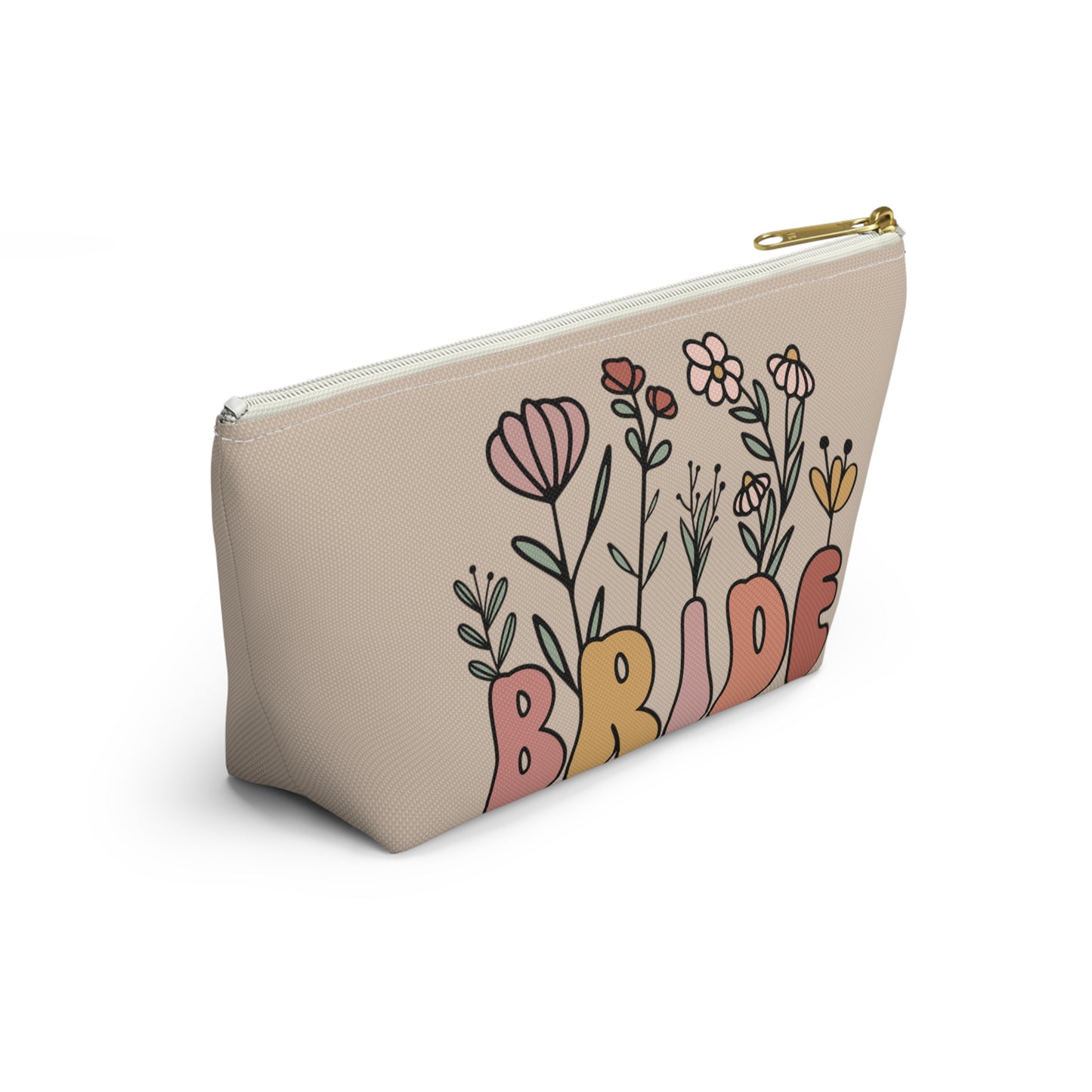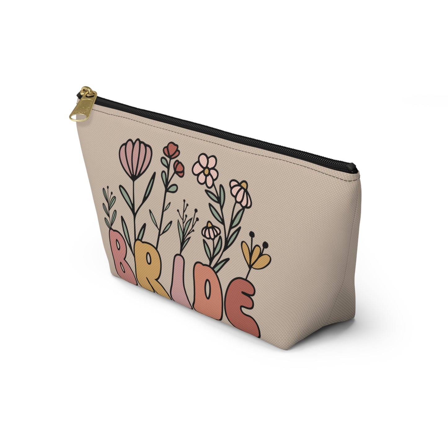 Retro Boho Bride Floral Print Design Accessory Pouch w T-bottom