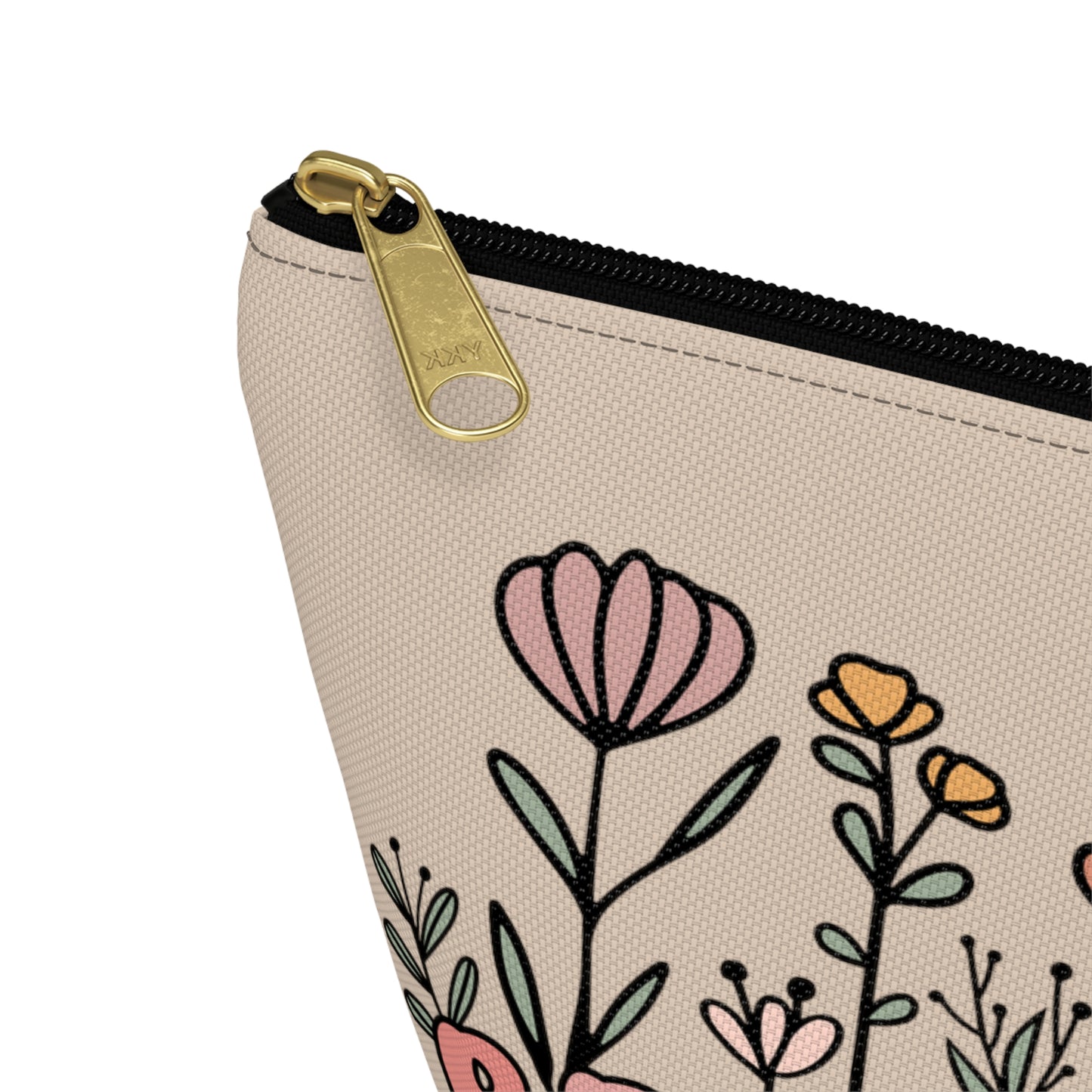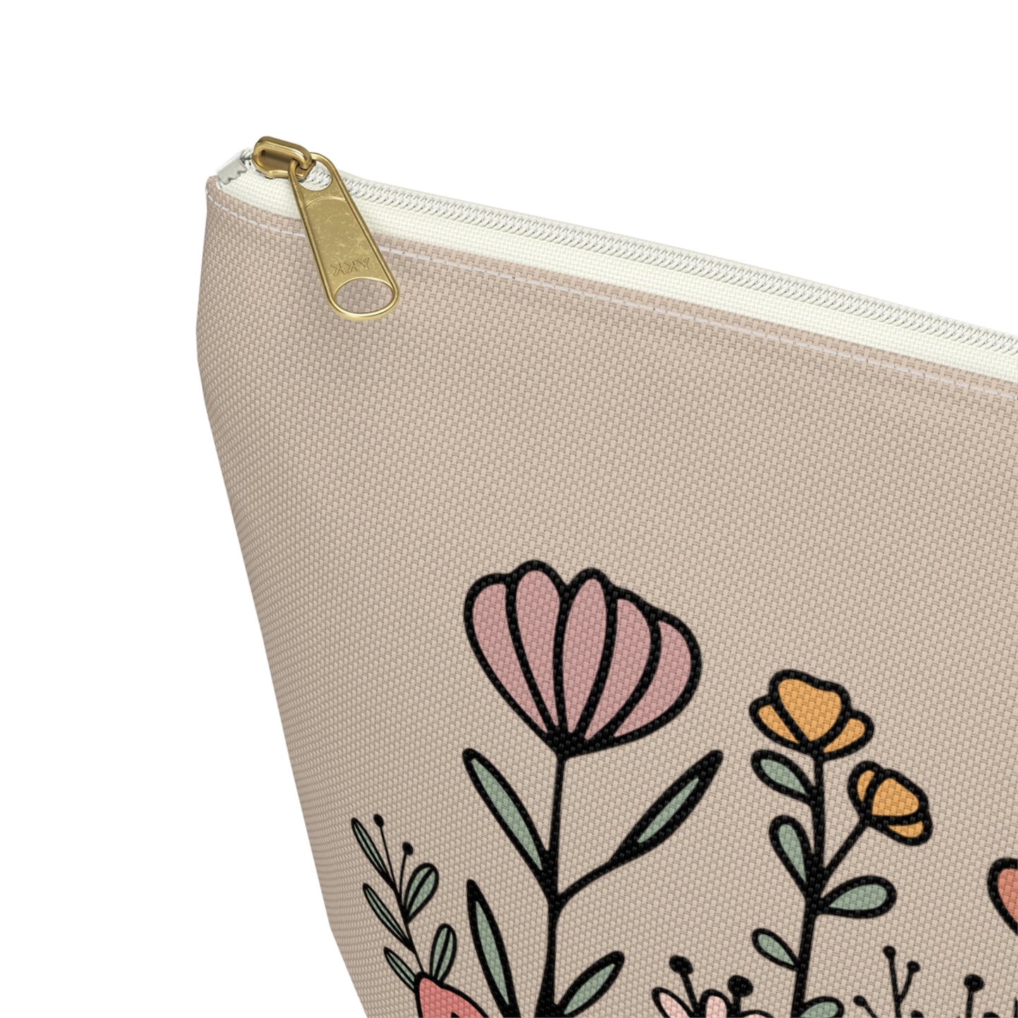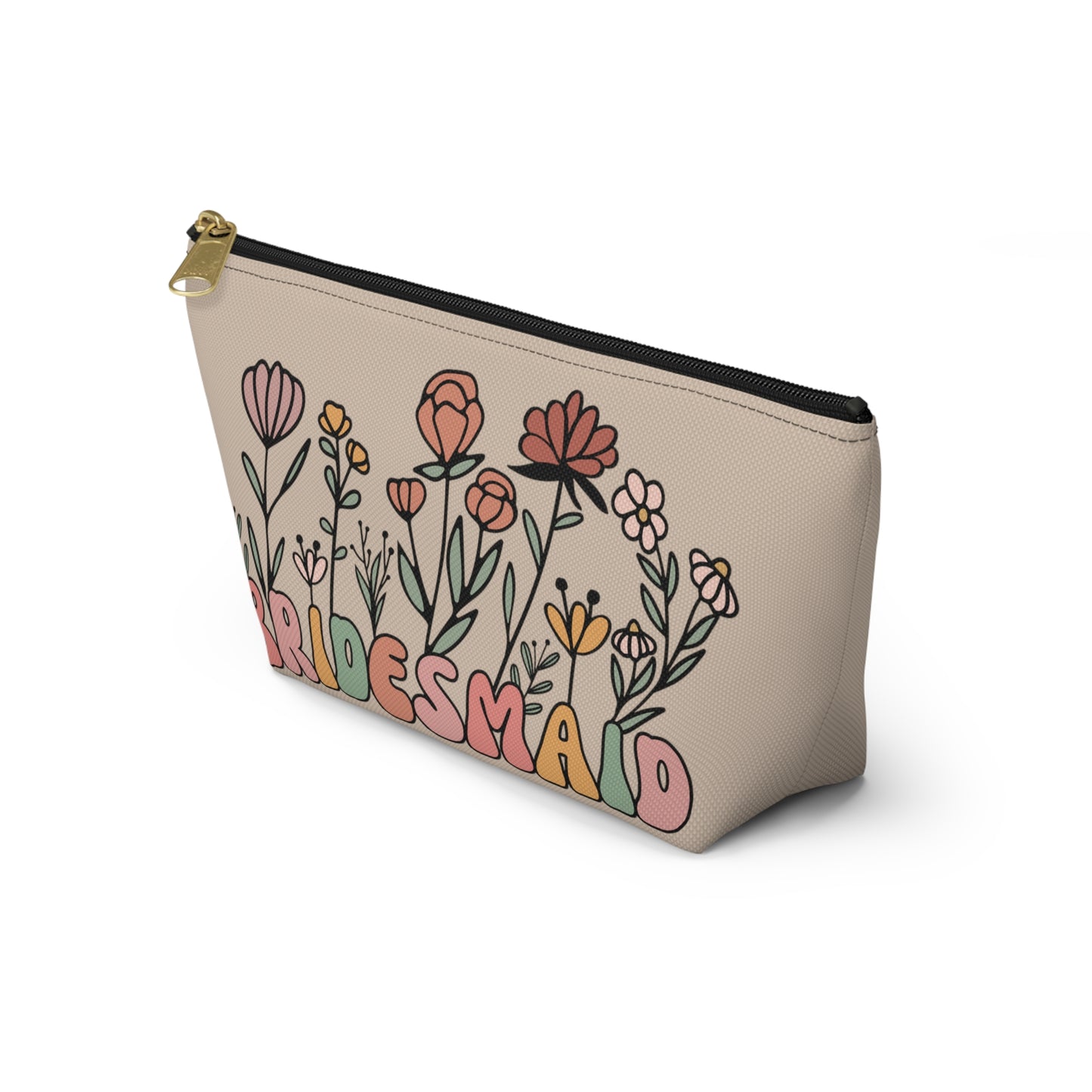Retro Boho Bridesmaid Floral Print Design Accessory Pouch w T-bottom