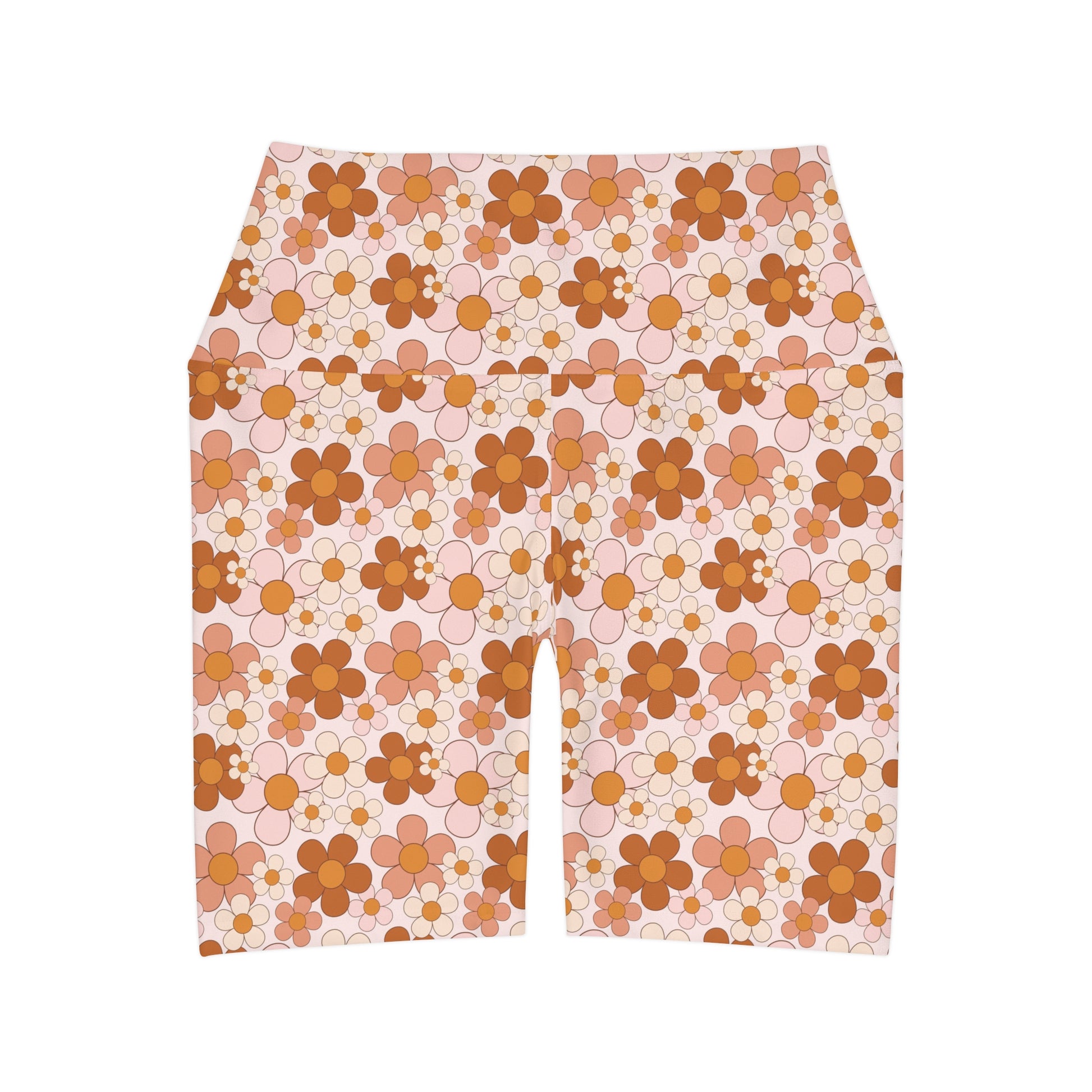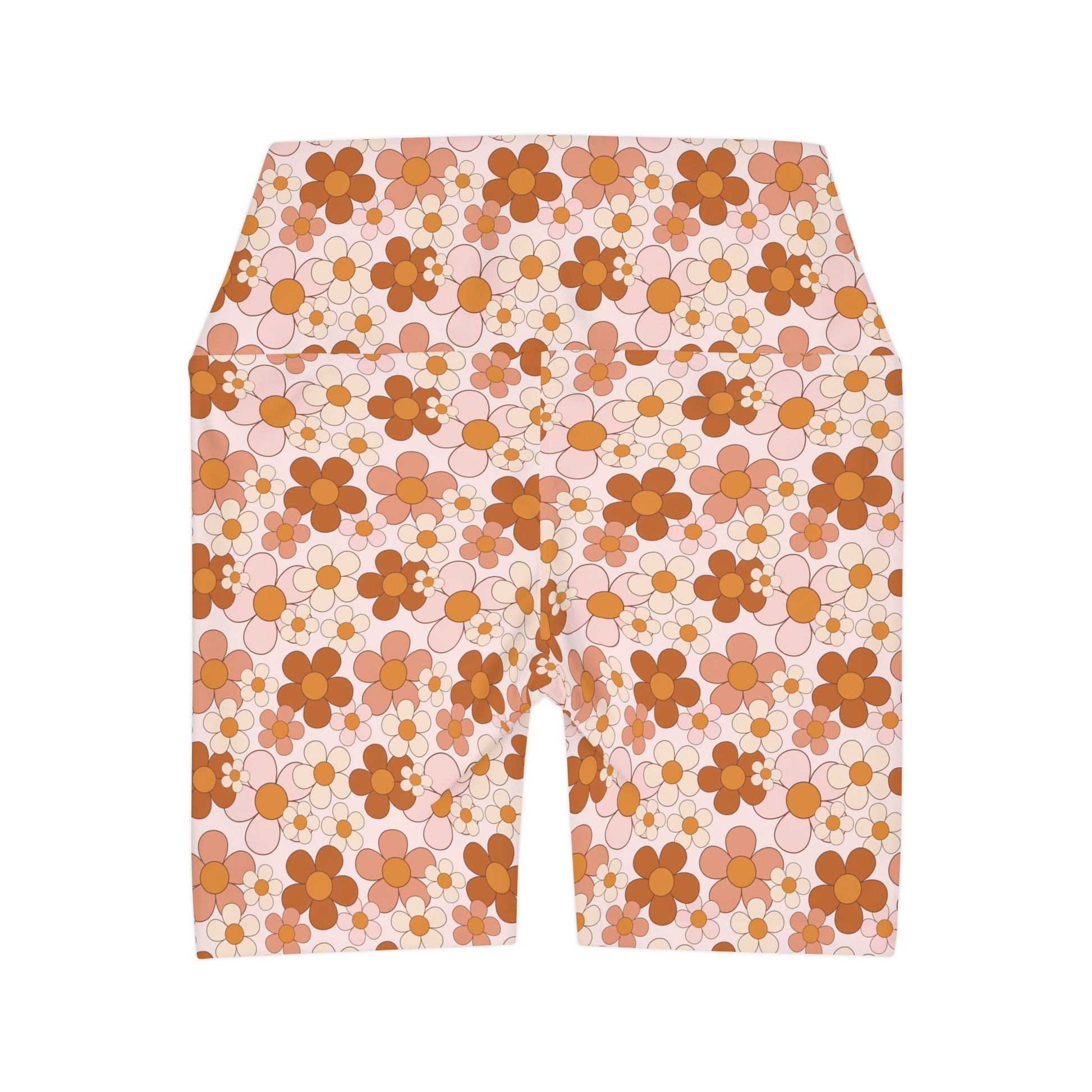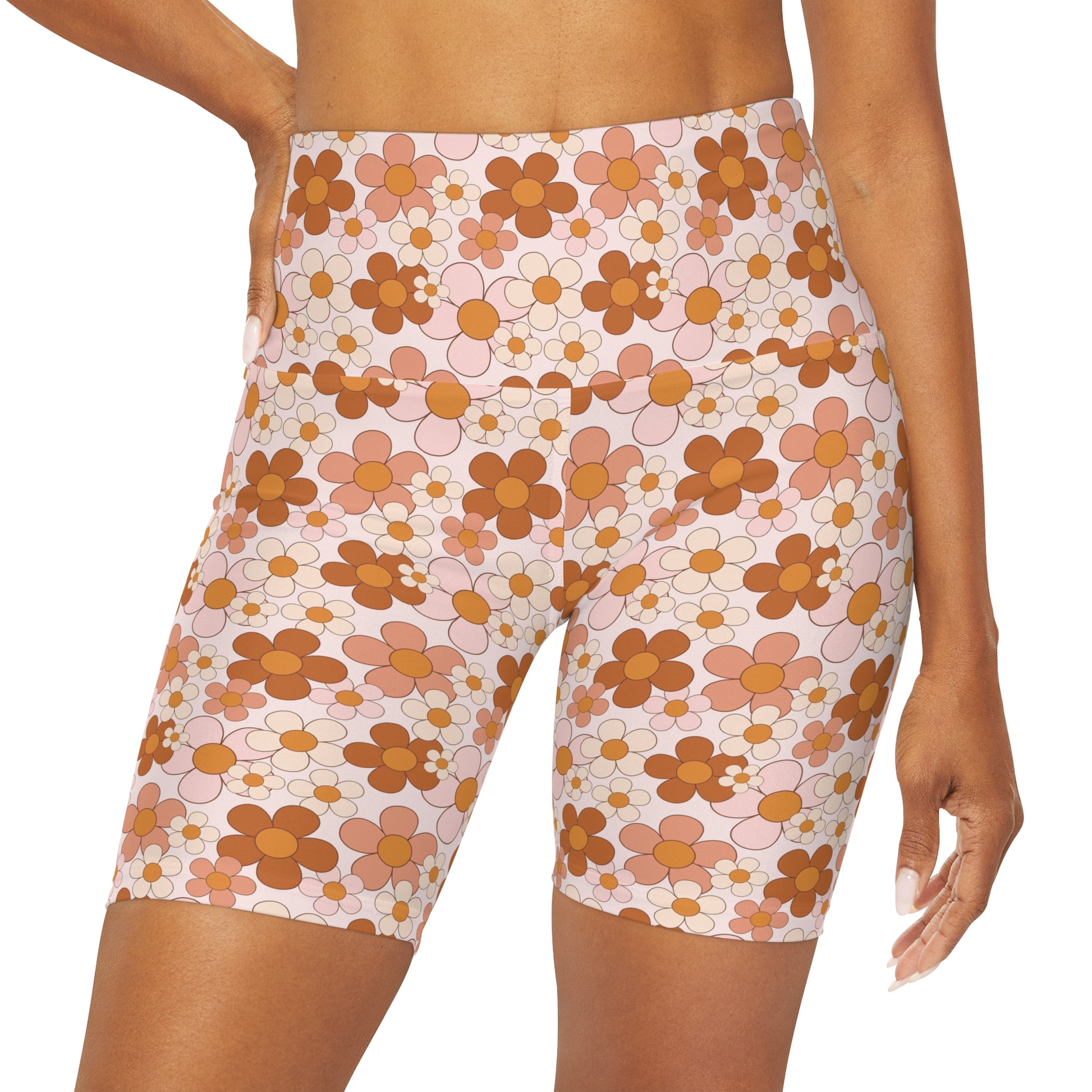 Retro Daisy Rust and Pink Floral Yoga Shorts