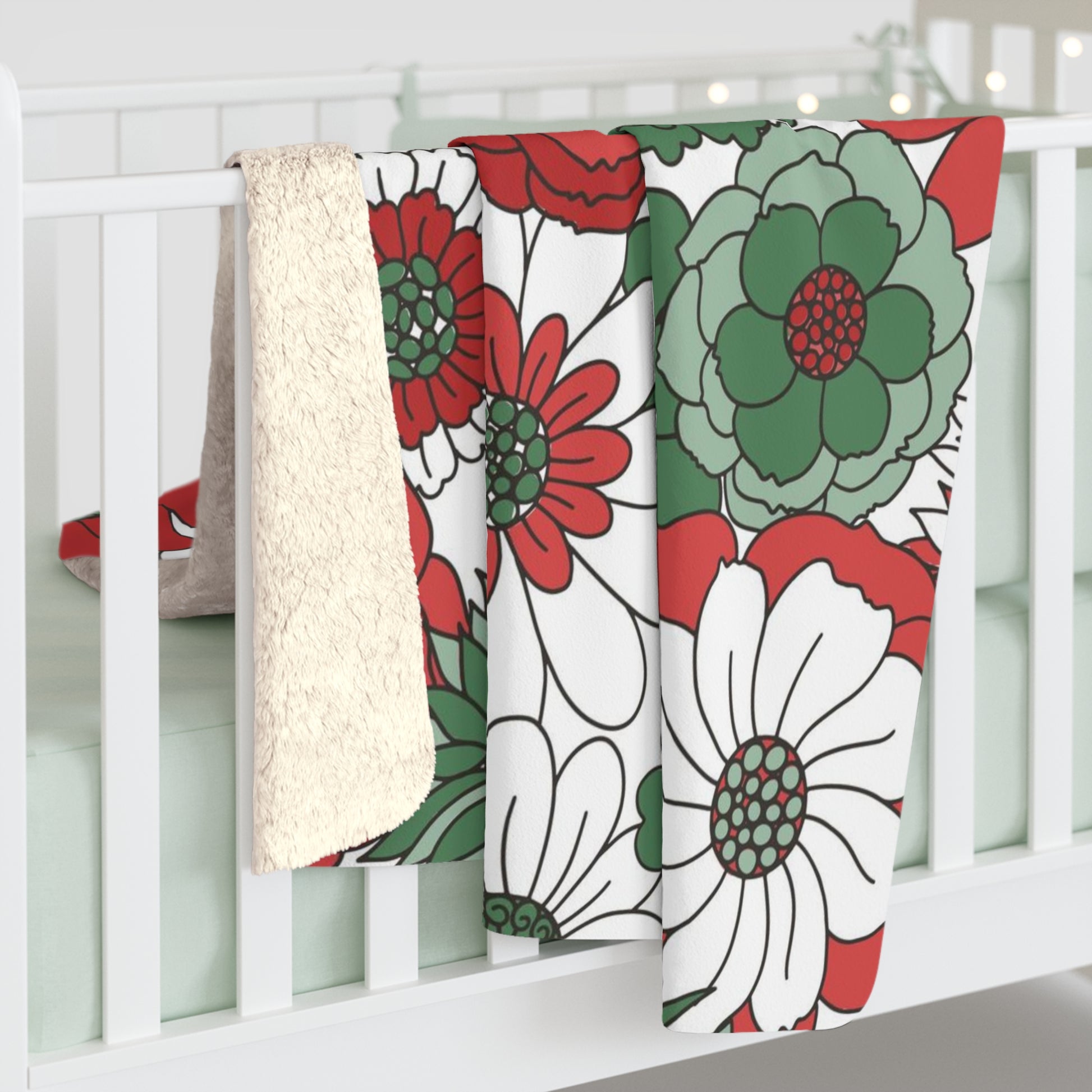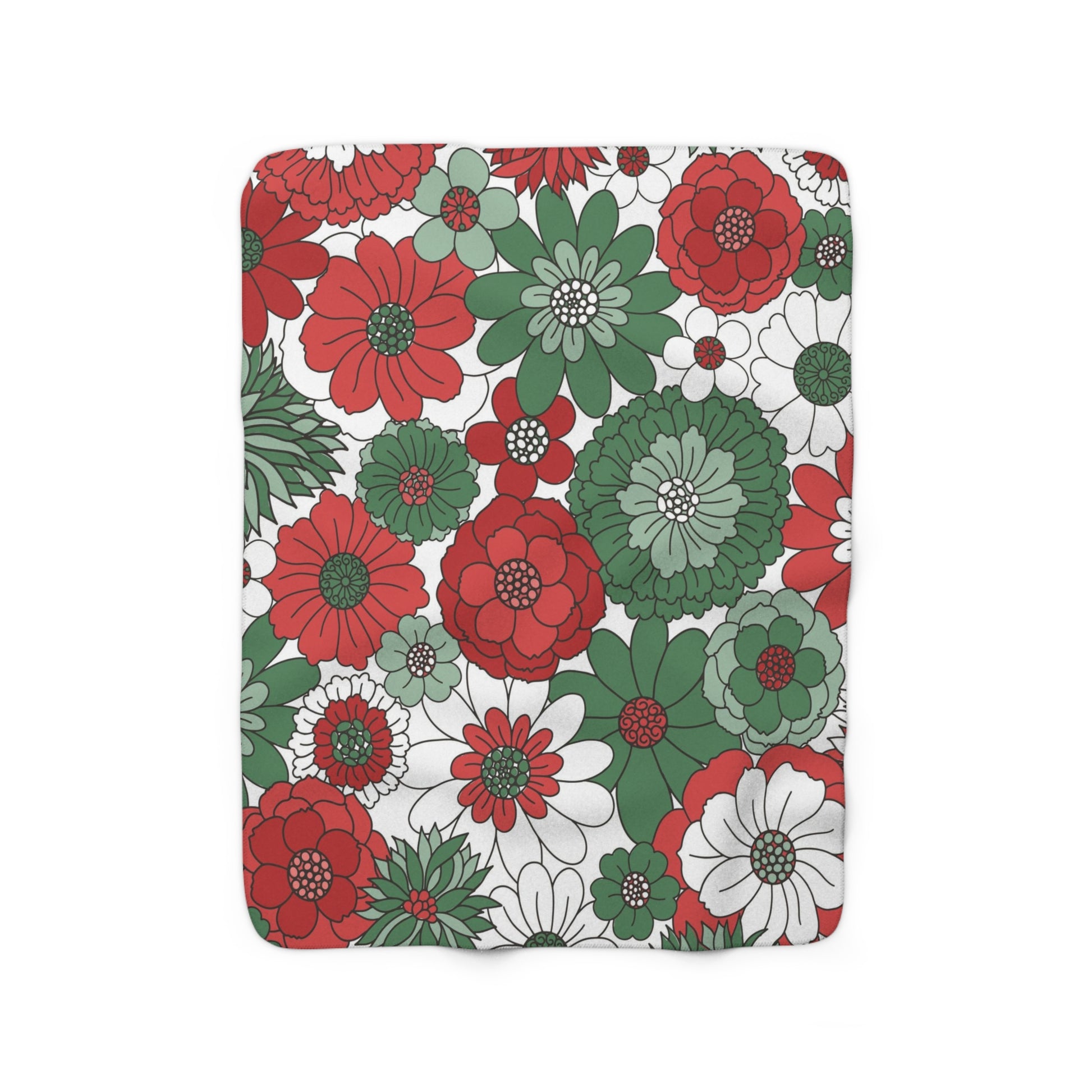 Retro Floral Christmas Sherpa Fleece Blanket