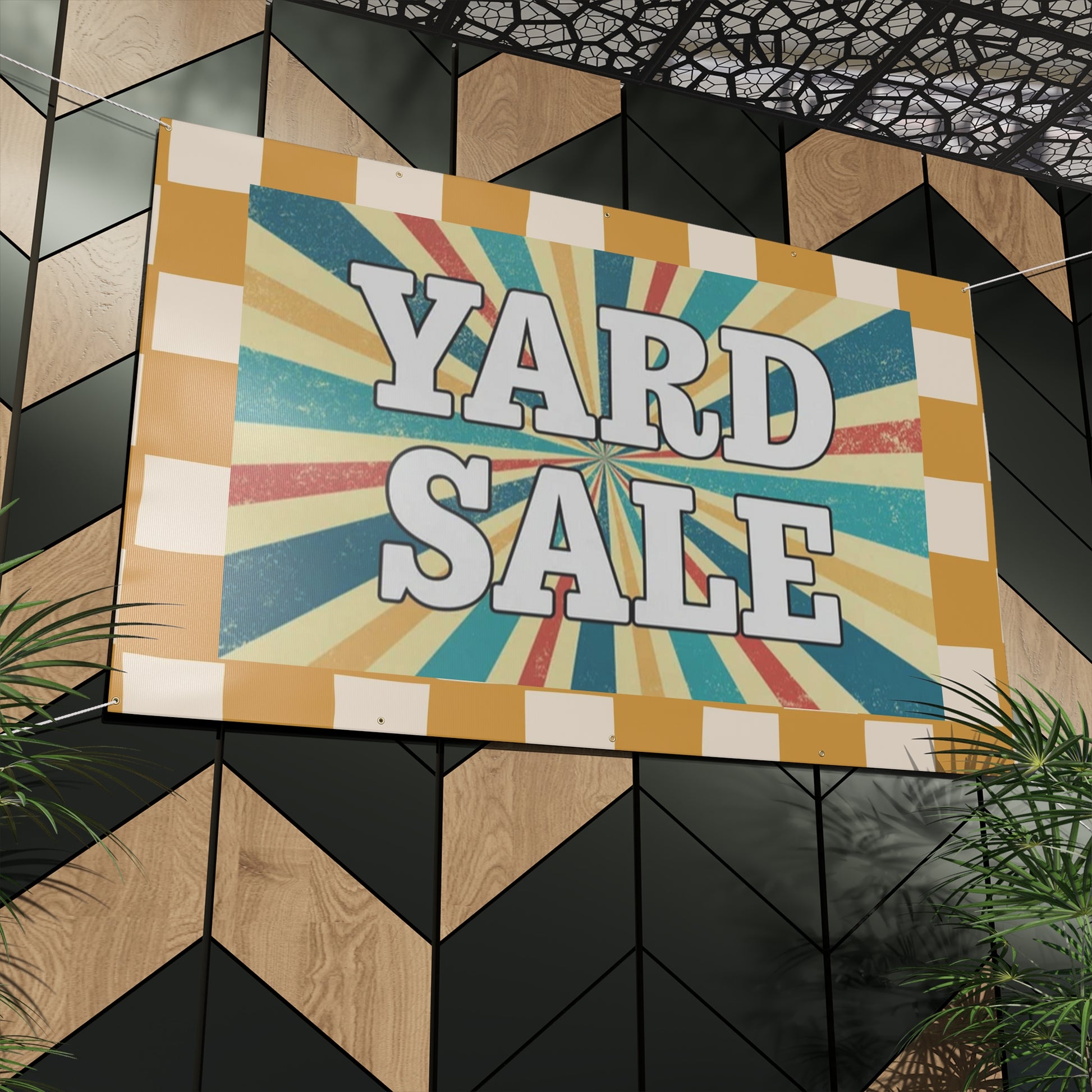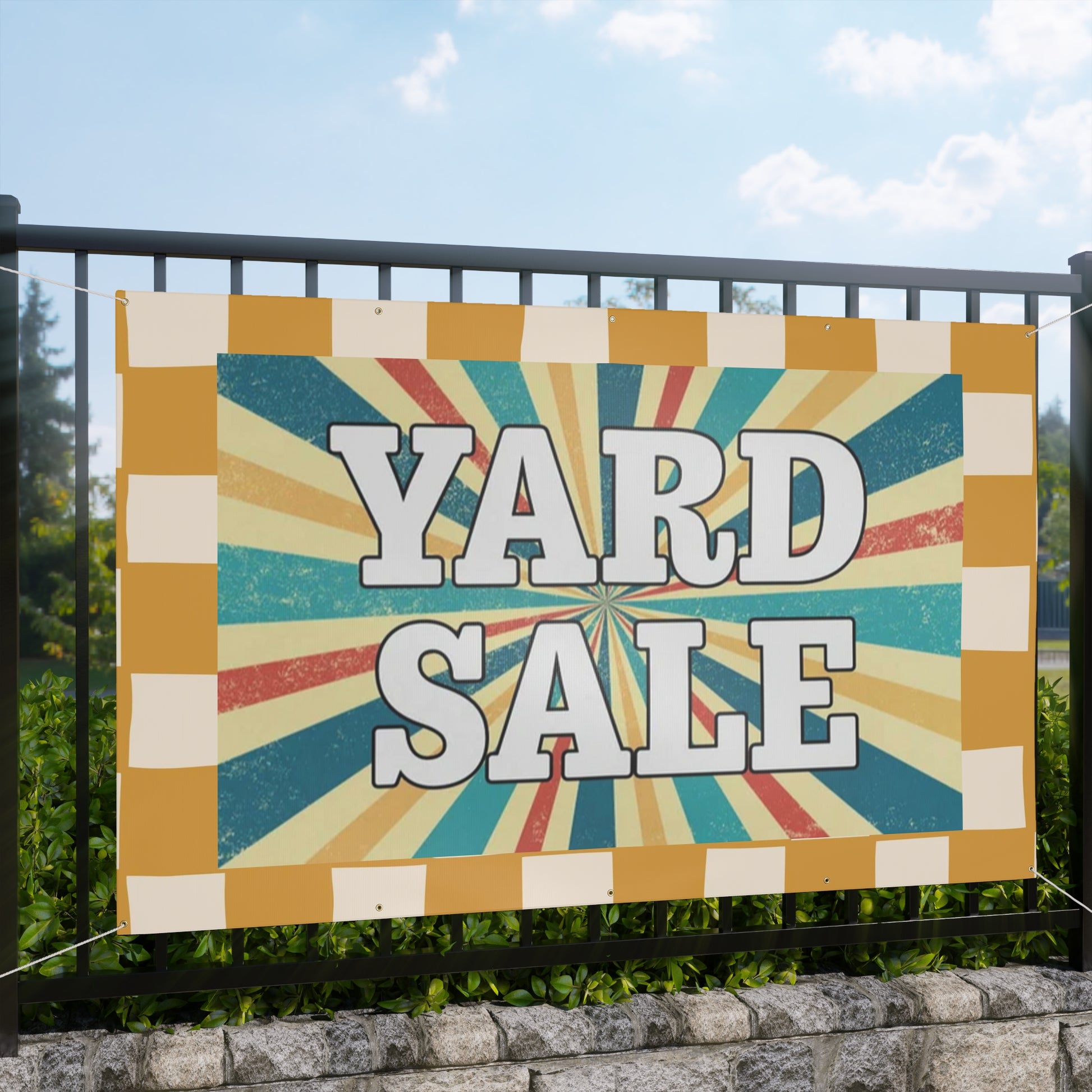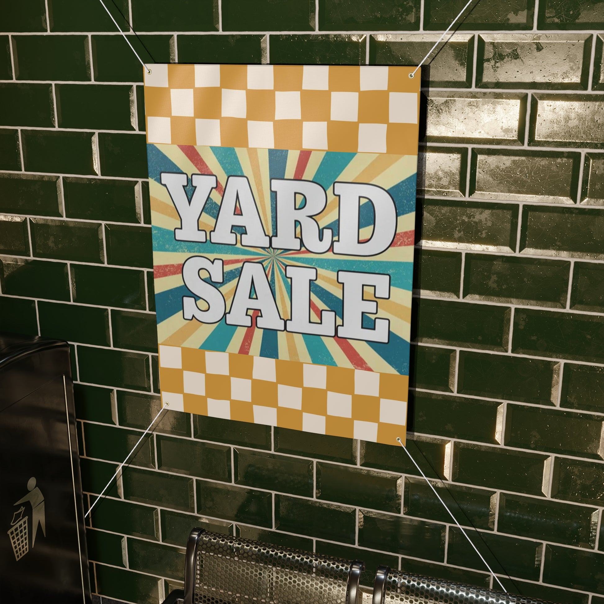 Retro Golden Checkerboard Yard Sale Sign/ Matte Banner