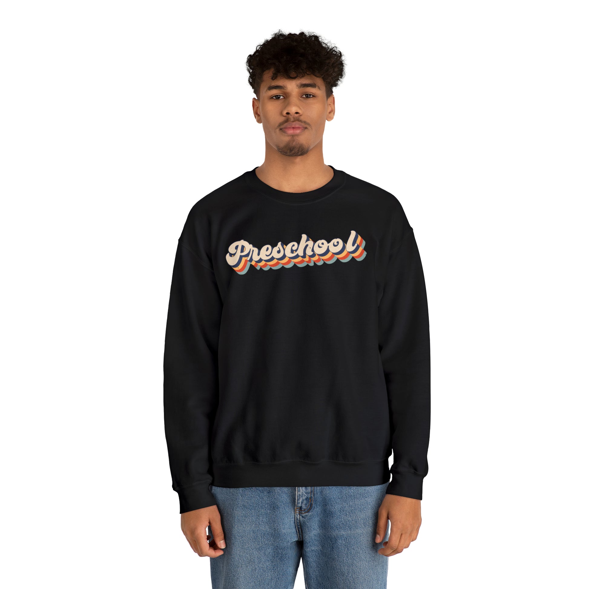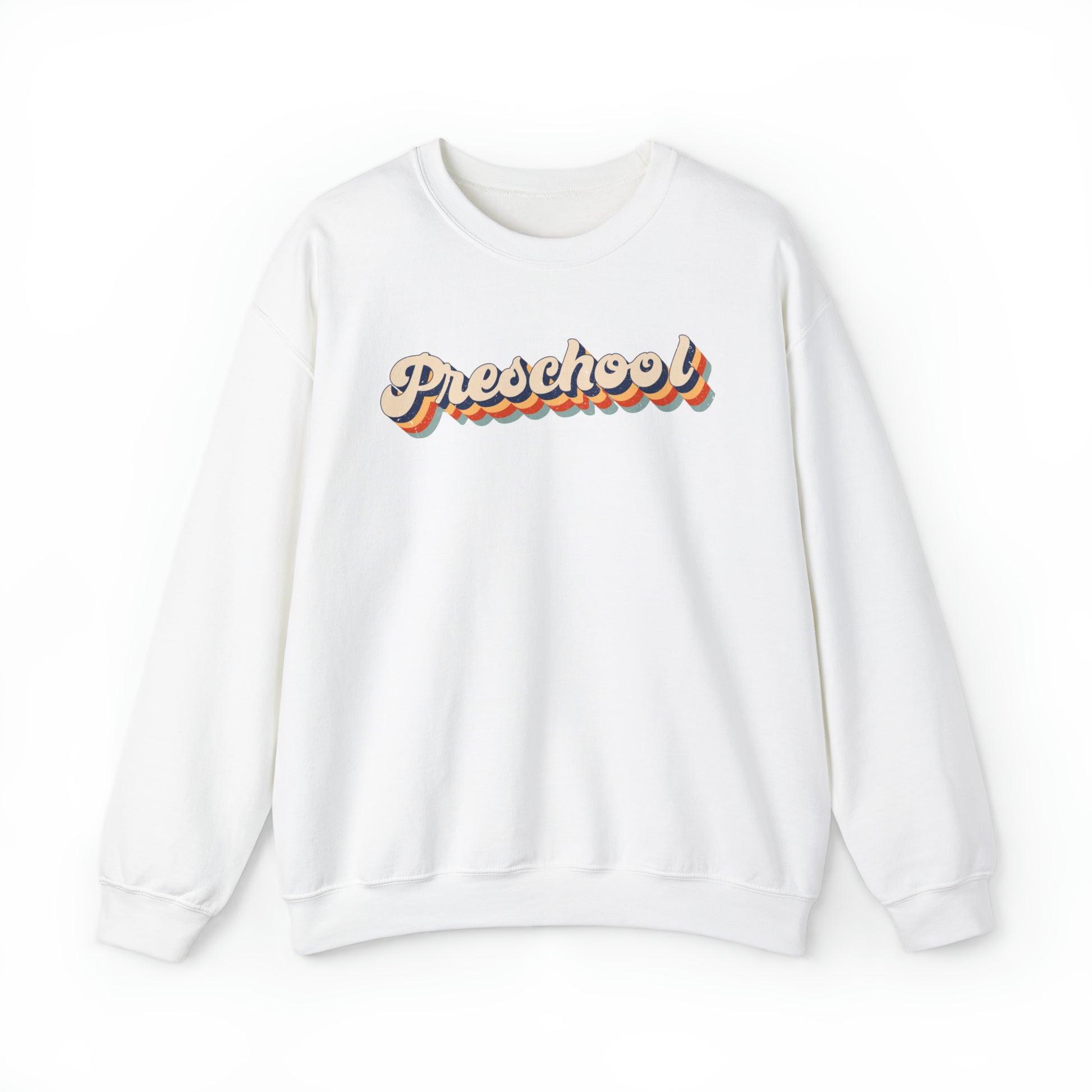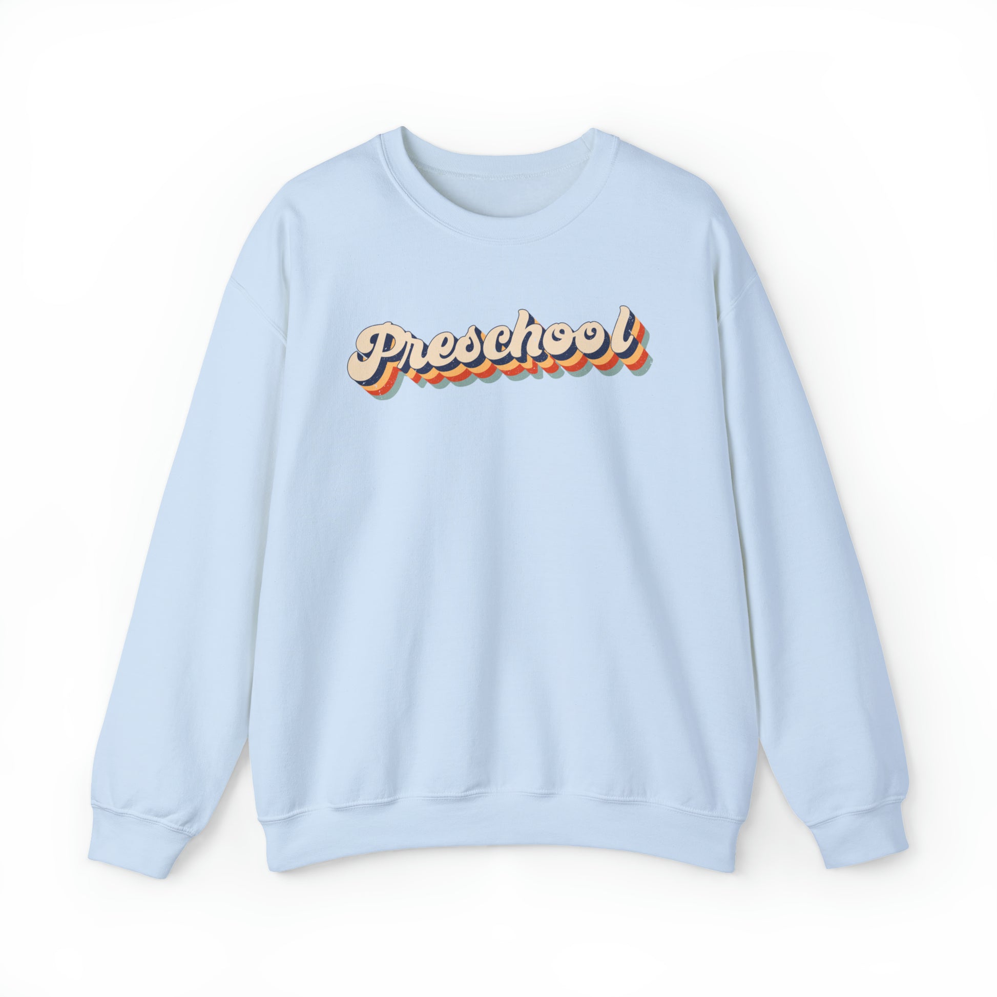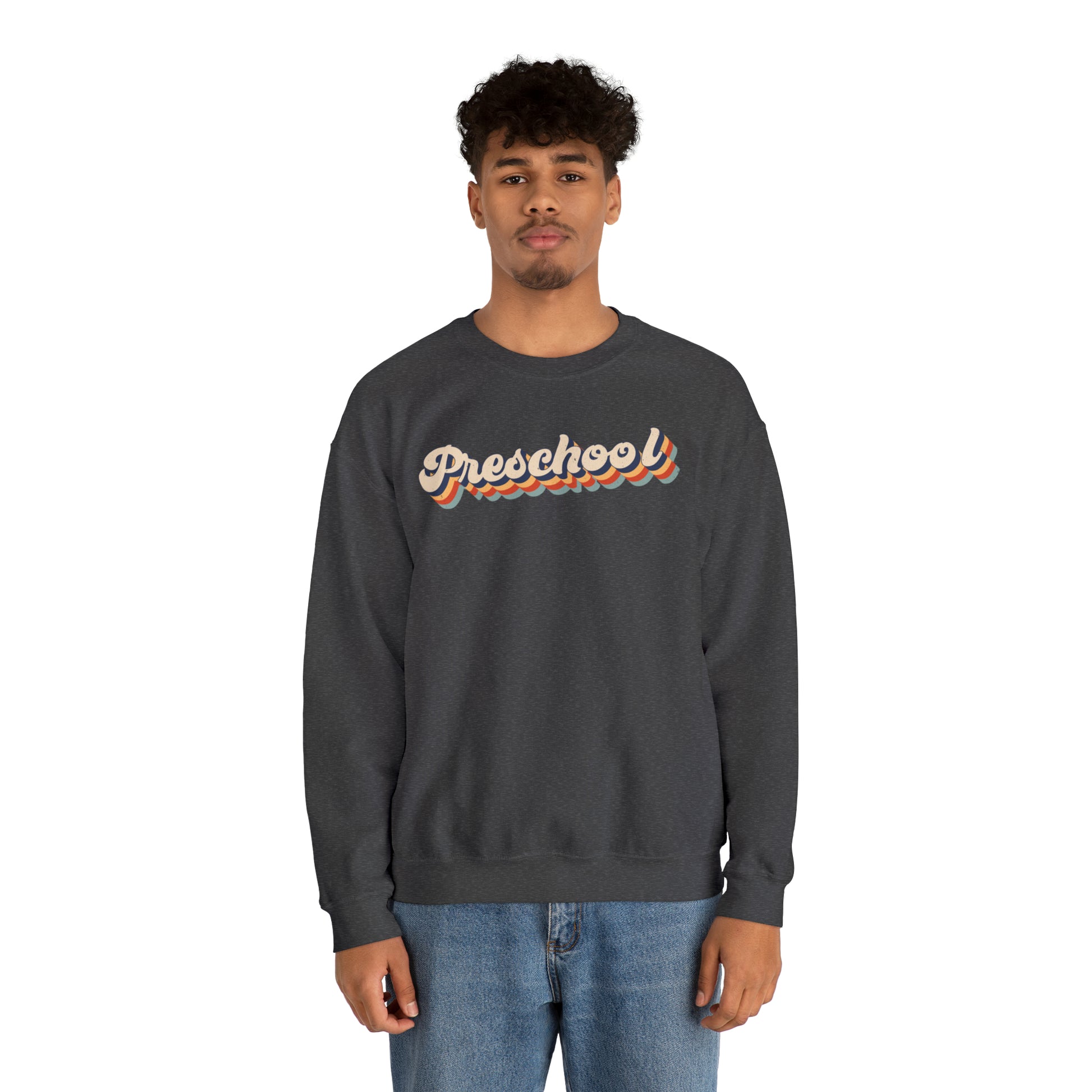 This is such a cute rainbow retro designed sweatshirt for Preschool teachers. Buy it as a gift for your favorite preschool teacher. Ideal for any situation, a unisex heavy blend crewneck sweatshirt is pure comfort. These garments are made from polyester and cotton. This combination helps designs come out looking fresh and beautiful. The collar is ribbed knit, so it retains its shape even after washing. There are no itchy side seams on these sweaters.