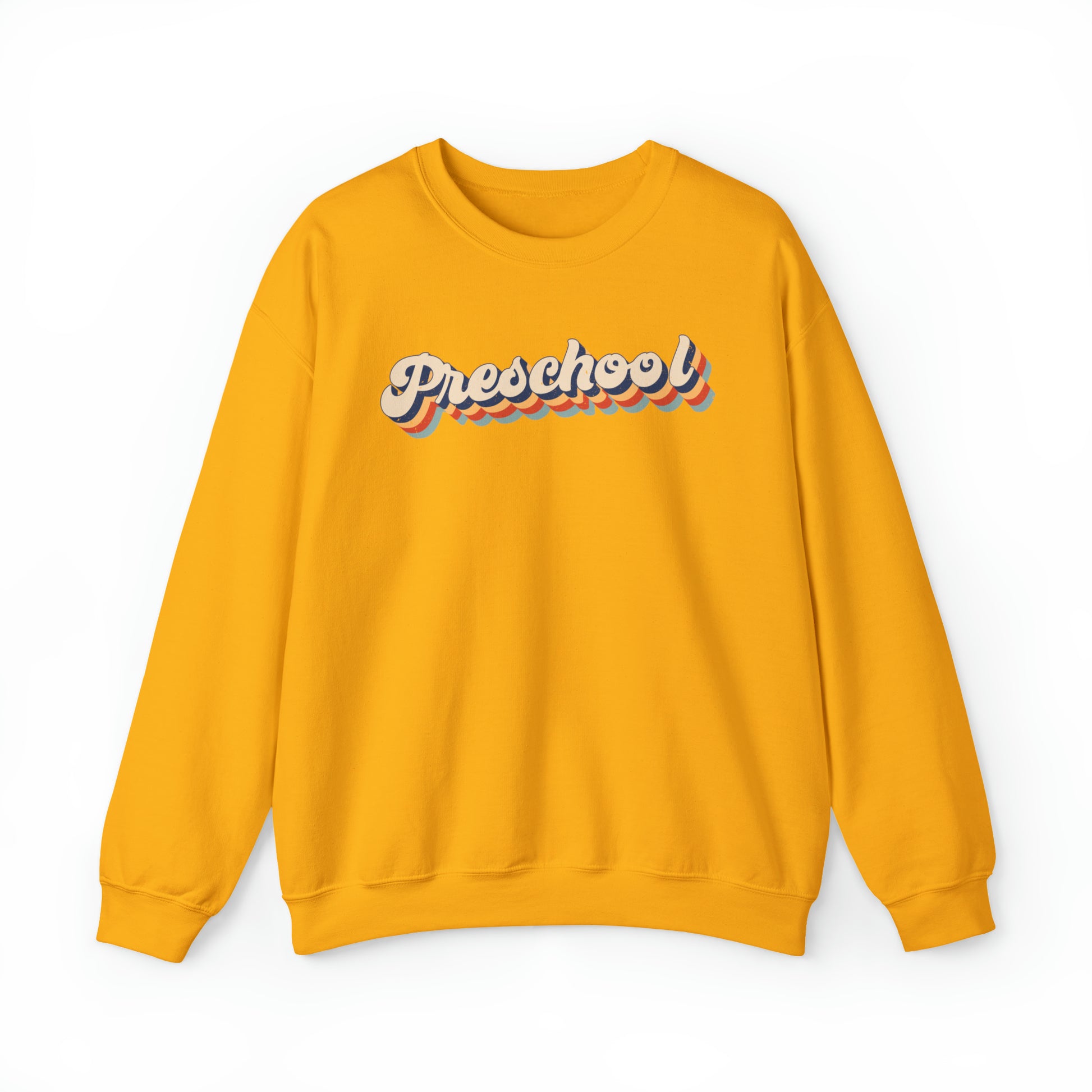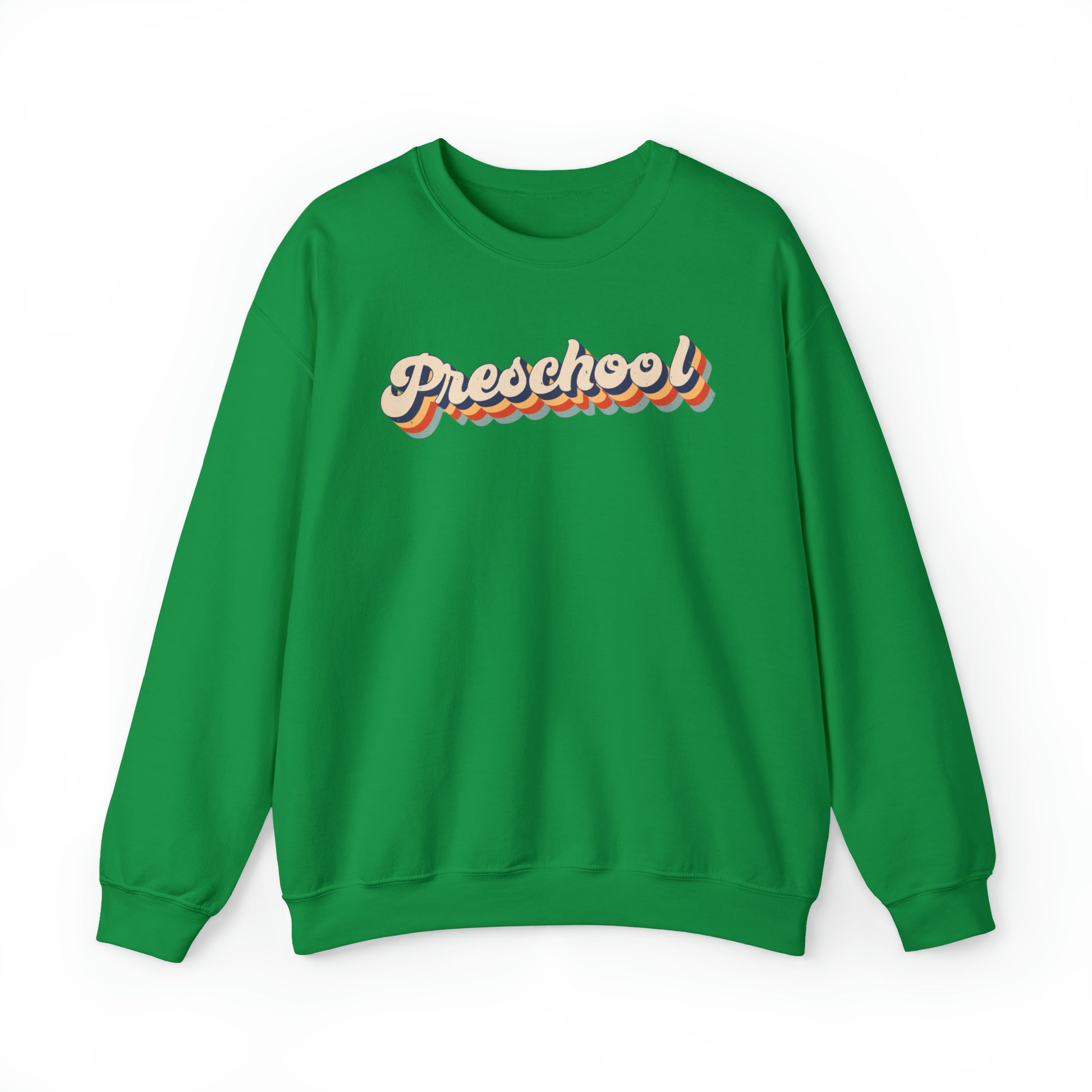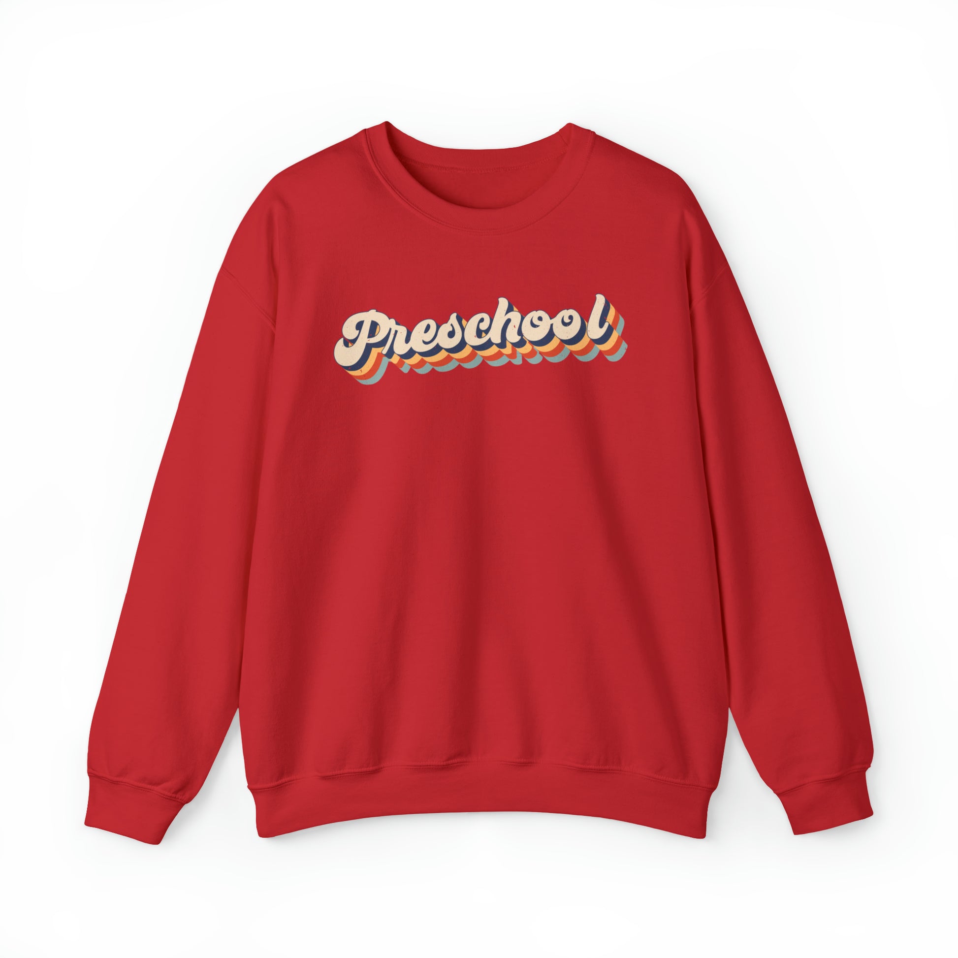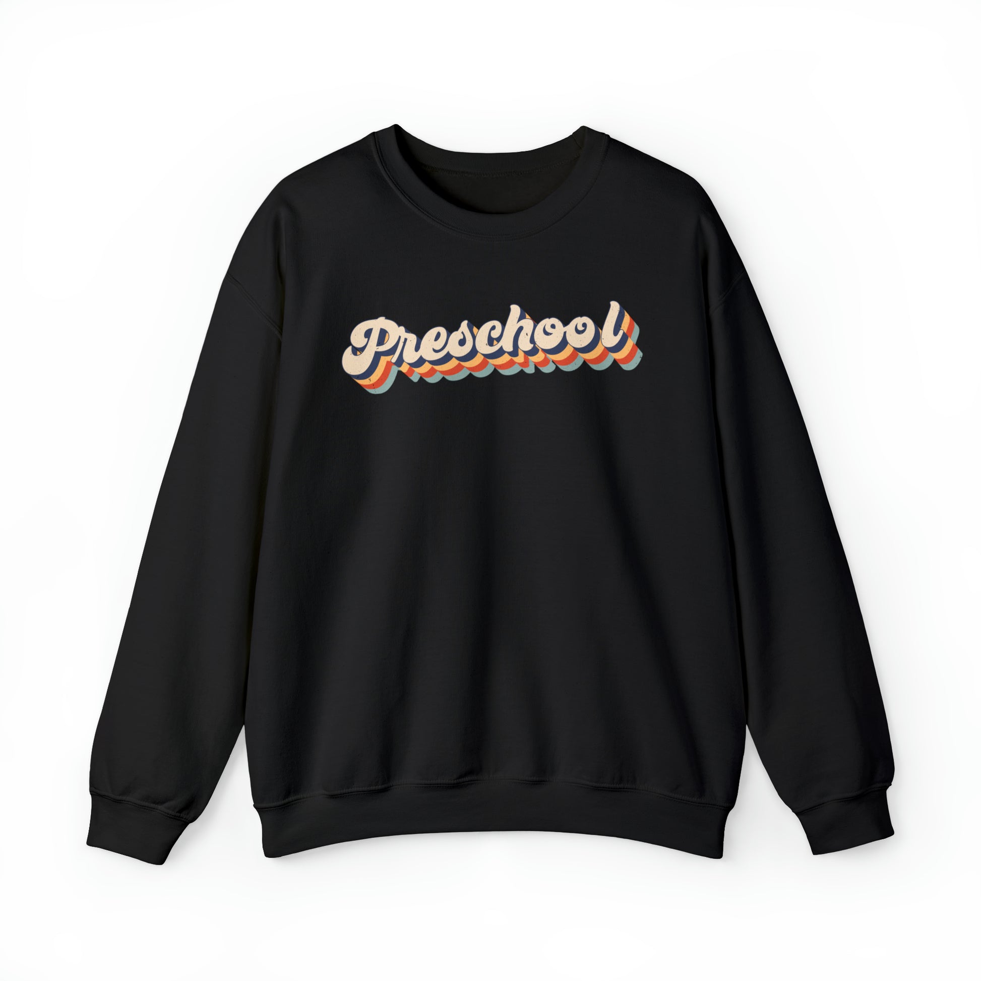 This is such a cute rainbow retro designed sweatshirt for Preschool teachers. Buy it as a gift for your favorite preschool teacher. Ideal for any situation, a unisex heavy blend crewneck sweatshirt is pure comfort. These garments are made from polyester and cotton. This combination helps designs come out looking fresh and beautiful. The collar is ribbed knit, so it retains its shape even after washing. There are no itchy side seams on these sweaters.