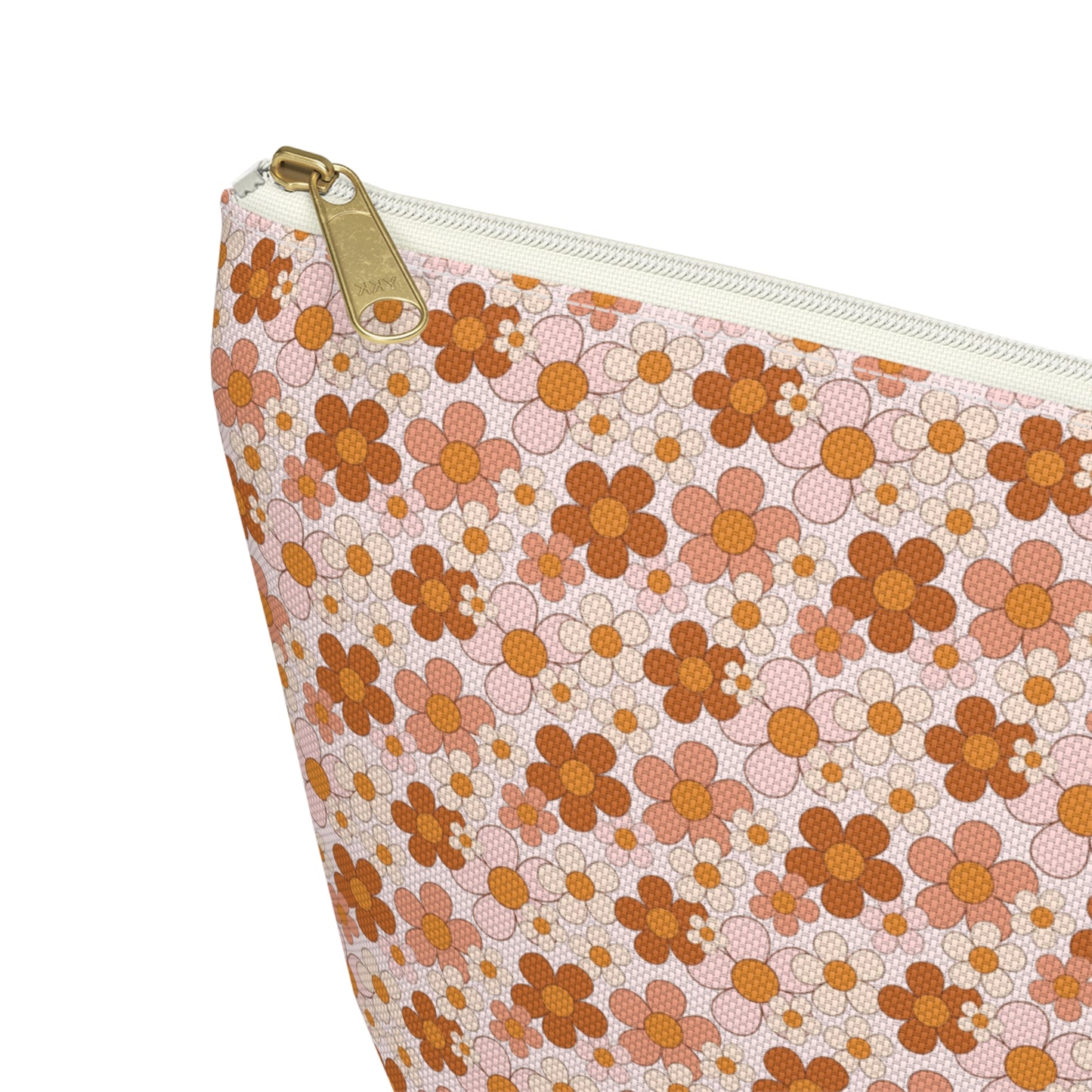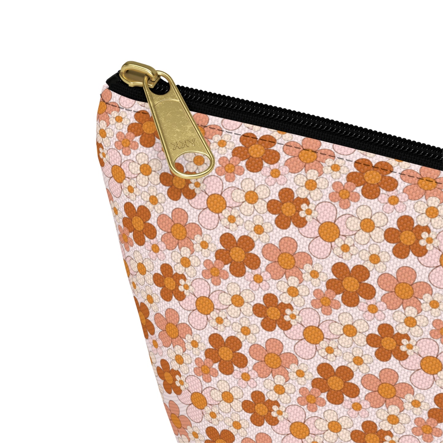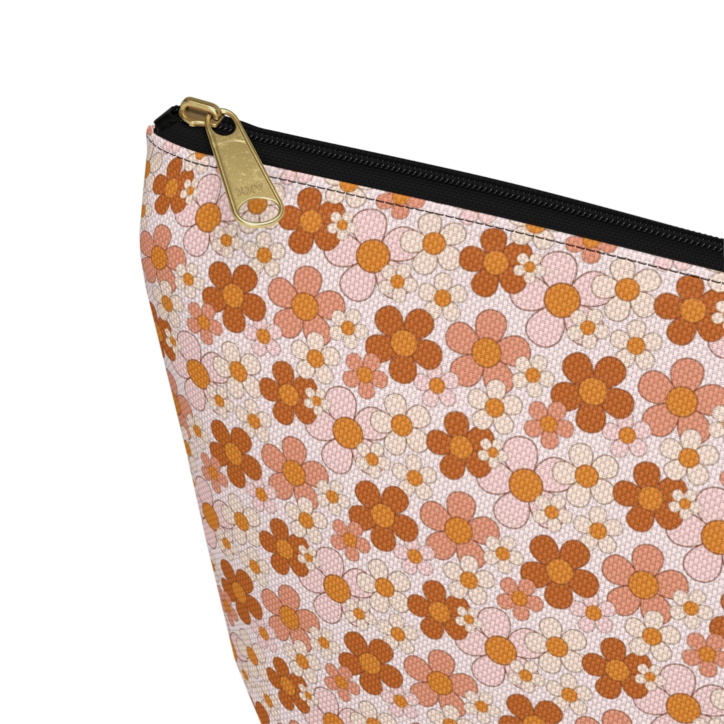 Retro Small Daisy Pink/Rust Floral Print Design Accessory Pouch w T-bottom
