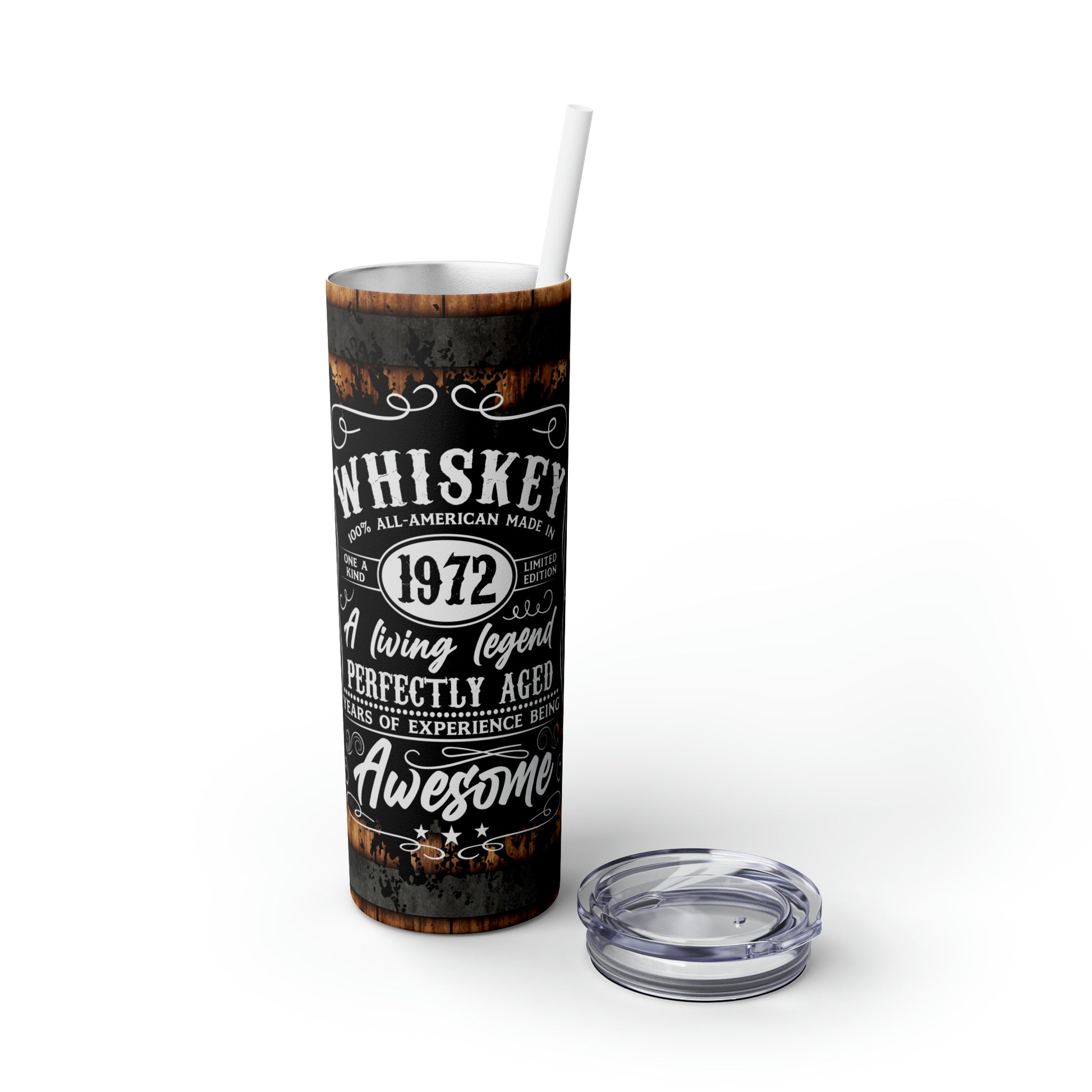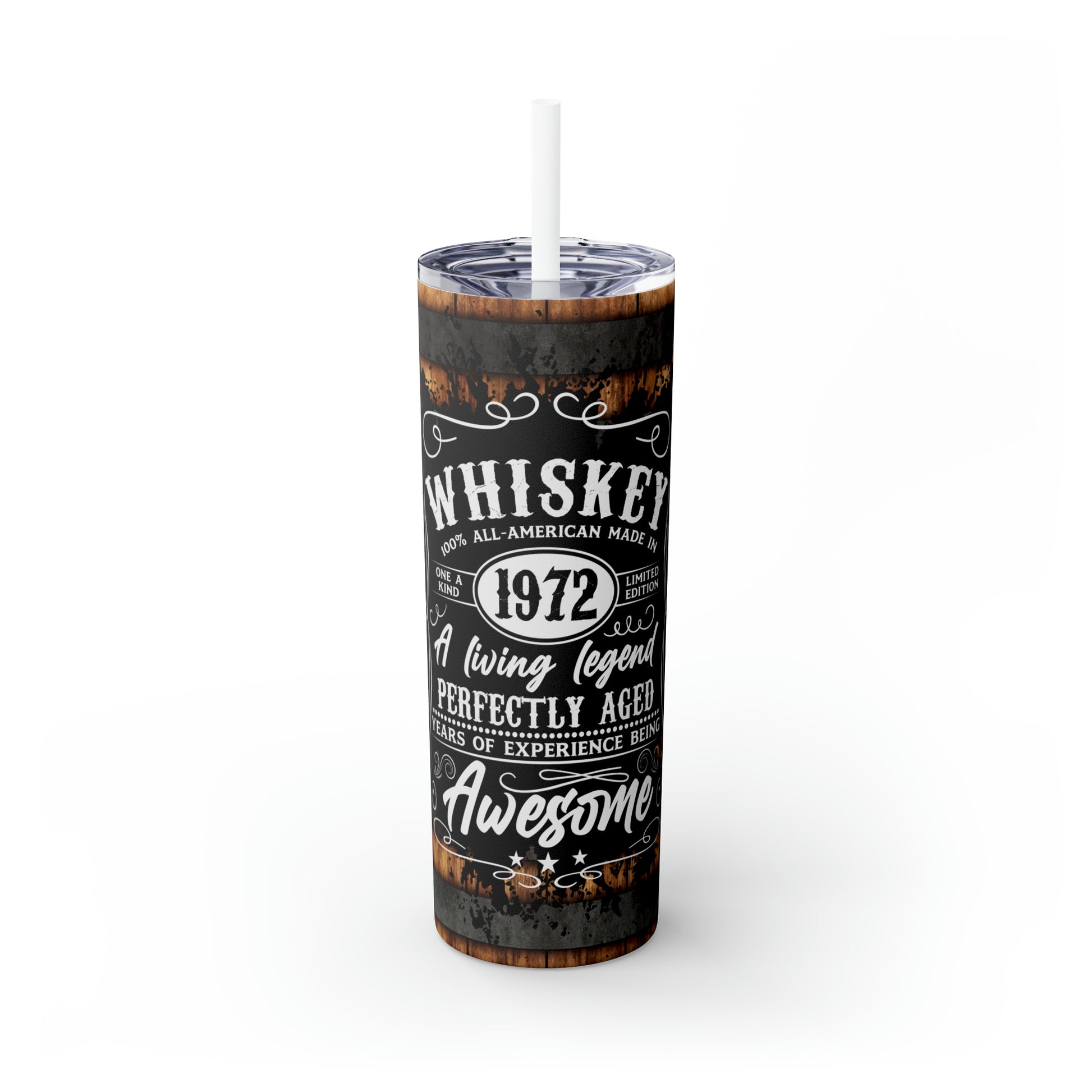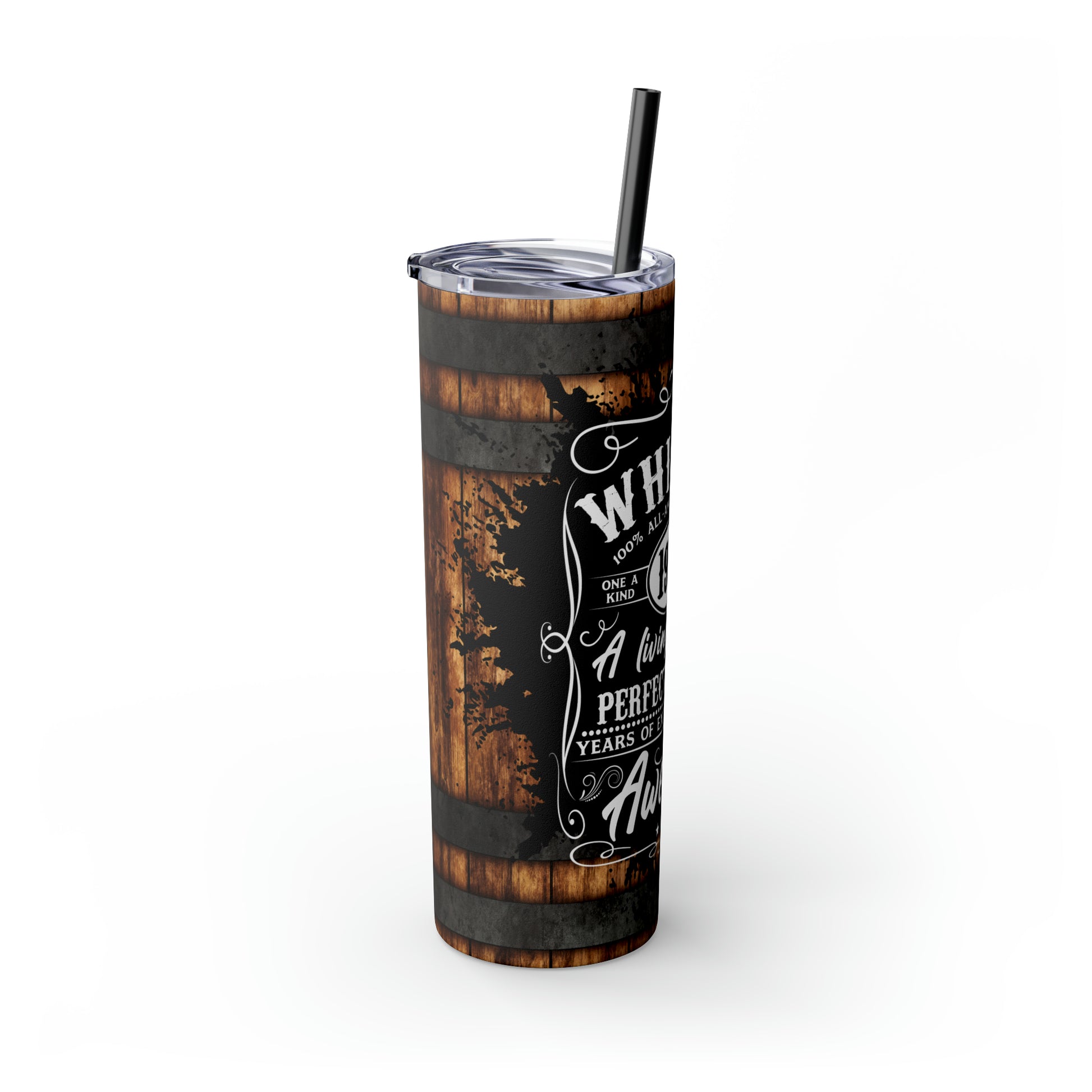 Whisky Barrel Themed Tumbler The Maars personalized skinny tumblers keep your drinks hot for 12h and cold for 24h, making them the perfect sipping companion all year round. With 20oz capacity, these tumblers come in a matte or glossy finish, and feature a tapered shape with a slim design for effortless carriage. The plastic press-on lid with color-matching straw makes for great practicality on the go, while all components are BPA-free and non-toxic; aka perfect for the whole family.