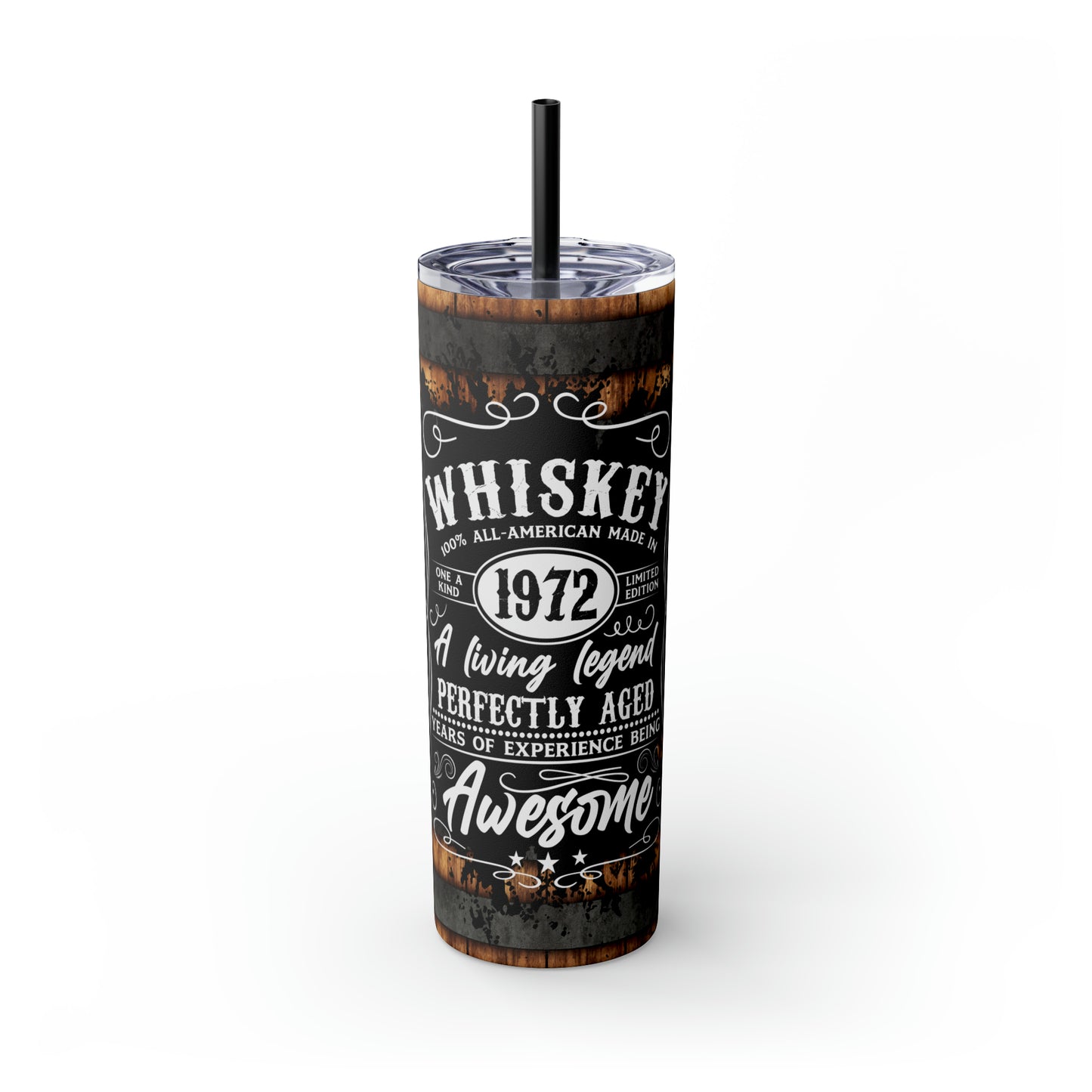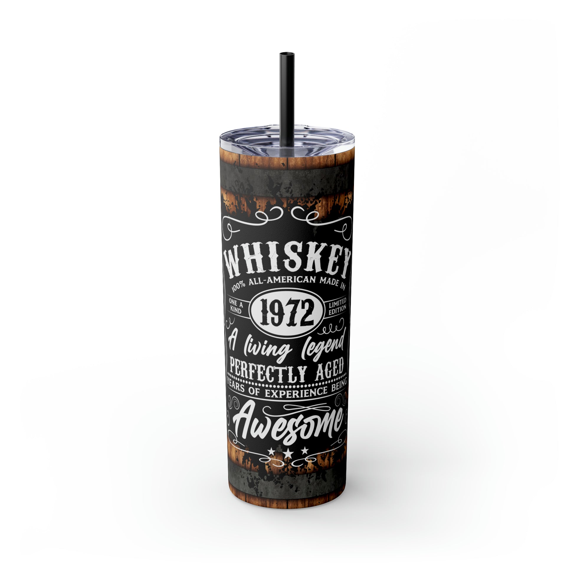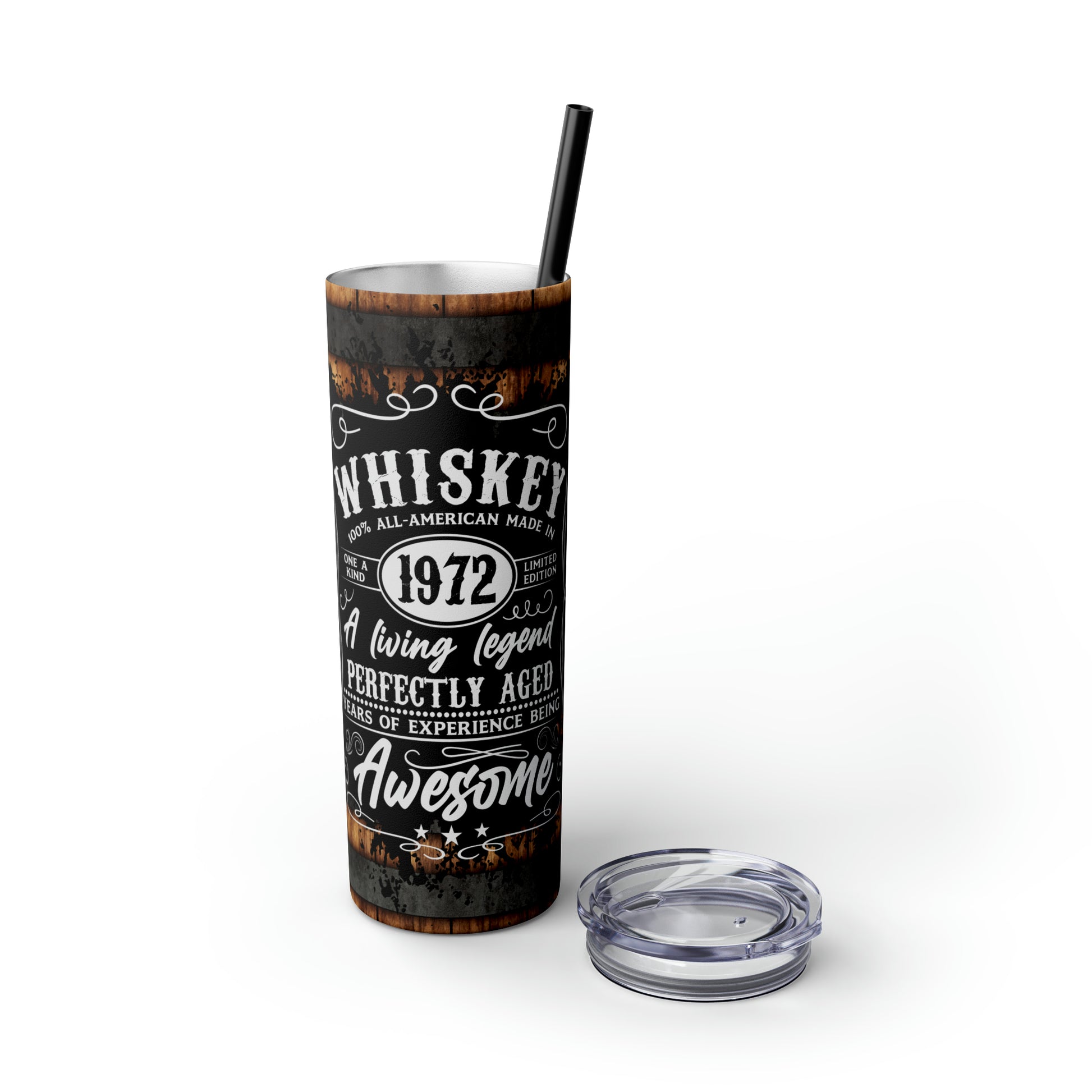 Whisky Barrel Themed Tumbler The Maars personalized skinny tumblers keep your drinks hot for 12h and cold for 24h, making them the perfect sipping companion all year round. With 20oz capacity, these tumblers come in a matte or glossy finish, and feature a tapered shape with a slim design for effortless carriage. The plastic press-on lid with color-matching straw makes for great practicality on the go, while all components are BPA-free and non-toxic; aka perfect for the whole family.