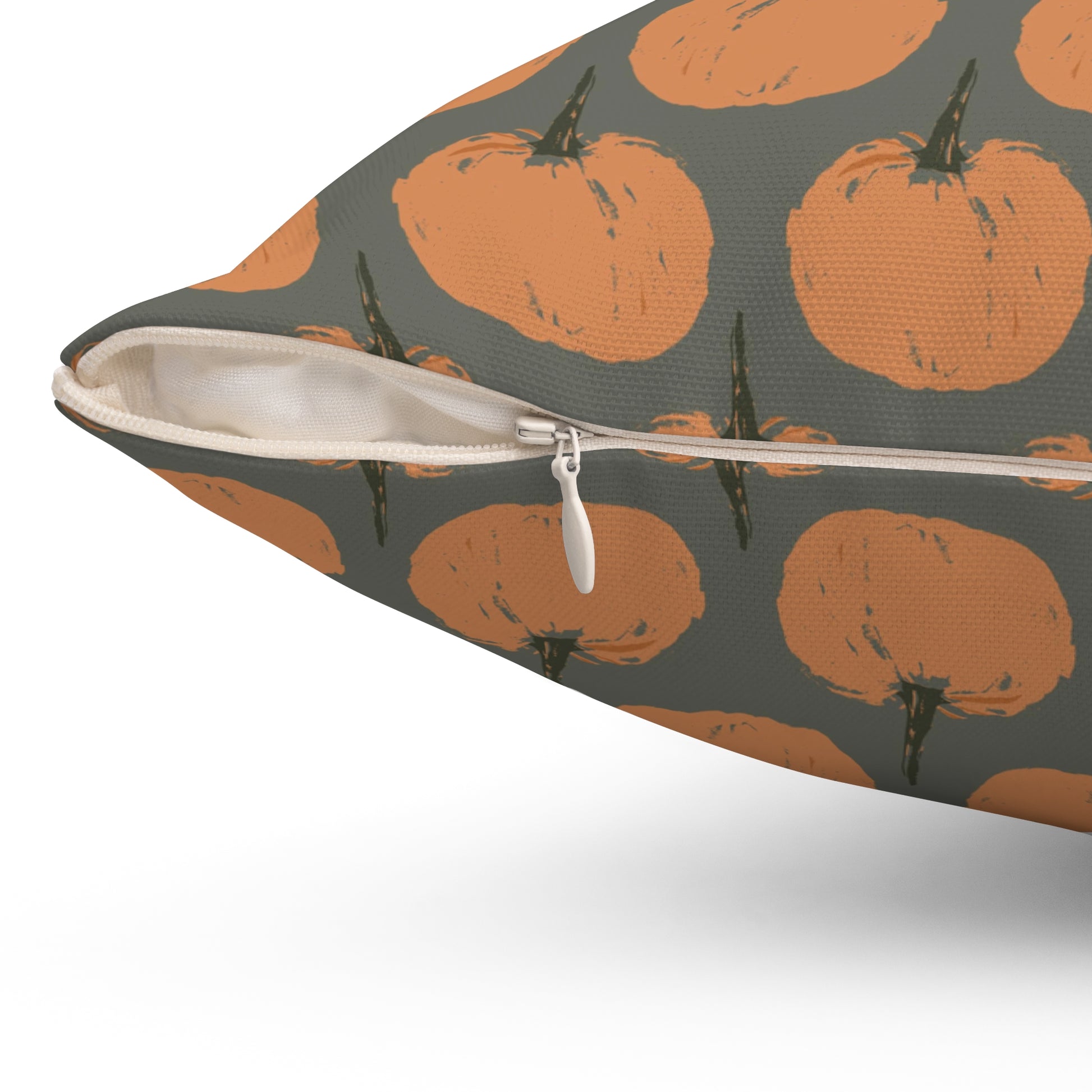 Simple Pumpkin Green Fall/ Halloween Spun Polyester Square Pillow