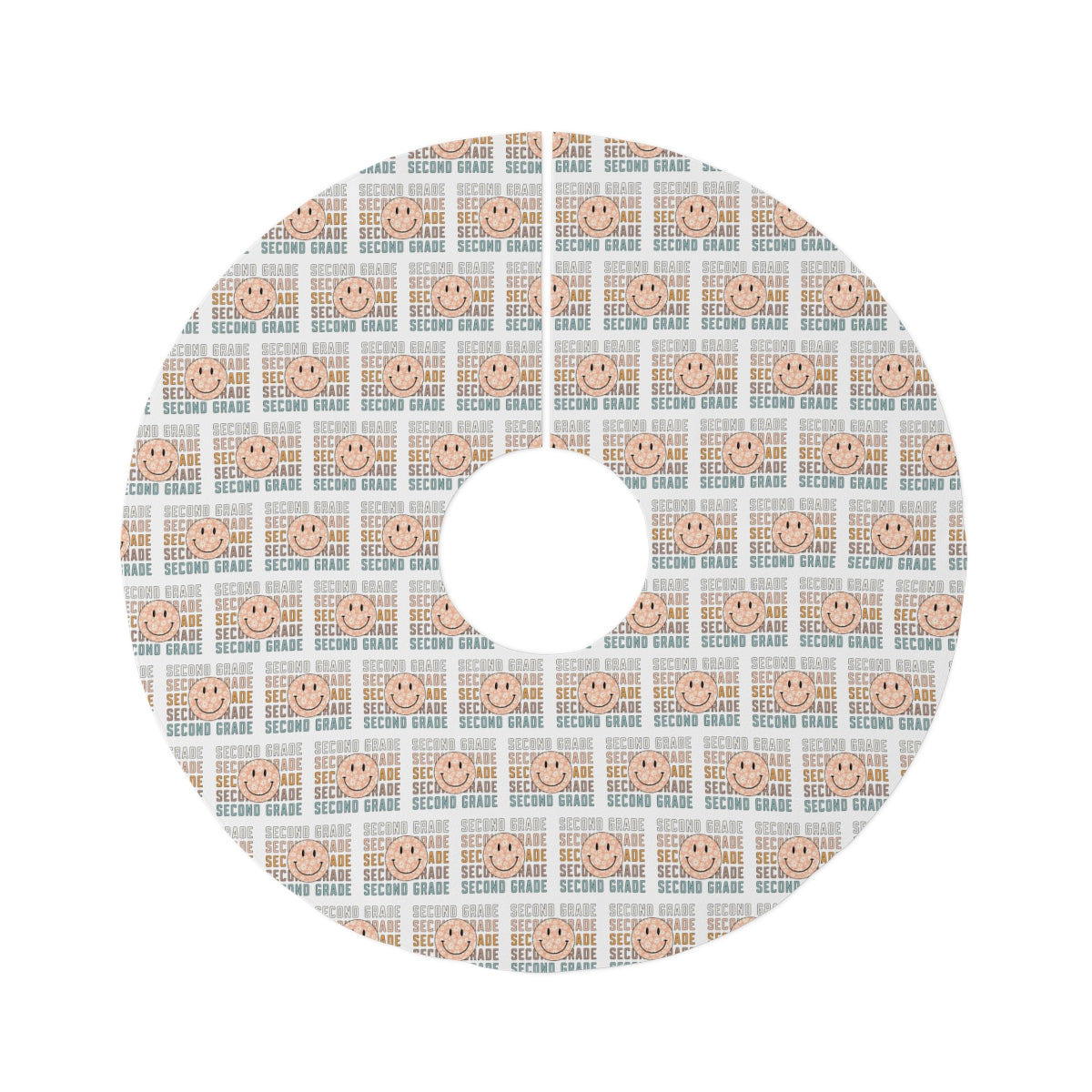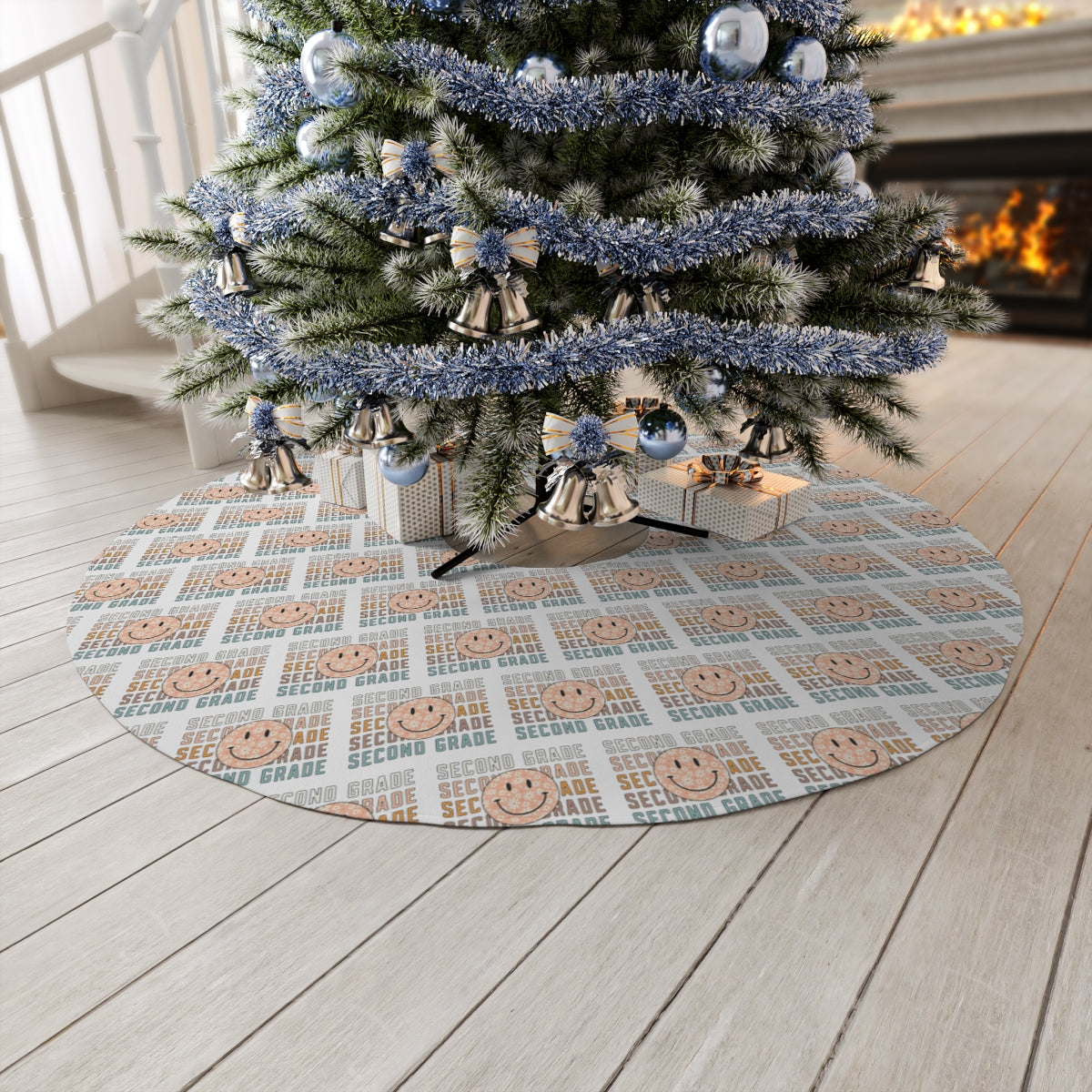 "Second Grade Rustic Orange Smiley Face" White Round Tree Skirt