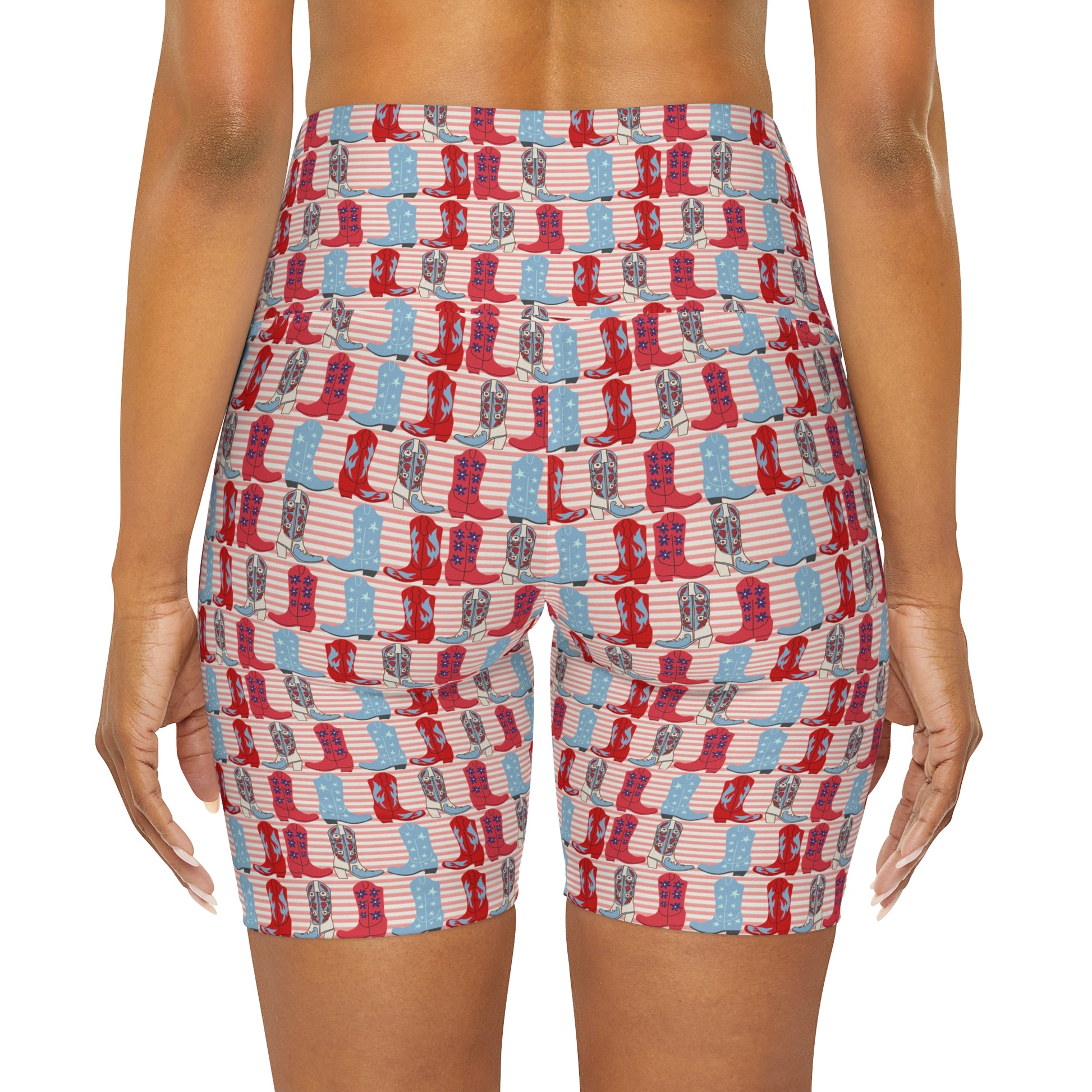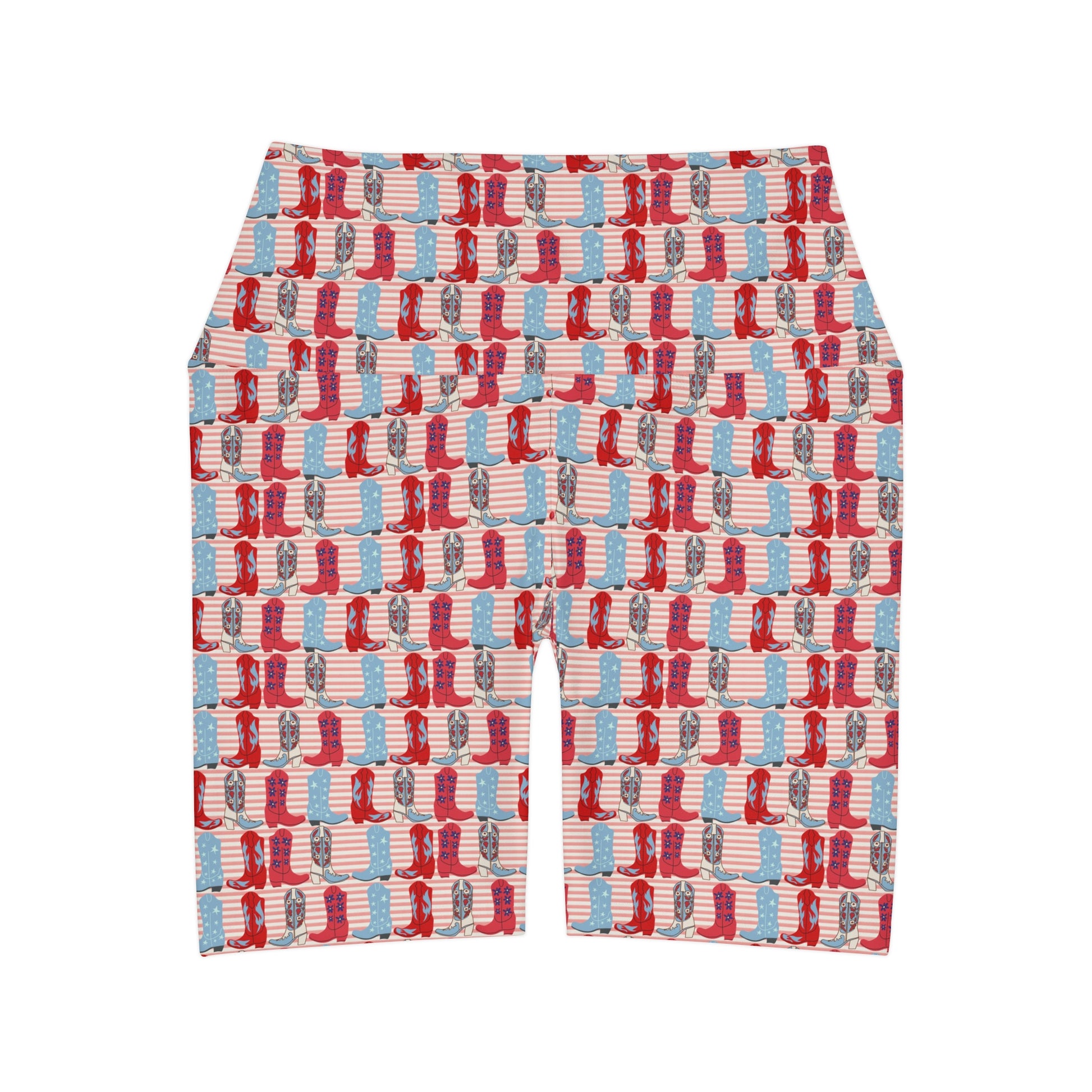 USA American Country Cowboy Boots and Stripes Pattern Yoga Shorts