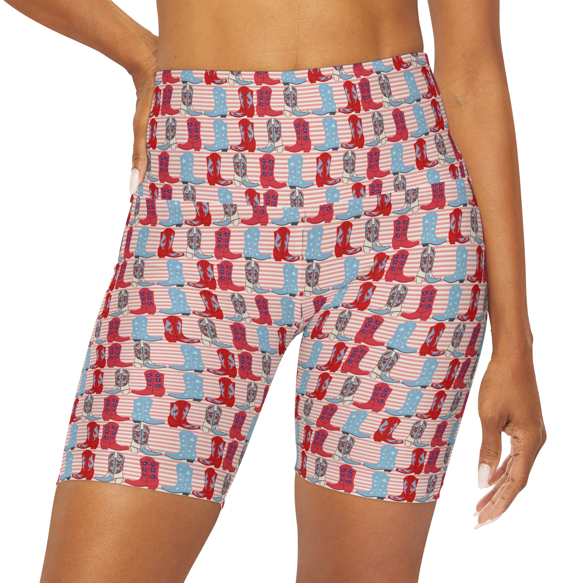American Shorts! USA! 4th of July! Nashville Weekend Yoga Shorts! Nashville merchandise! Cute Country Merchandise! This pair of high-waist yoga shorts boasts a buttery, soft feeling and impeccable style during training sessions and beyond. With a classic high-rise design, these leggings feature a flattering wide double-layered waistband with comfortable hidden elastic. Place your art in stunning detail and treat yoga fans everywhere to a pair that is bound to be an instant favorite.