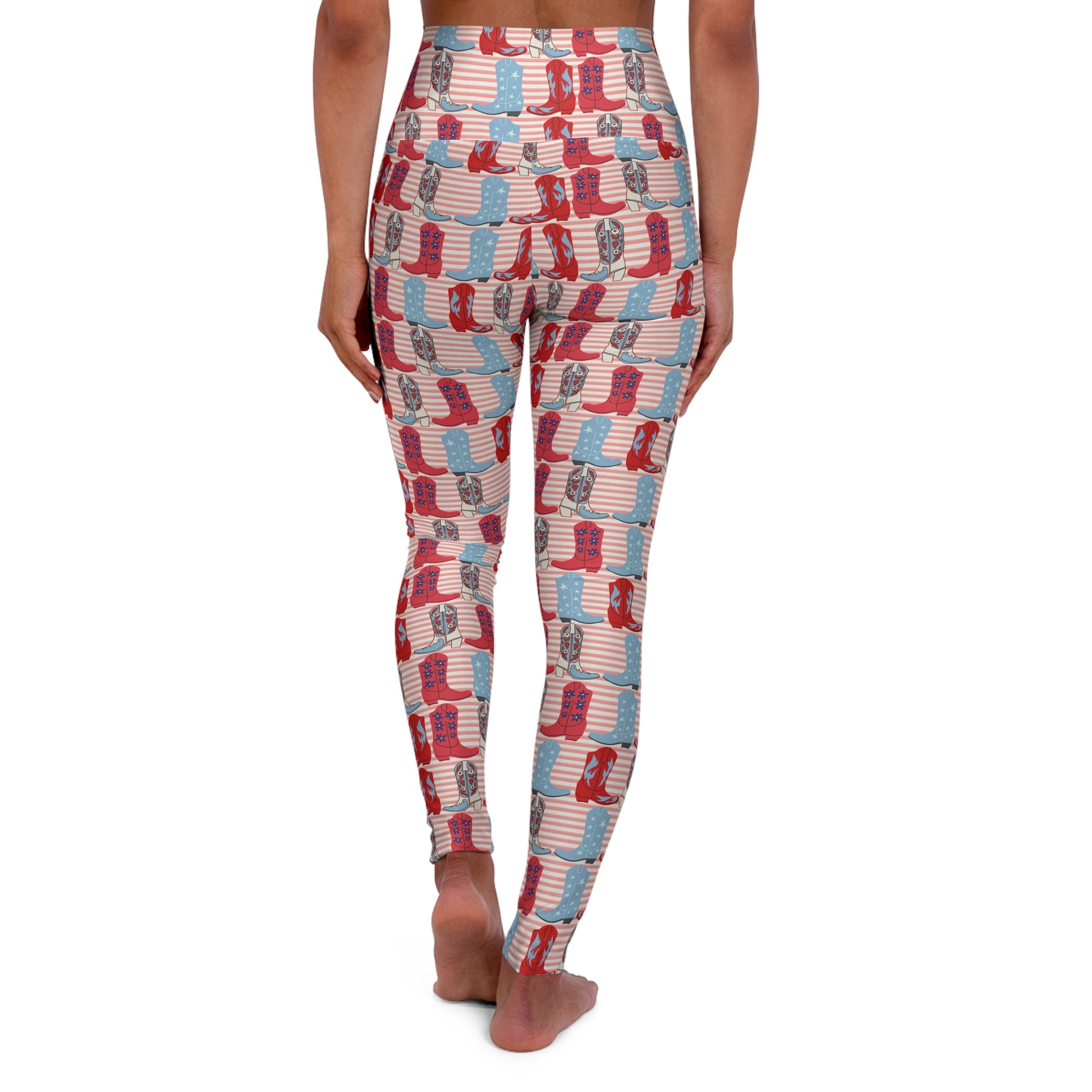 USA American Cowboy Boots High Waisted White Yoga Leggings
