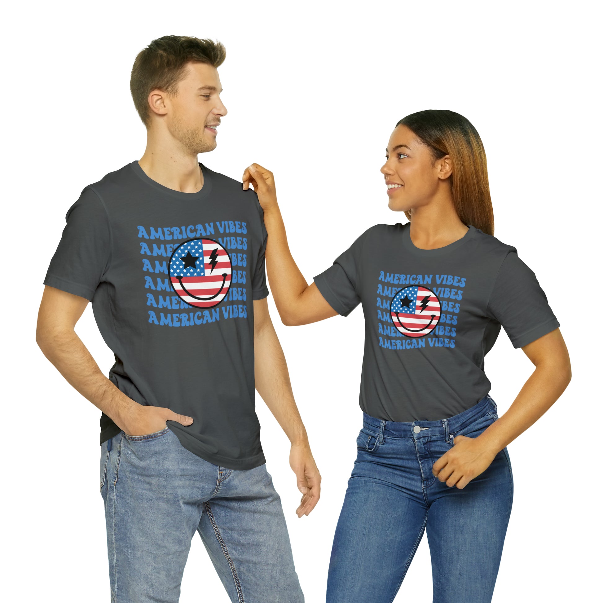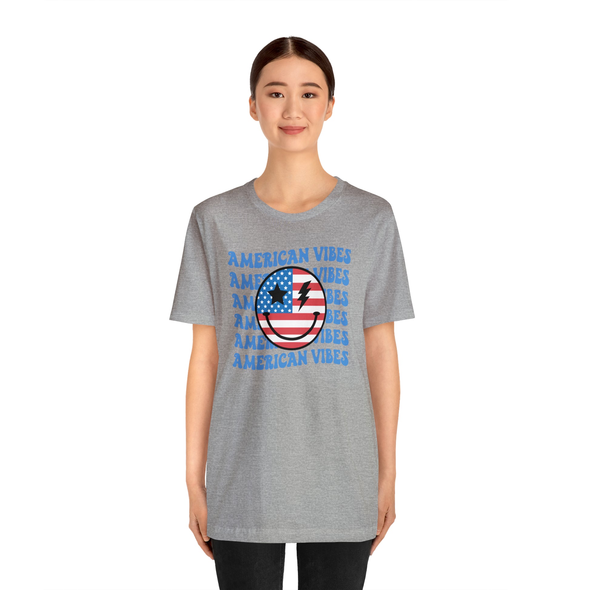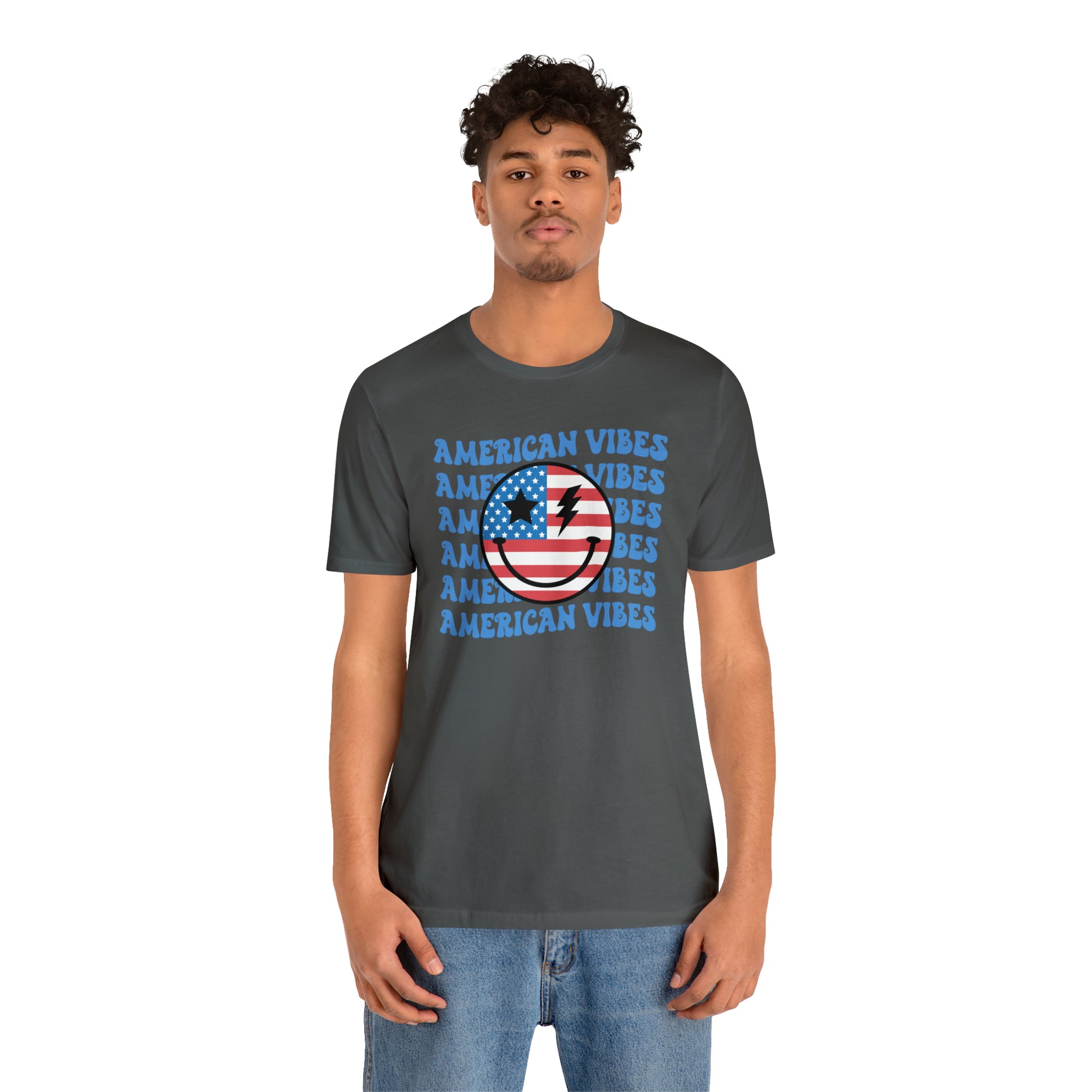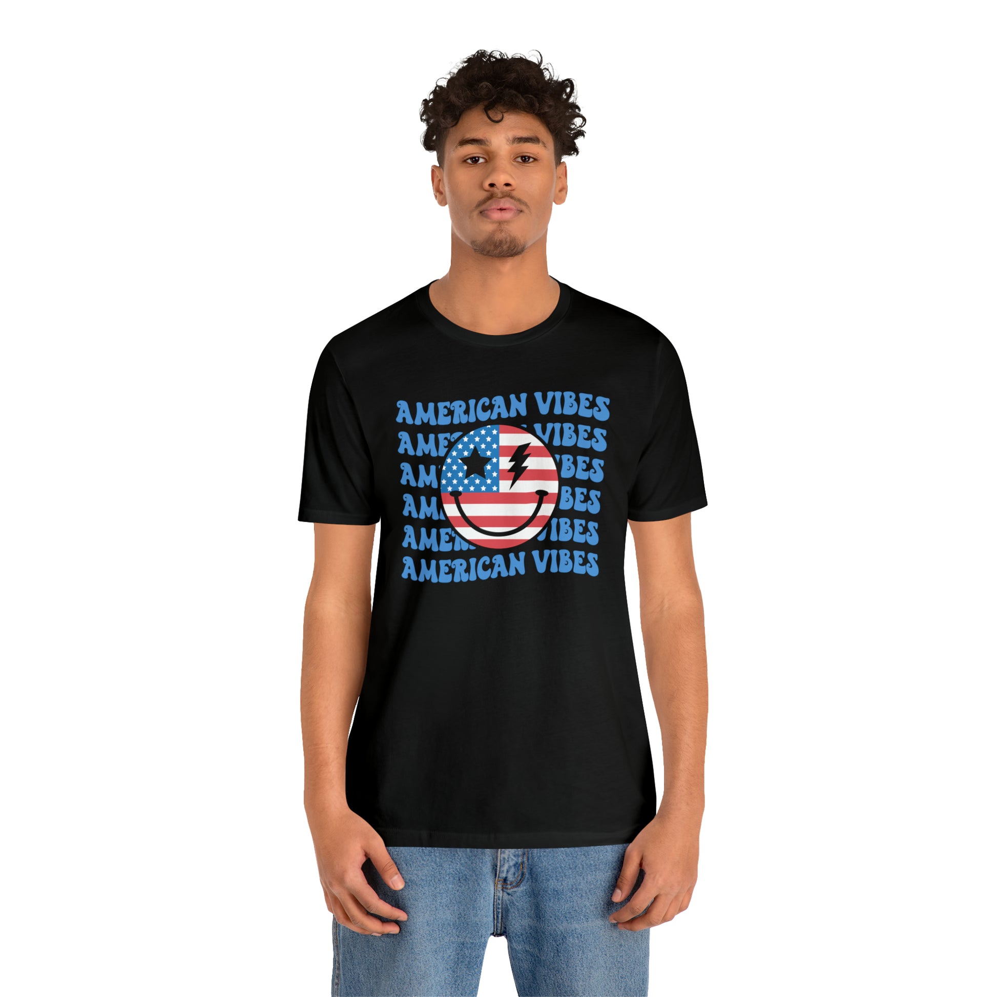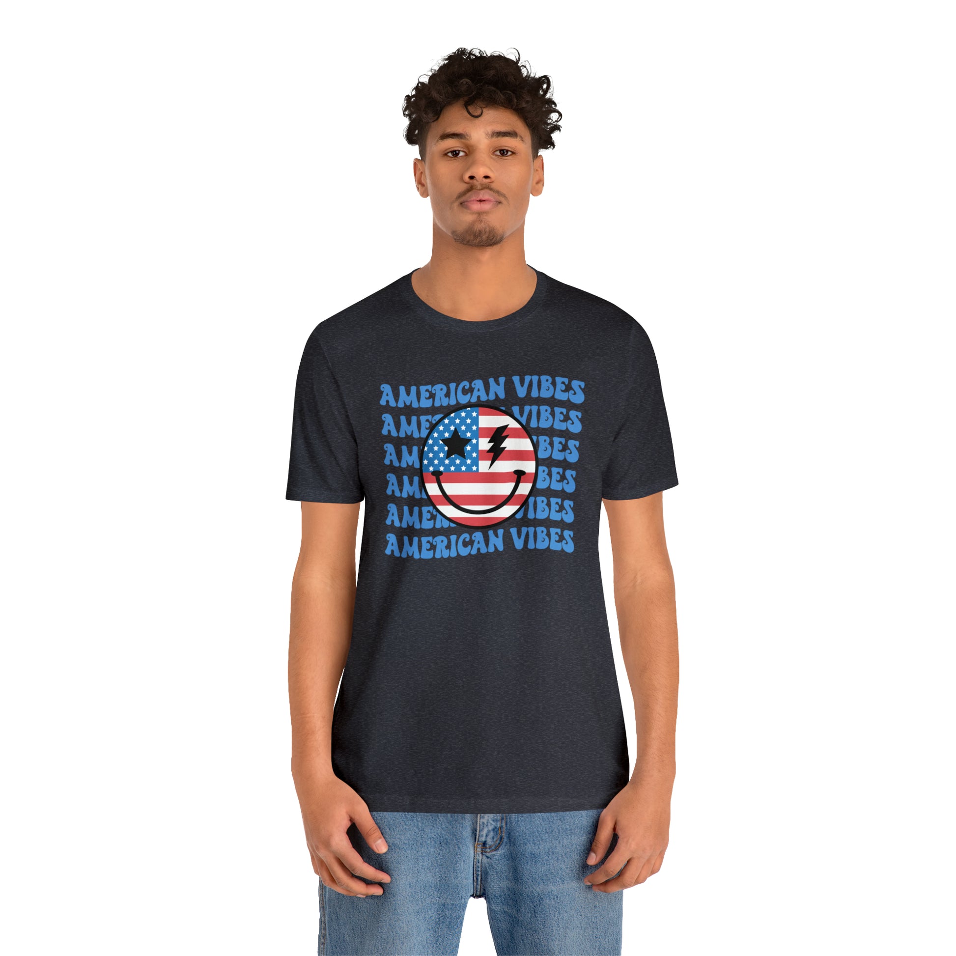 USA American Vibes American Flag Smiley Face Unisex Jersey Short Sleeve Tee
