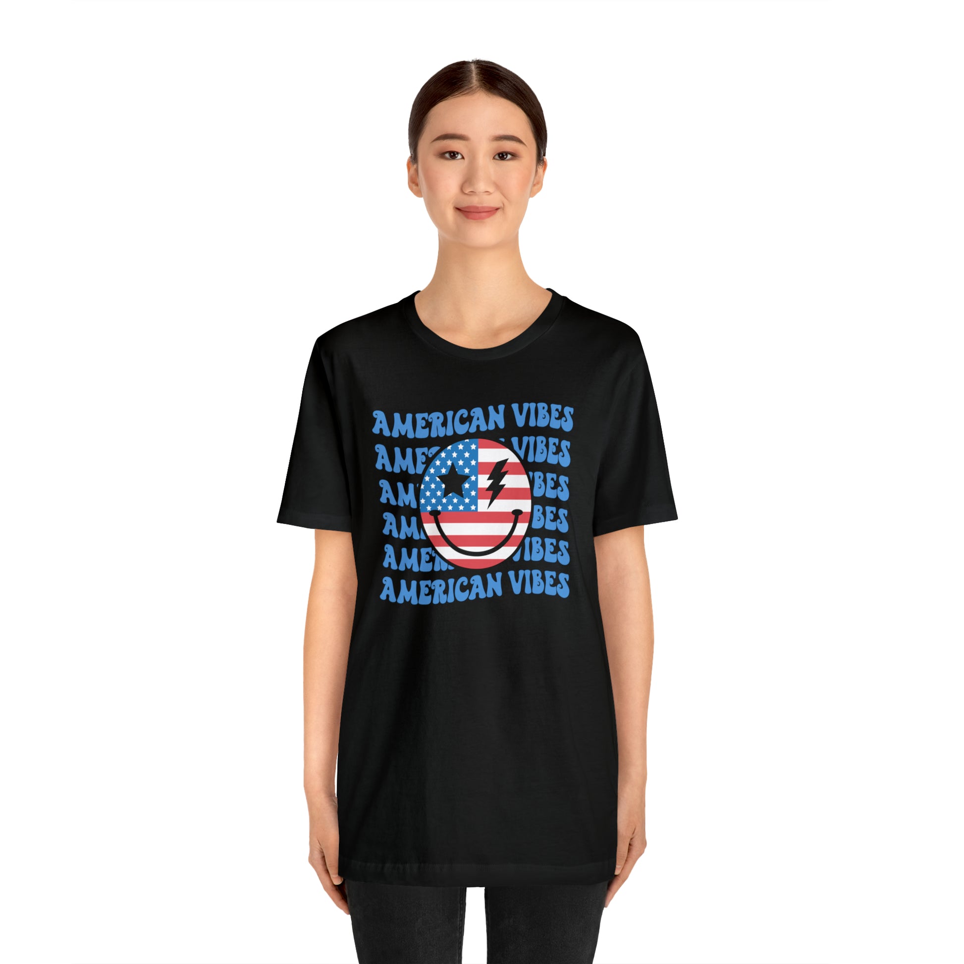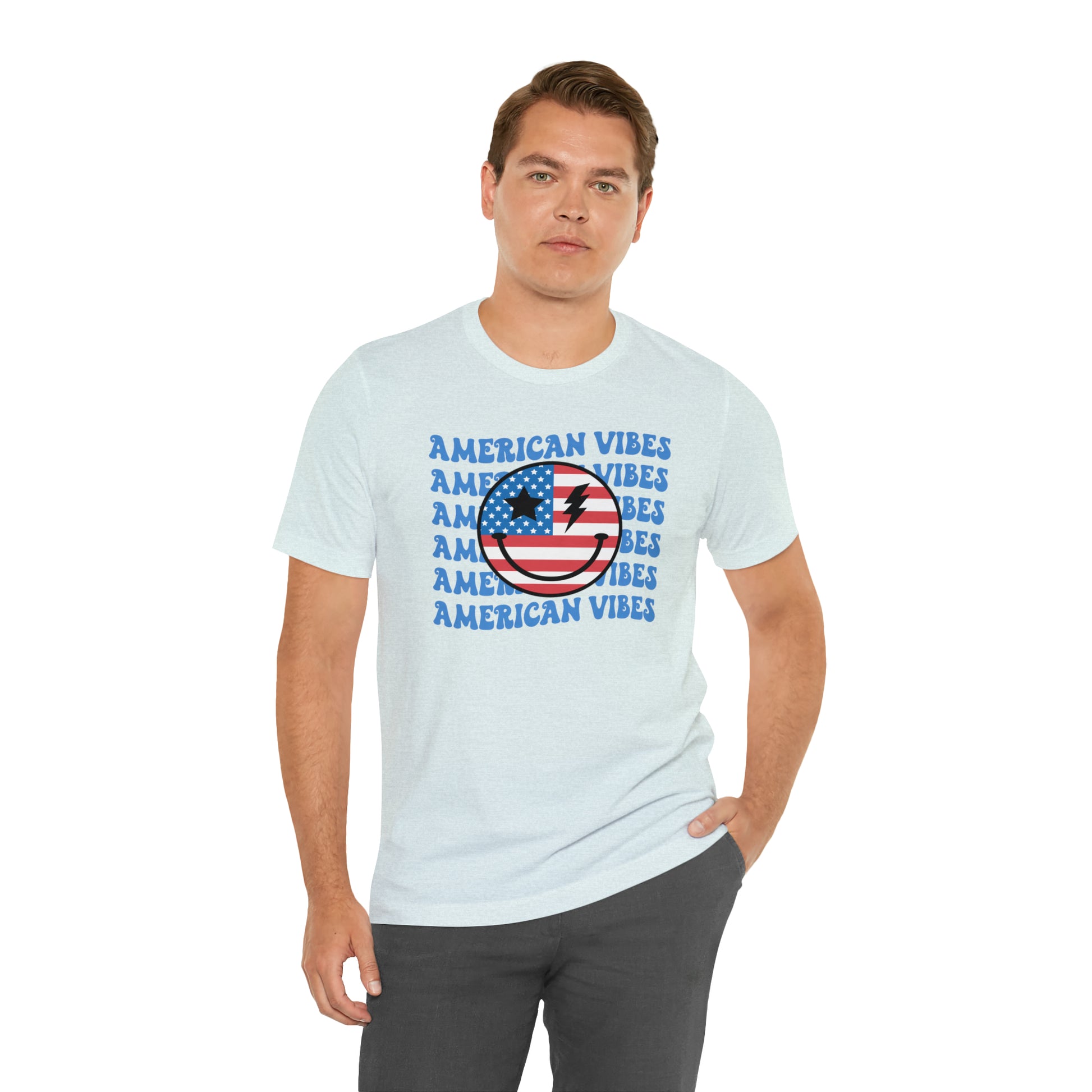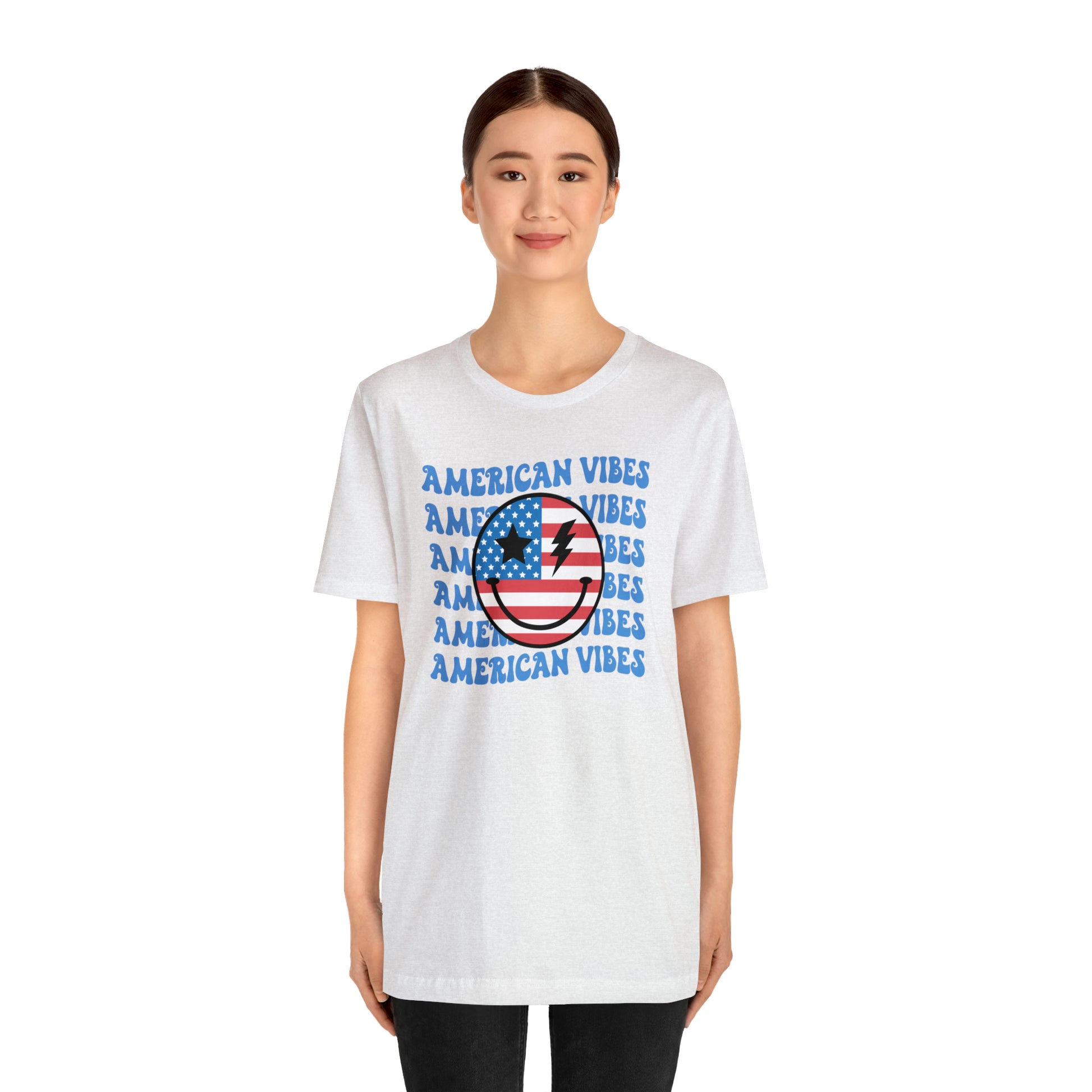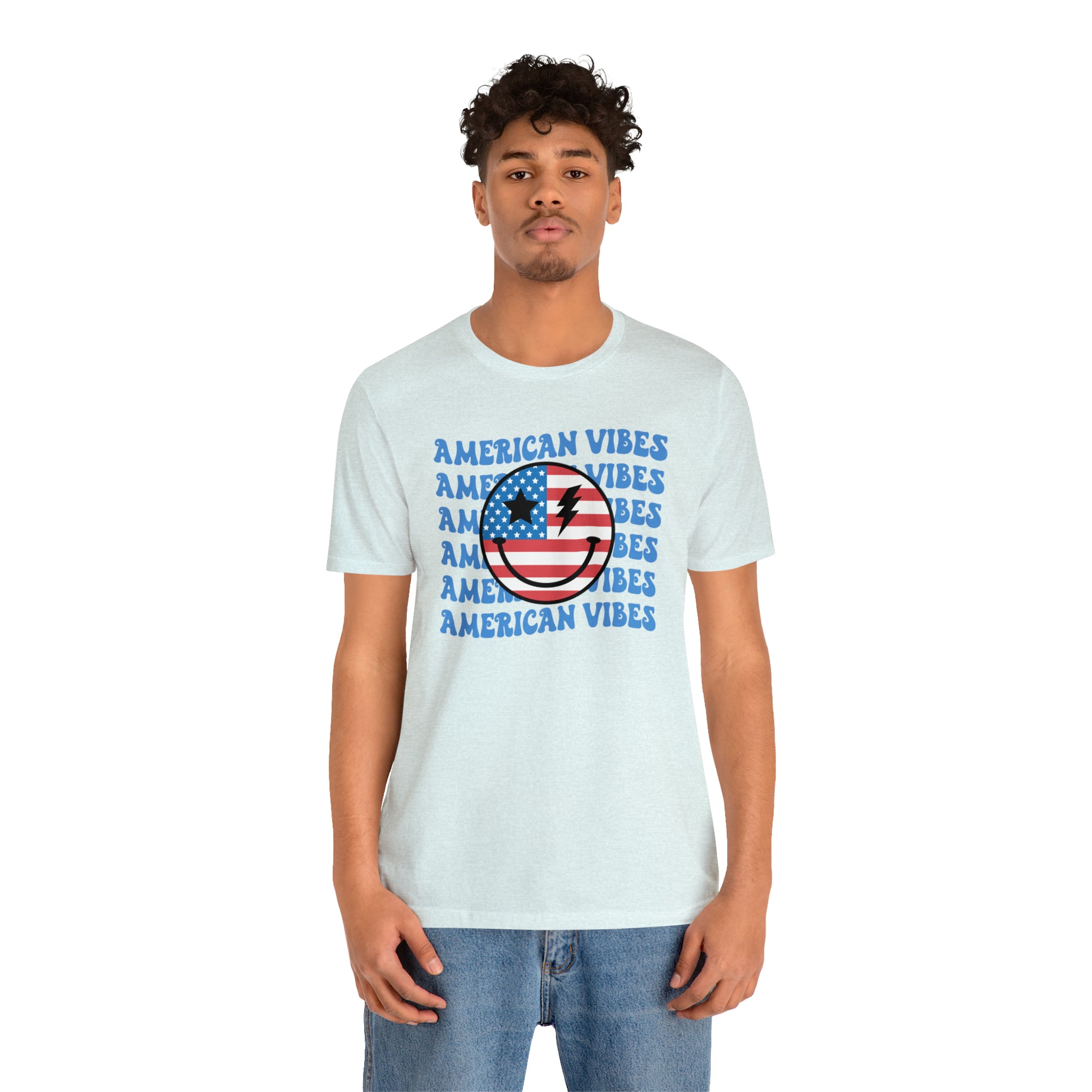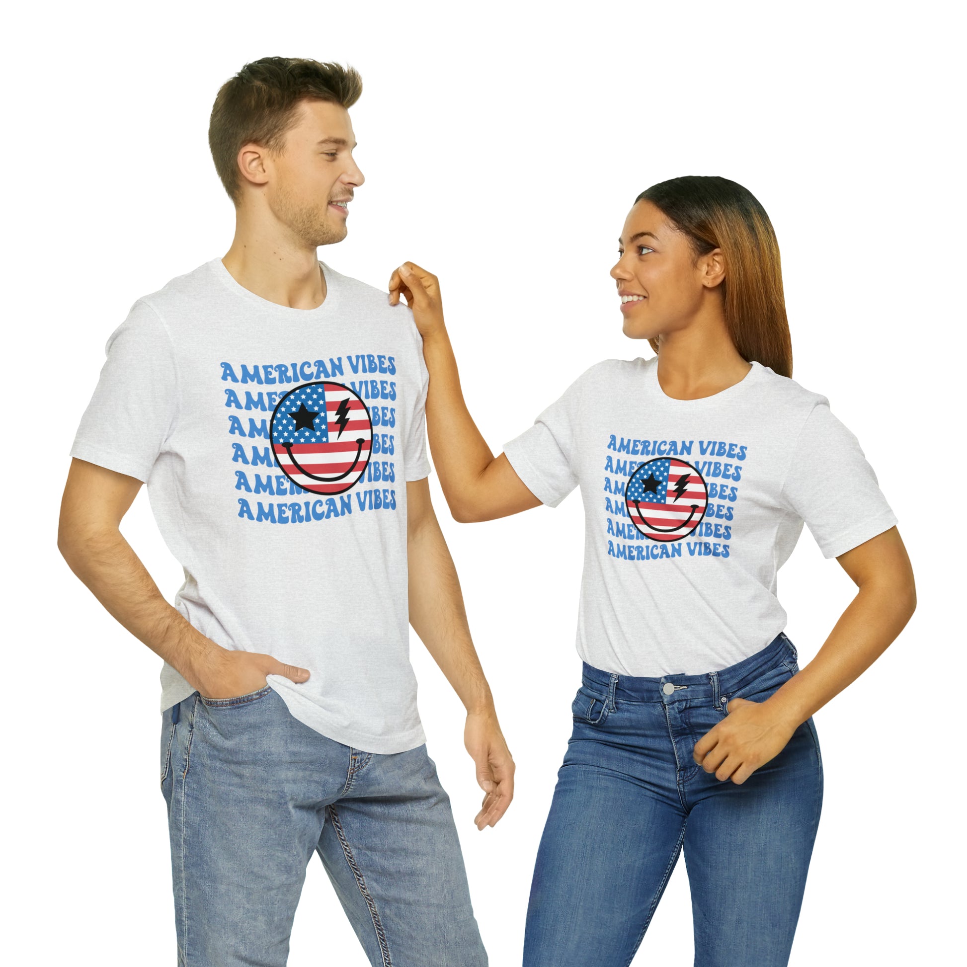 USA American Vibes American Flag Smiley Face Unisex Jersey Short Sleeve Tee