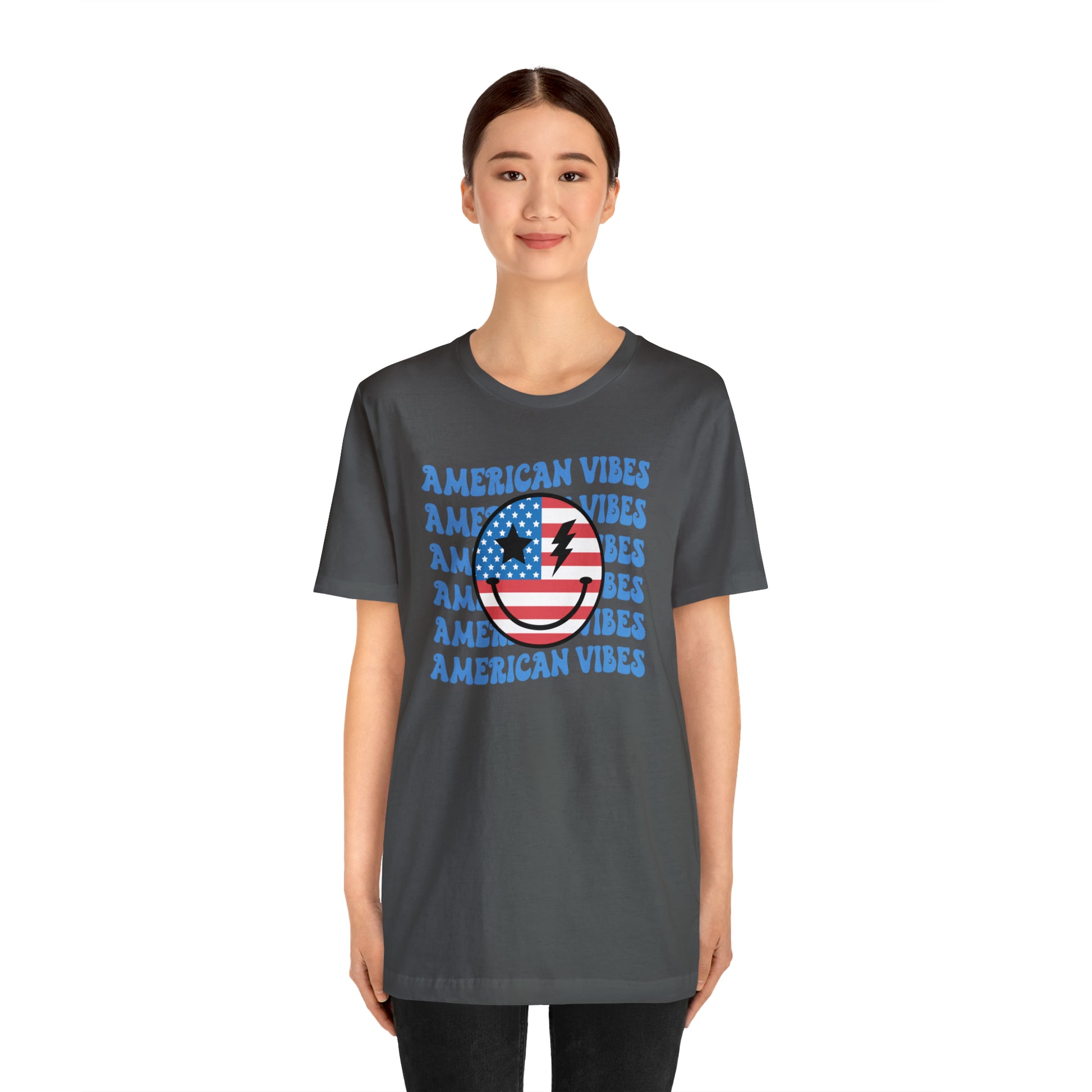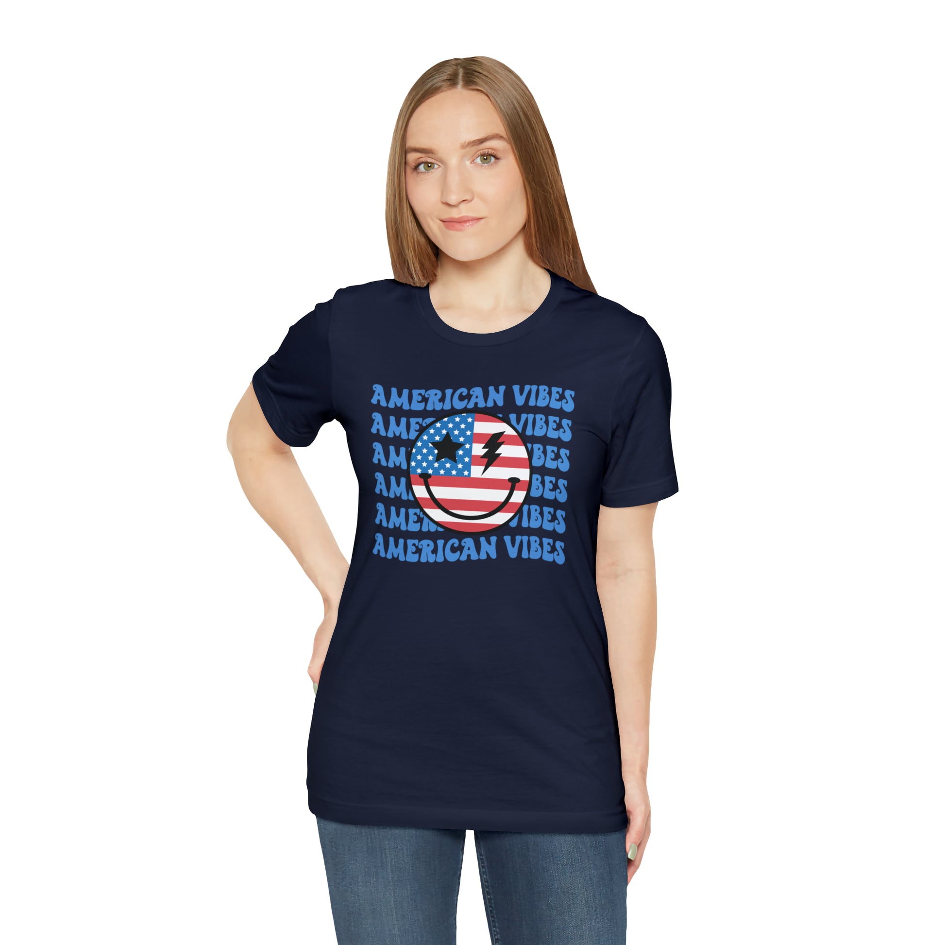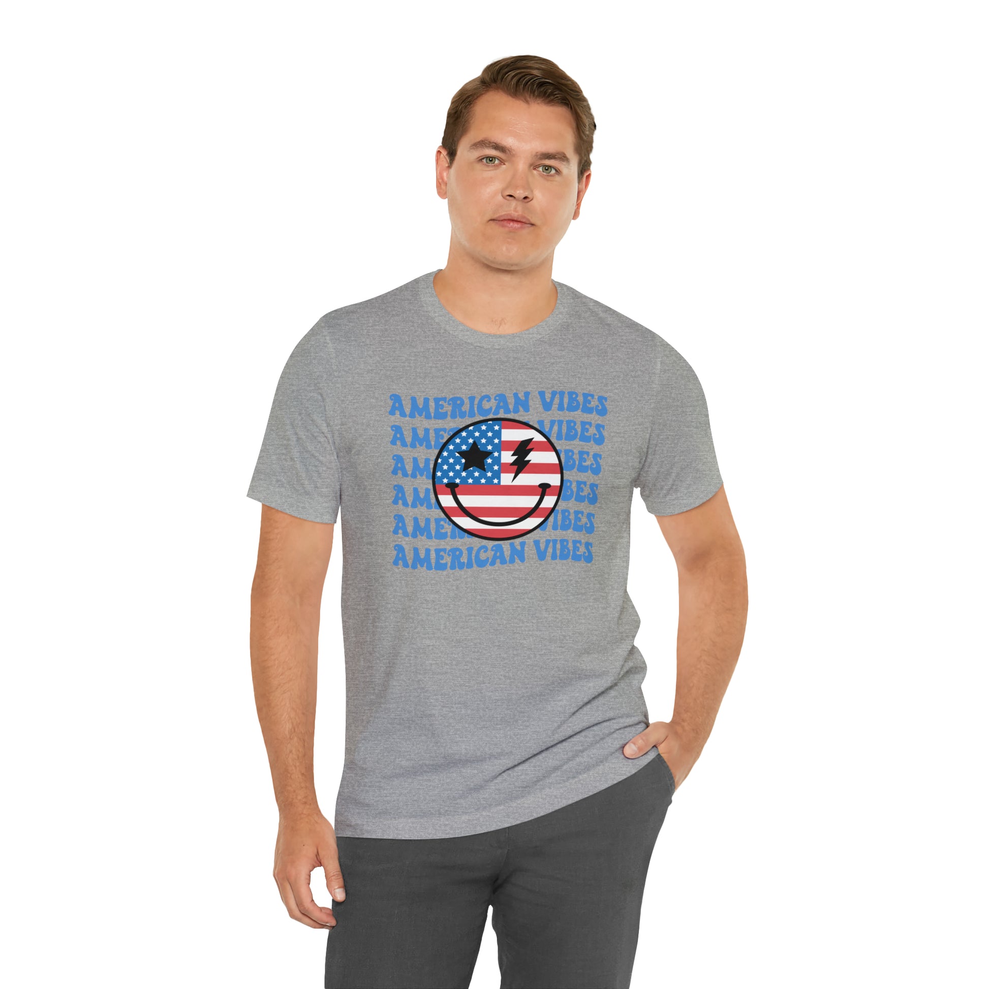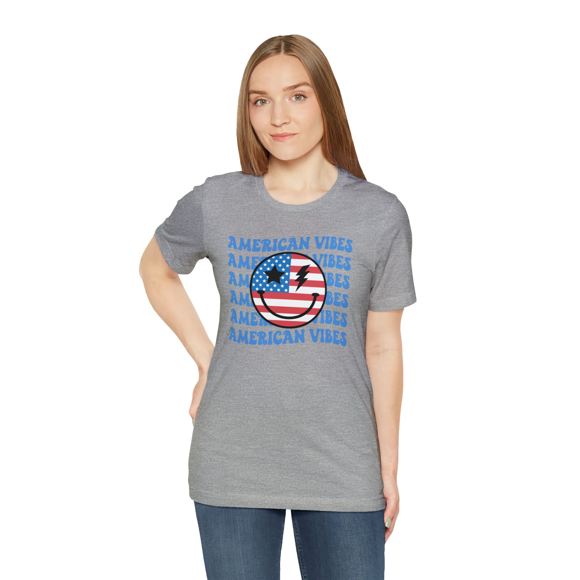 USA American Vibes American Flag Smiley Face Unisex Jersey Short Sleeve Tee
