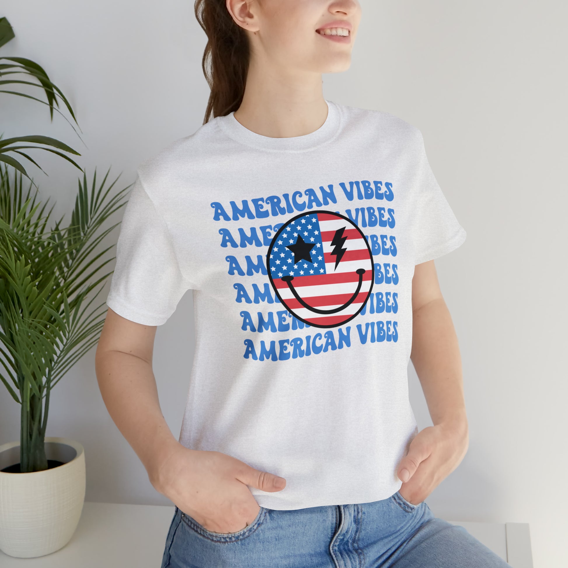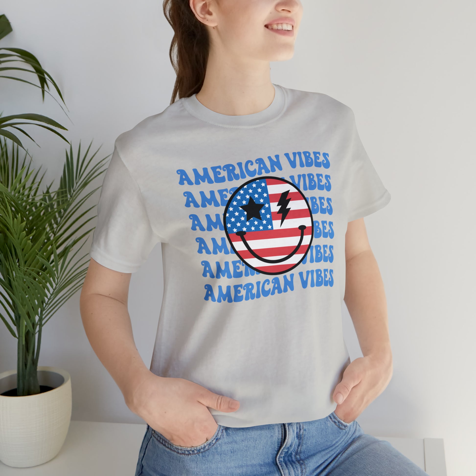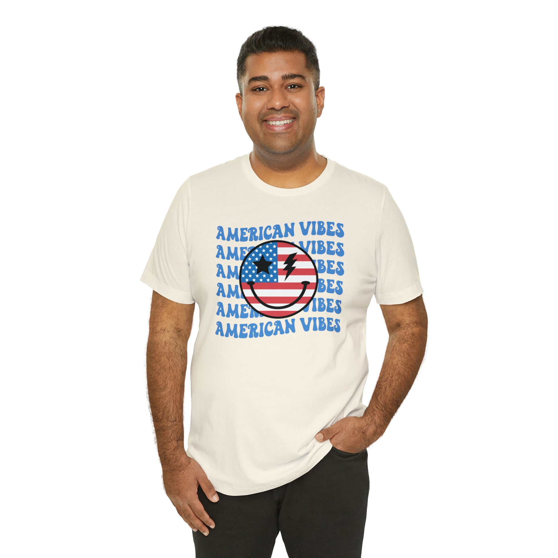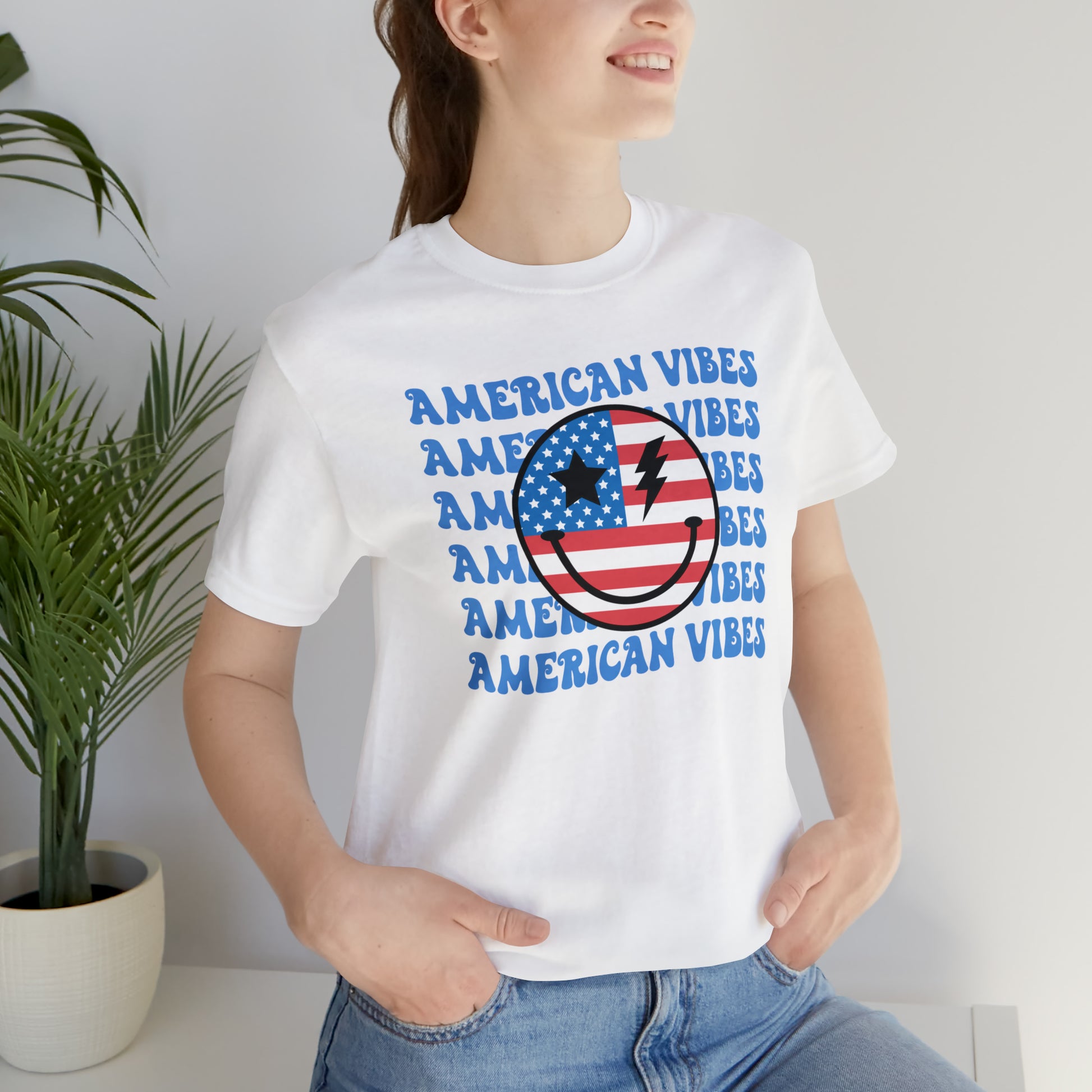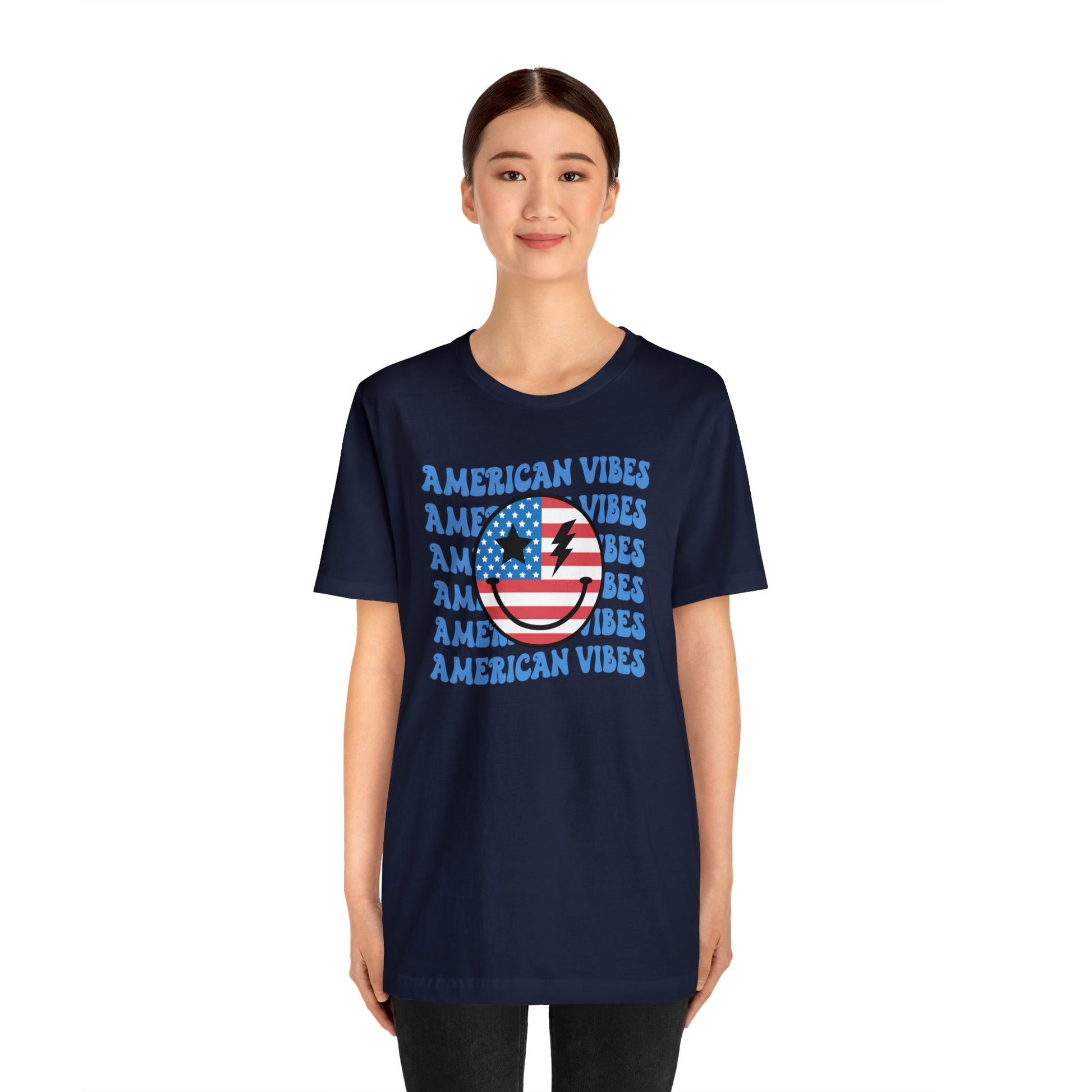 USA American Vibes American Flag Smiley Face Unisex Jersey Short Sleeve Tee
