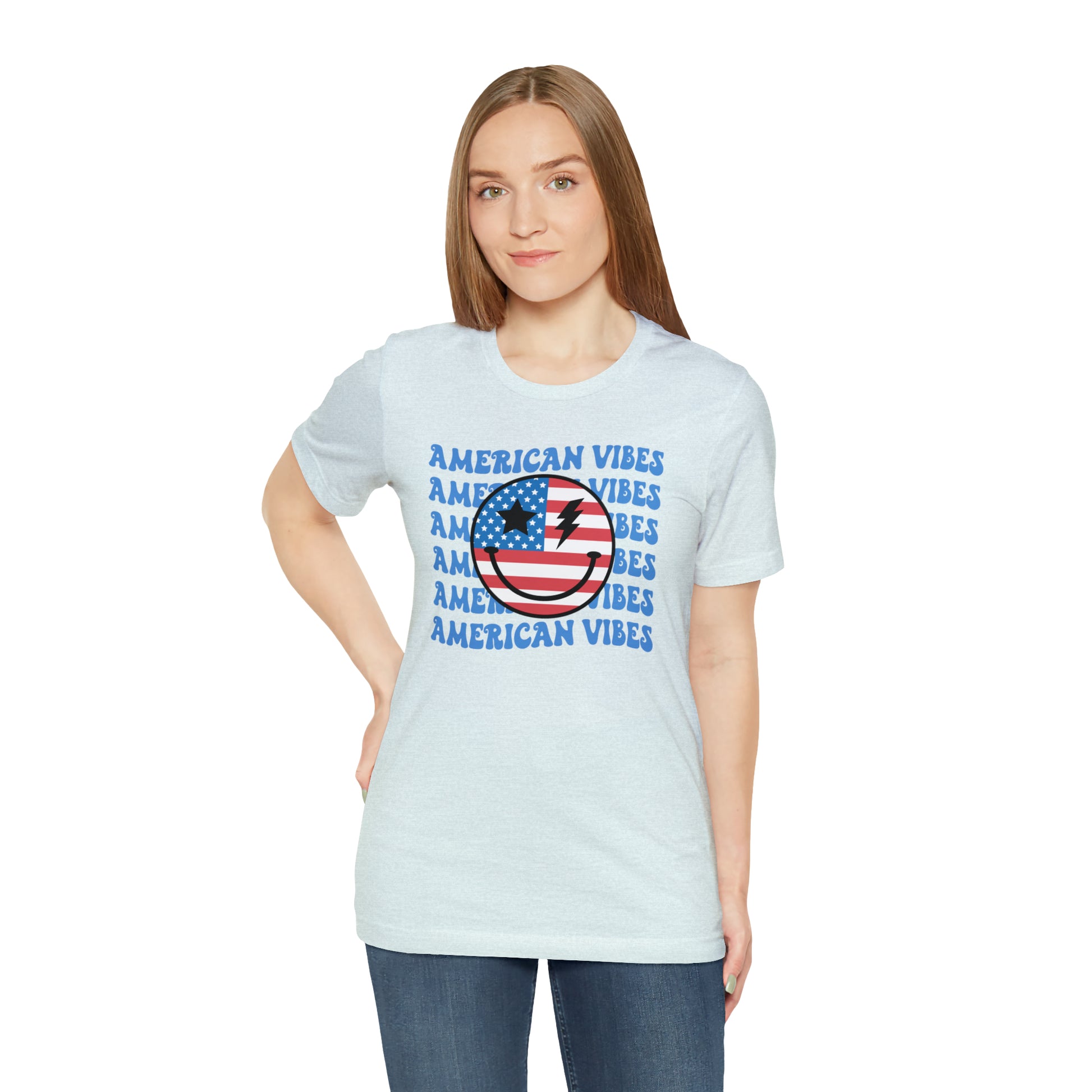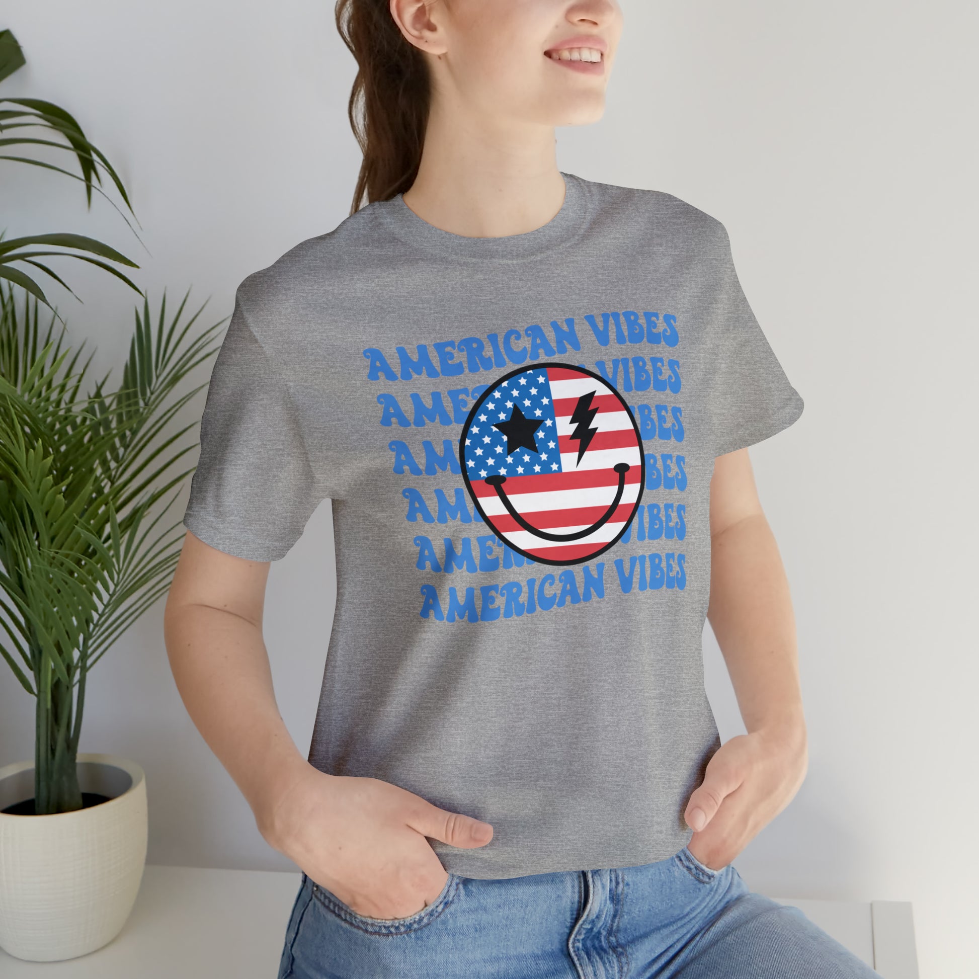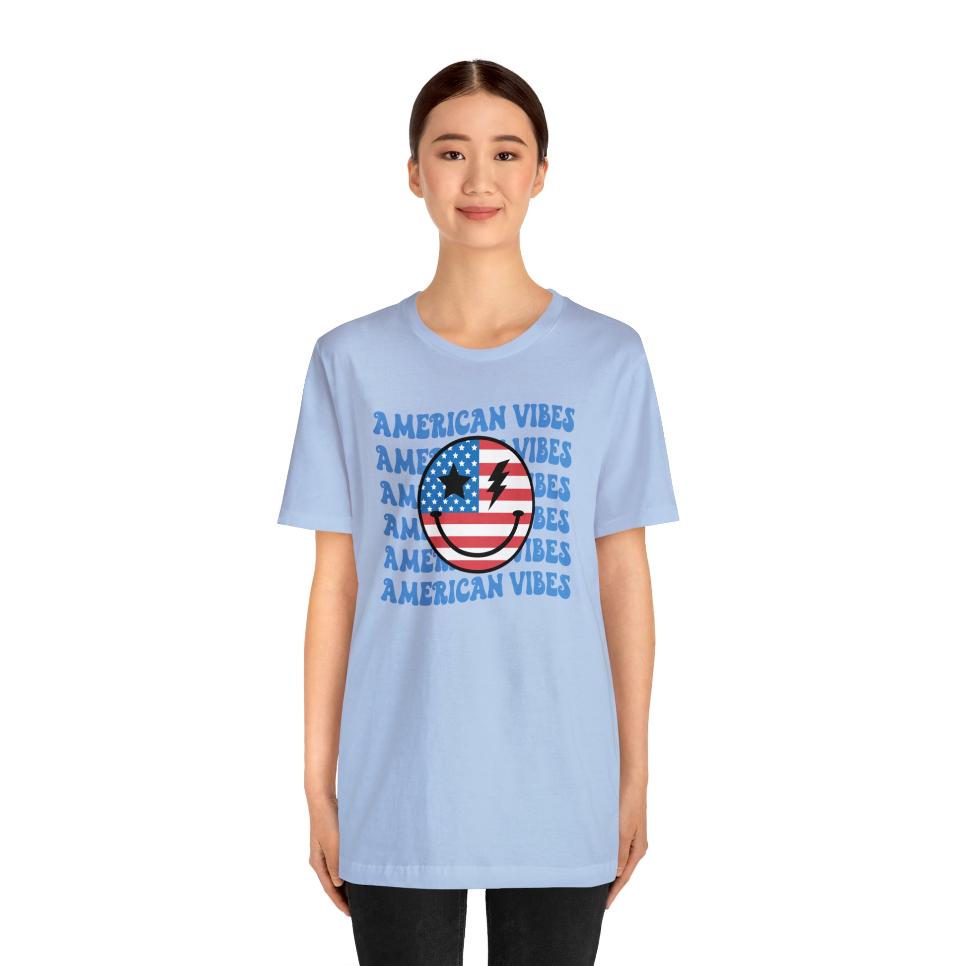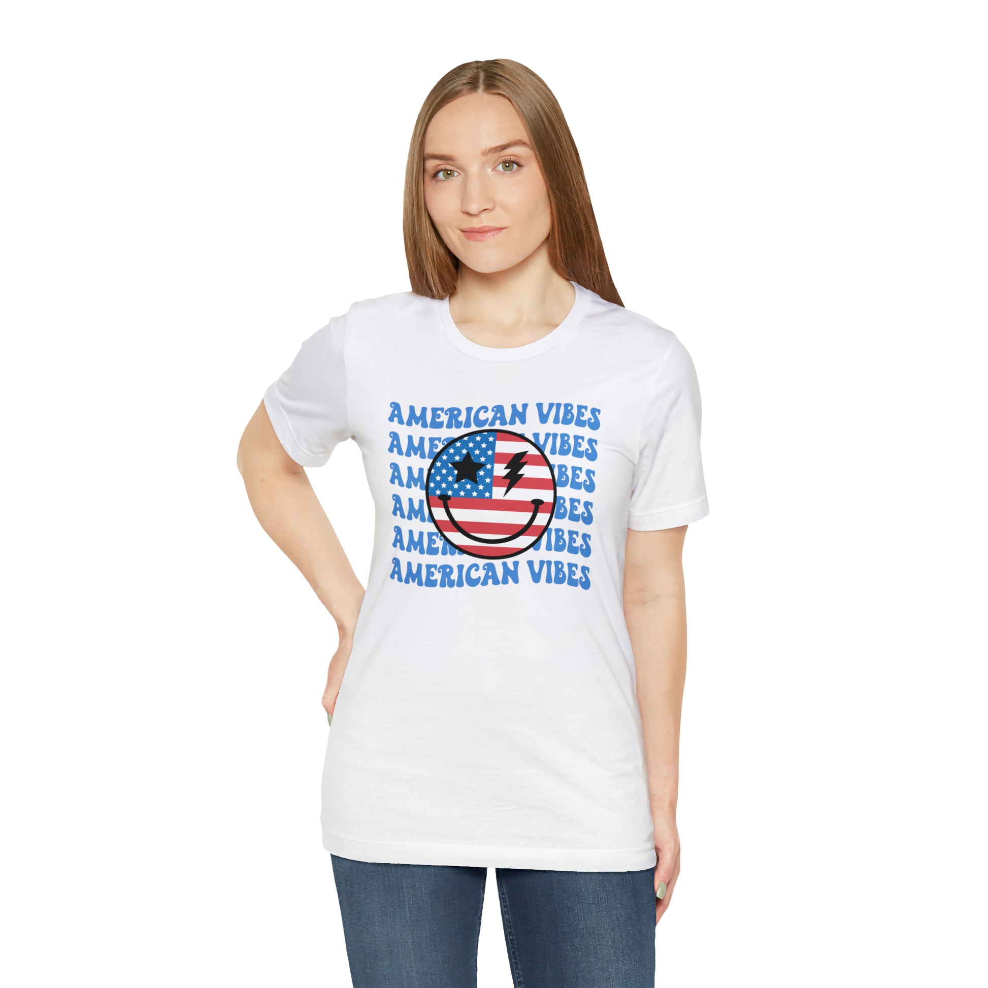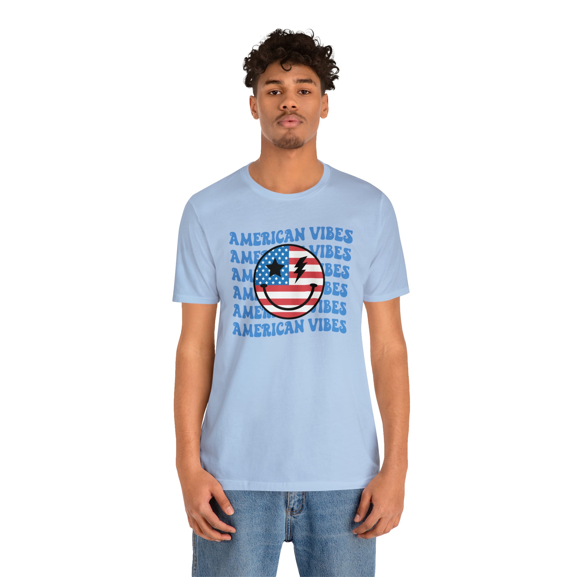 USA American Vibes American Flag Smiley Face Unisex Jersey Short Sleeve Tee