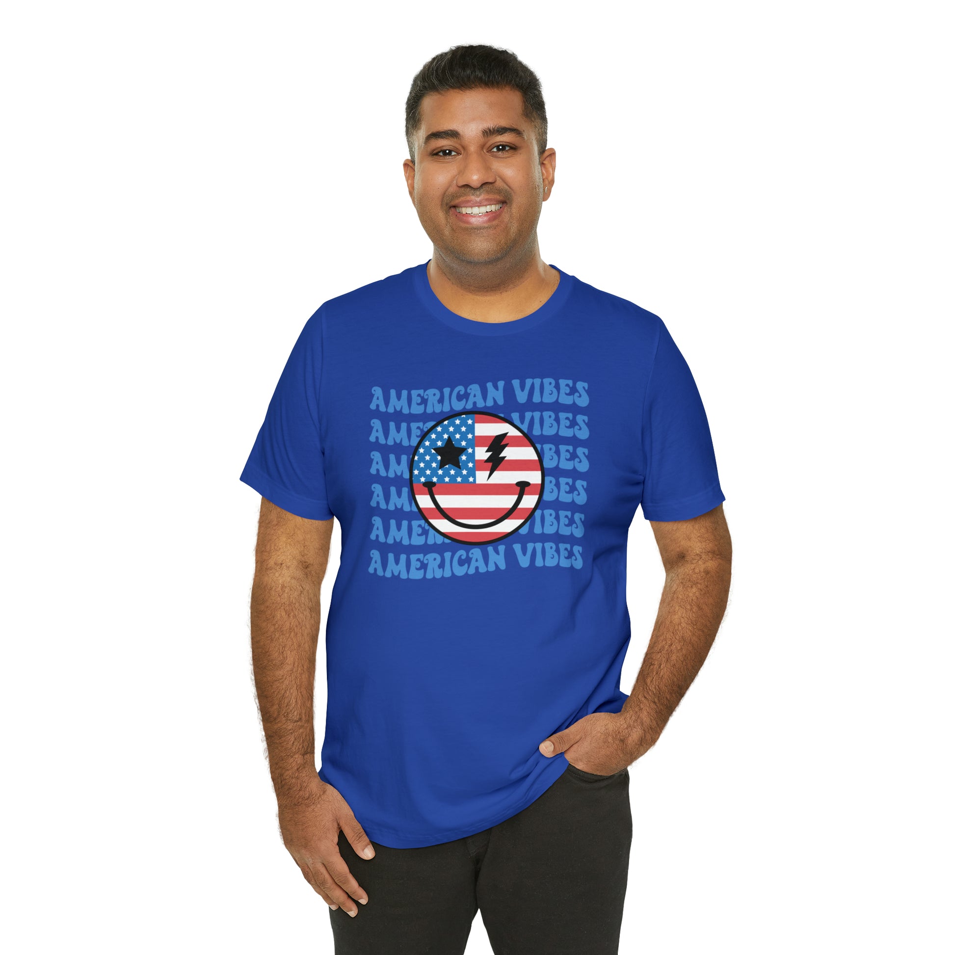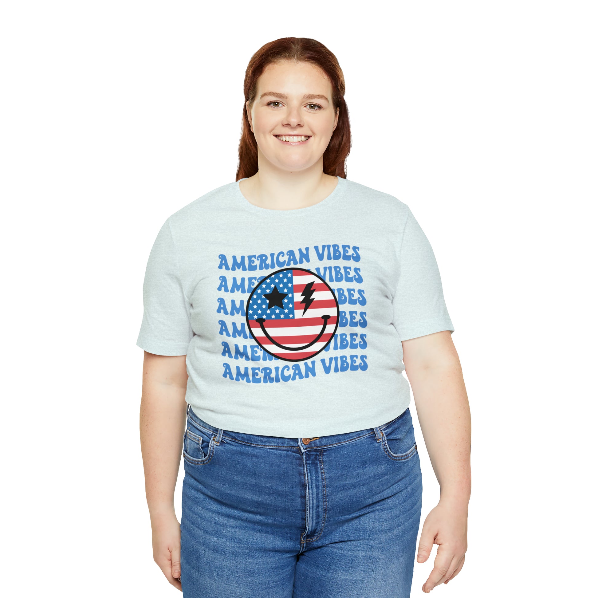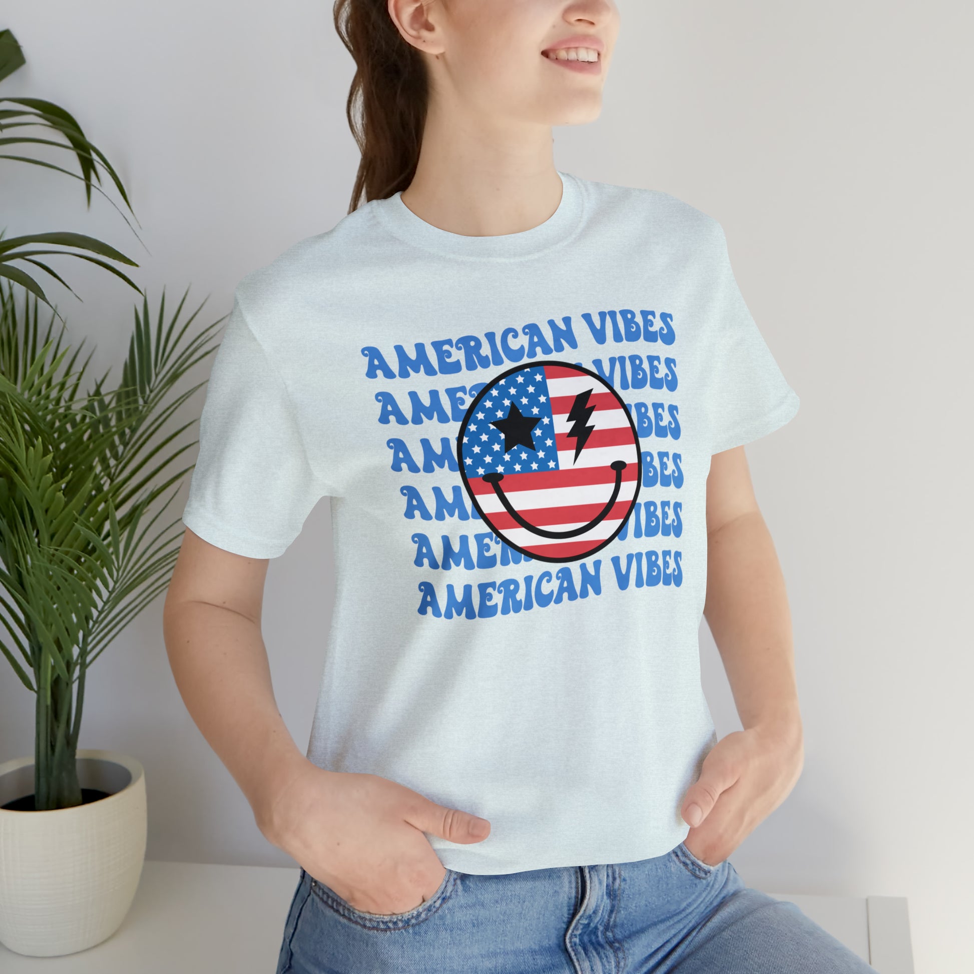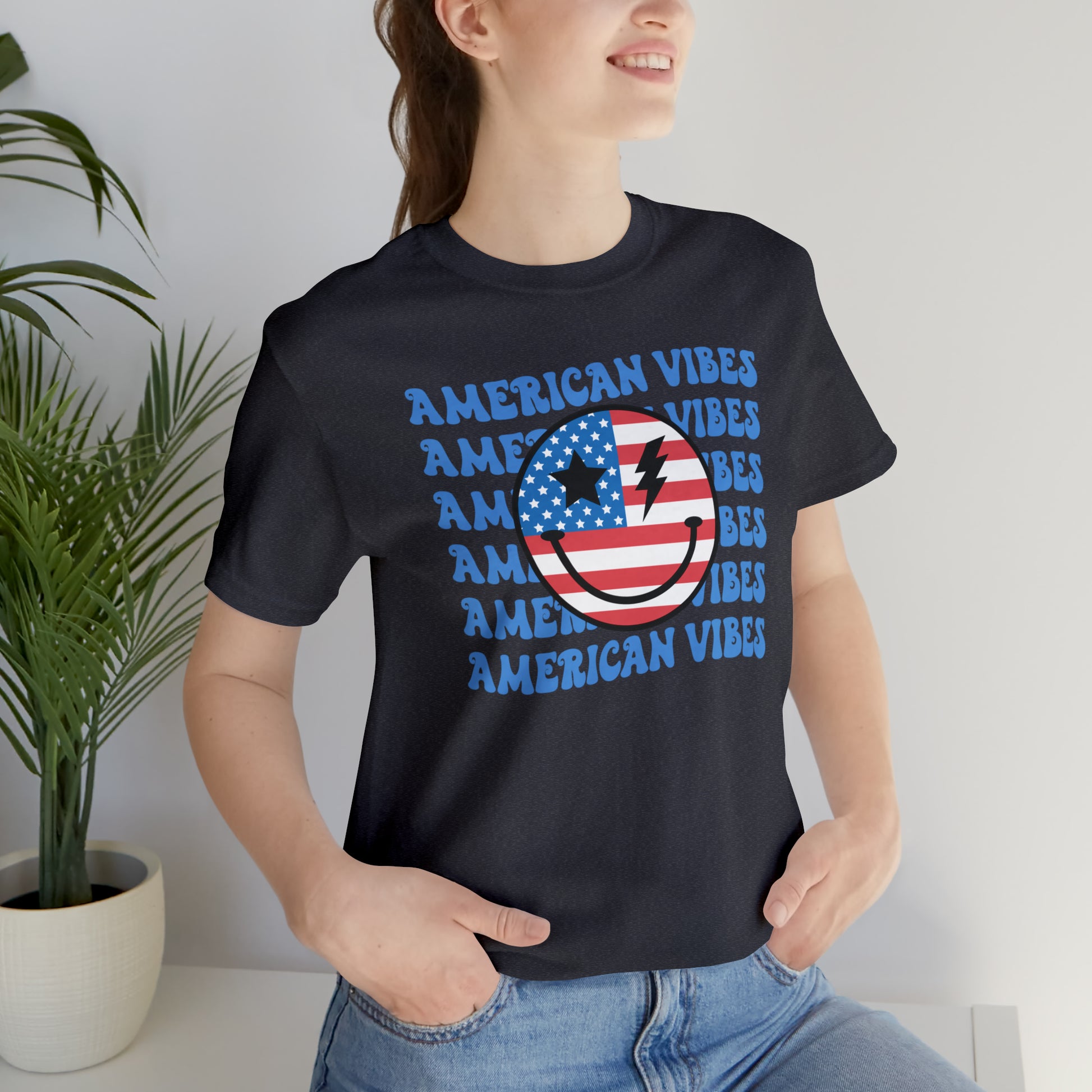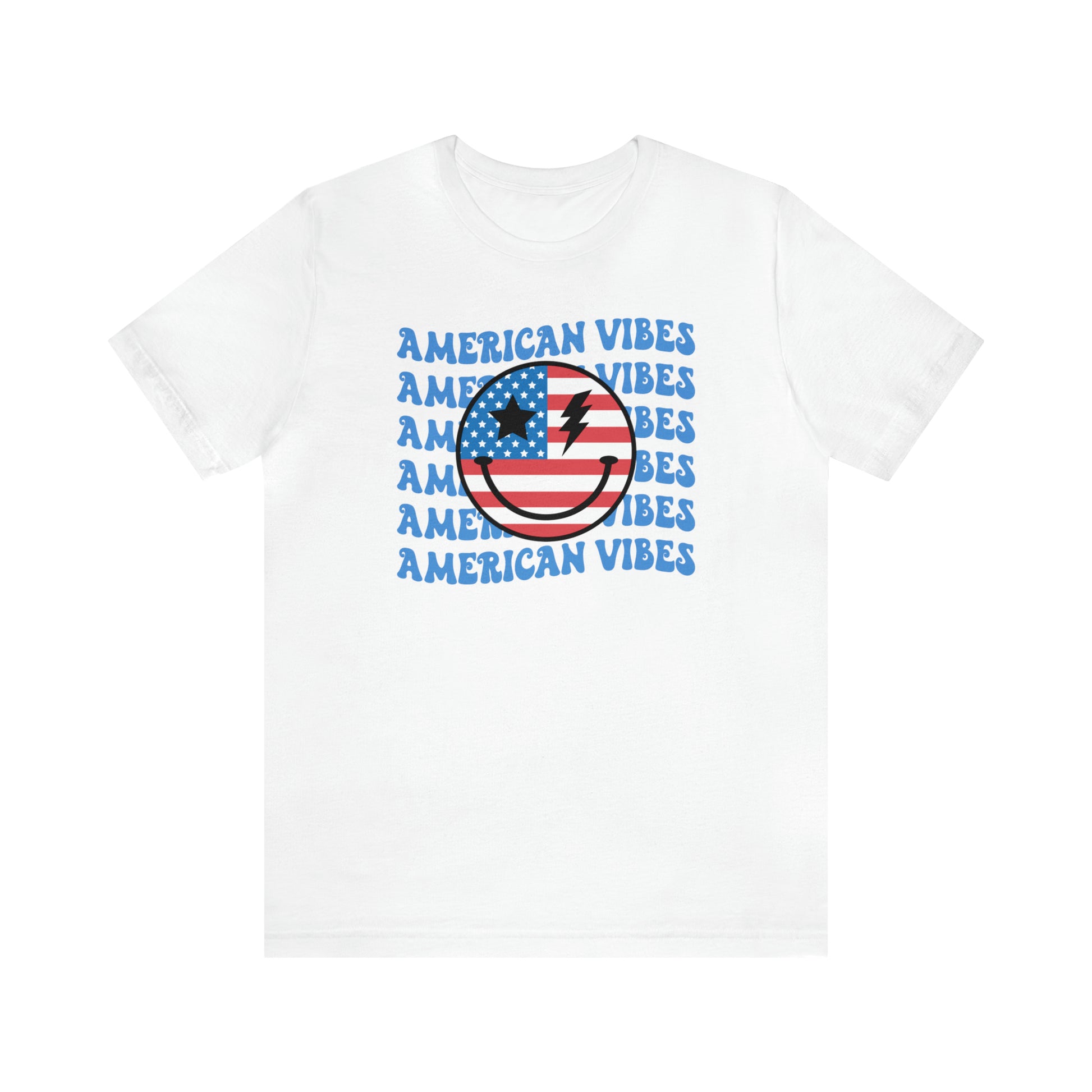 USA American Vibes American Flag Smiley Face Unisex Jersey Short Sleeve Tee