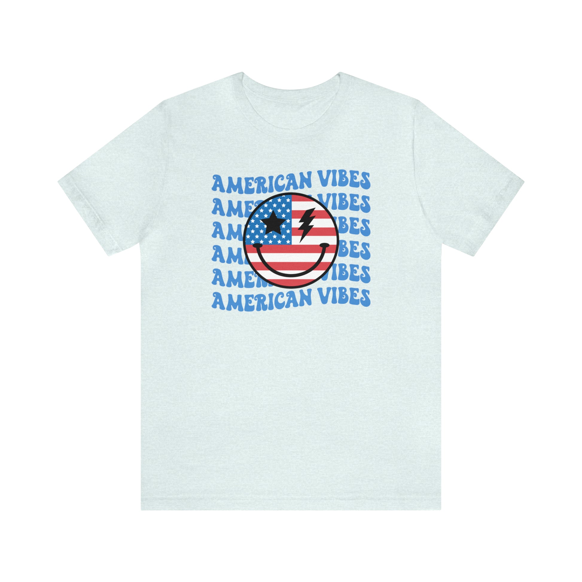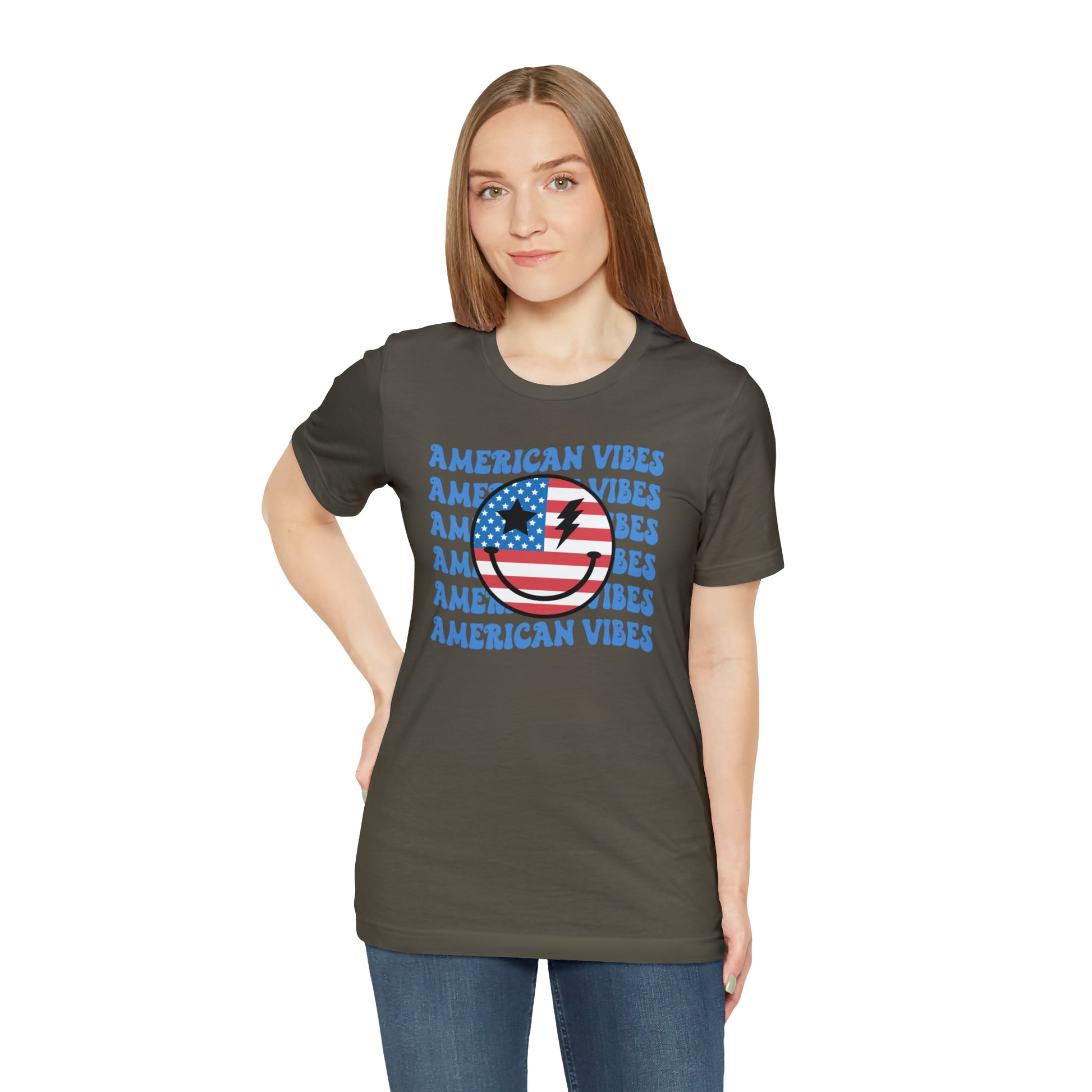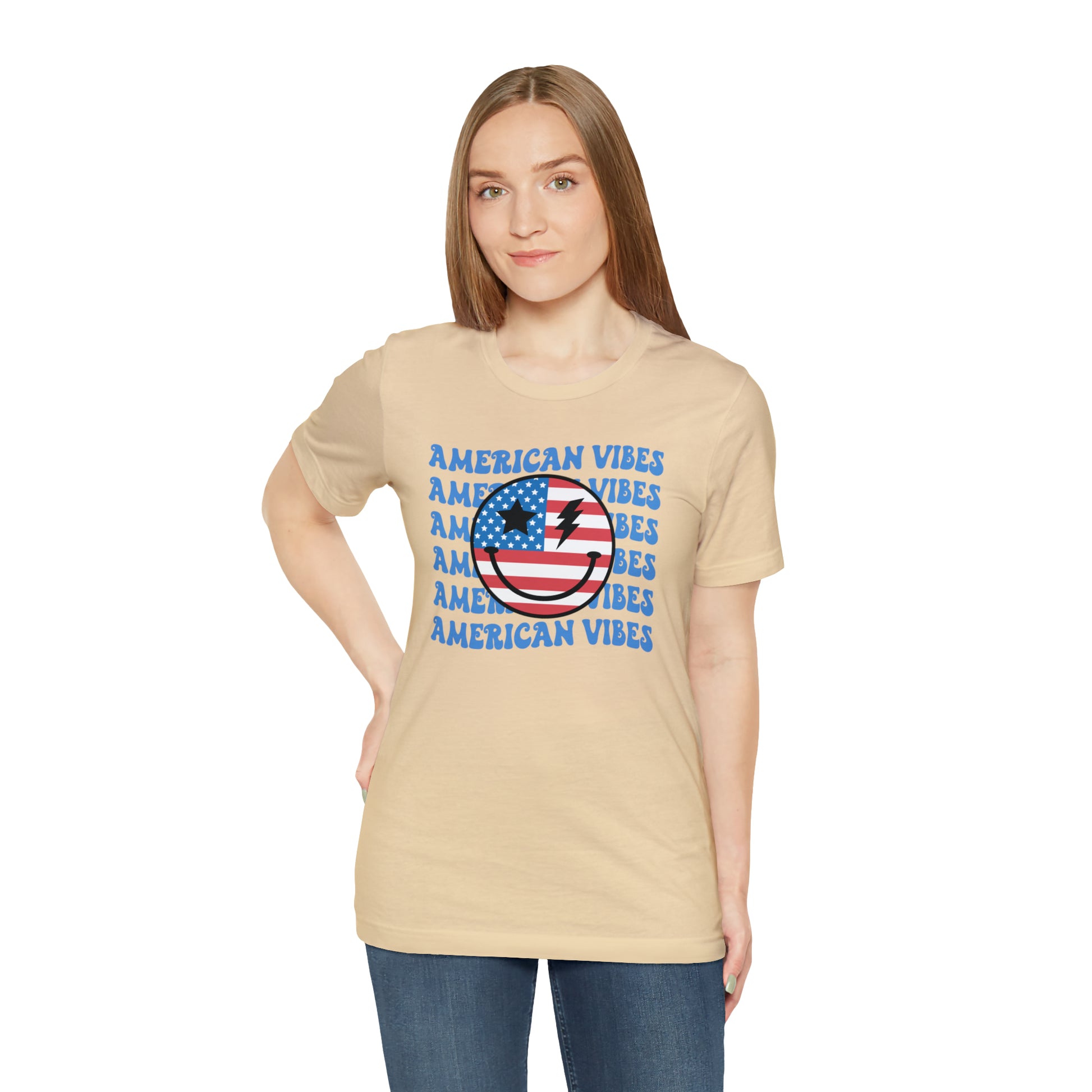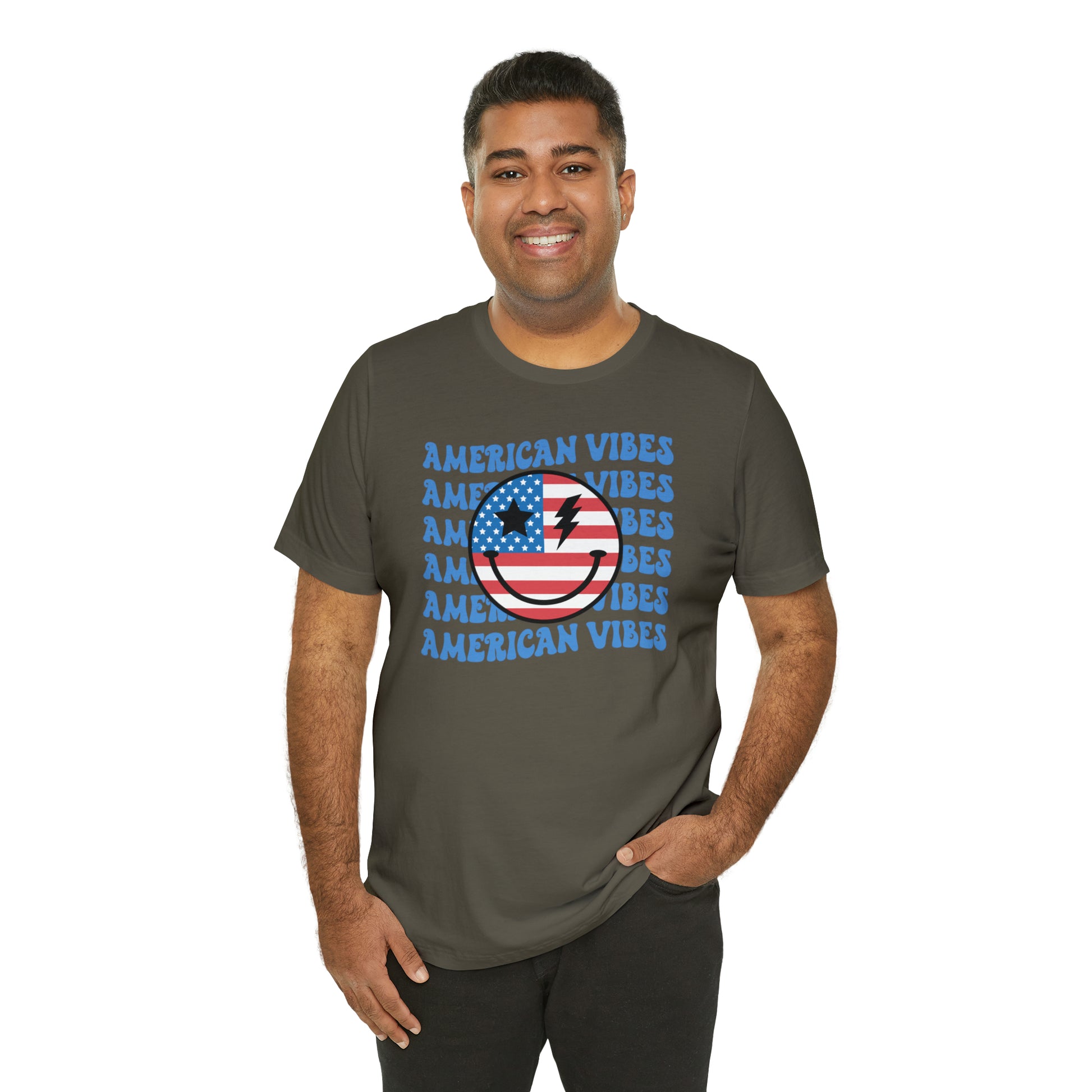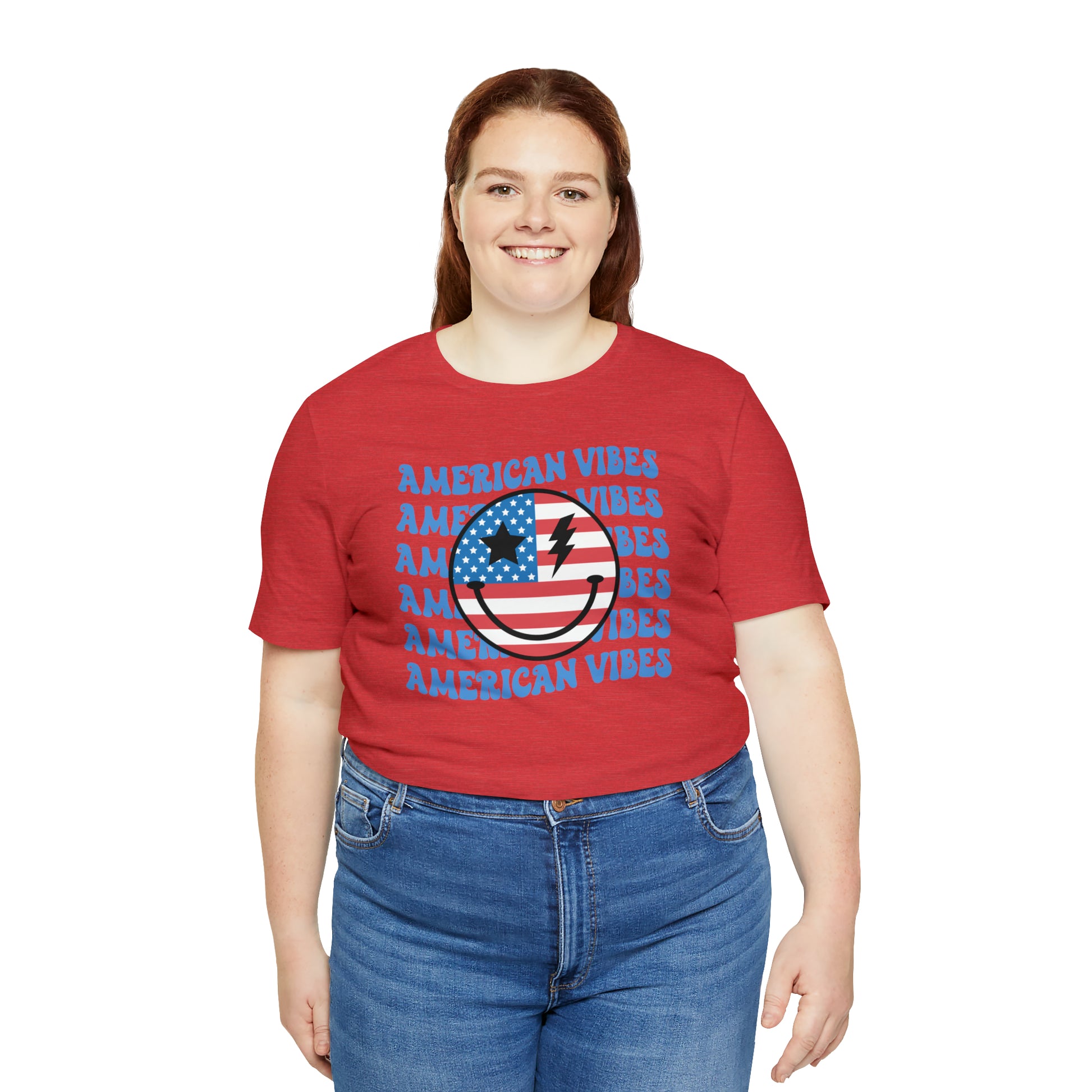 USA American Vibes American Flag Smiley Face Unisex Jersey Short Sleeve Tee