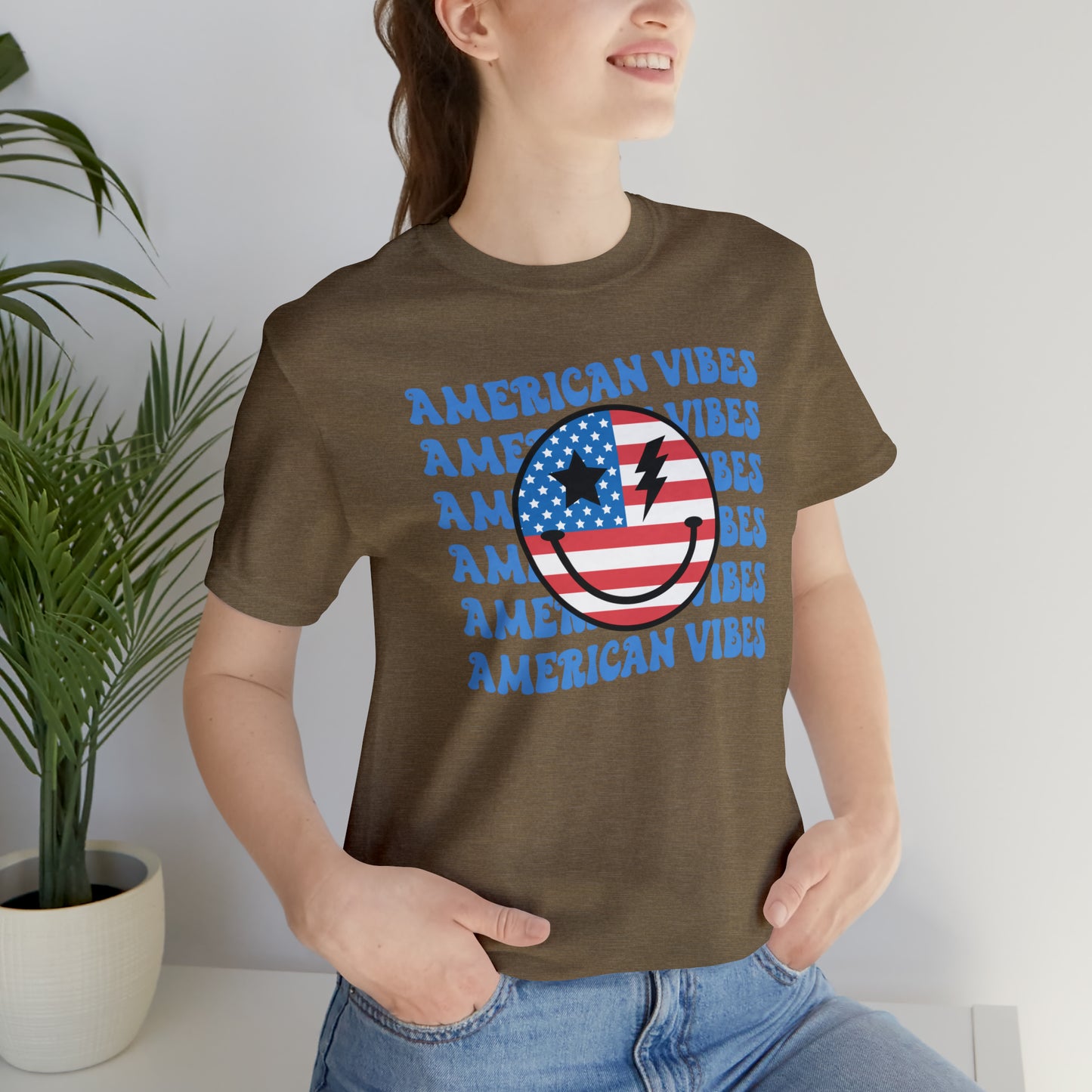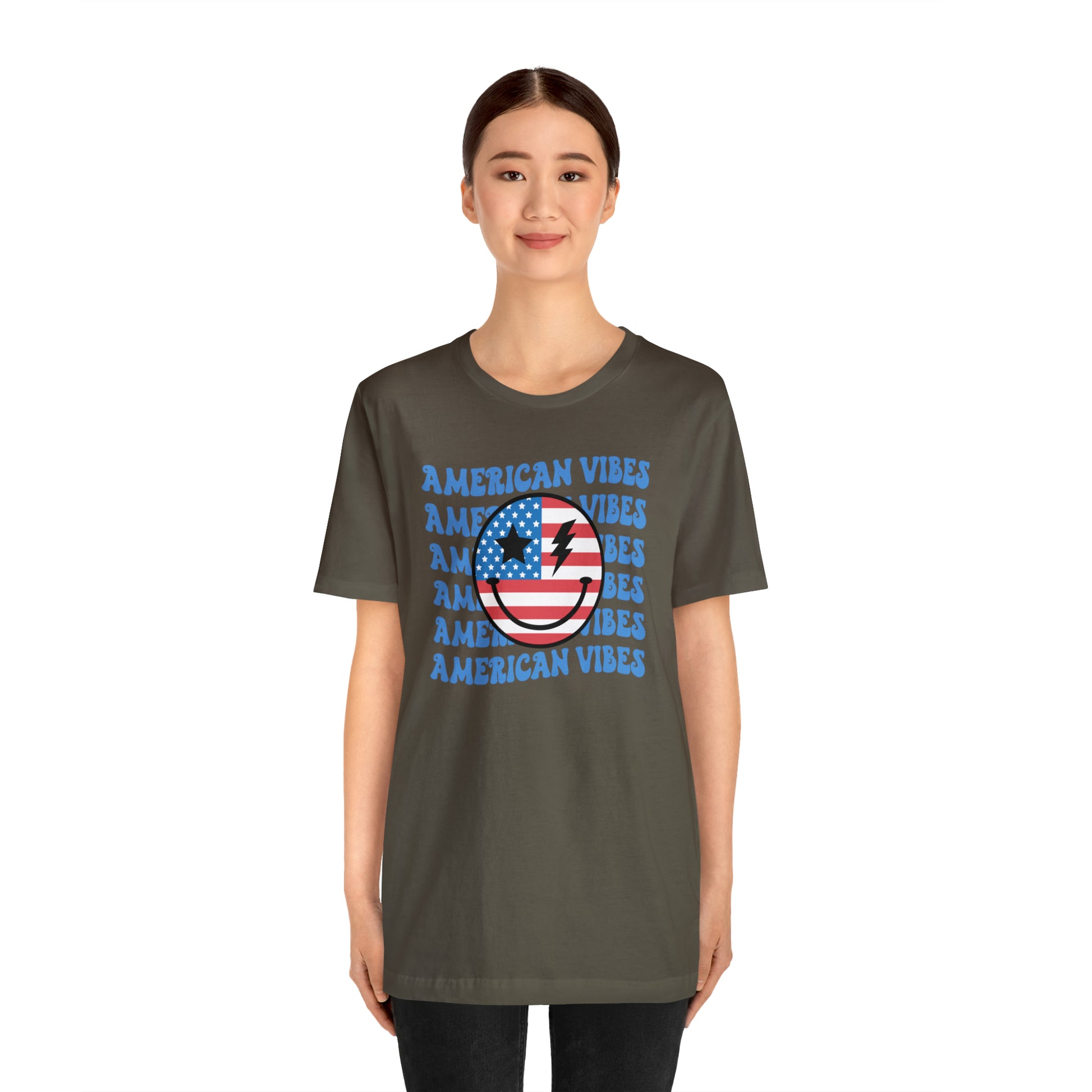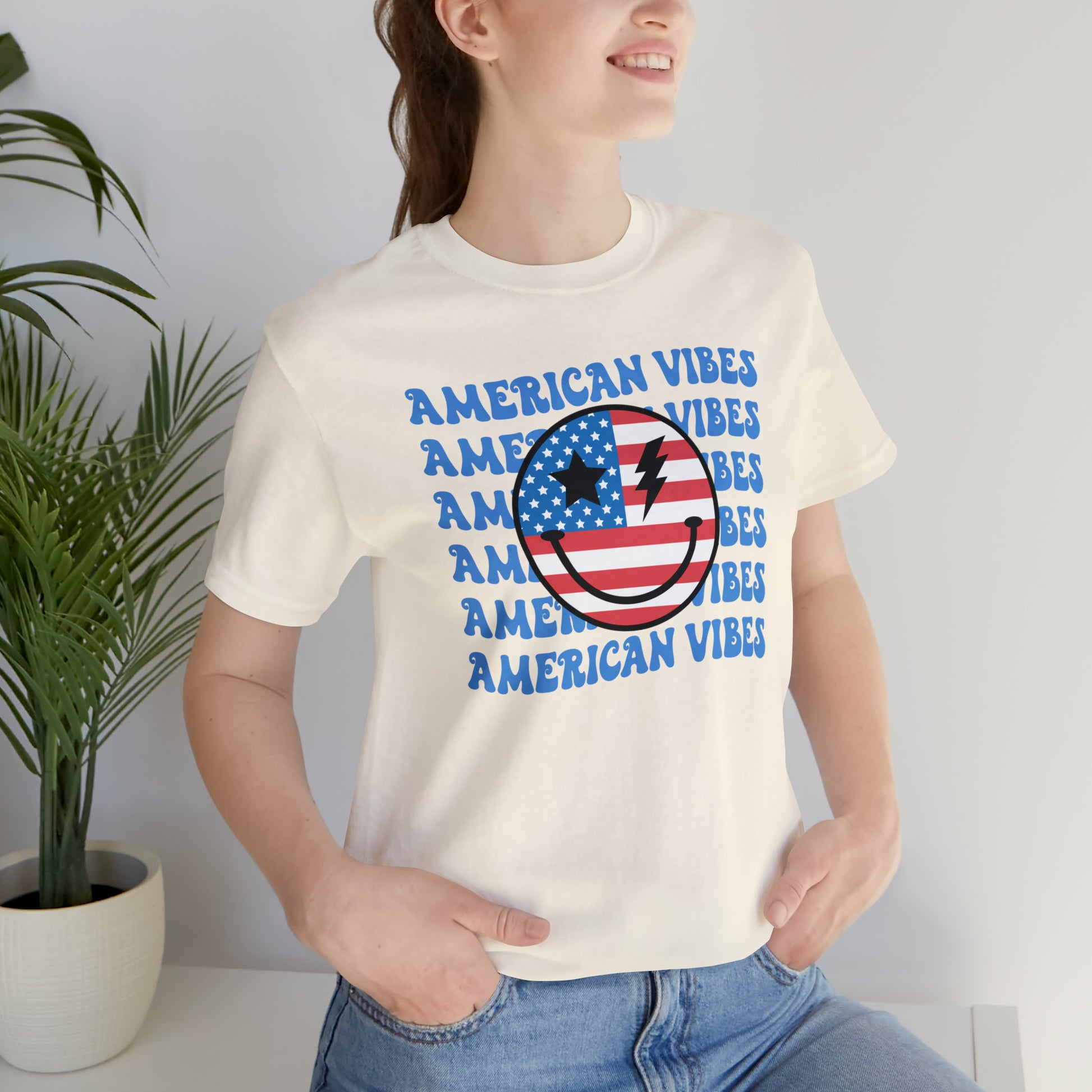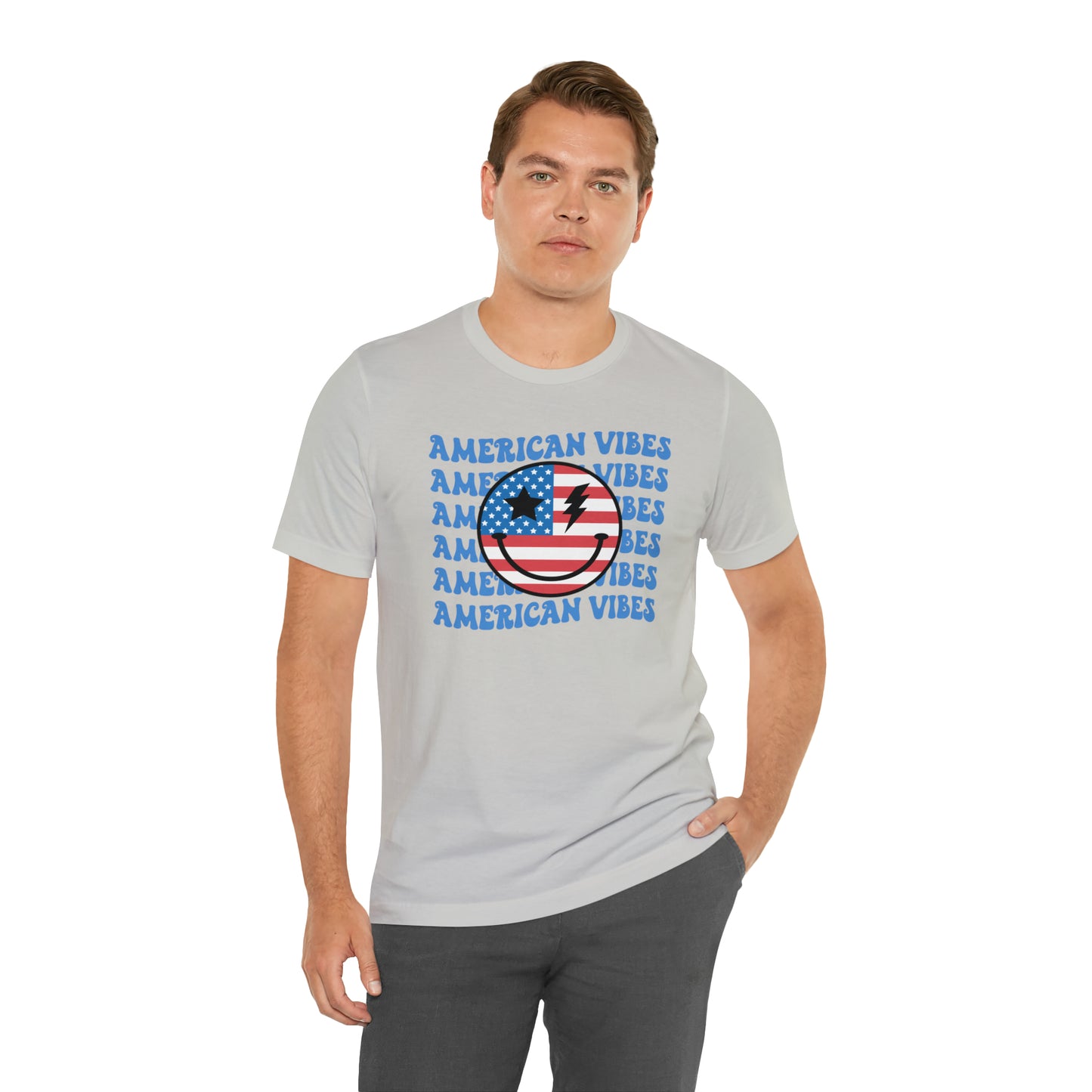 USA American Vibes American Flag Smiley Face Unisex Jersey Short Sleeve Tee