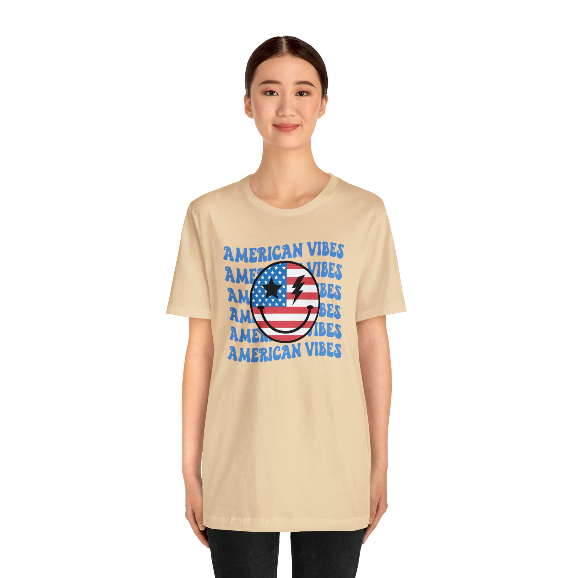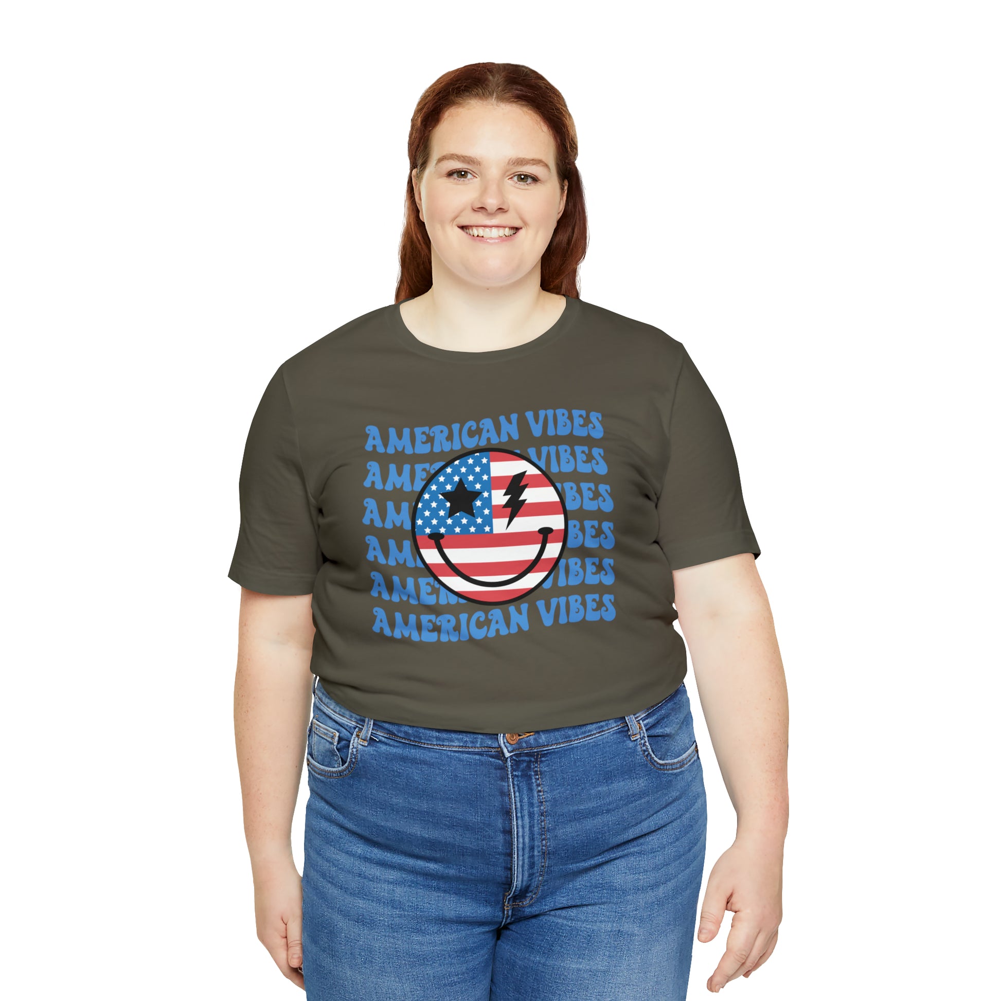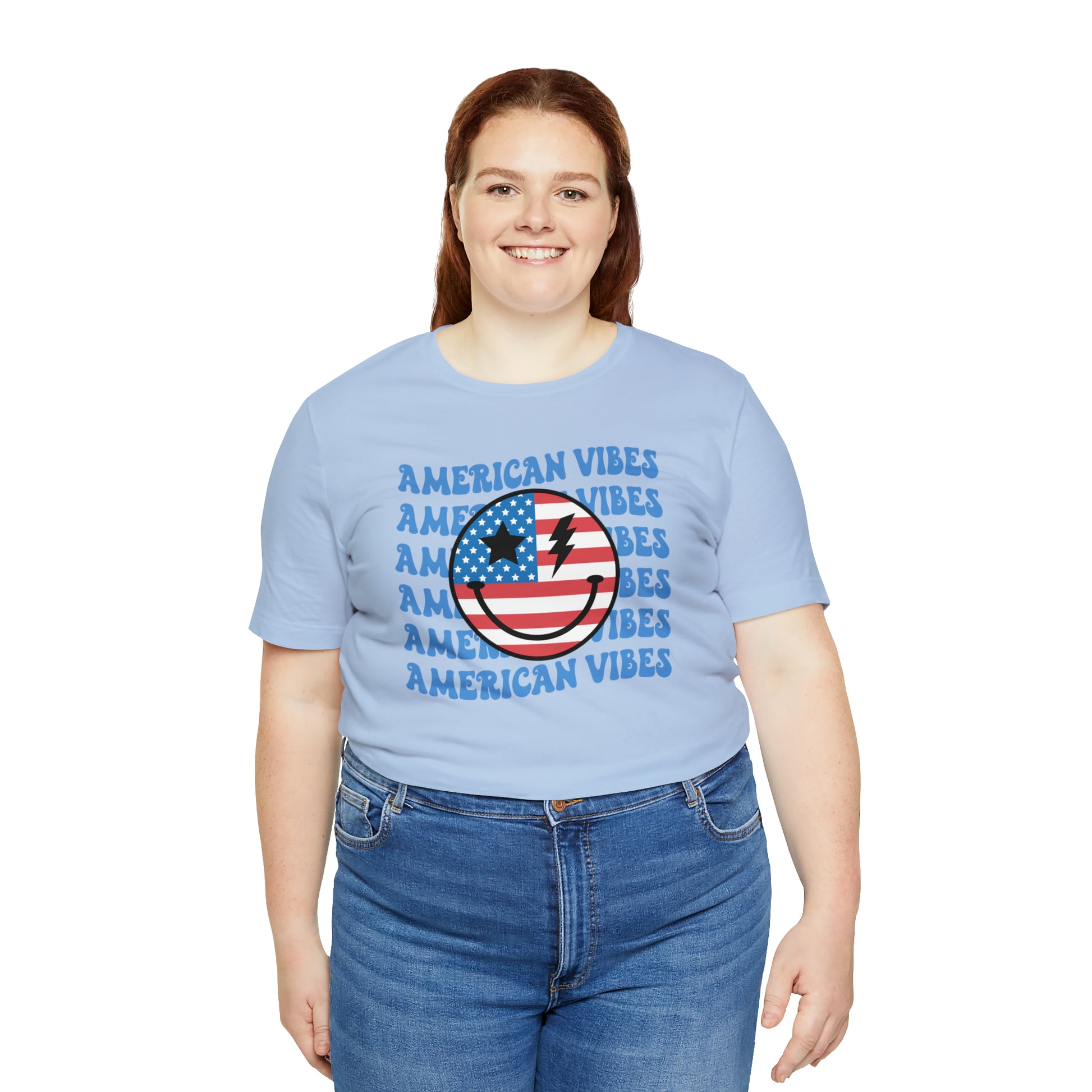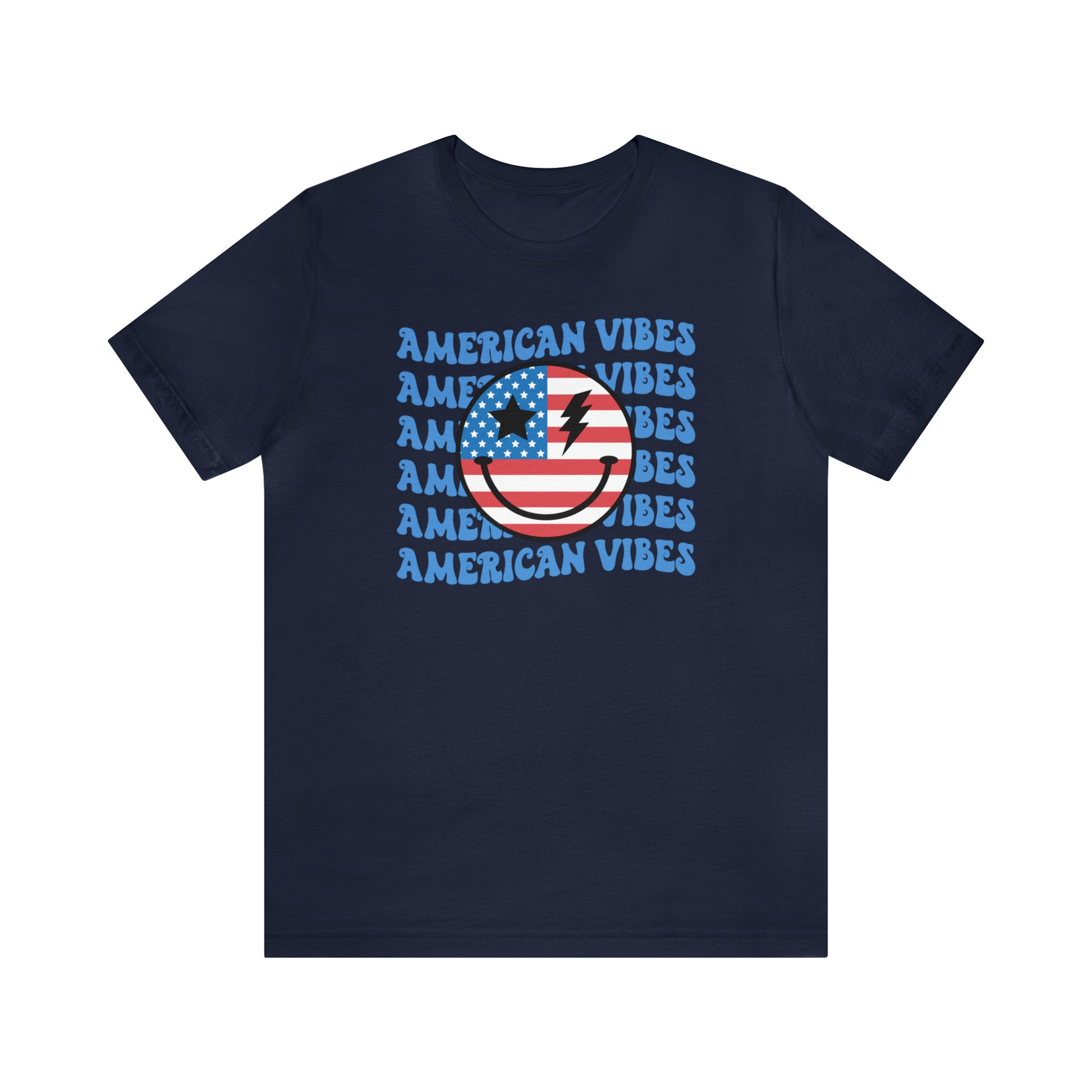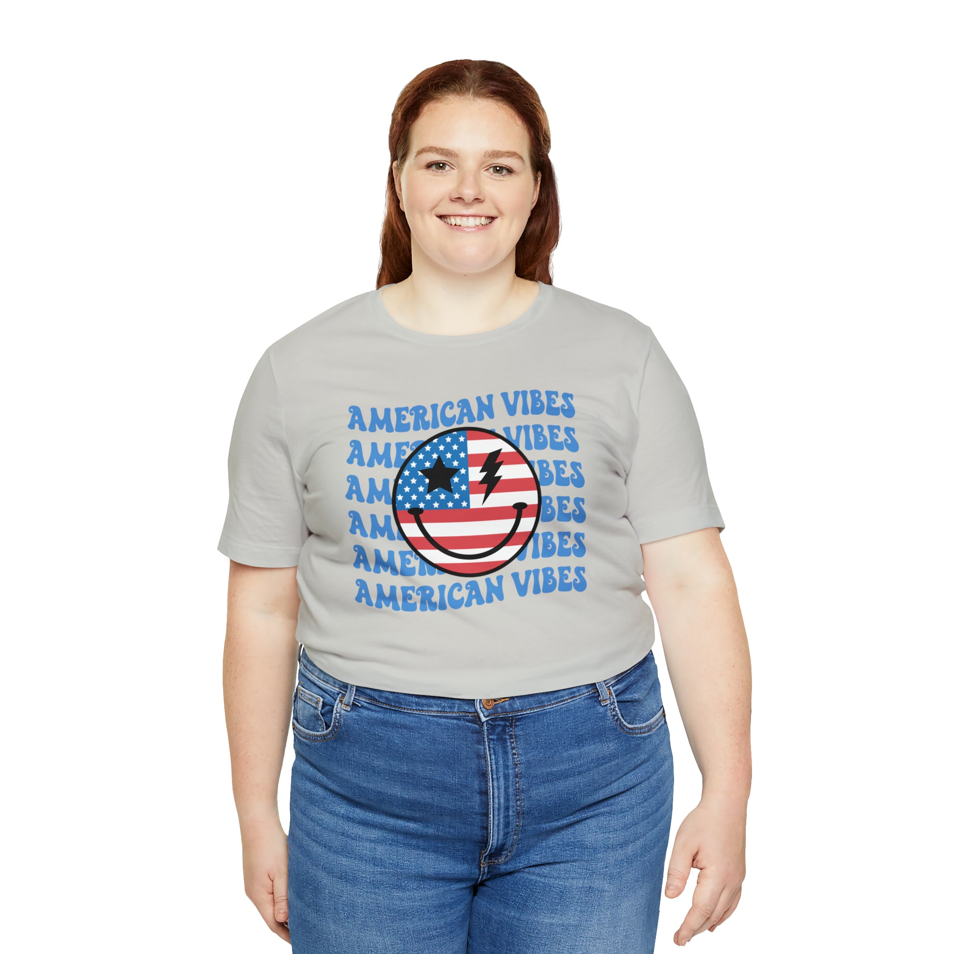 USA American Vibes American Flag Smiley Face Unisex Jersey Short Sleeve Tee