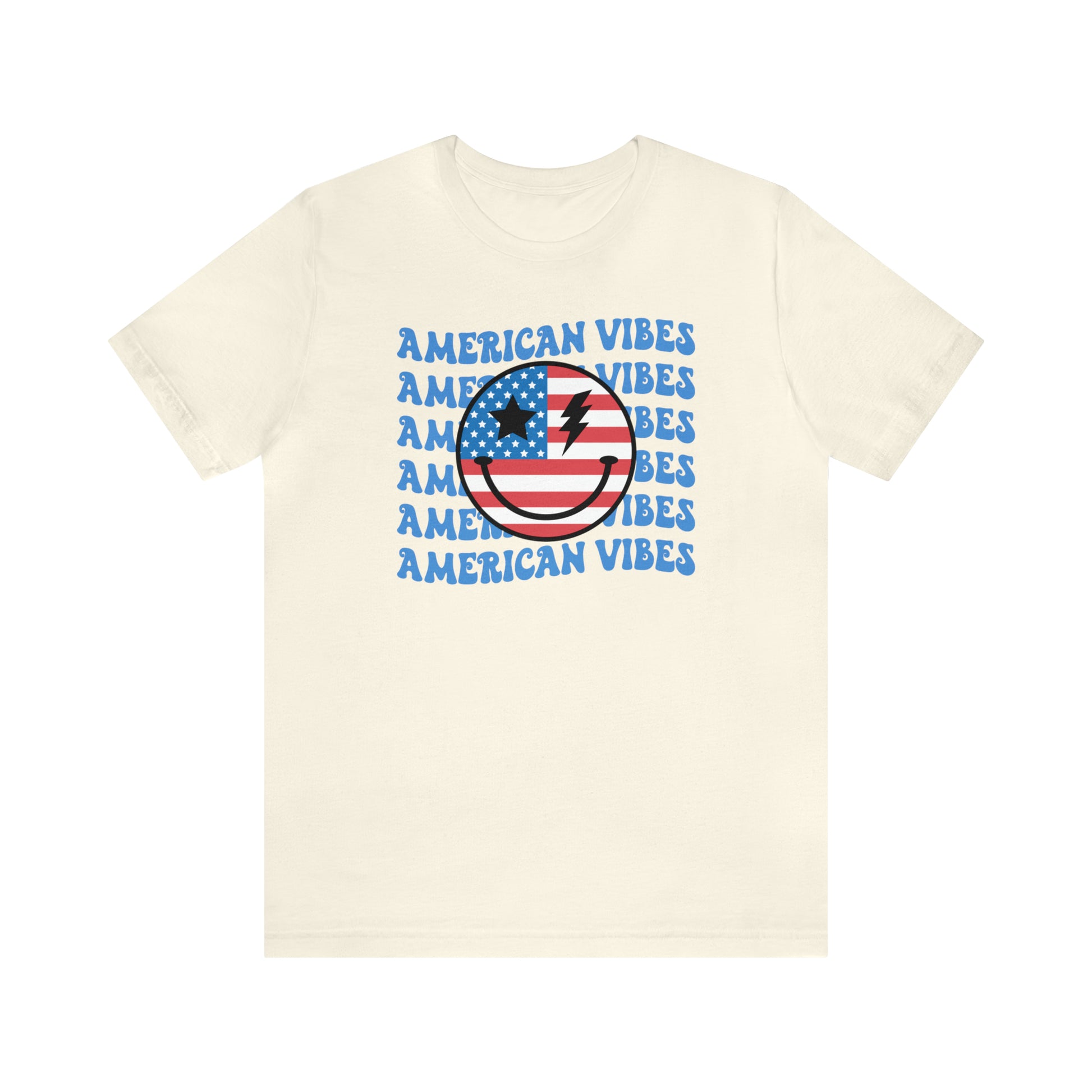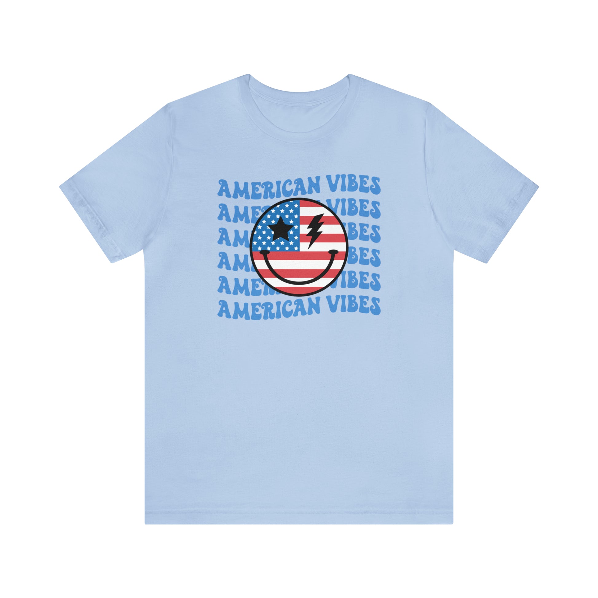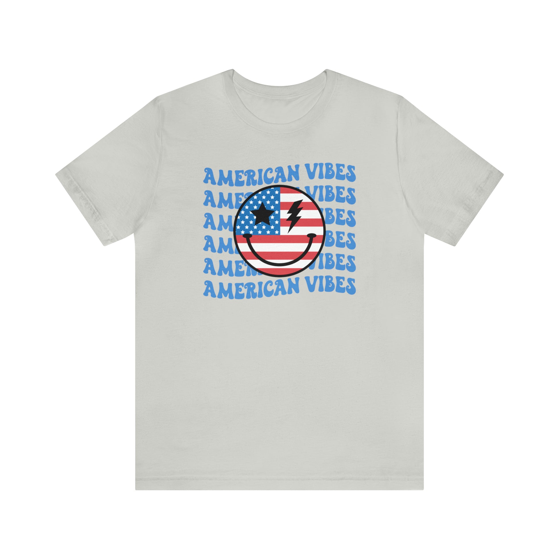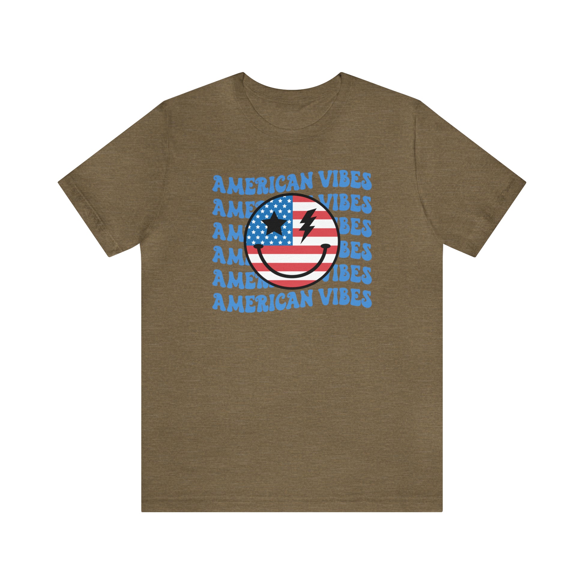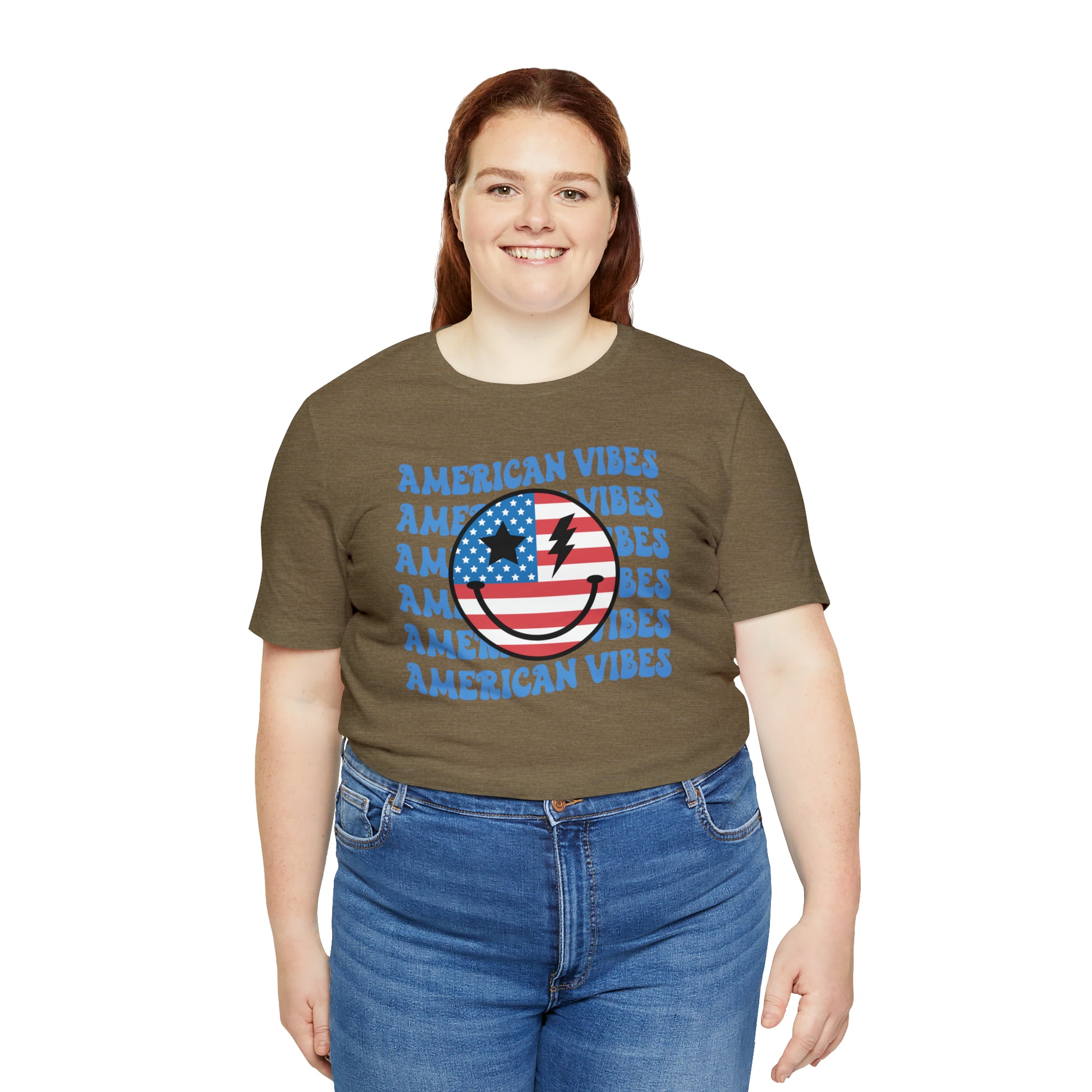 USA American Vibes American Flag Smiley Face Unisex Jersey Short Sleeve Tee