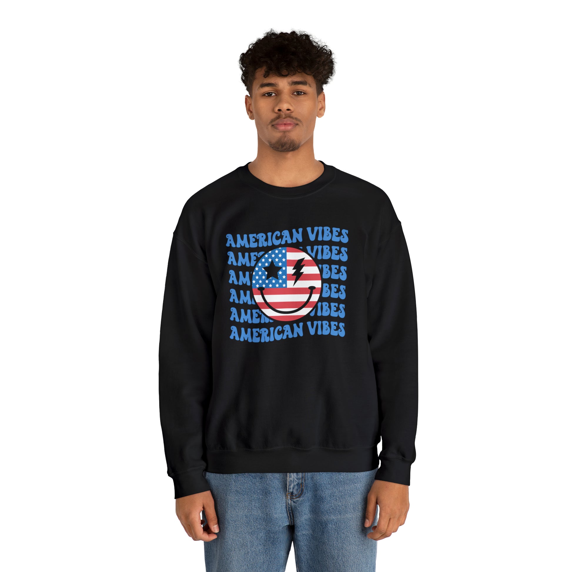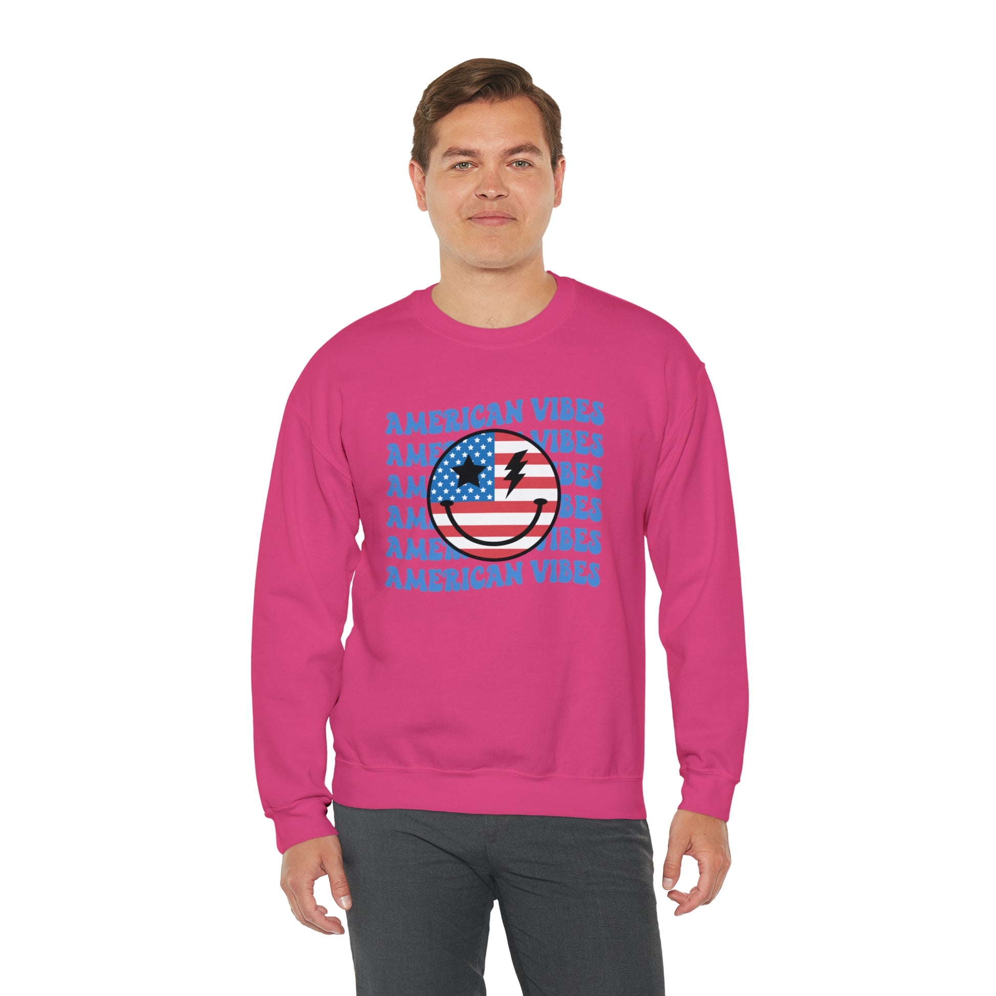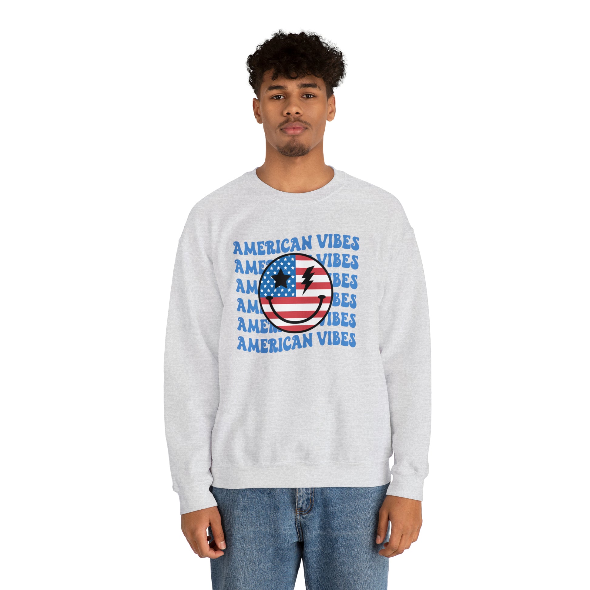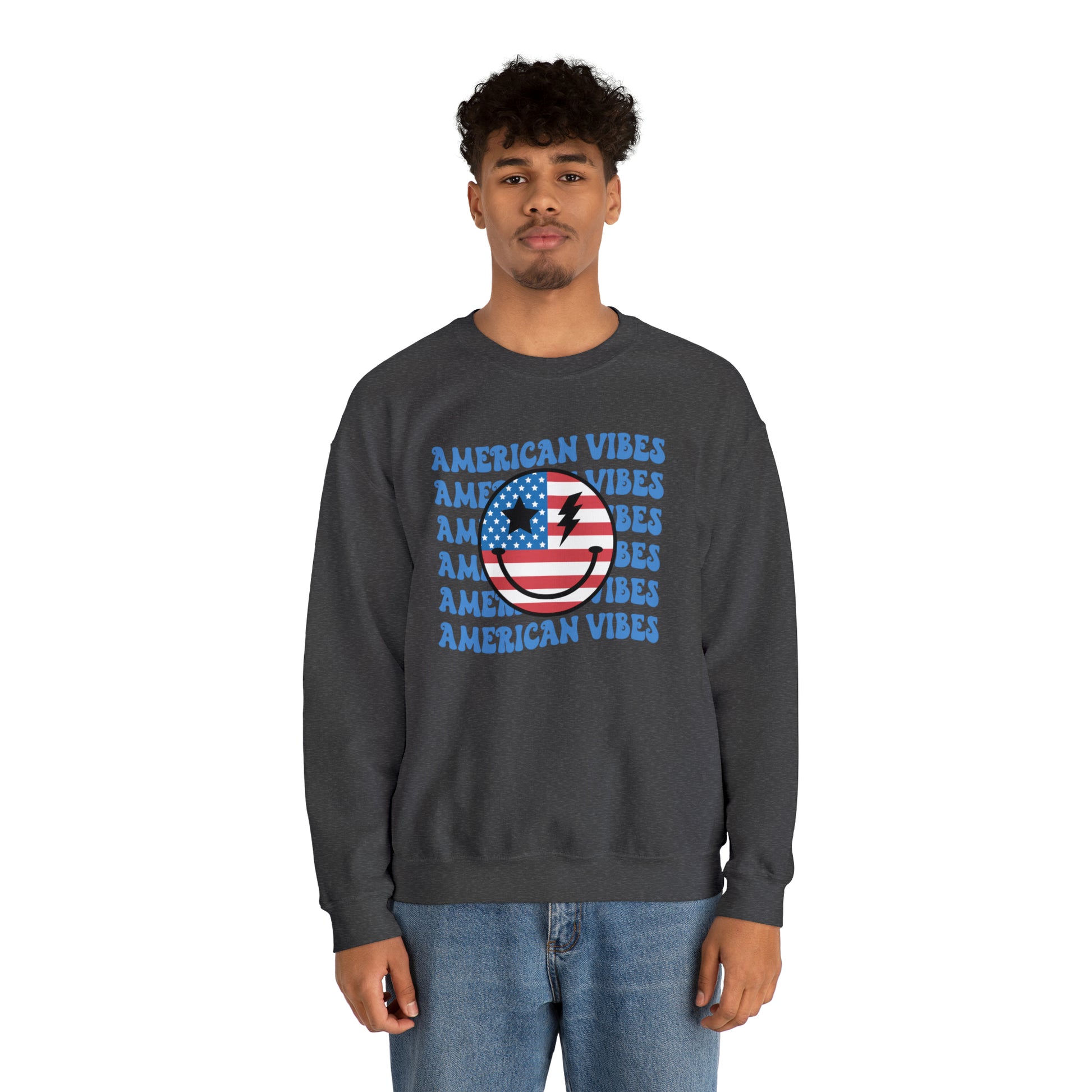 USA American Vibes Flag Smiley Face Heavy Blend™ Crewneck Sweatshirt