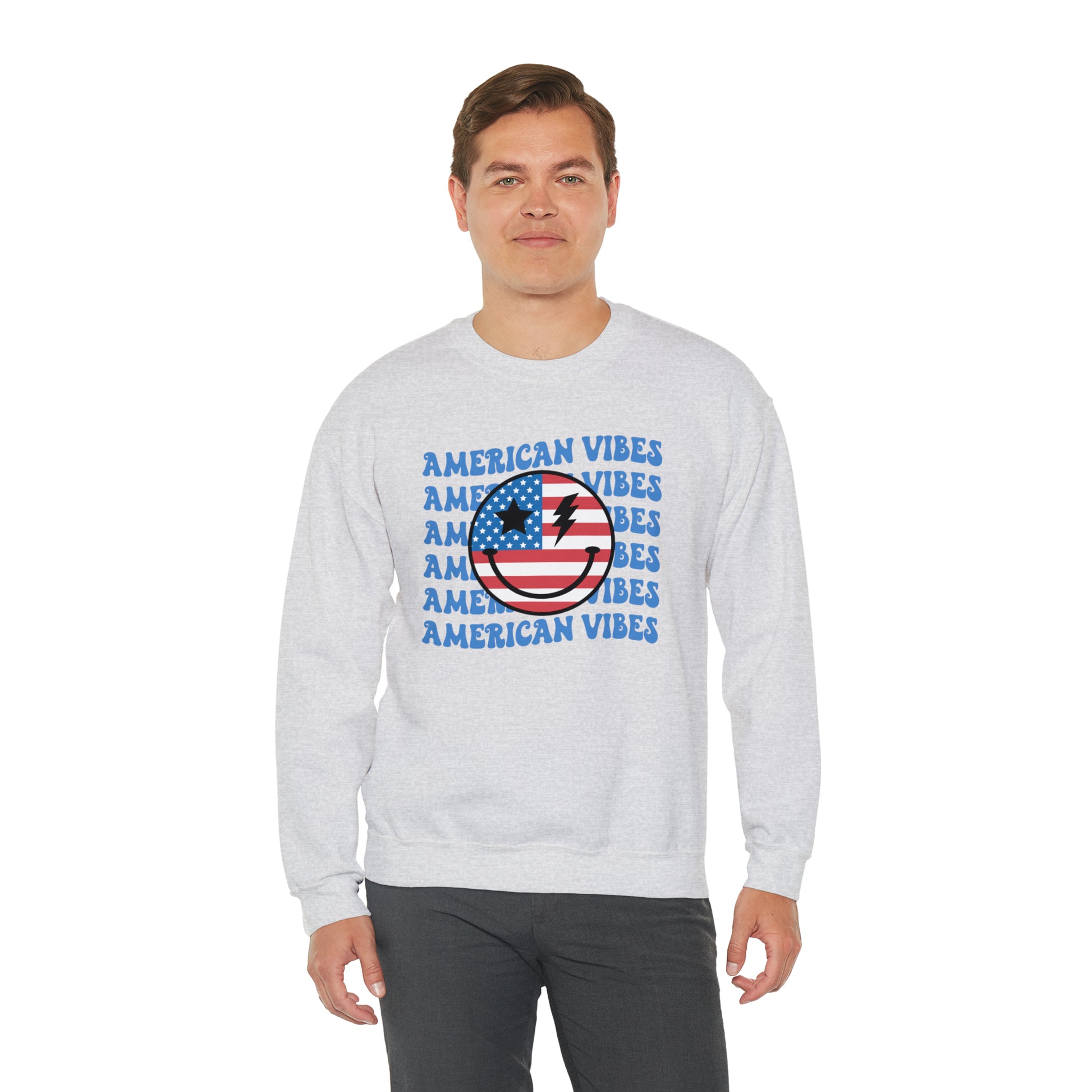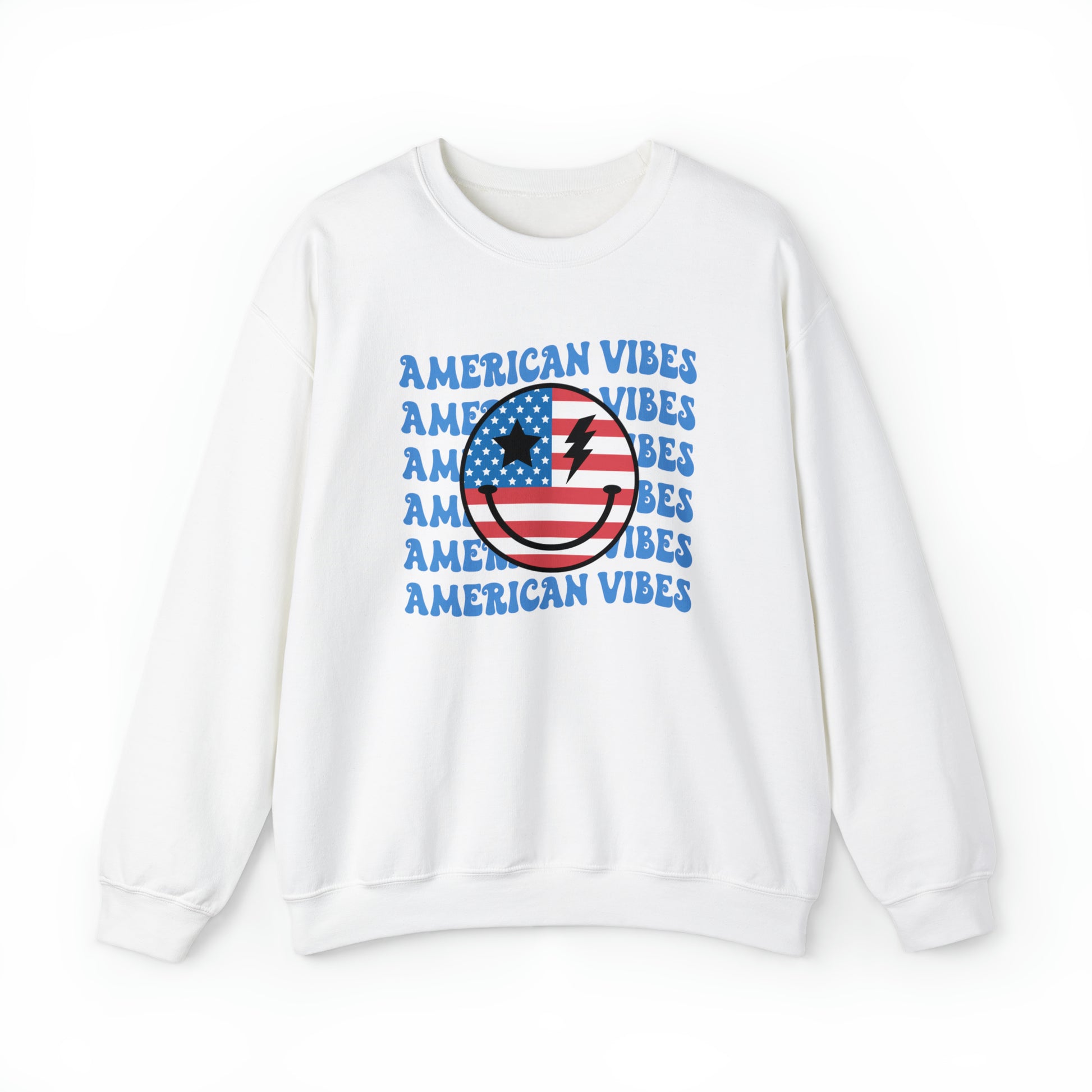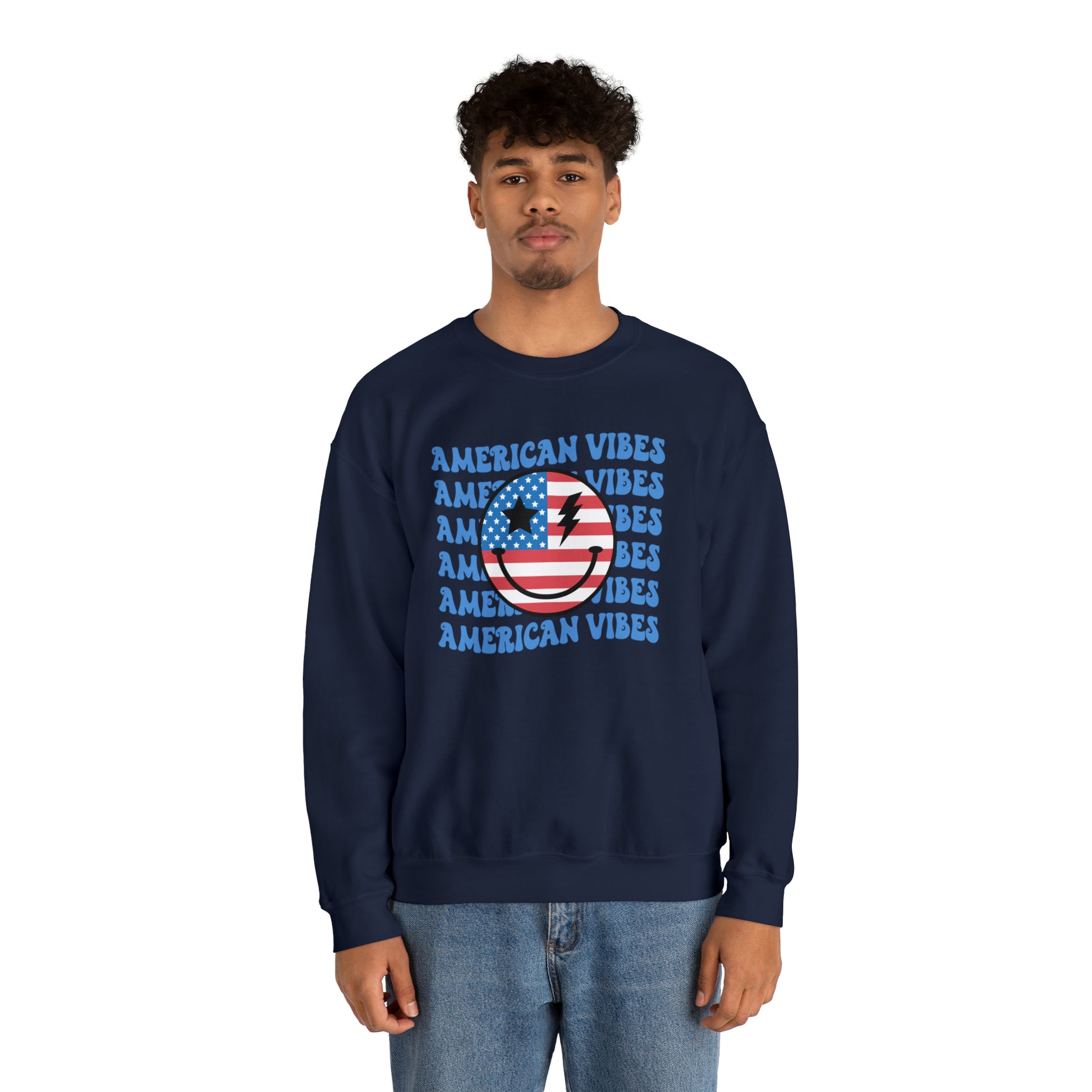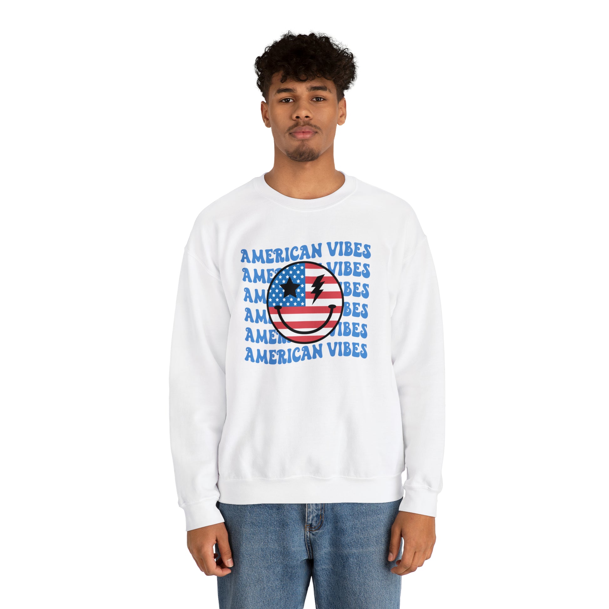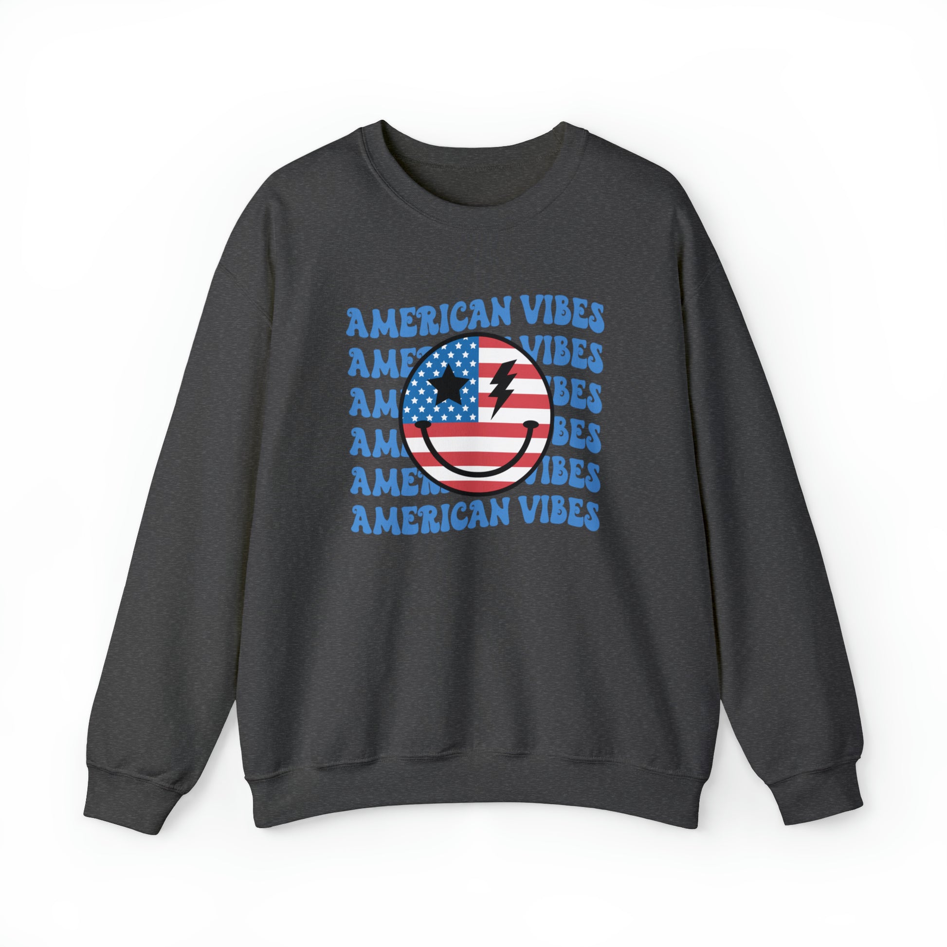 USA American Vibes Flag Smiley Face Heavy Blend™ Crewneck Sweatshirt