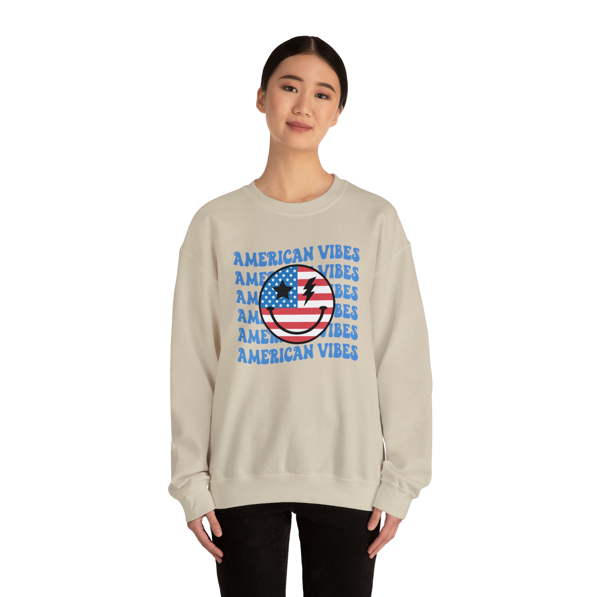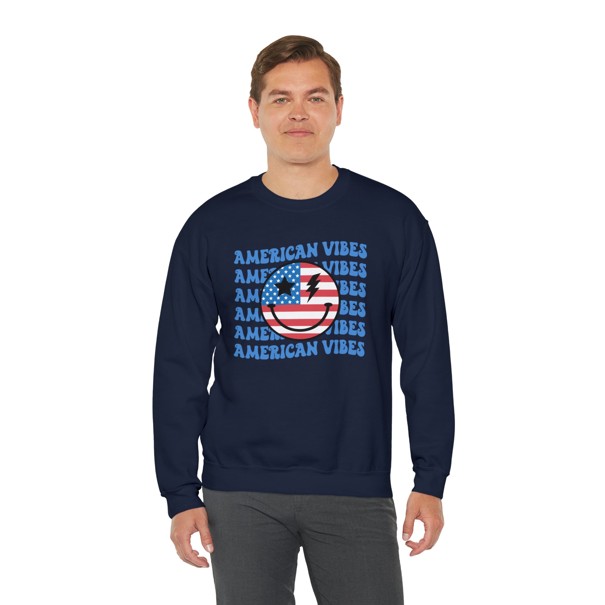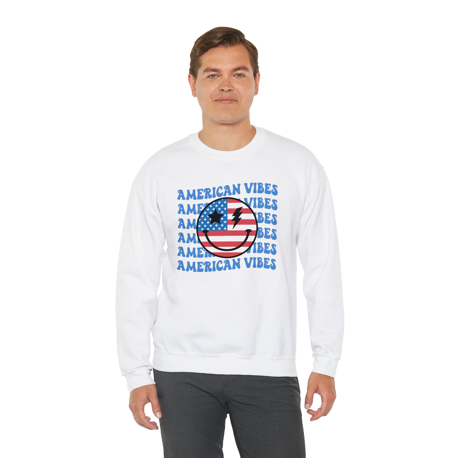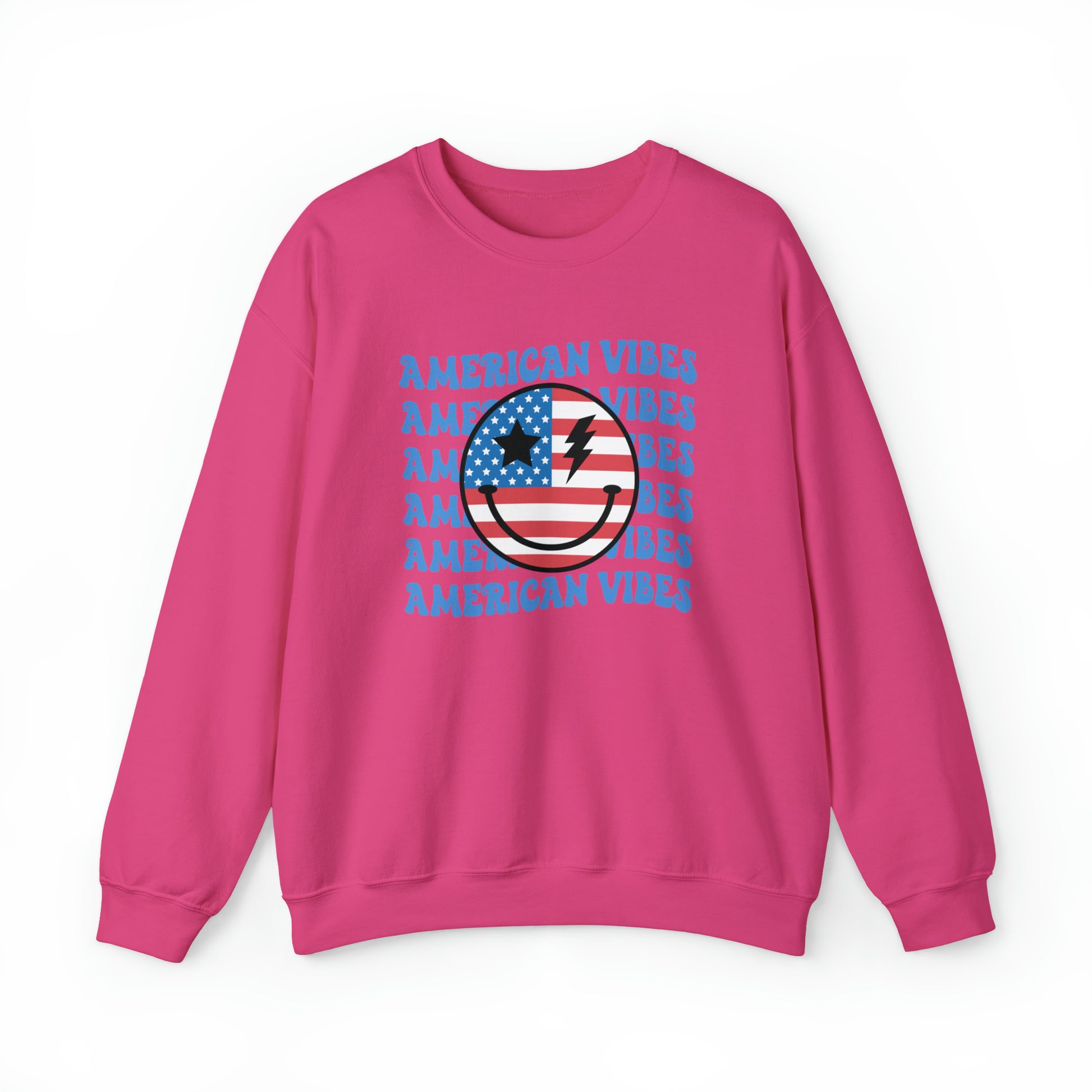 USA American Vibes Flag Smiley Face Heavy Blend™ Crewneck Sweatshirt